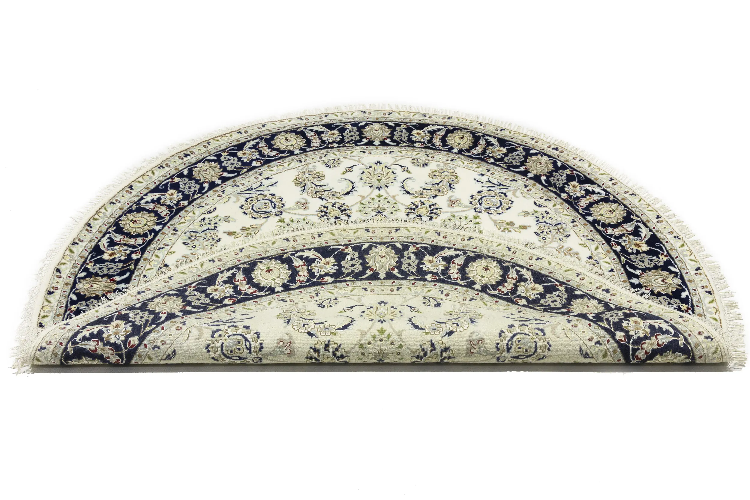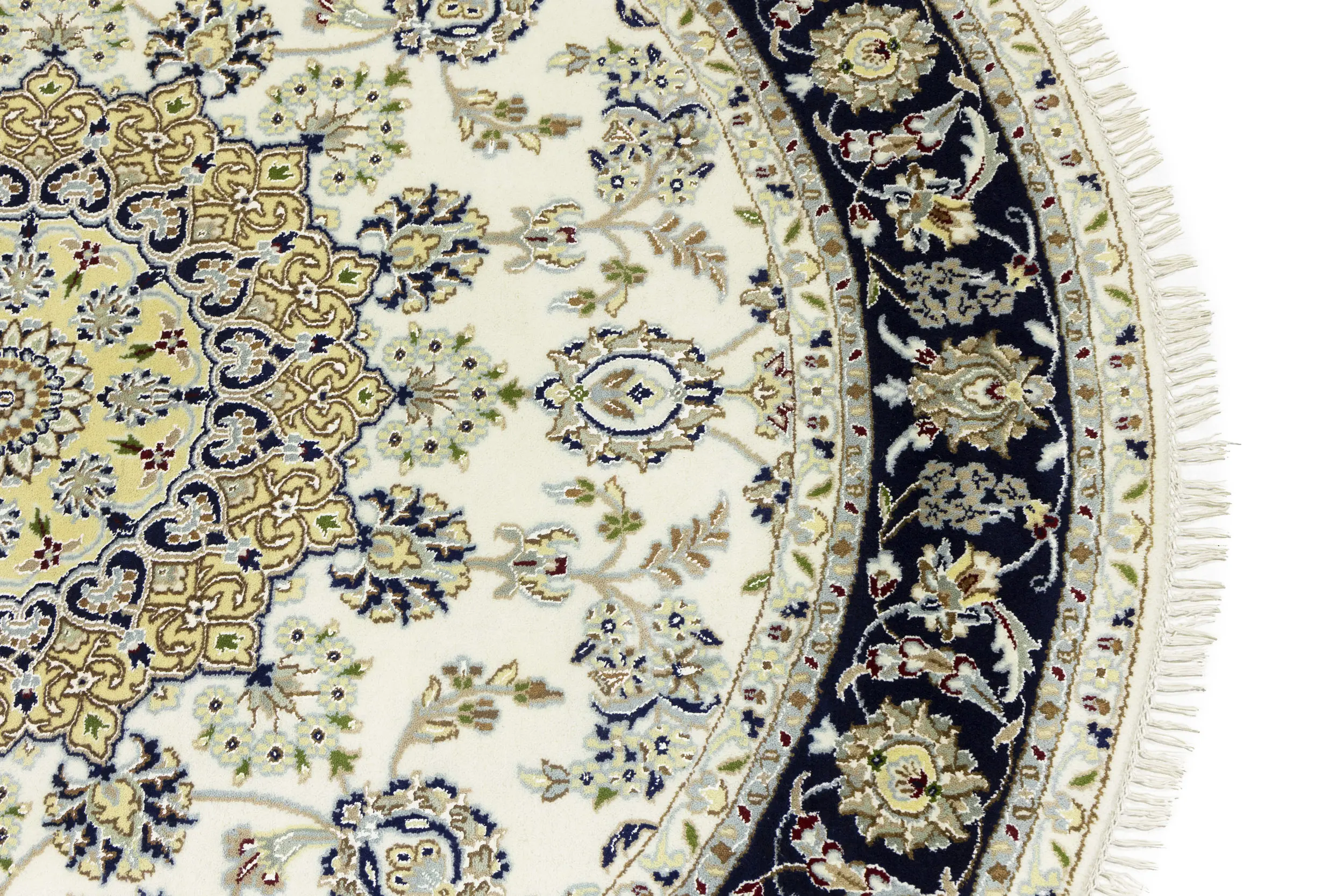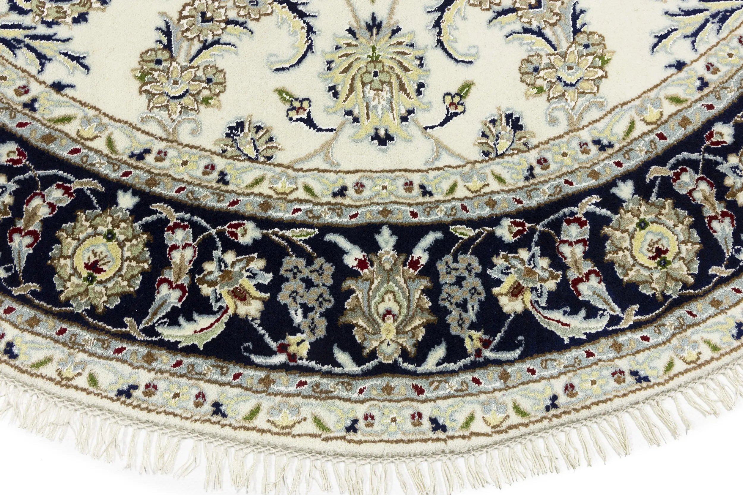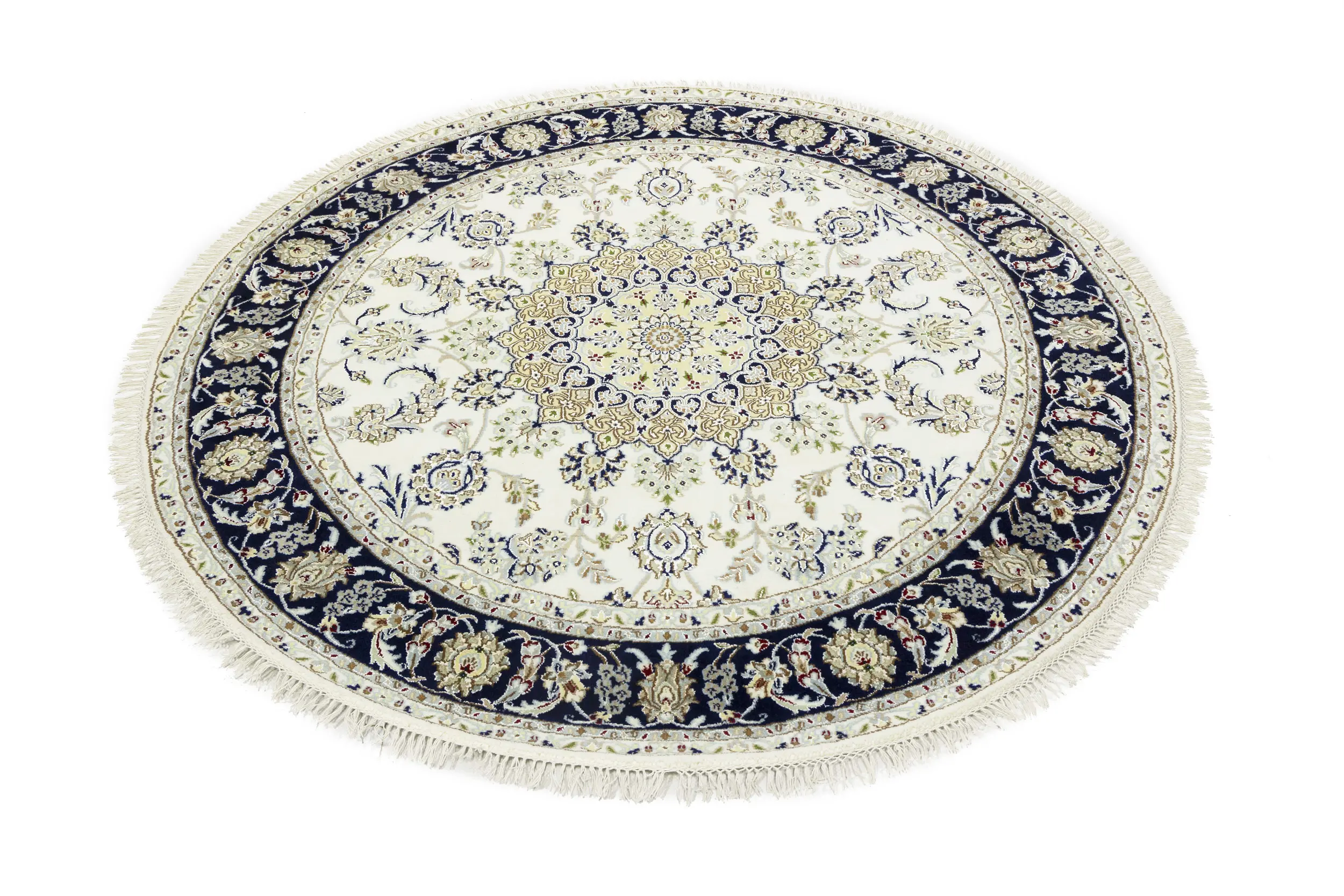 Cream Floral 6X6 Indo-Nain Oriental Round Rug