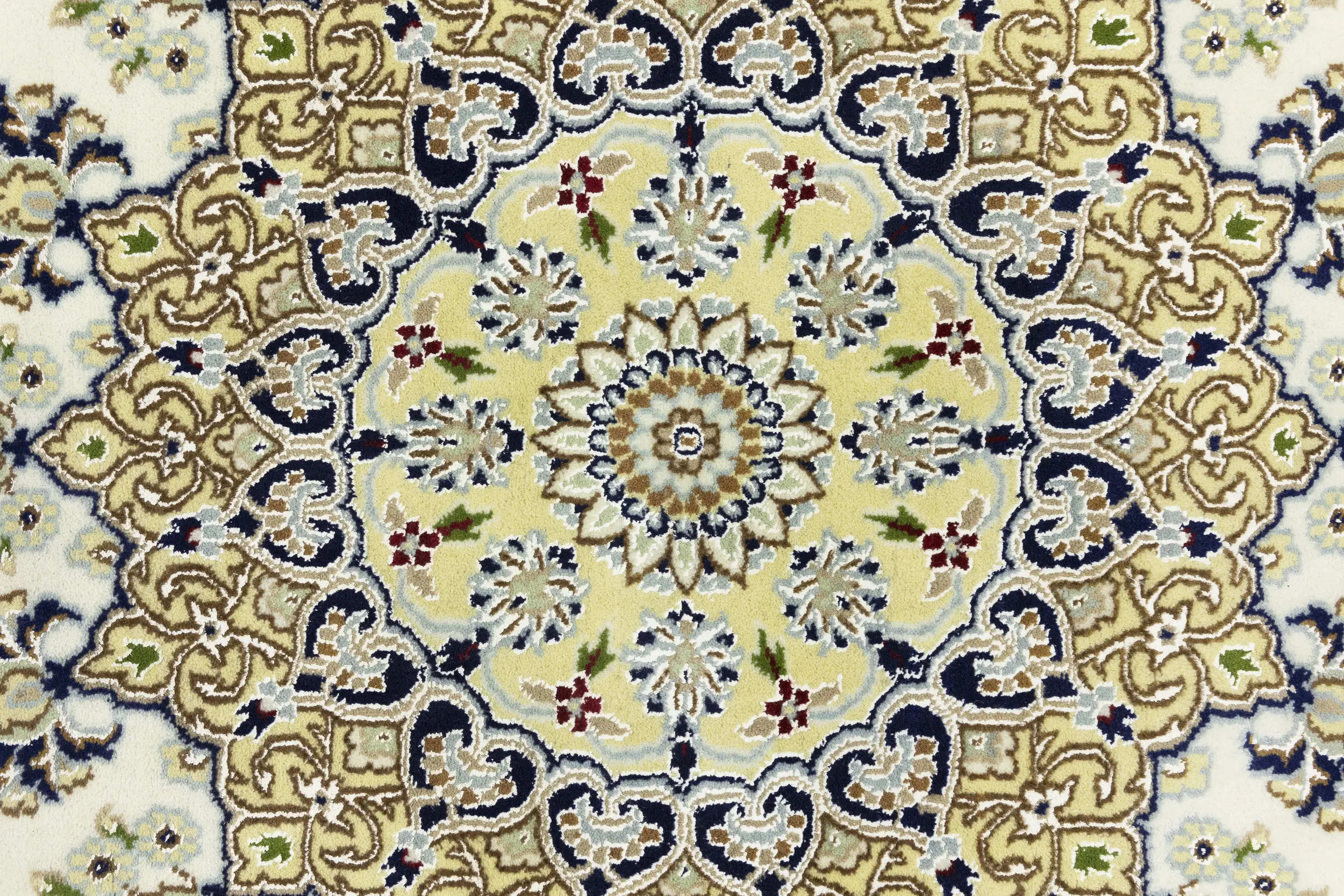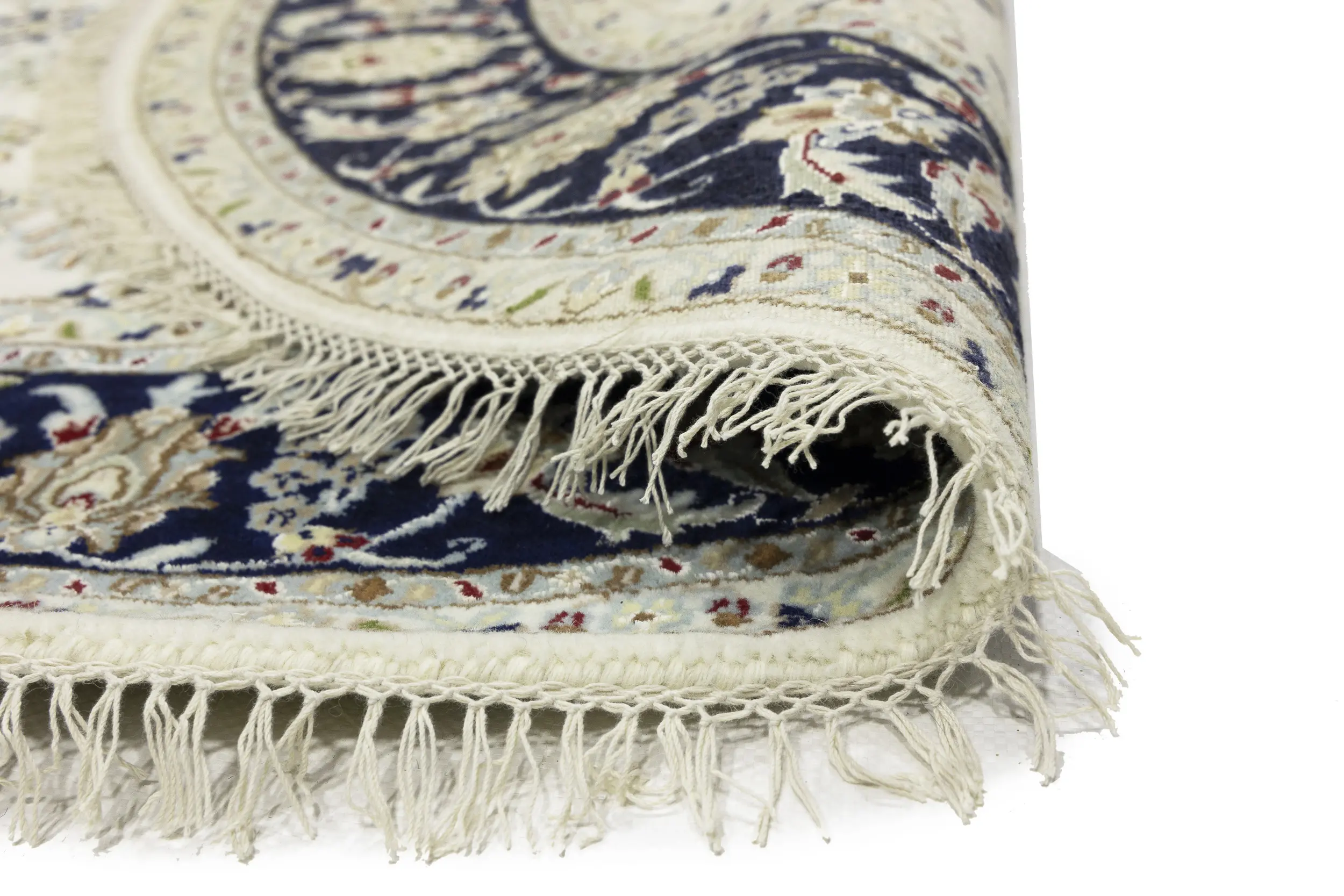 Handmade 6X6 cream Oriental rug made with vegetable dyes (fine wool pile and cotton foundation), exceptional knot count, and appealing ancient designs. This Oriental rug never will go out of style and would be among your most valuable treasures.