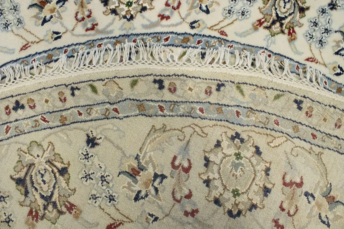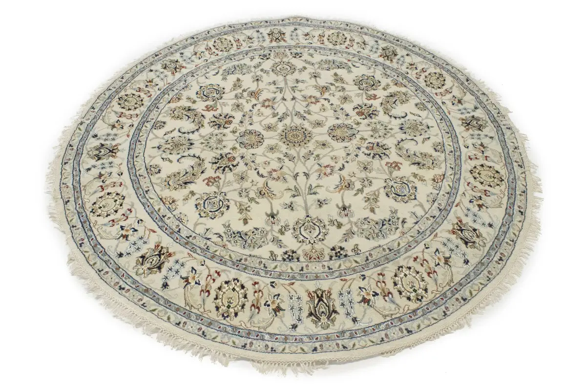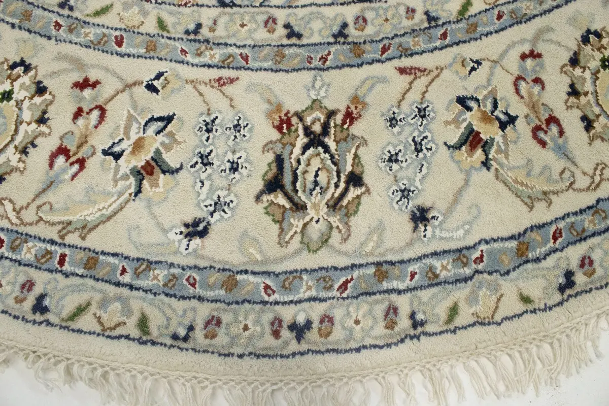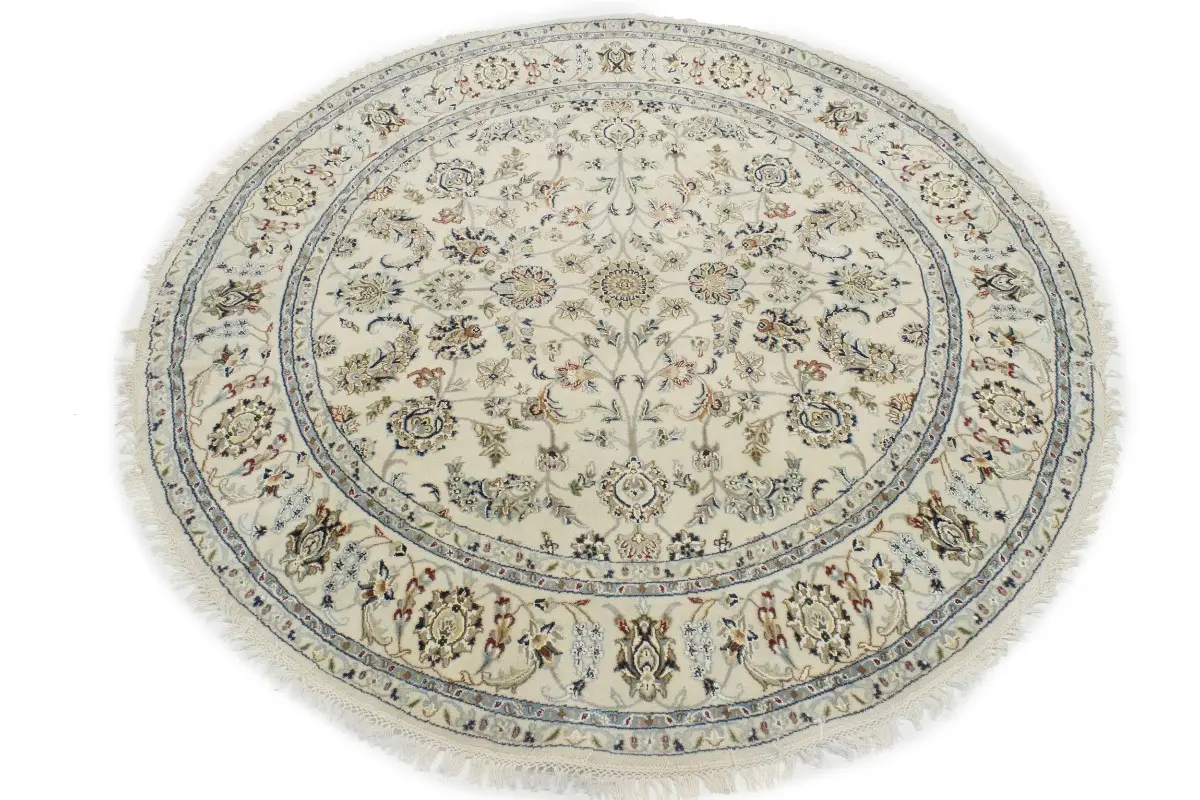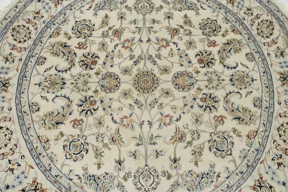 Cream Floral 6X6 Indo-Nain Oriental Round Rug