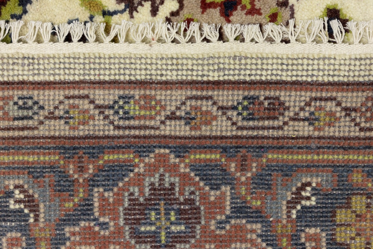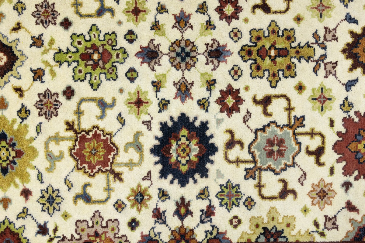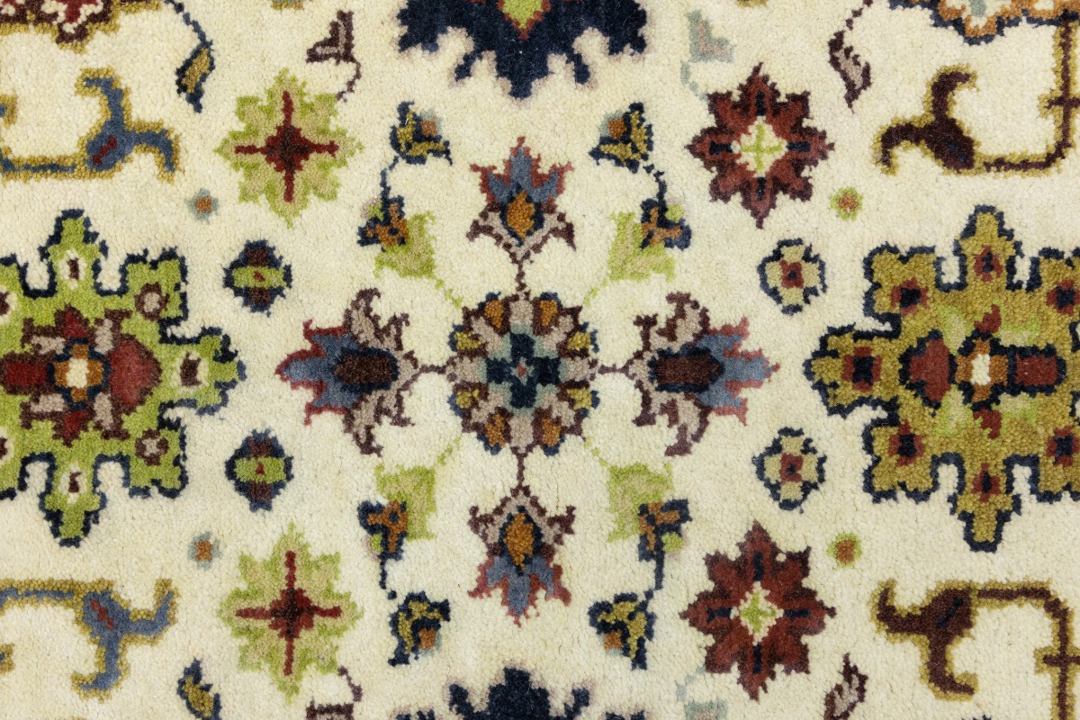 This original 6X9 cream new Oriental rug was finely knotted by the hands of weavers influenced by a variety of amazing artistic designs, to recreate the aged look of the exceptional piece with a richness of color and embellished background field. What set this vintage style Oriental area rug from the others are the material and dye used (wool pile and cotton foundation), knot count, antique designs, fantastic grades, and its regional historical connection: it has deep roots, from the story of the people who produced it to the meaning of the symbols and colors displayed across its canvas that have been praised for centuries. This Indian home décor carpet will be completely cozy and inviting that never will go out of style! Also, this Oriental rug would be among your most valuable treasures, it is a great investment that increase in value over time, and it will last a lifetime because was woven with high-quality, all-natural wool. Eco-friendly, opulent yet affordable; this rug will give you an extra pop of character to help define your home environment with luxury and warmth that will capture the eyes and attention of your audience (homeowners, designers, decorators, family and friends). OT-7703