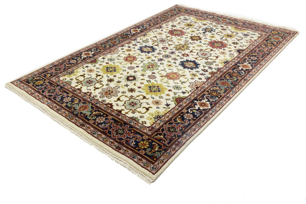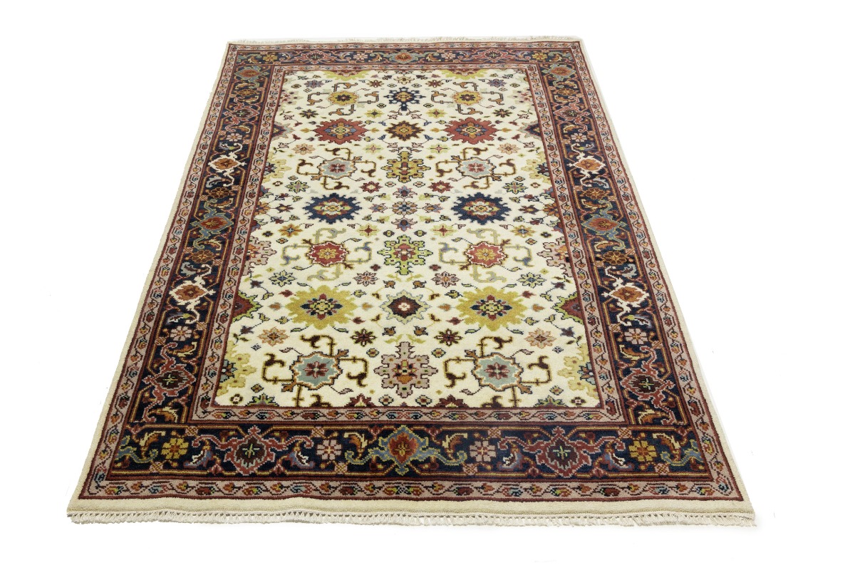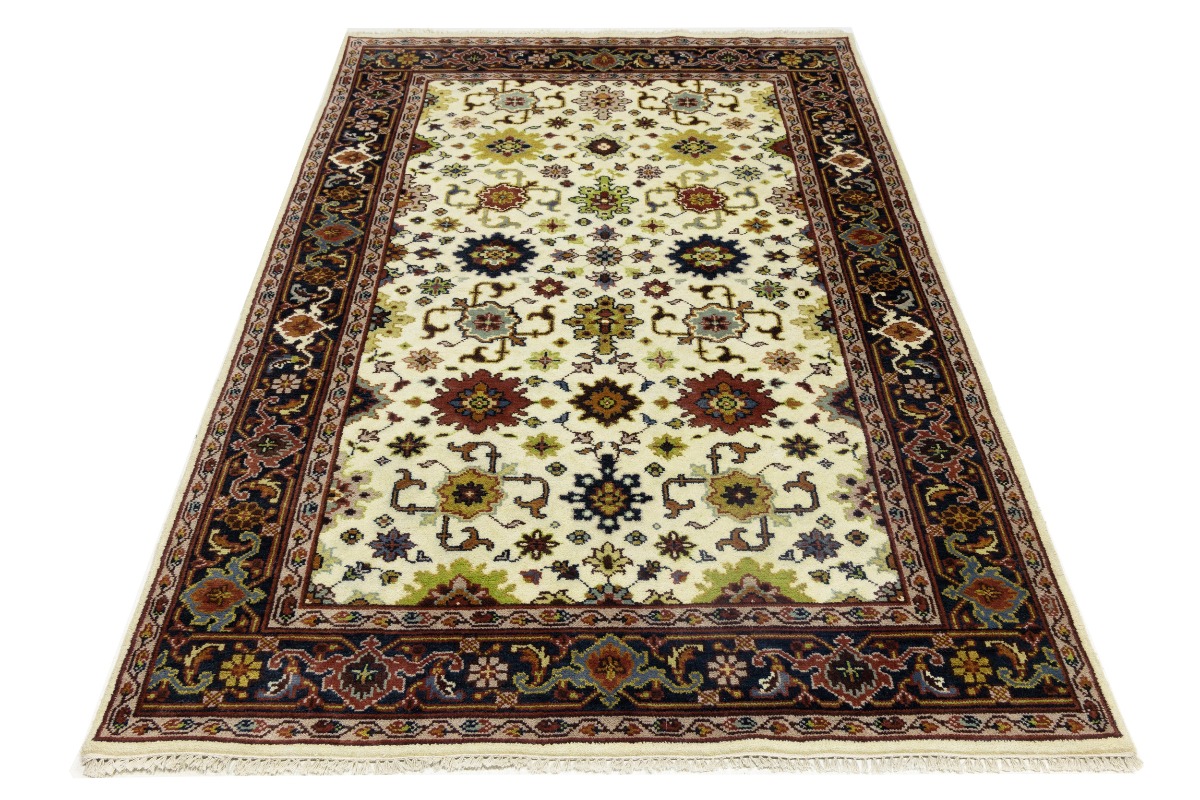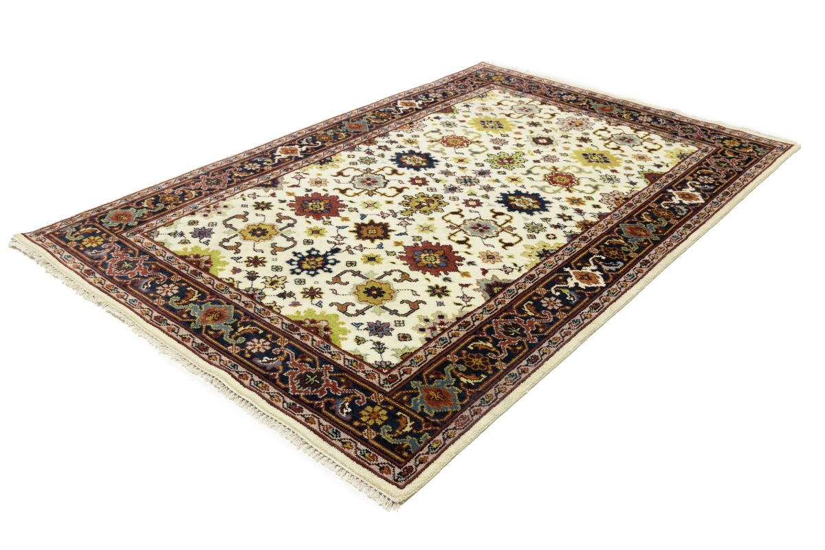 Handmade 6X9 cream oriental rug made with vegetable dyes (fine wool pile and cotton foundation), superior knot count, and appealing ancient designs. This Oriental rug never will go out of style and would be among your most valuable treasures.