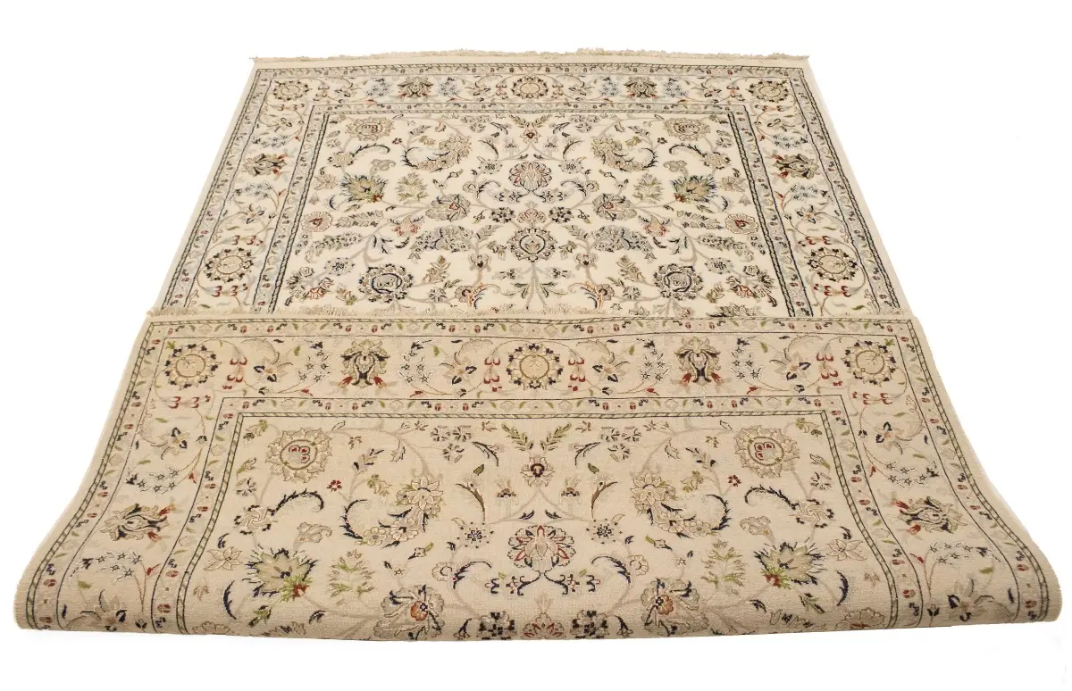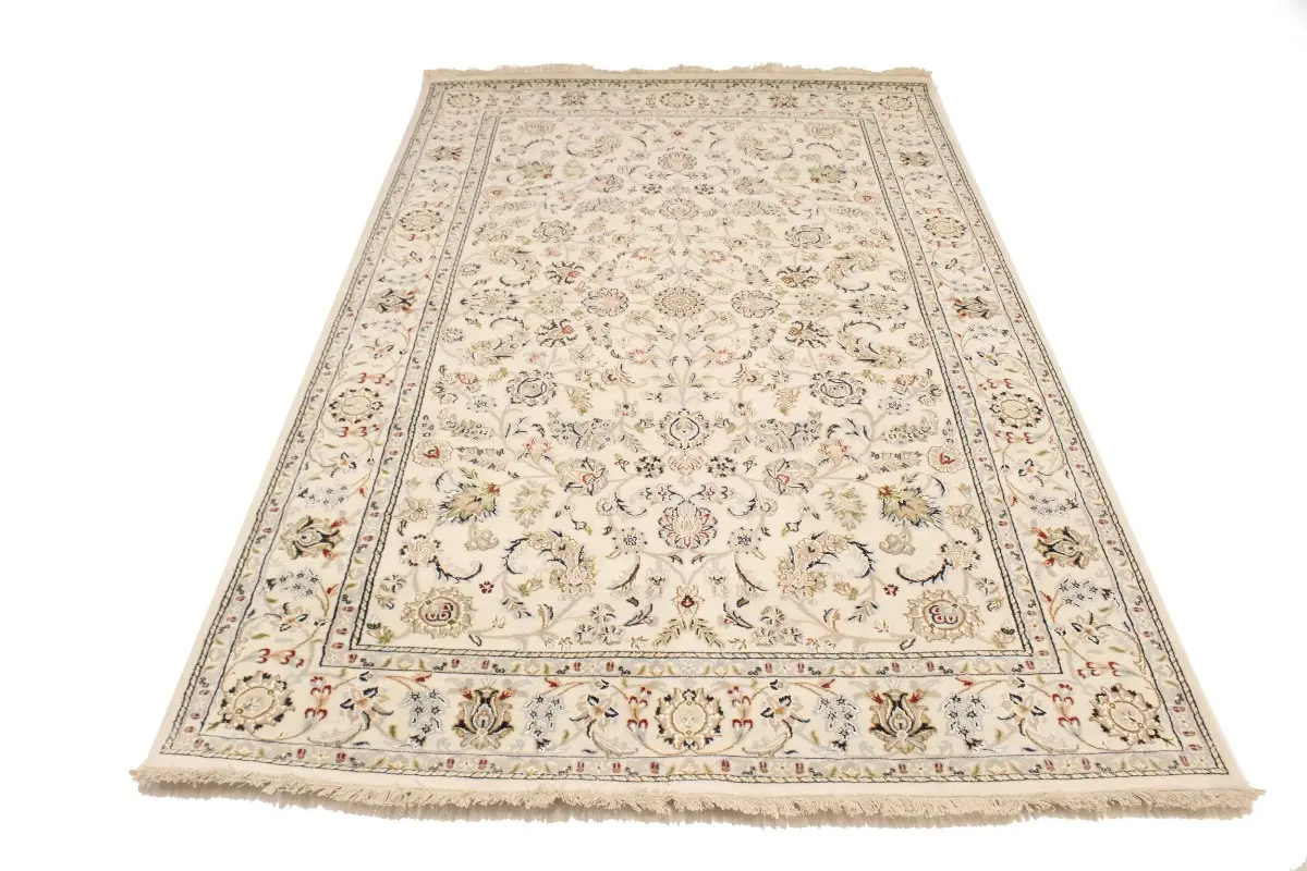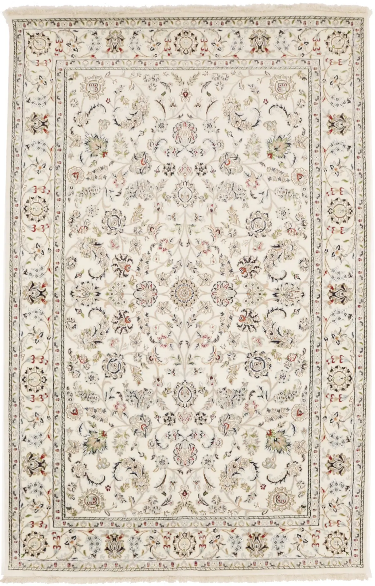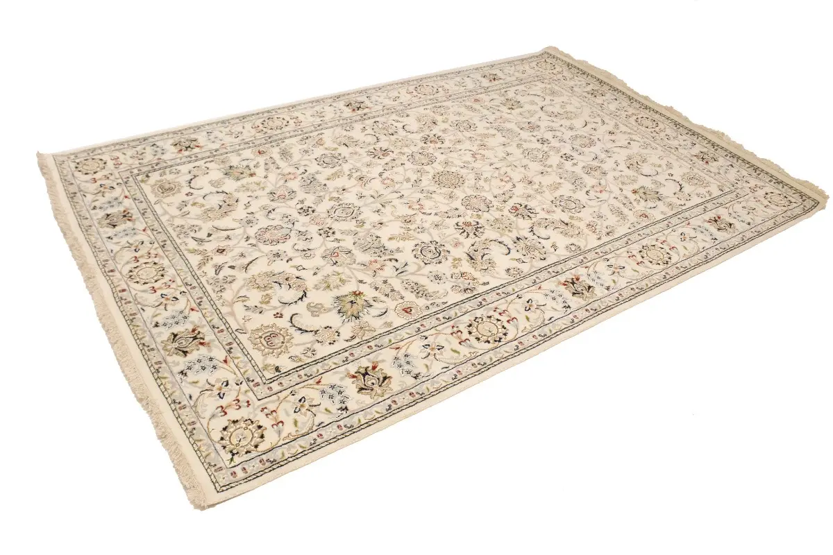Cream Floral 6X9 Indo-Nain Oriental Rug