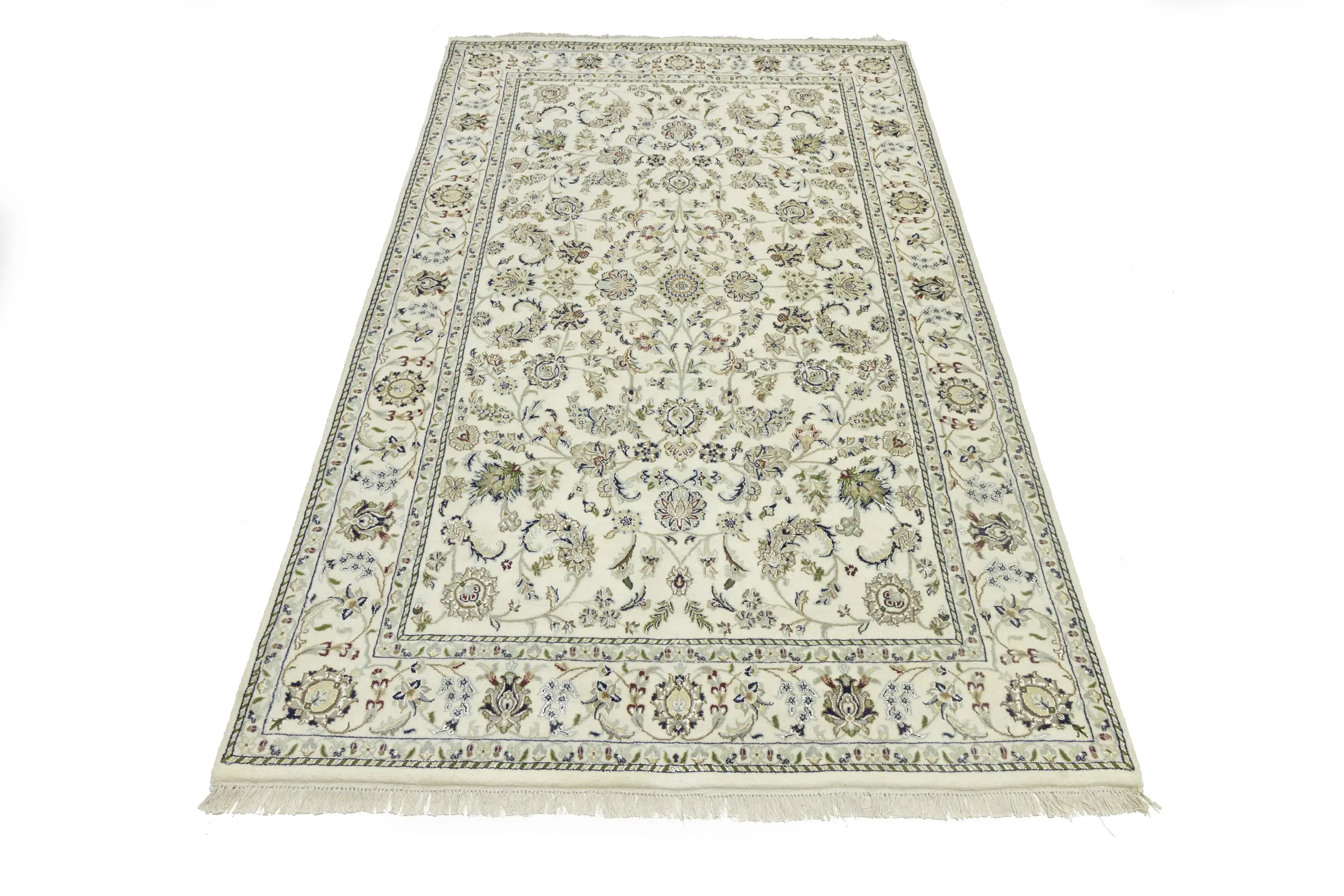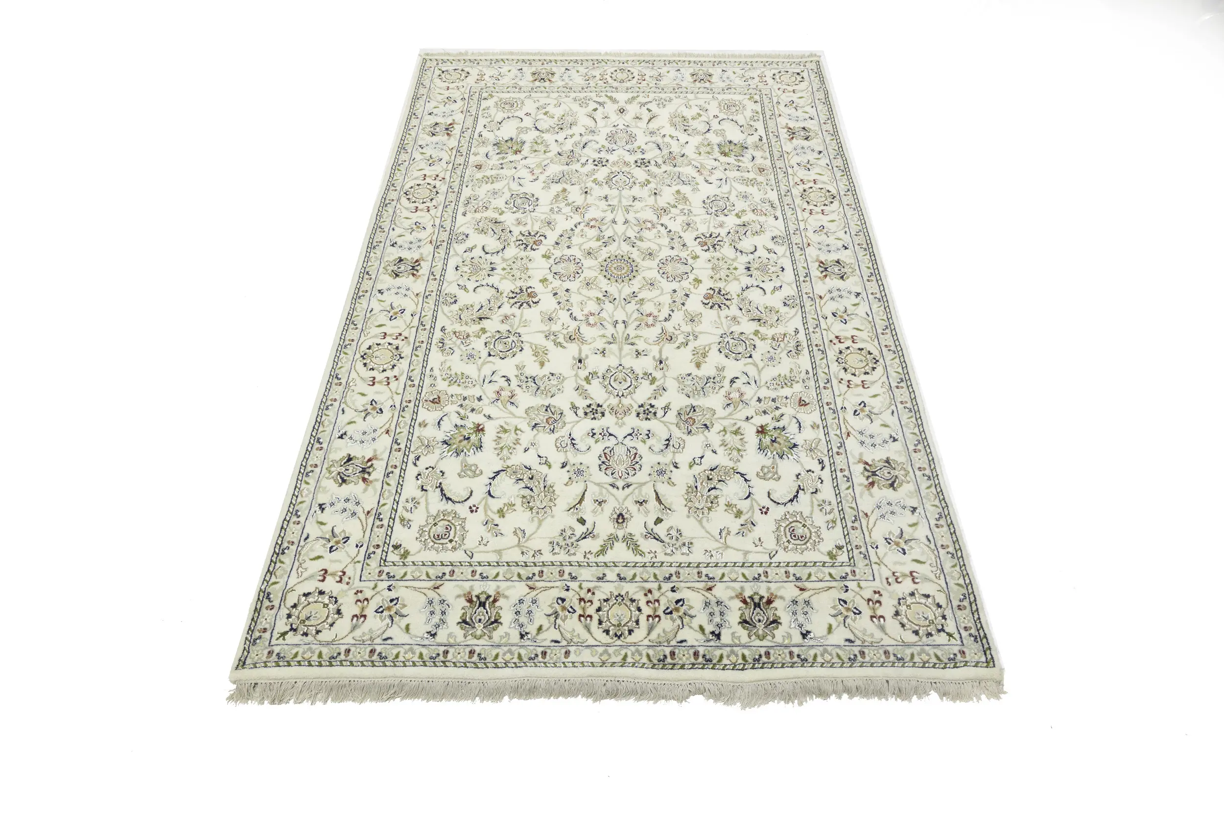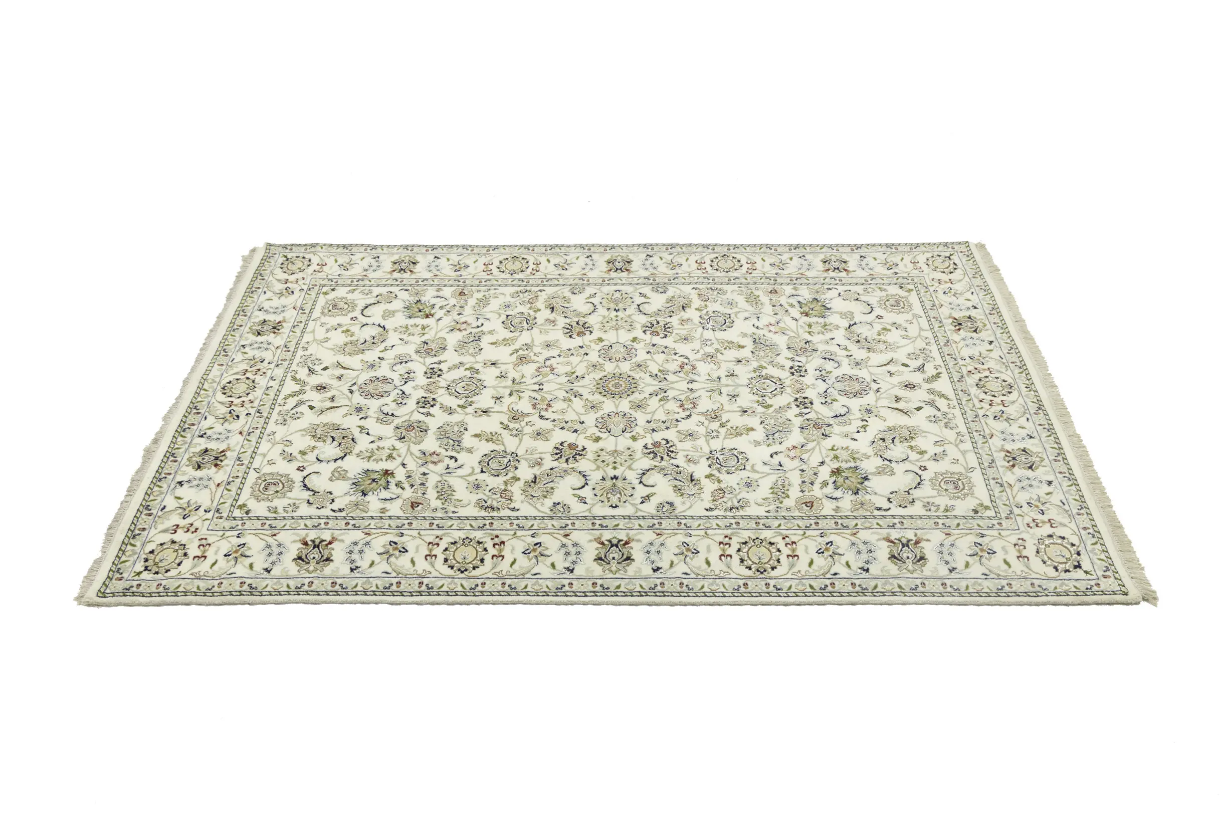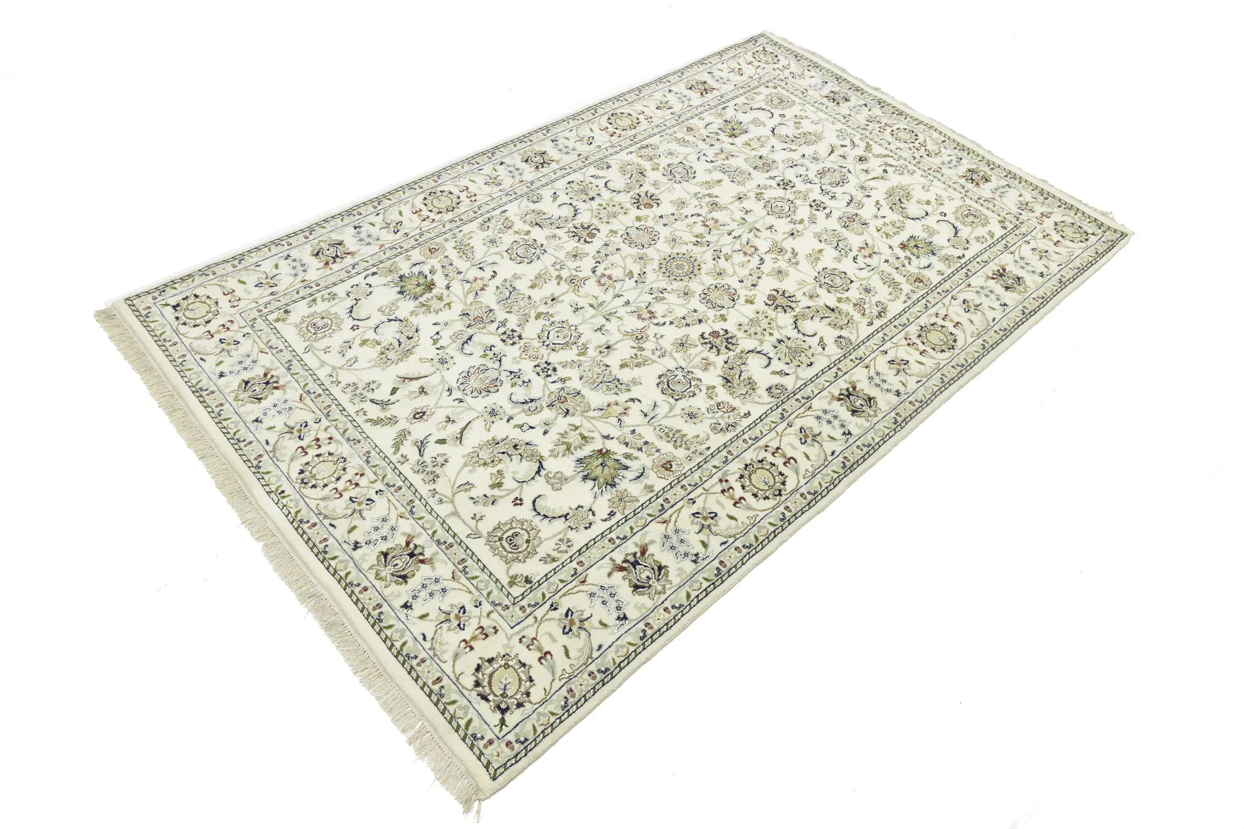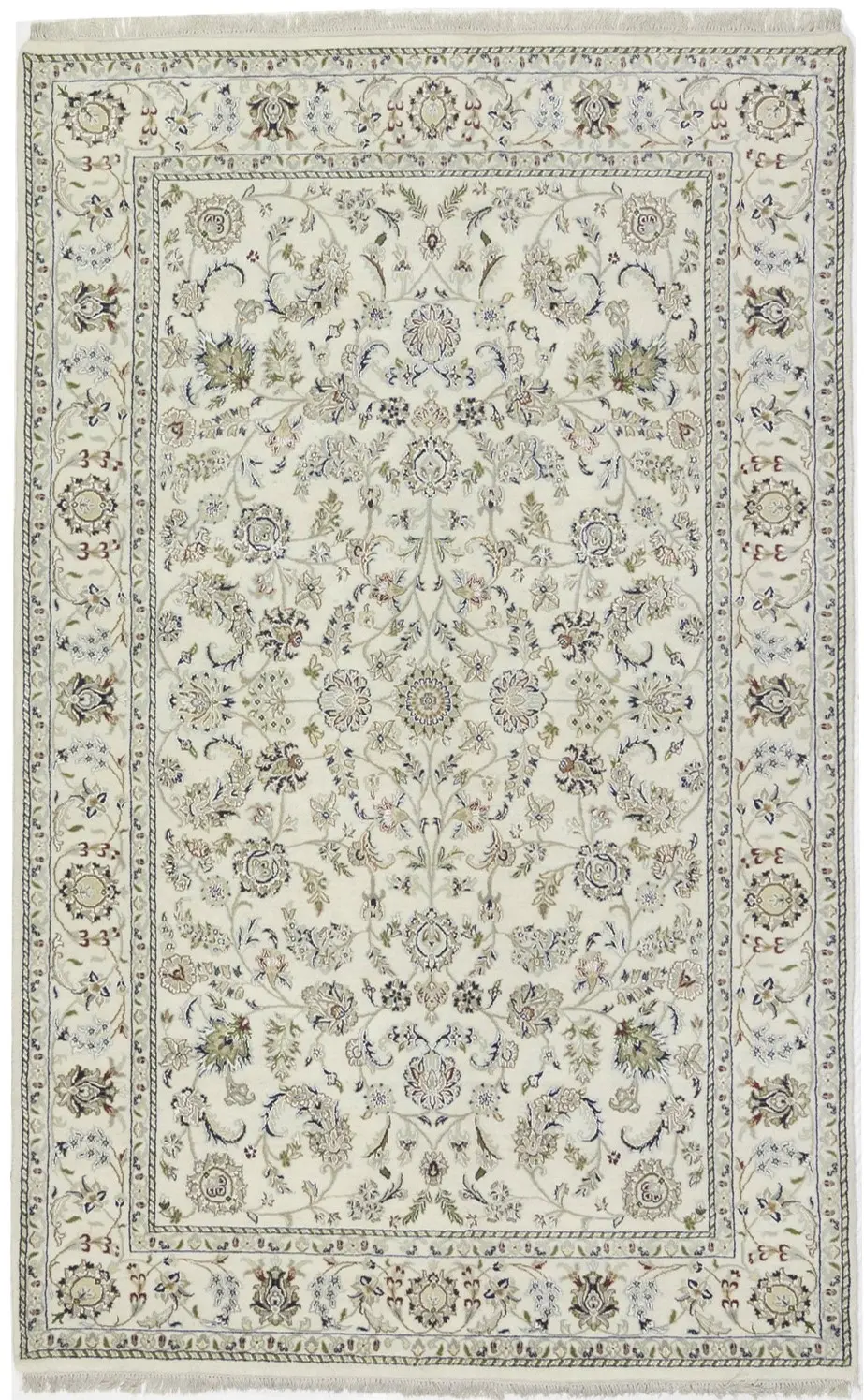 Cream Floral 6X9 Indo-Nain Oriental Rug