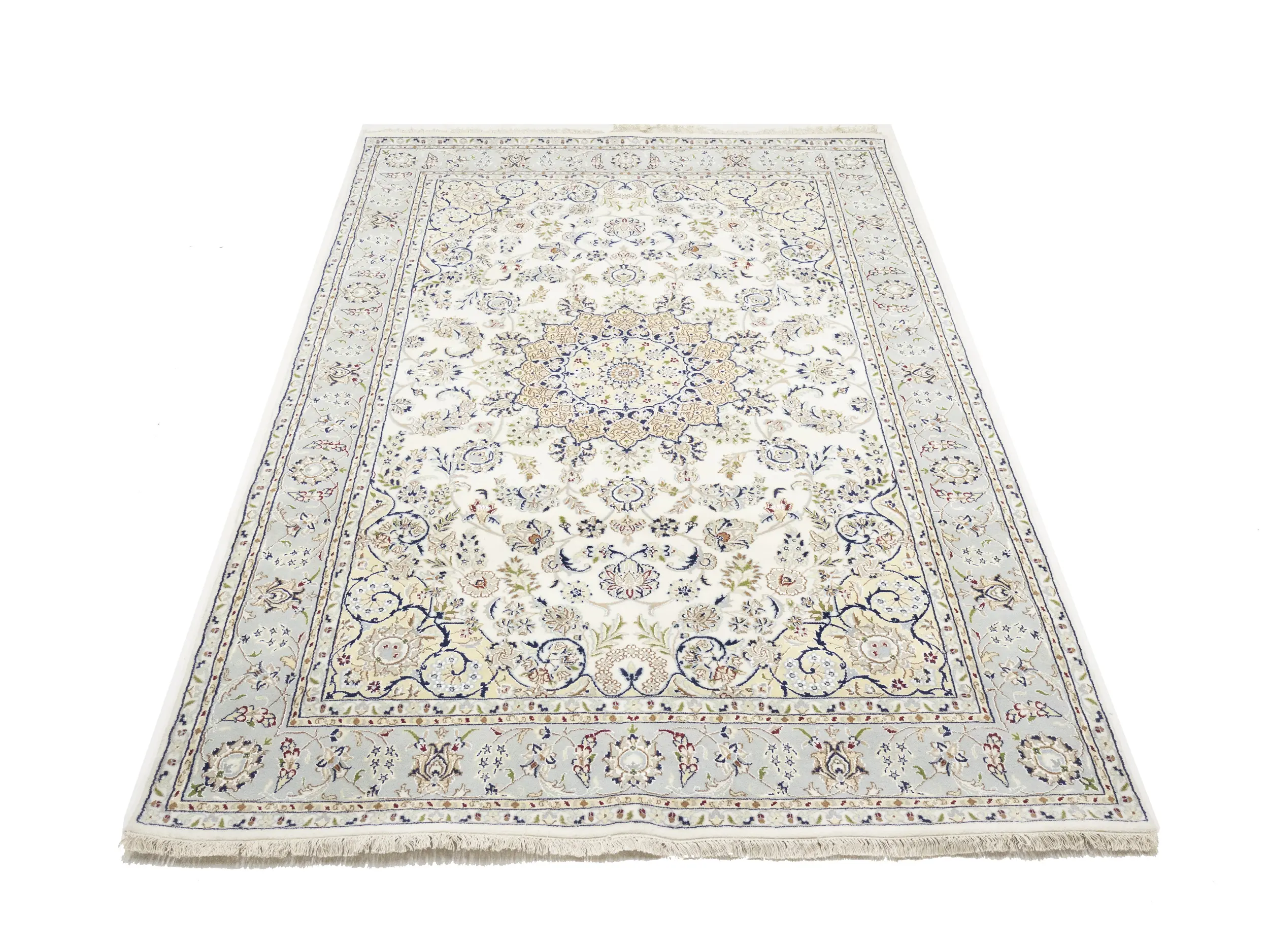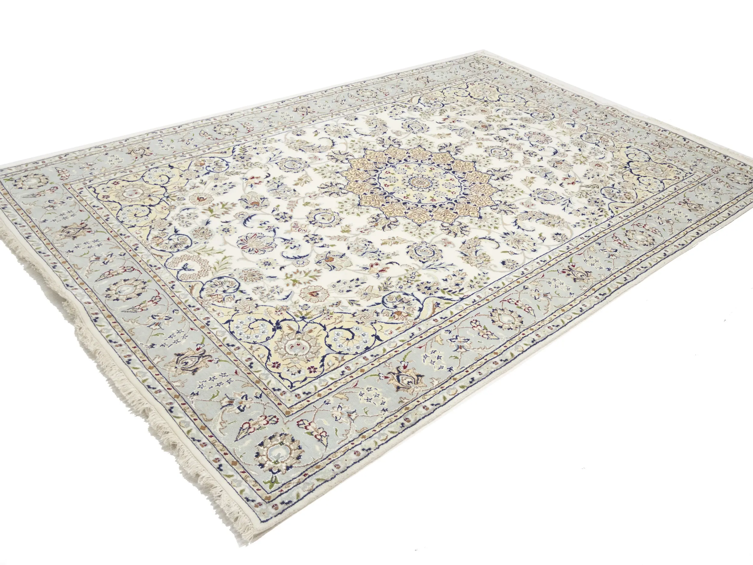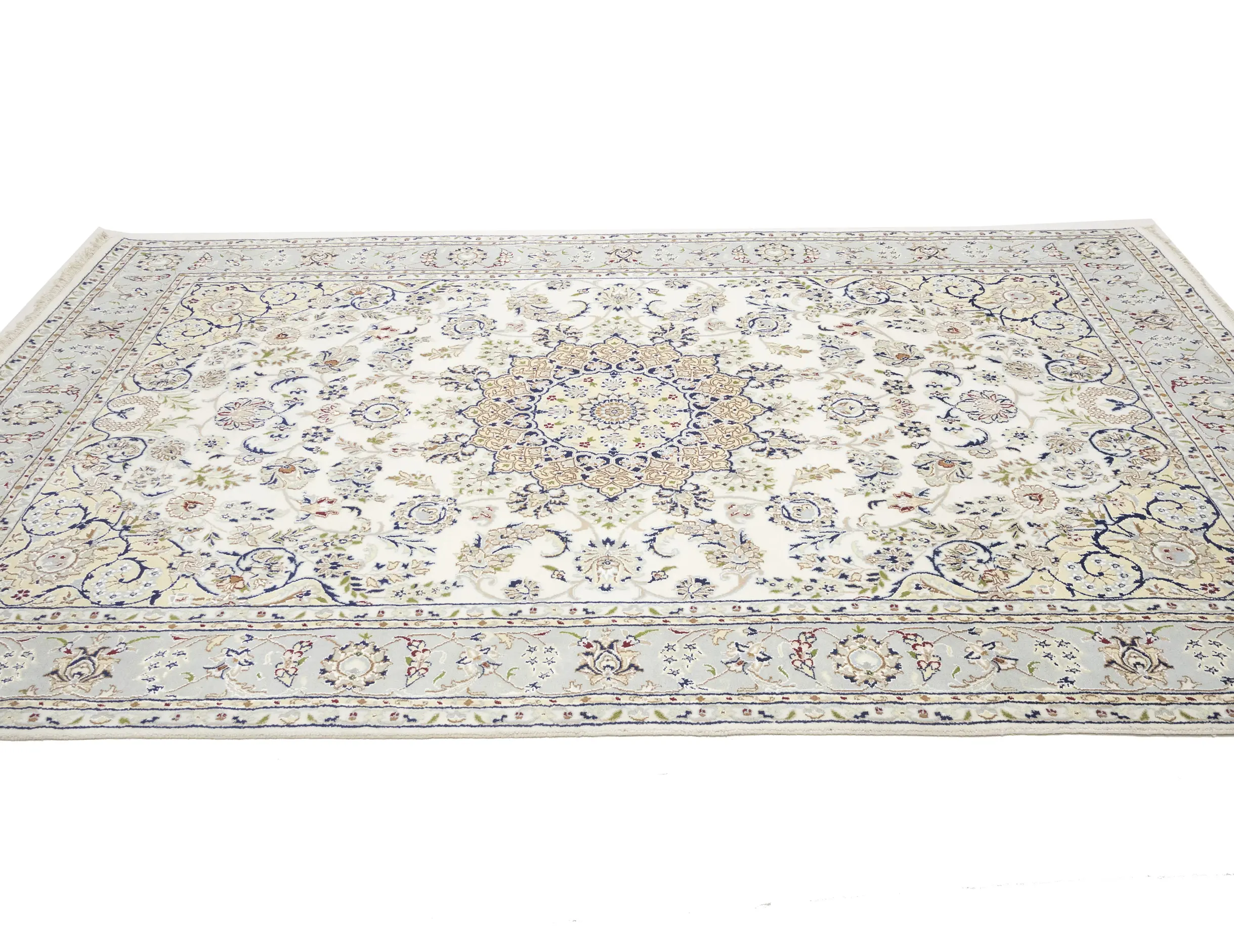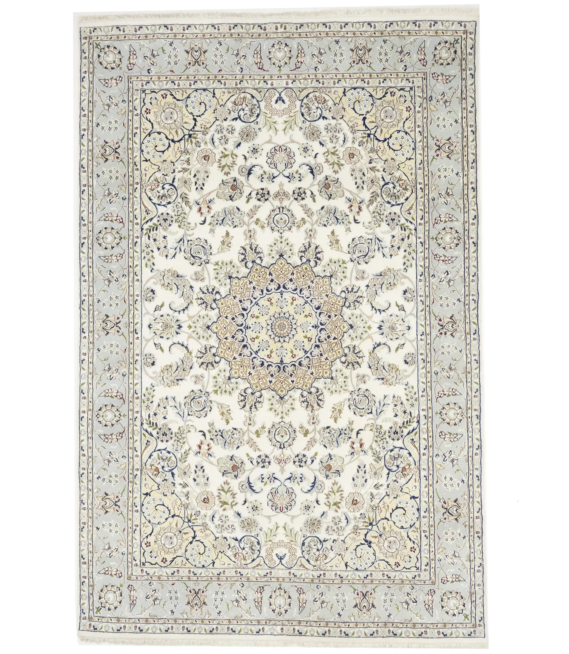 Cream Floral 7X10 Indo-Nain Oriental Rug