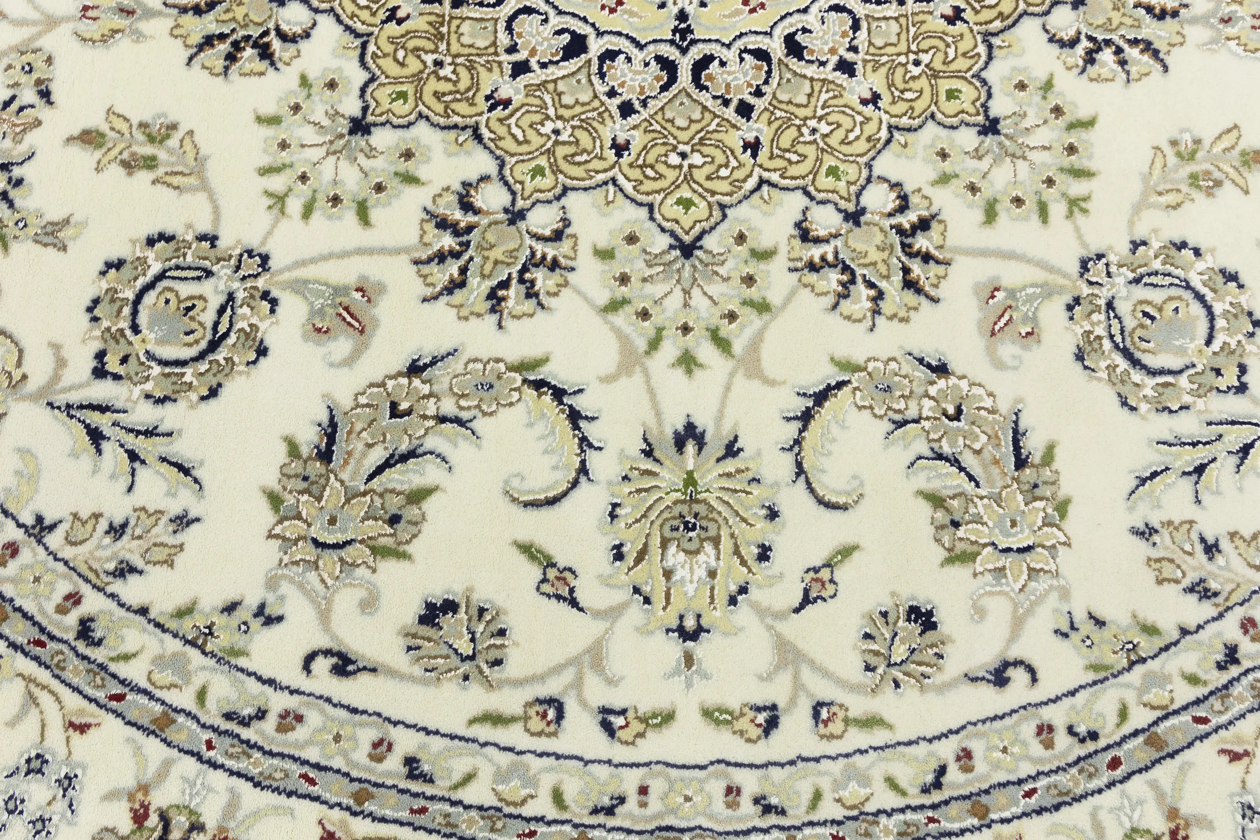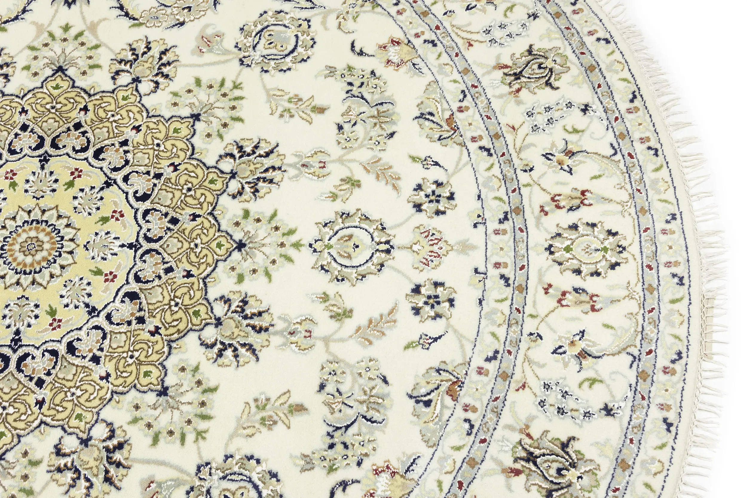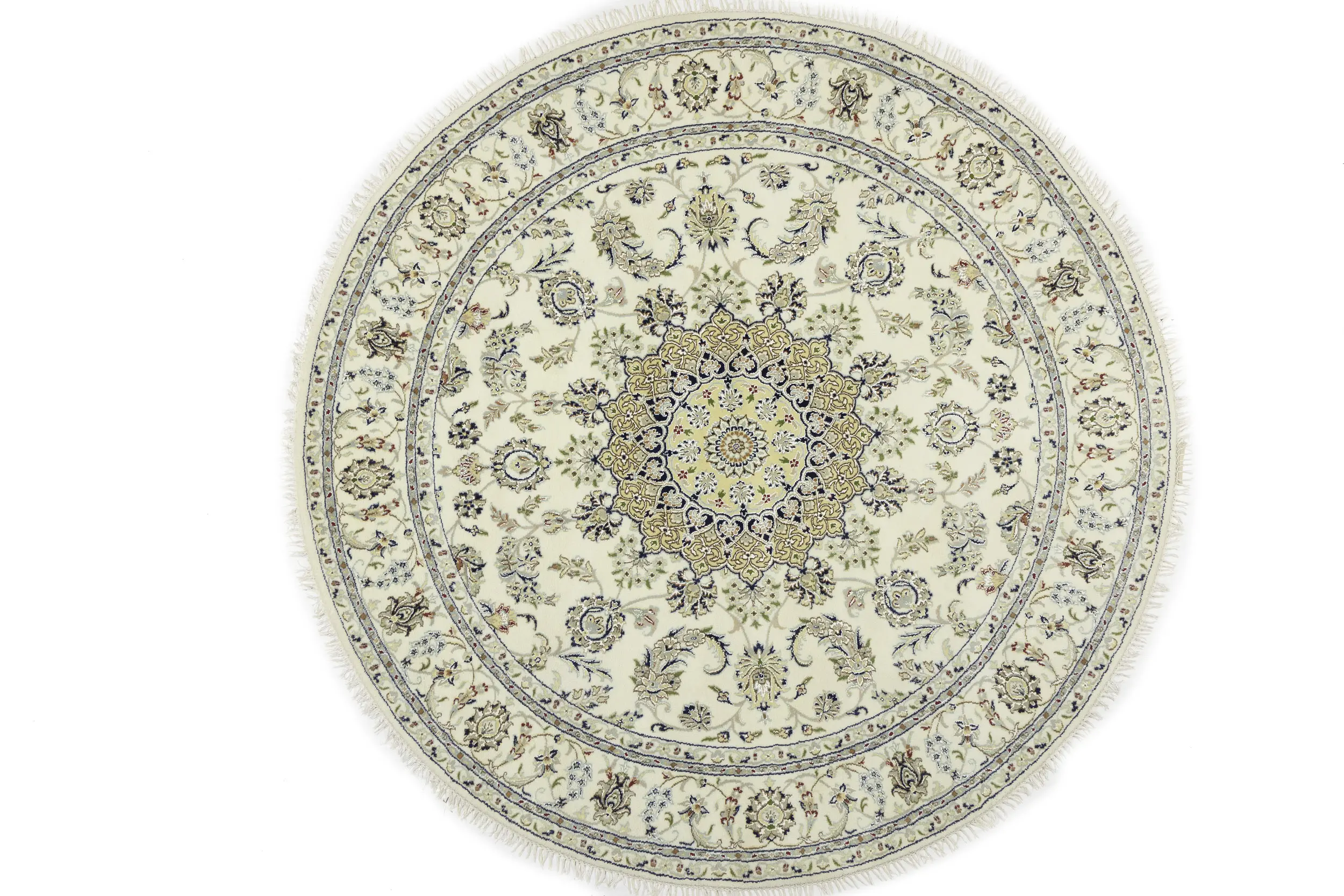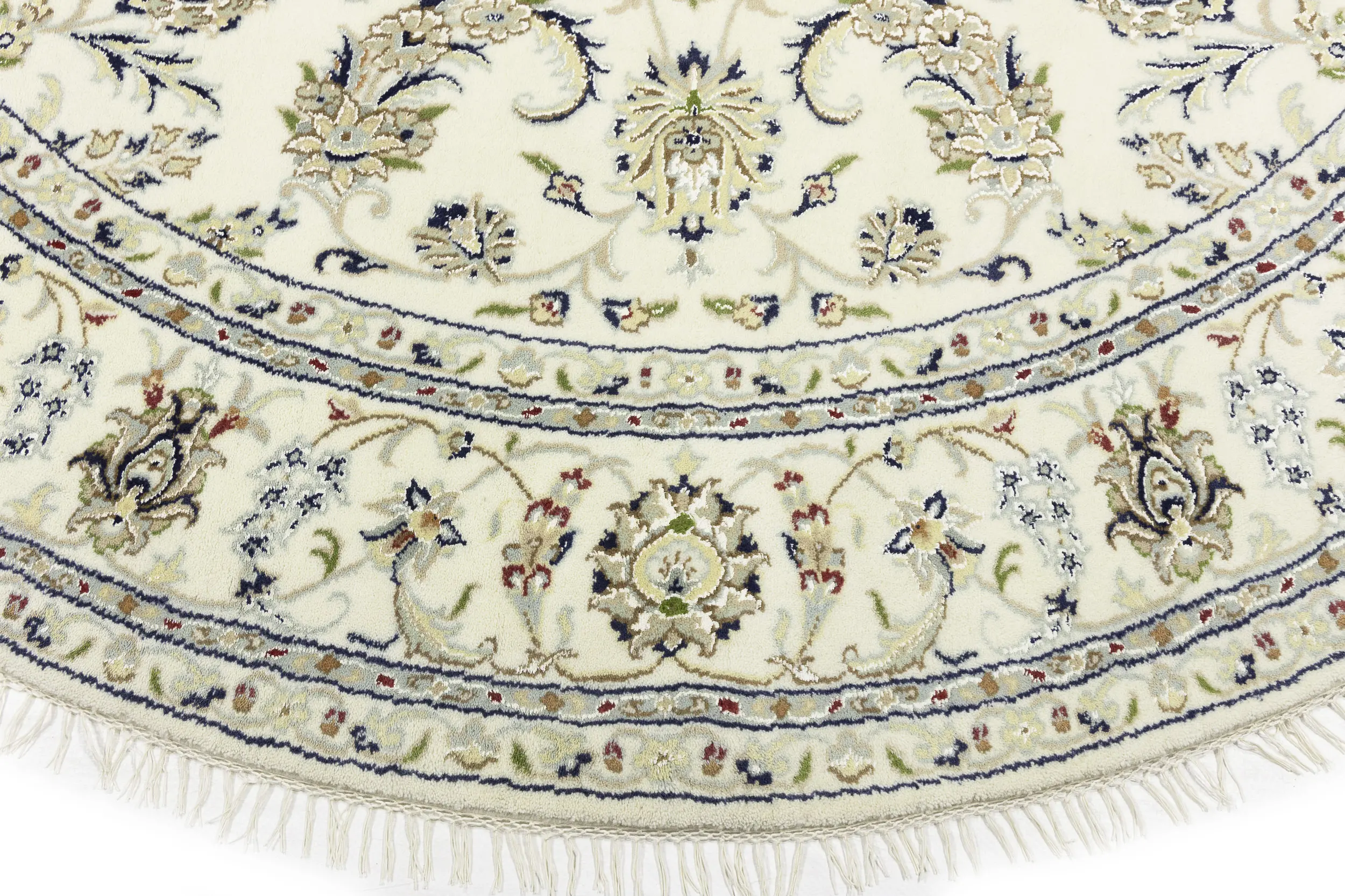 Cream Floral 7X7 Indo-Nain Oriental Round Rug