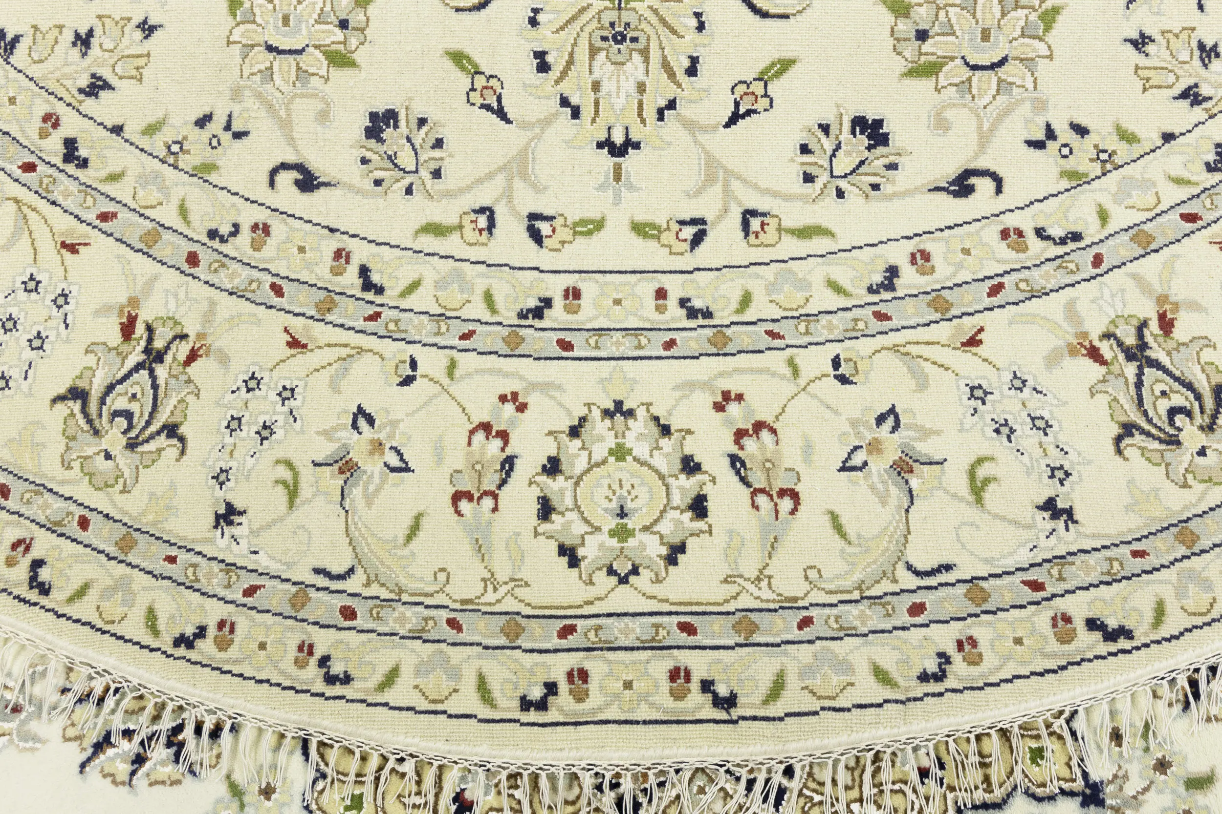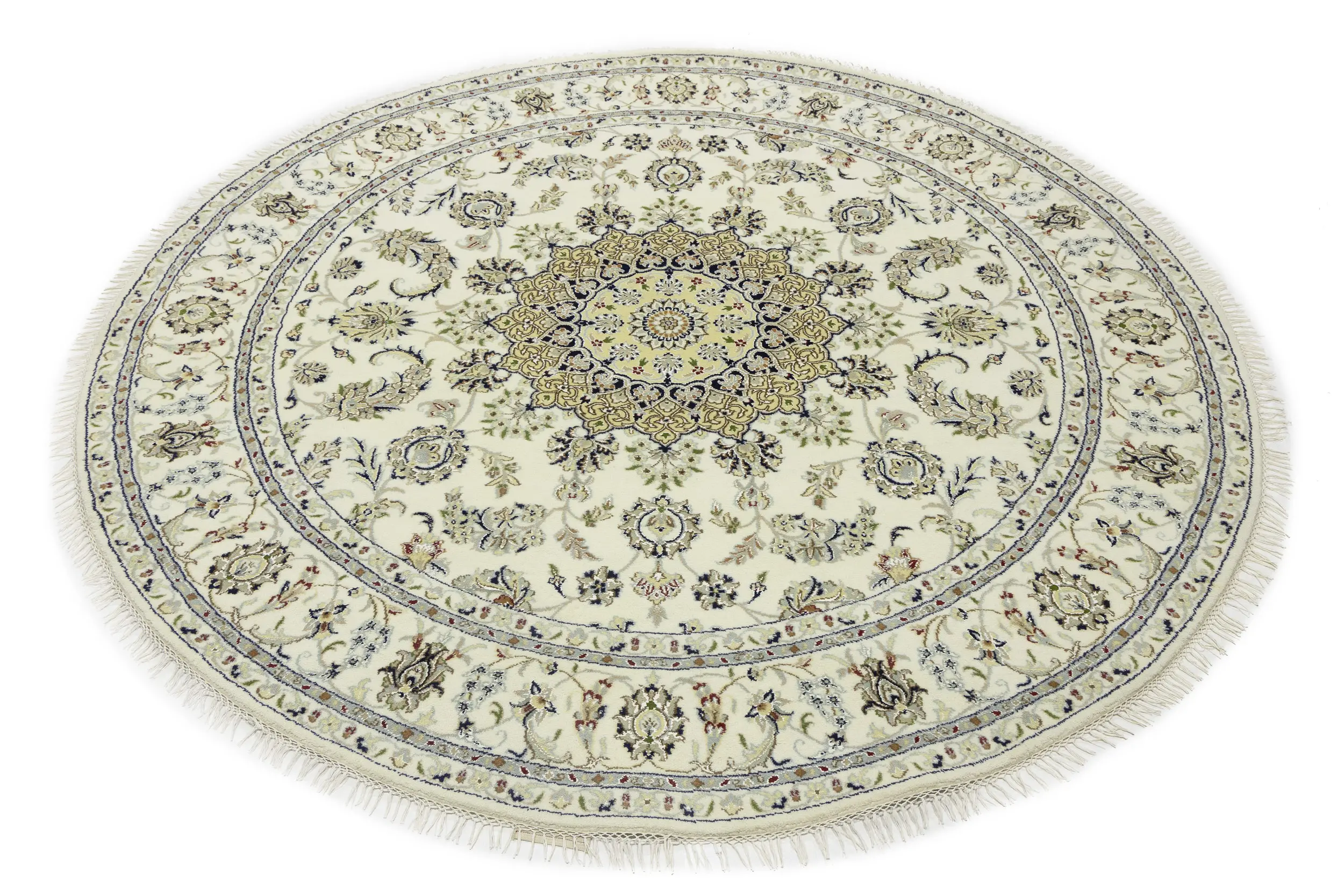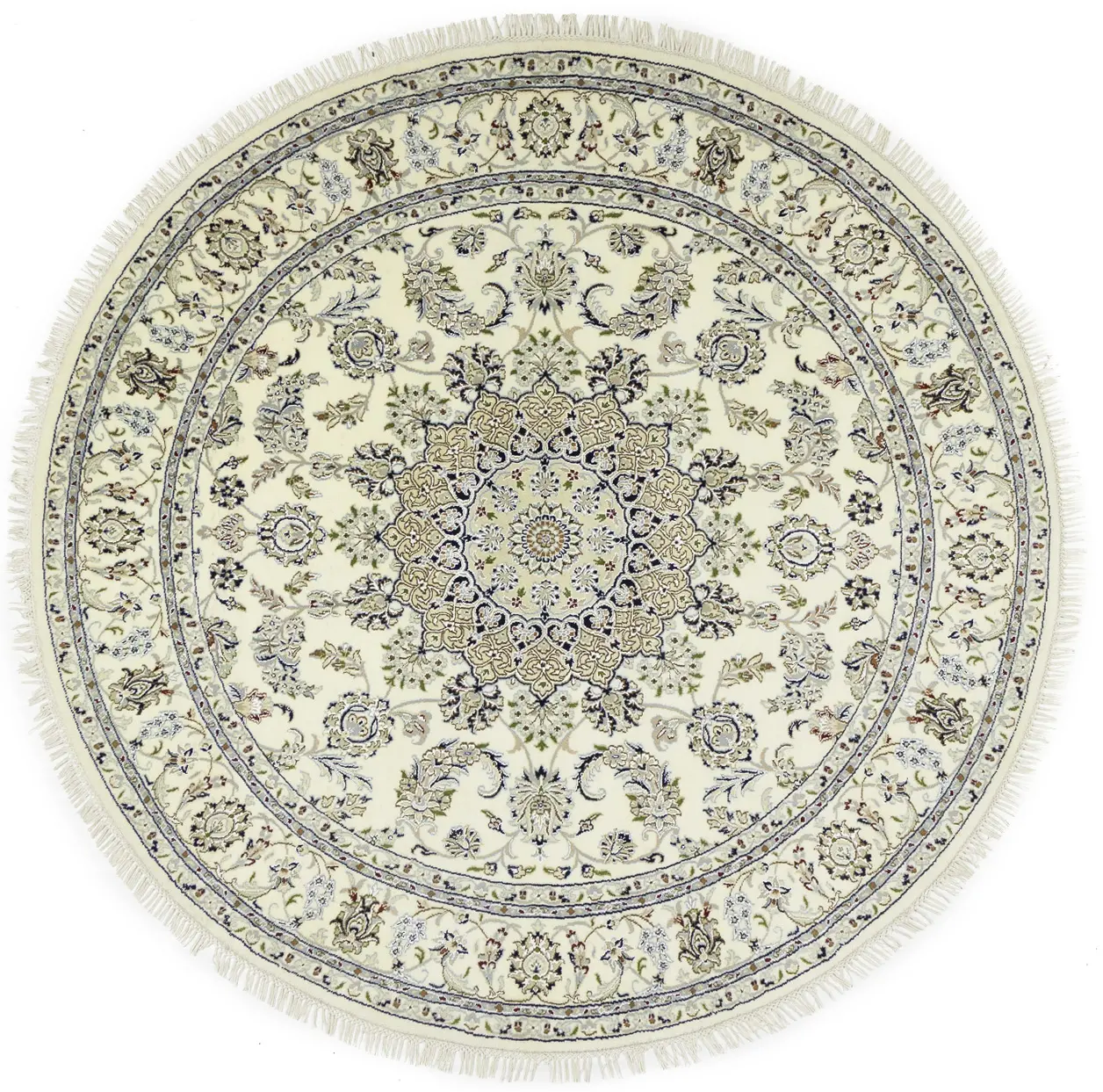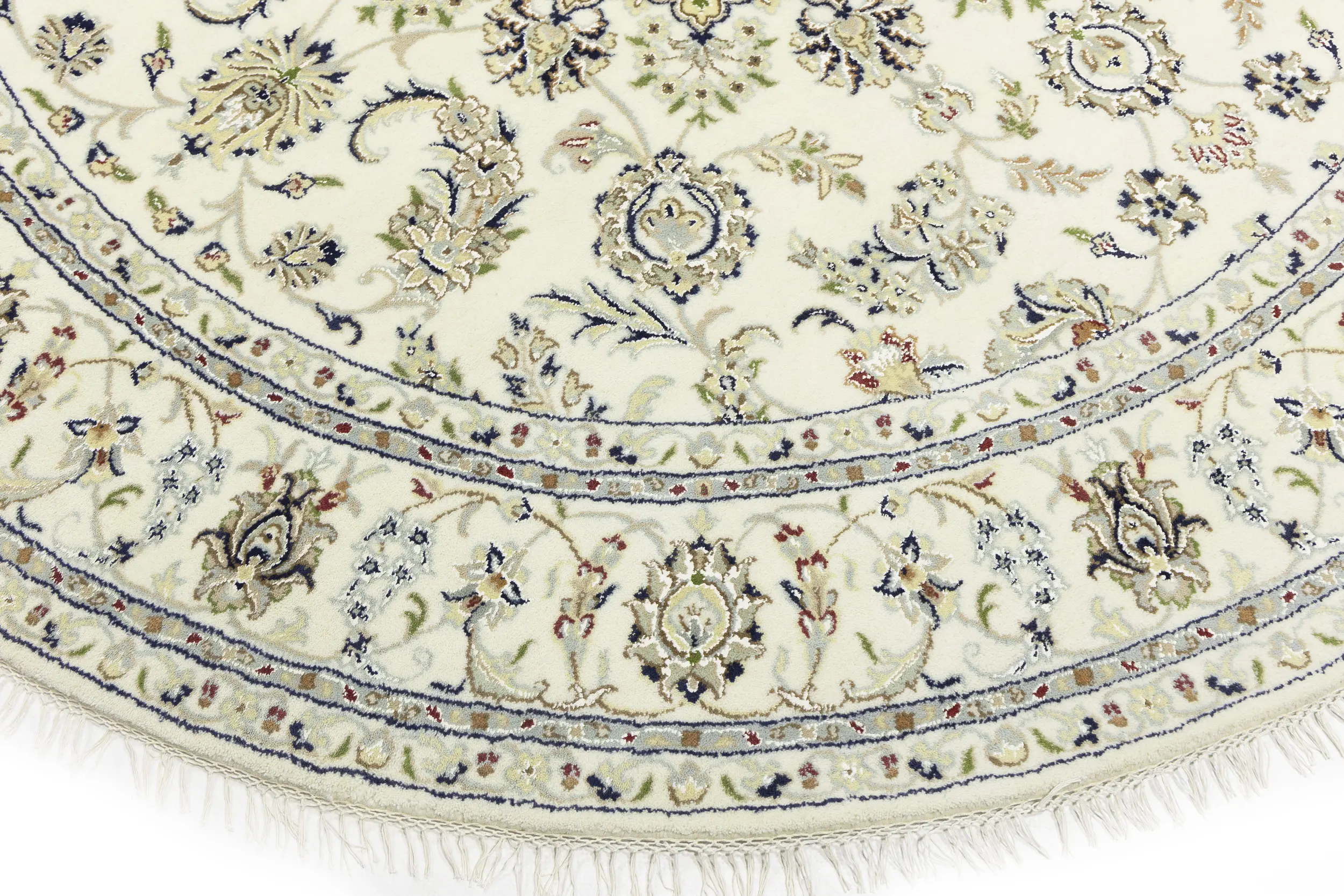 Cream Floral 7X7 Indo-Nain Oriental Round Rug