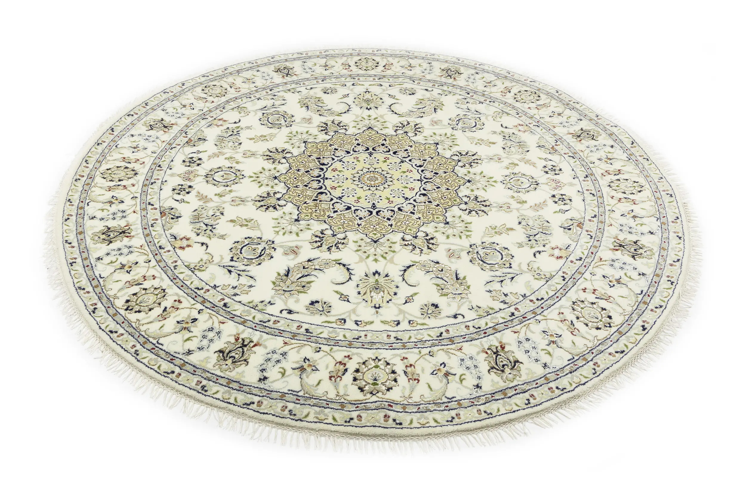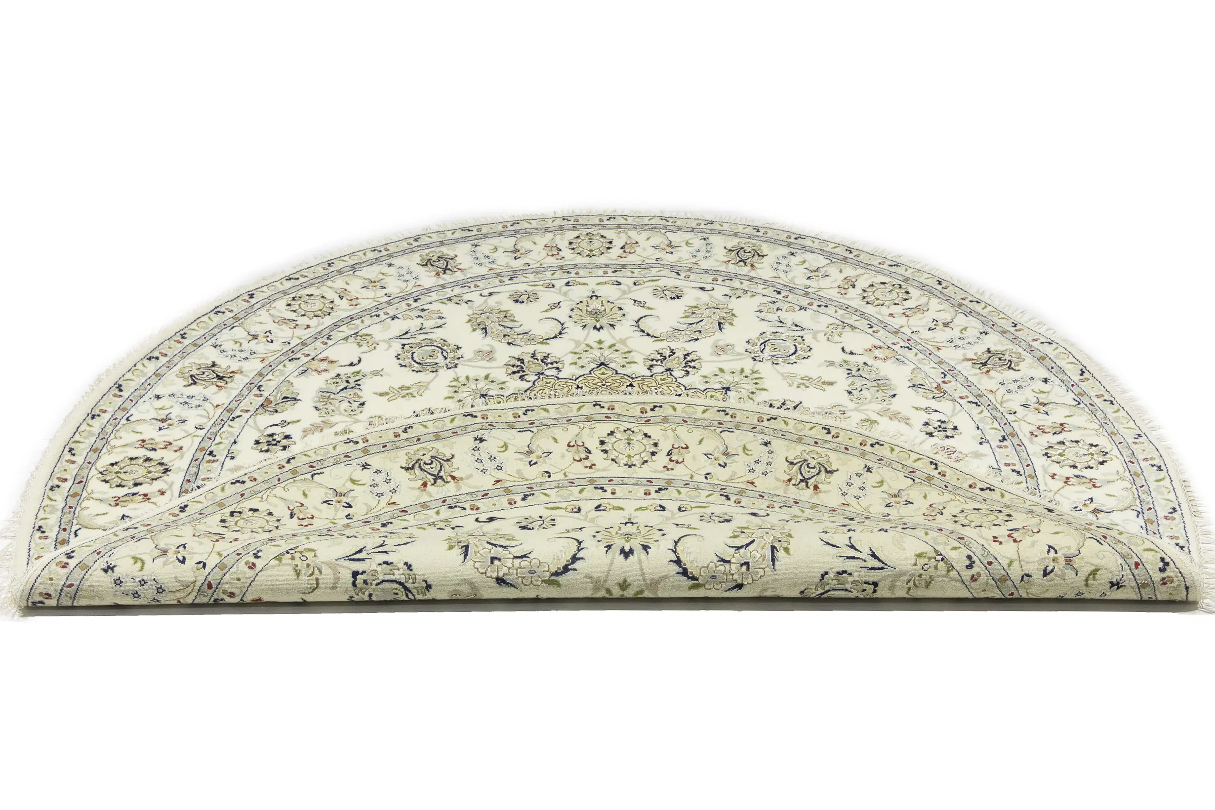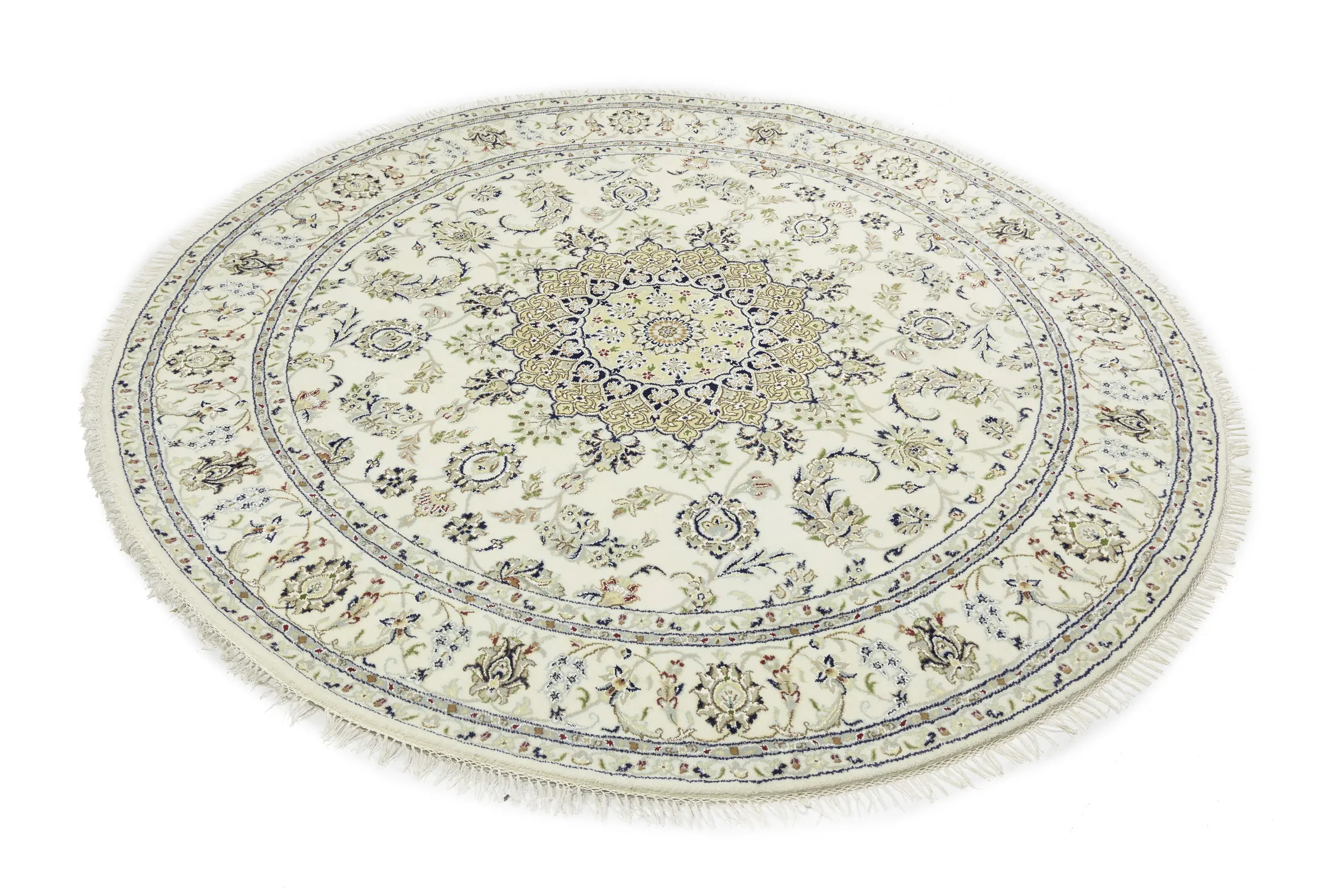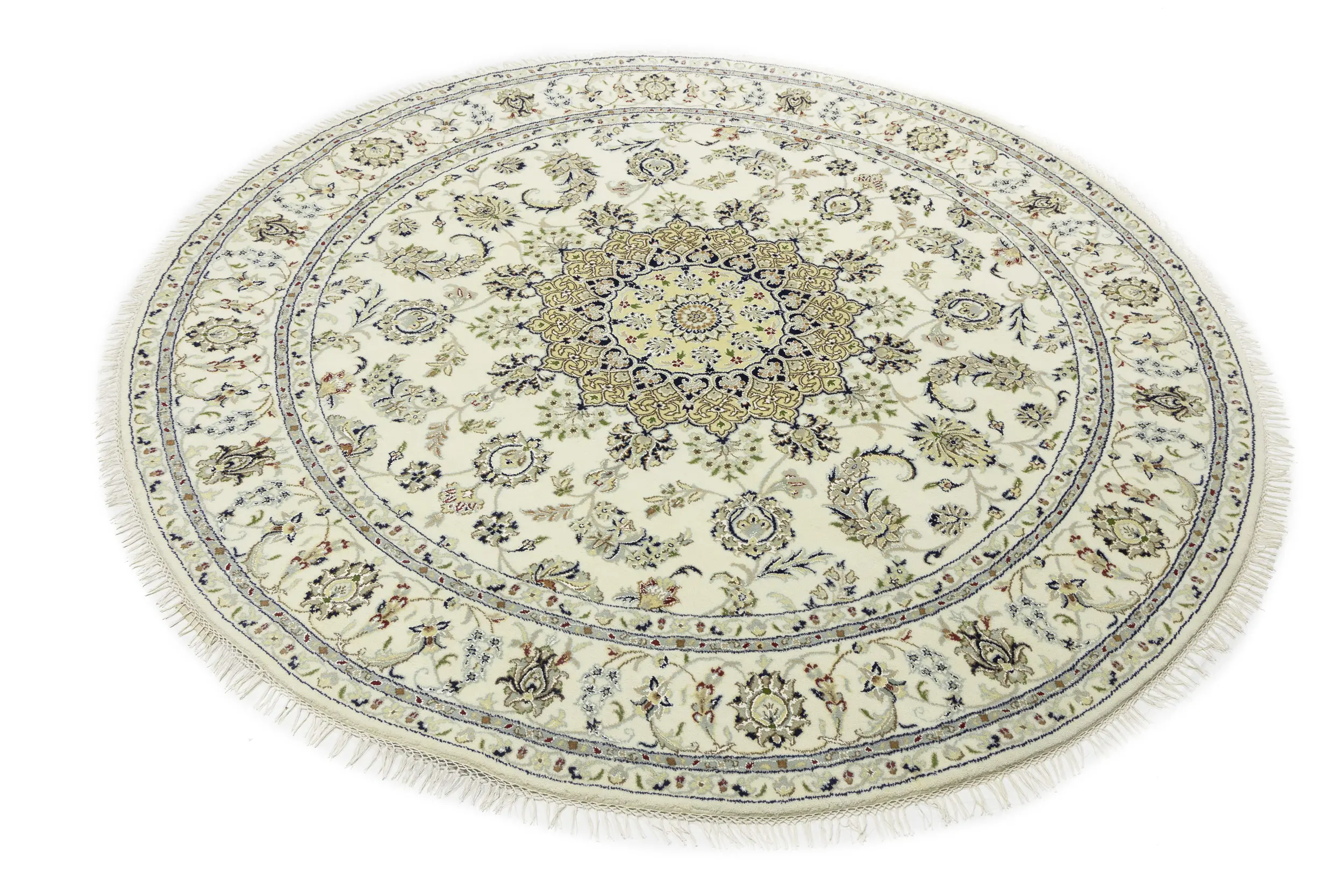 Cream Floral 7X7 Indo-Nain Oriental Round Rug