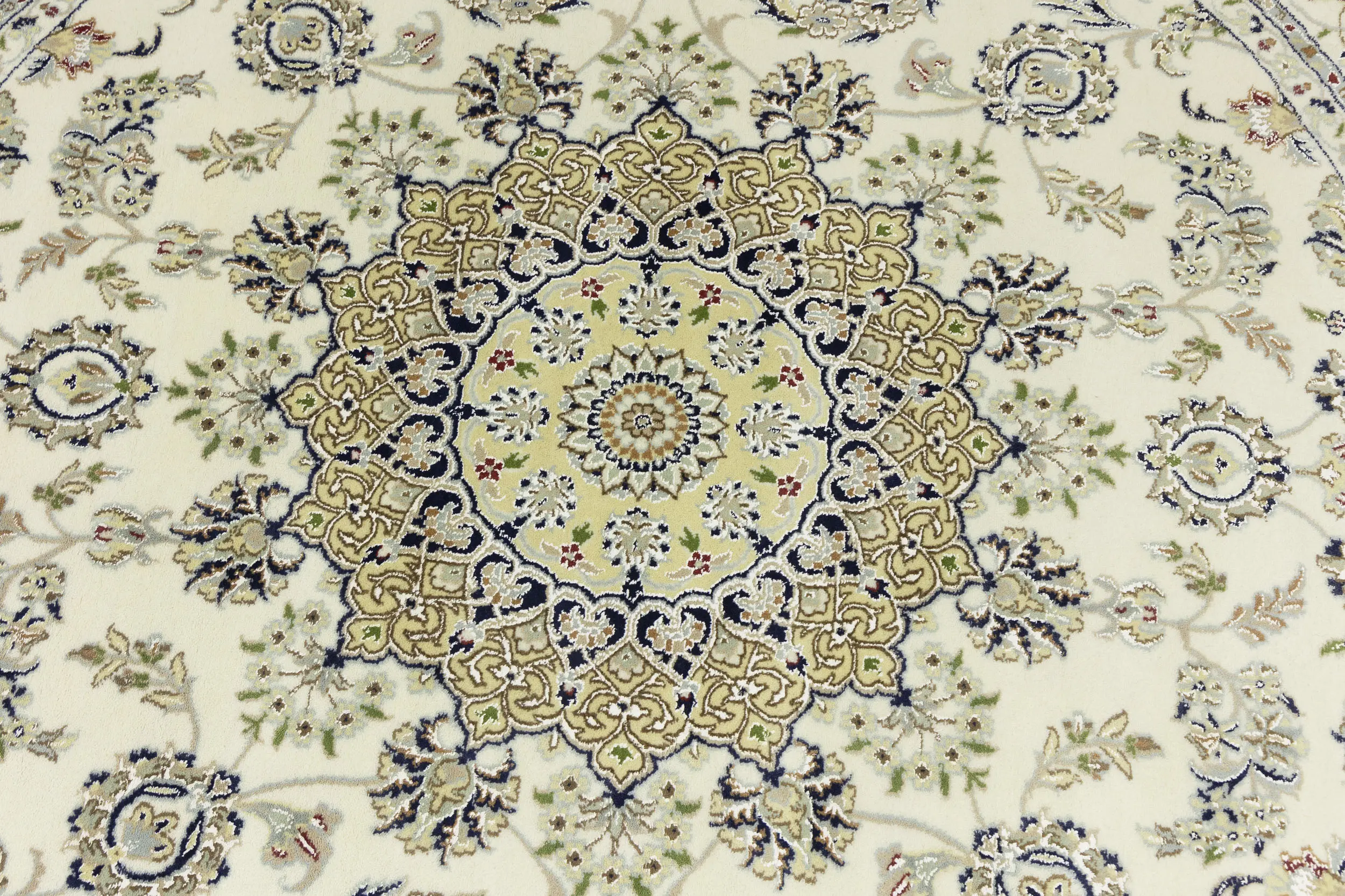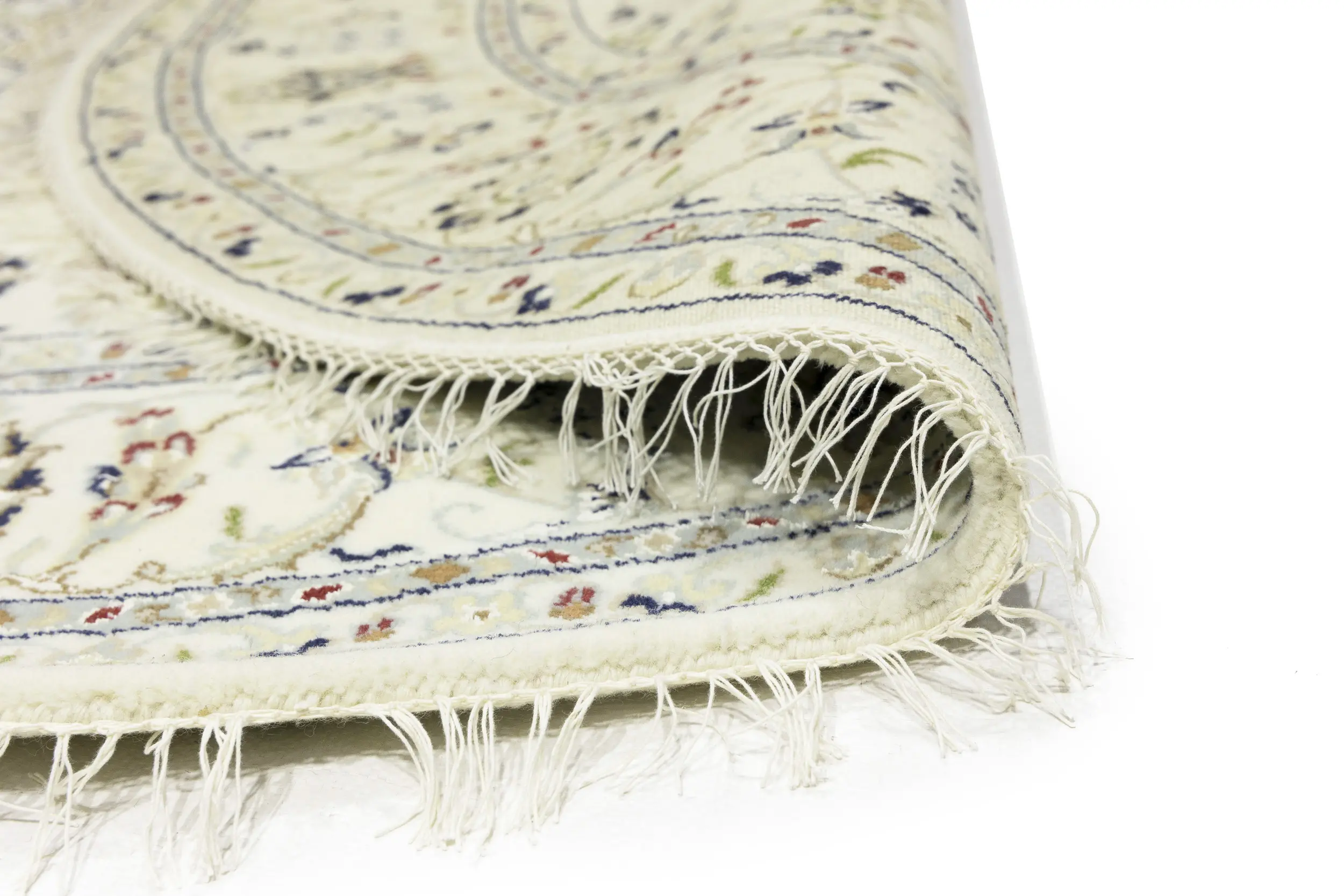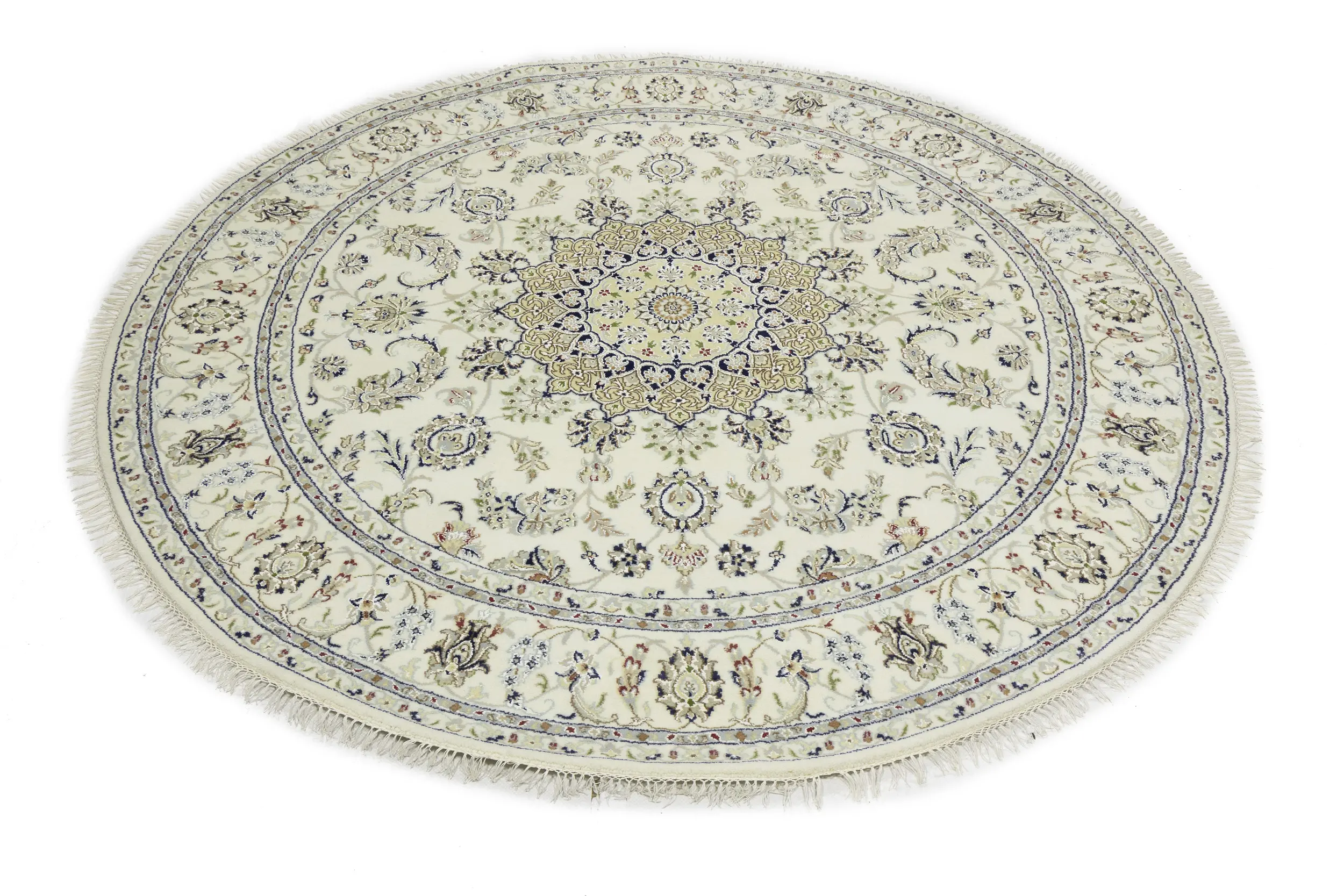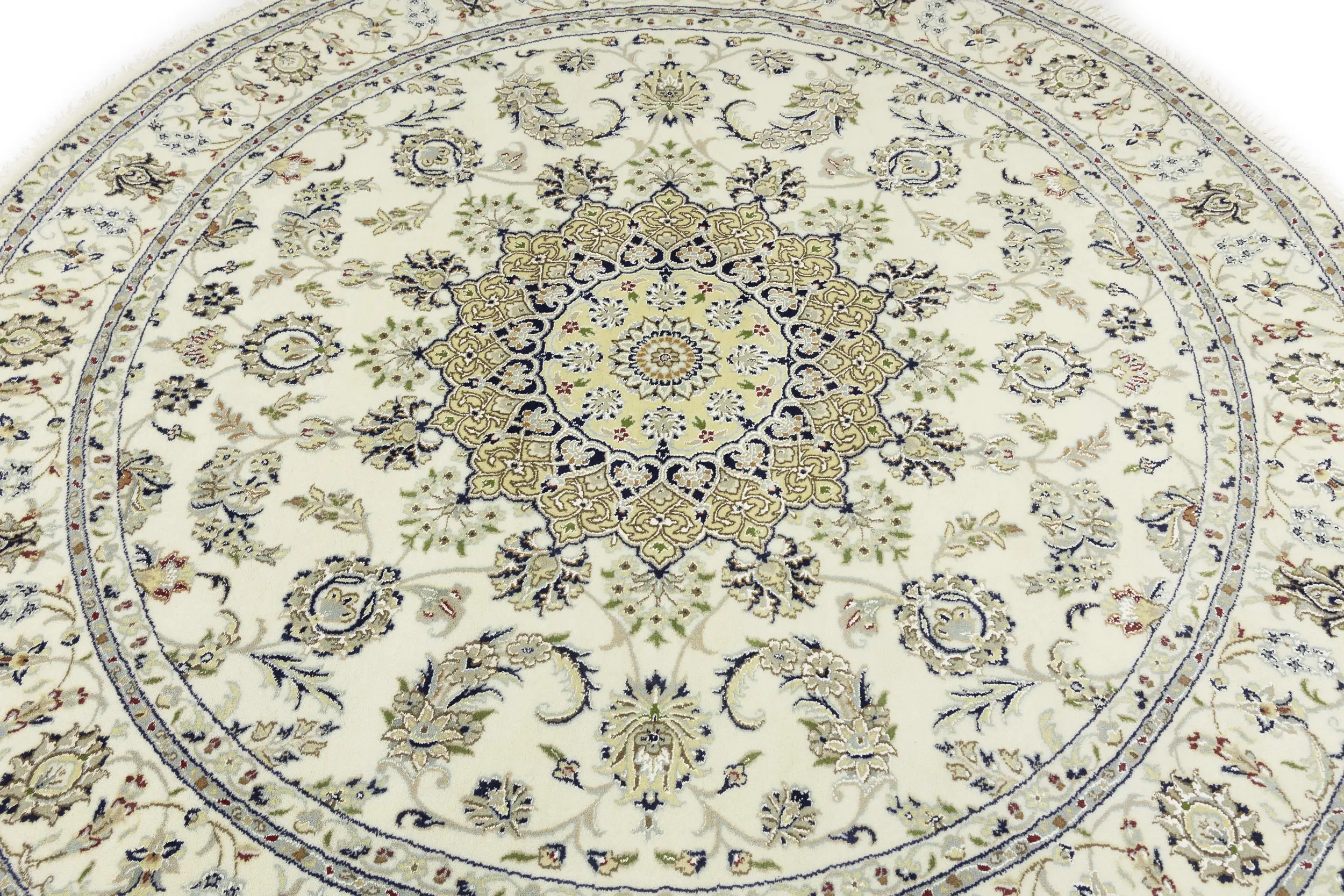 Cream Floral 7X7 Indo-Nain Oriental Round Rug
