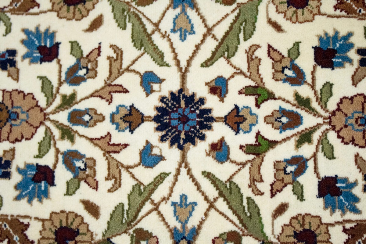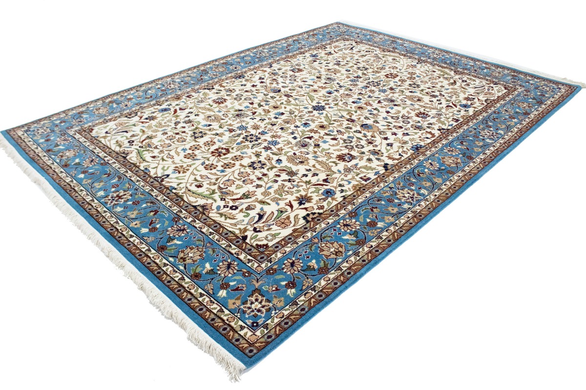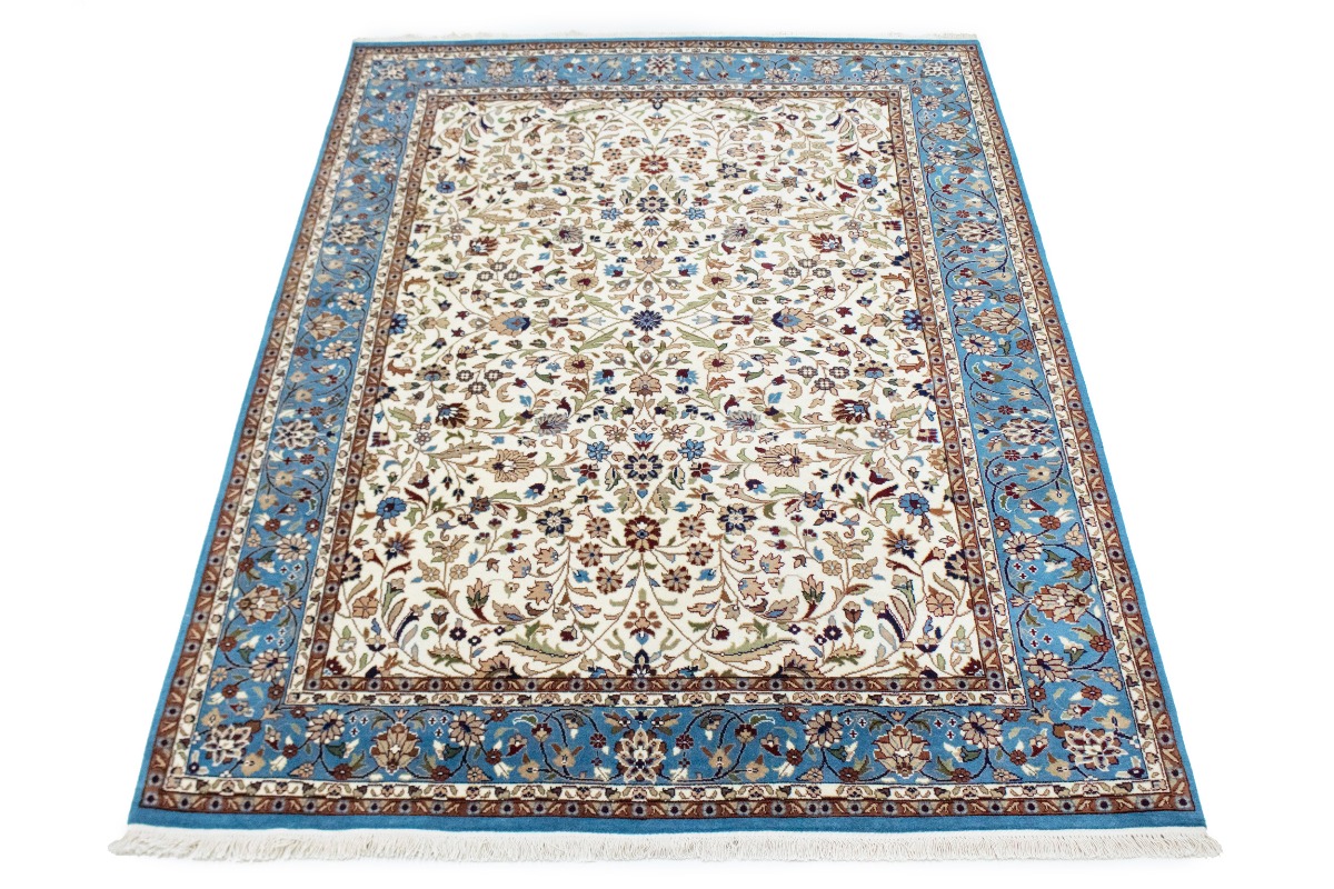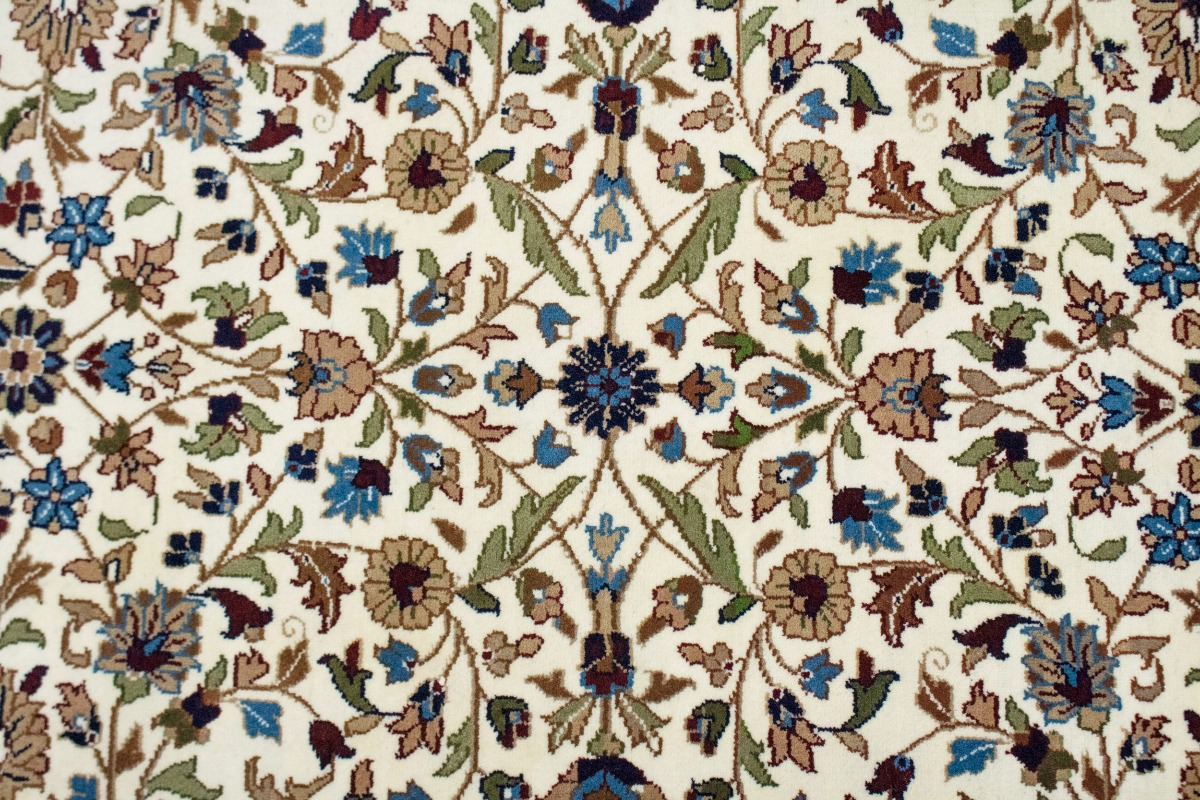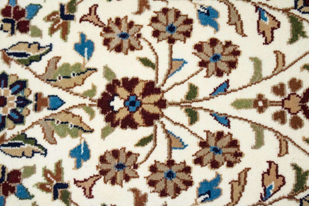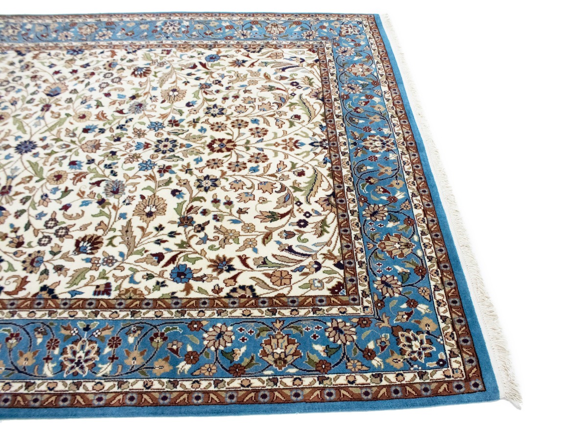 Hand Knotted 7X9 cream oriental rug made with natural dyes (fine wool pile and cotton foundation), superior knot count, and appealing ancient designs. This Oriental rug never will go out of style and would be among your most valuable treasures.