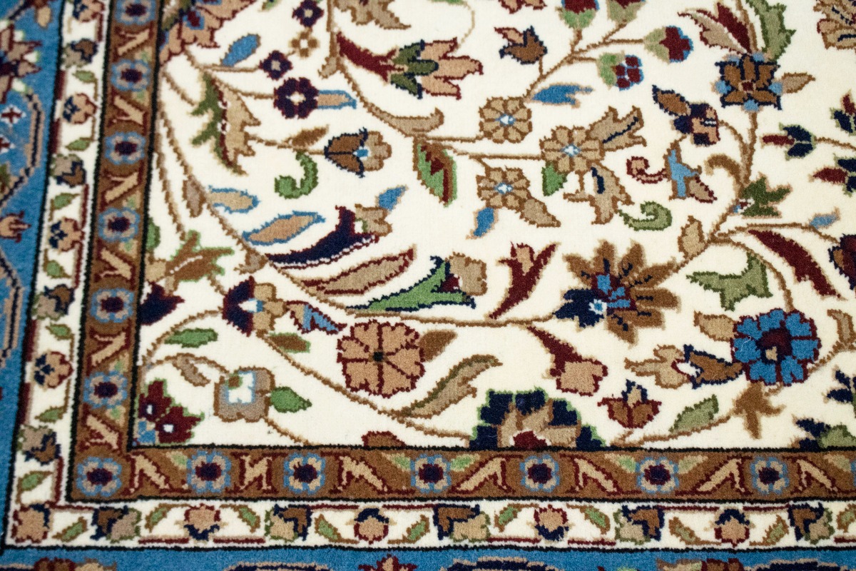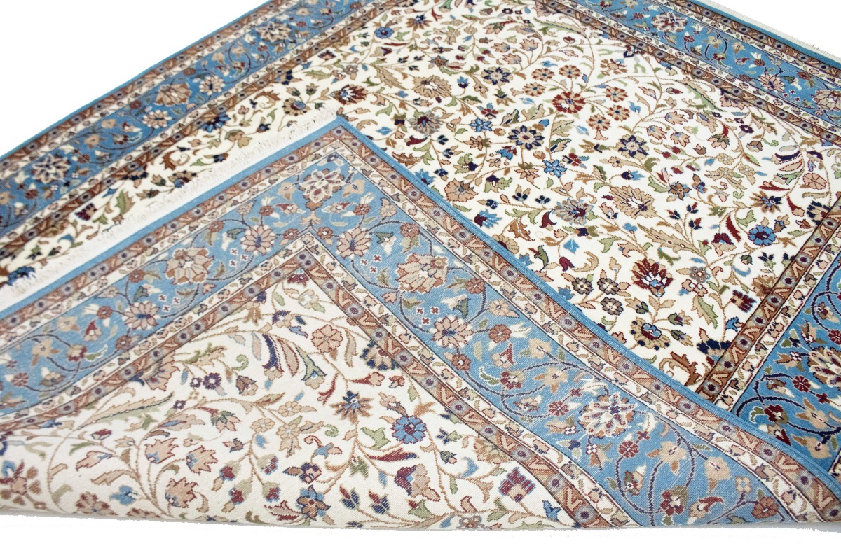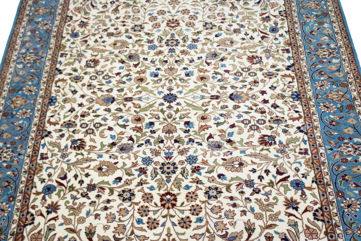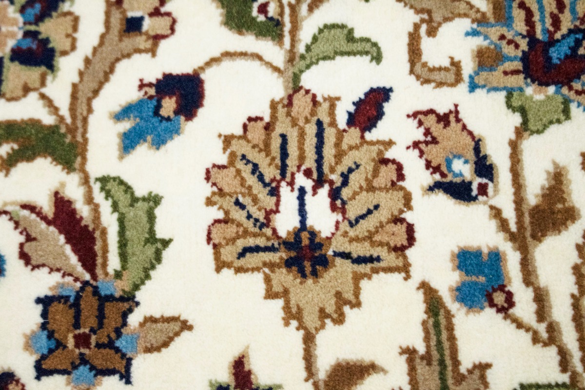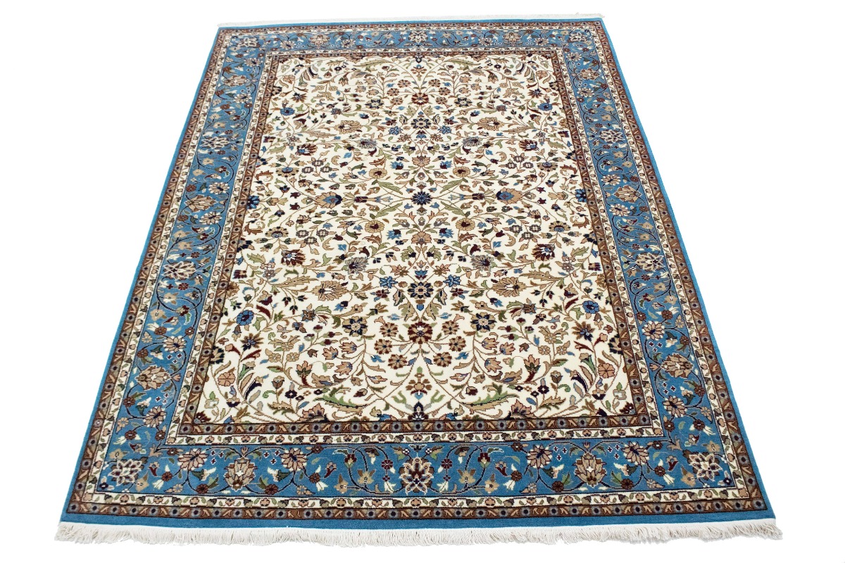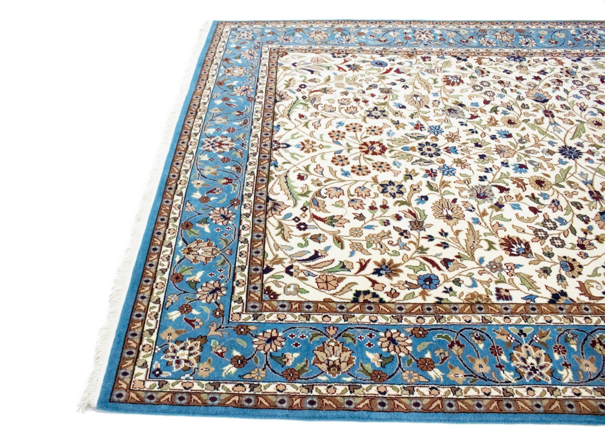 Hand Knotted 7X9 cream oriental rug made with natural dyes (fine wool pile and cotton foundation), superior knot count, and appealing ancient designs. This Oriental rug never will go out of style and would be among your most valuable treasures.