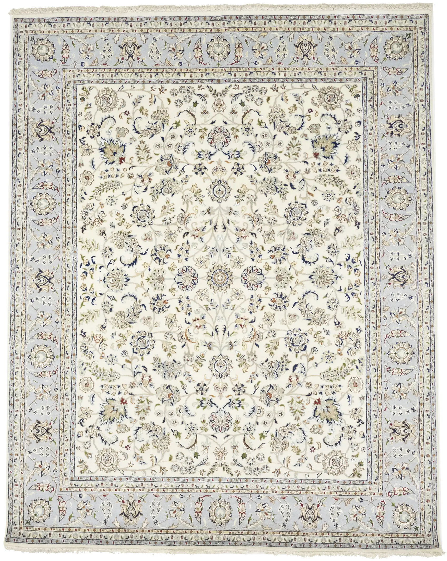 Cream Floral 8X10 Indo-Nain Oriental Rug