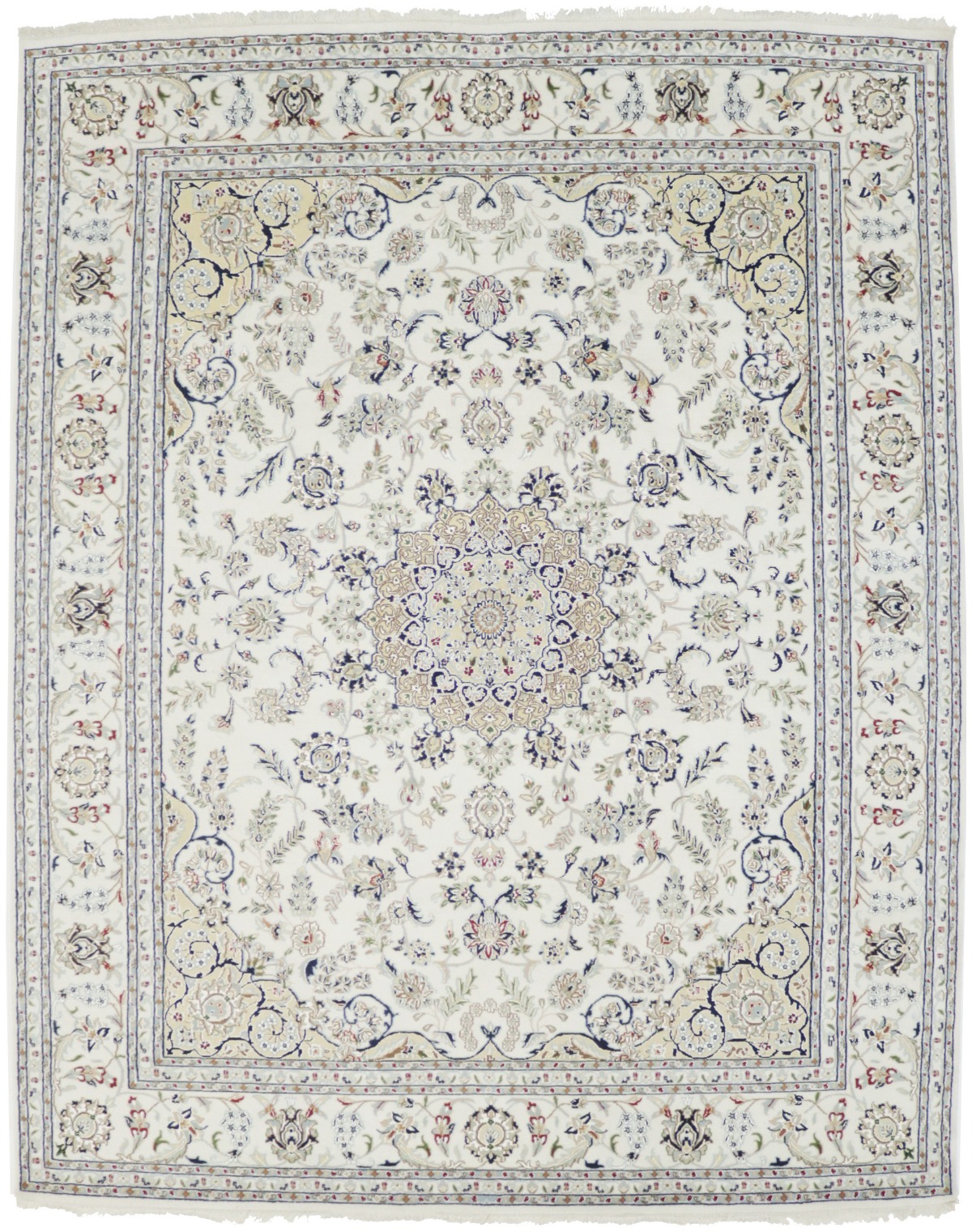 Cream Floral 8X10 Indo-Nain Oriental Rug