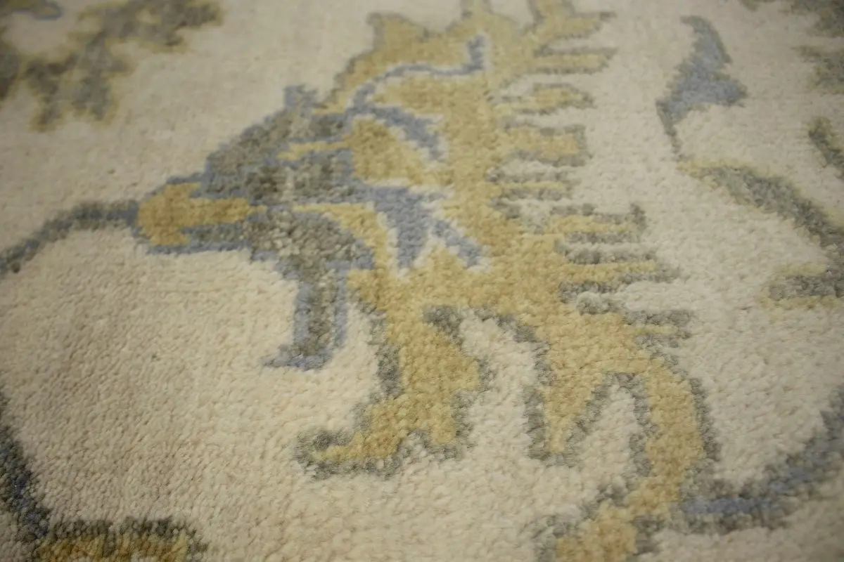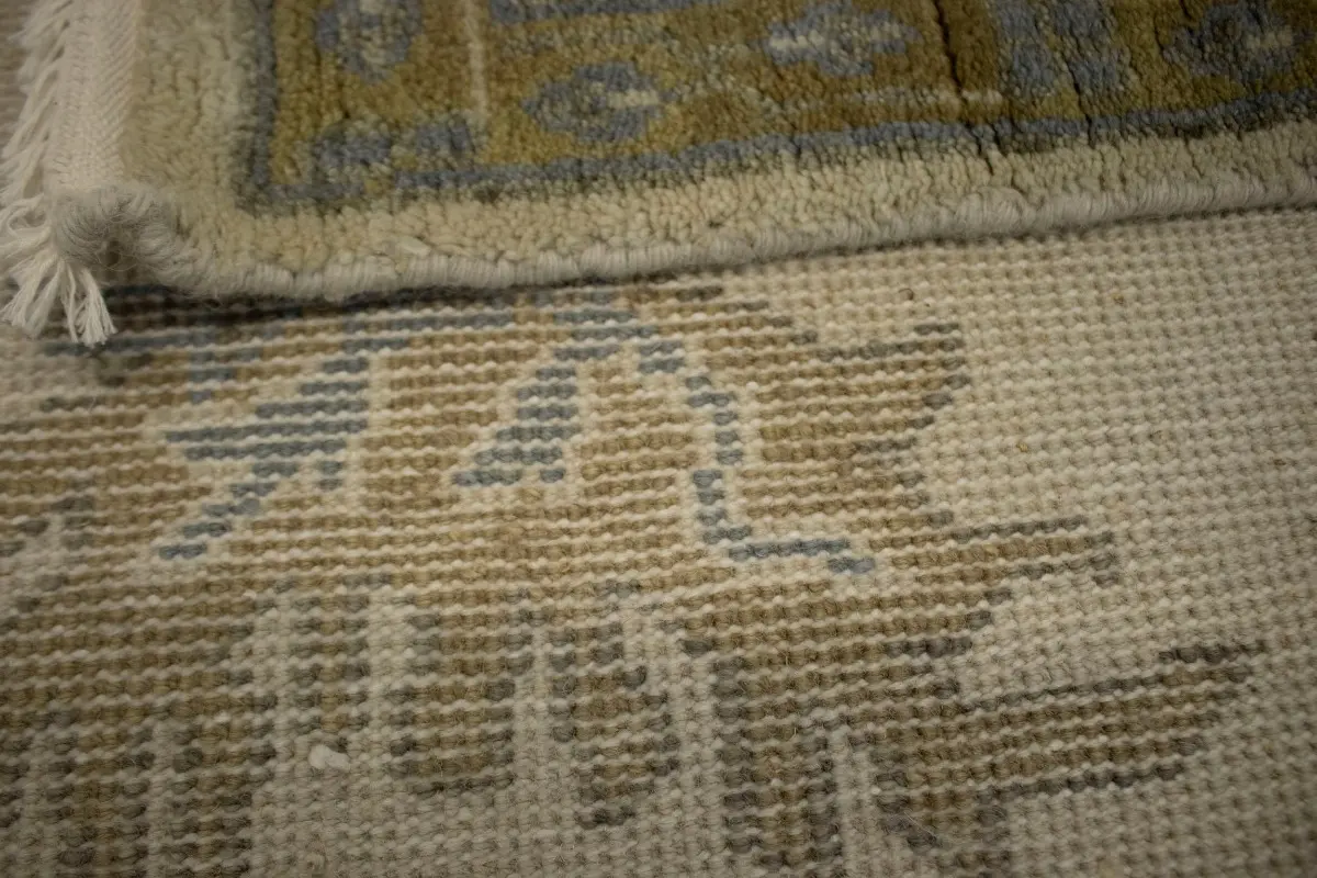 This authentic 8X10 cream new Oriental rug was masterly knotted by the hands of weavers inspired by a variety of wonderful artistic designs, to recreate the aged look of the original piece with a richness of color and intricate patterned background field. What set this vintage style Oriental area rug from the others are the material and dye used (wool pile and cotton foundation), knot count, antique designs, fantastic grades, and its regional historical connection: it has deep roots, from the story of the people who produced it to the meaning of the symbols and colors displayed across its canvas that have been praised for centuries. This Indian home décor carpet will be completely cozy and inviting that never will go out of style! Also, this Oriental rug would be among your most valuable treasures, it is a great investment that accrues value over time, and it will last for generations because was woven with high-quality, all-natural wool. Environmentally friendly, opulent yet affordable; this rug will give you a thorough amount of character to help define your living space with luxury and warmth that will capture the eyes and attention of your audience (homeowners, designers, decorators, family and friends). OT-4123