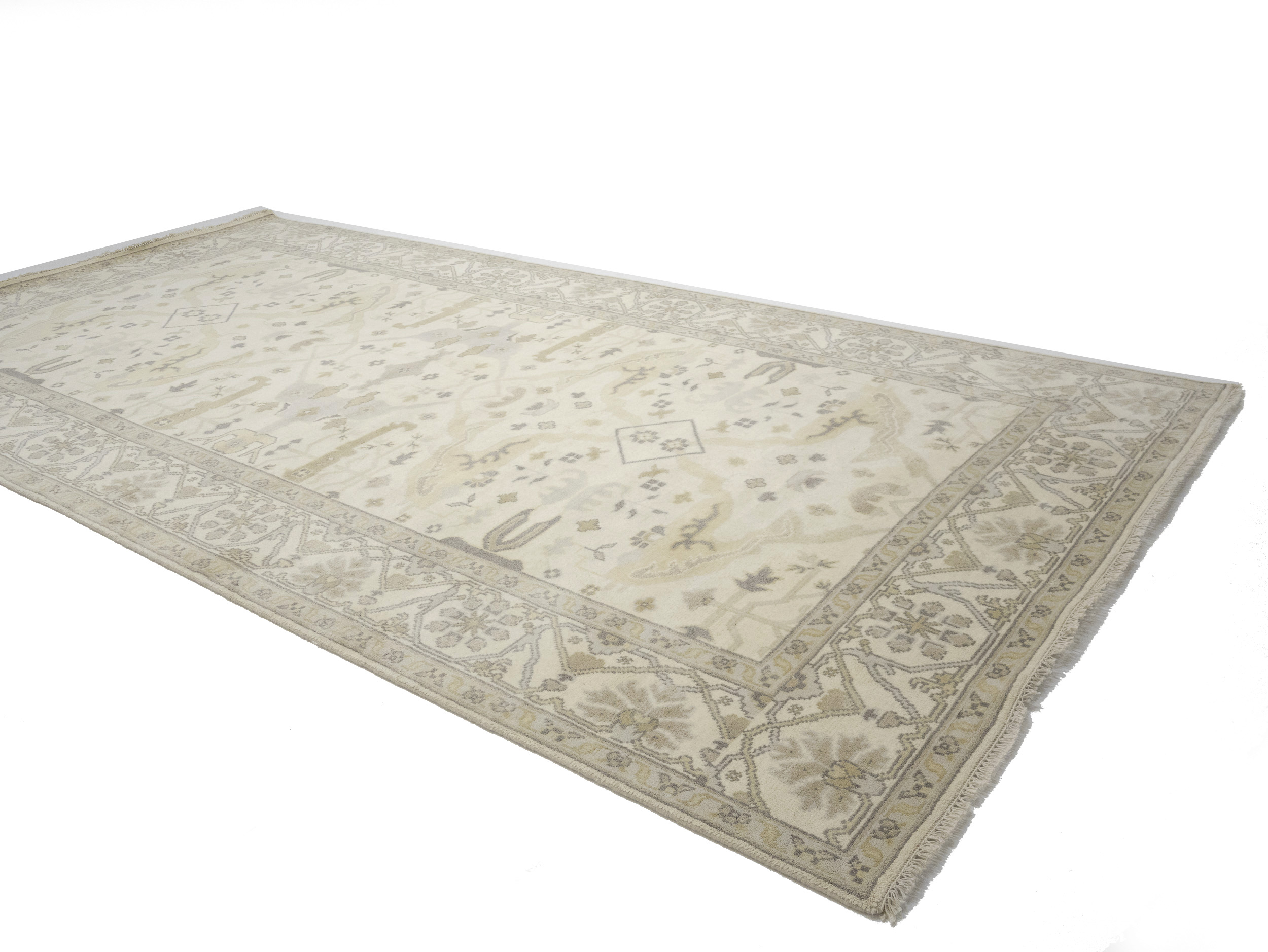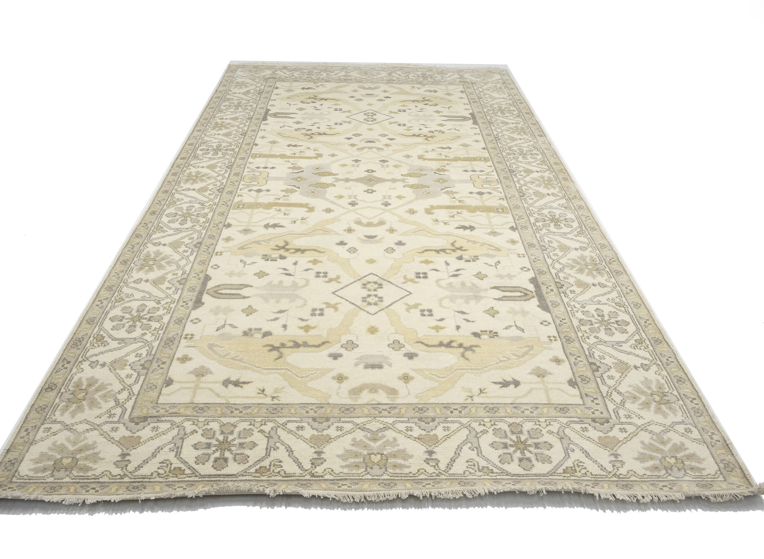 This original 8X16 cream new Oriental rug was finely knotted by the hands of weavers influenced by a variety of amazing artistic designs, to recreate the aged look of the exceptional piece with a richness of color and embellished background field. What set this vintage style Oriental area rug from the others are the material and dye used (wool pile and cotton foundation), knot count, antique designs, fantastic grades, and its regional historical connection: it has deep roots, from the story of the people who produced it to the meaning of the symbols and colors displayed across its canvas that have been praised for centuries. This Indian home décor carpet will be completely cozy and inviting that never will go out of style! Also, this Oriental rug would be among your most valuable treasures, it is a great investment that increase in value over time, and it will last a lifetime because was woven with high-quality, all-natural wool. Eco-friendly, opulent yet affordable; this rug will give you an extra pop of character to help define your home environment with luxury and warmth that will capture the eyes and attention of your audience (homeowners, designers, decorators, family and friends).