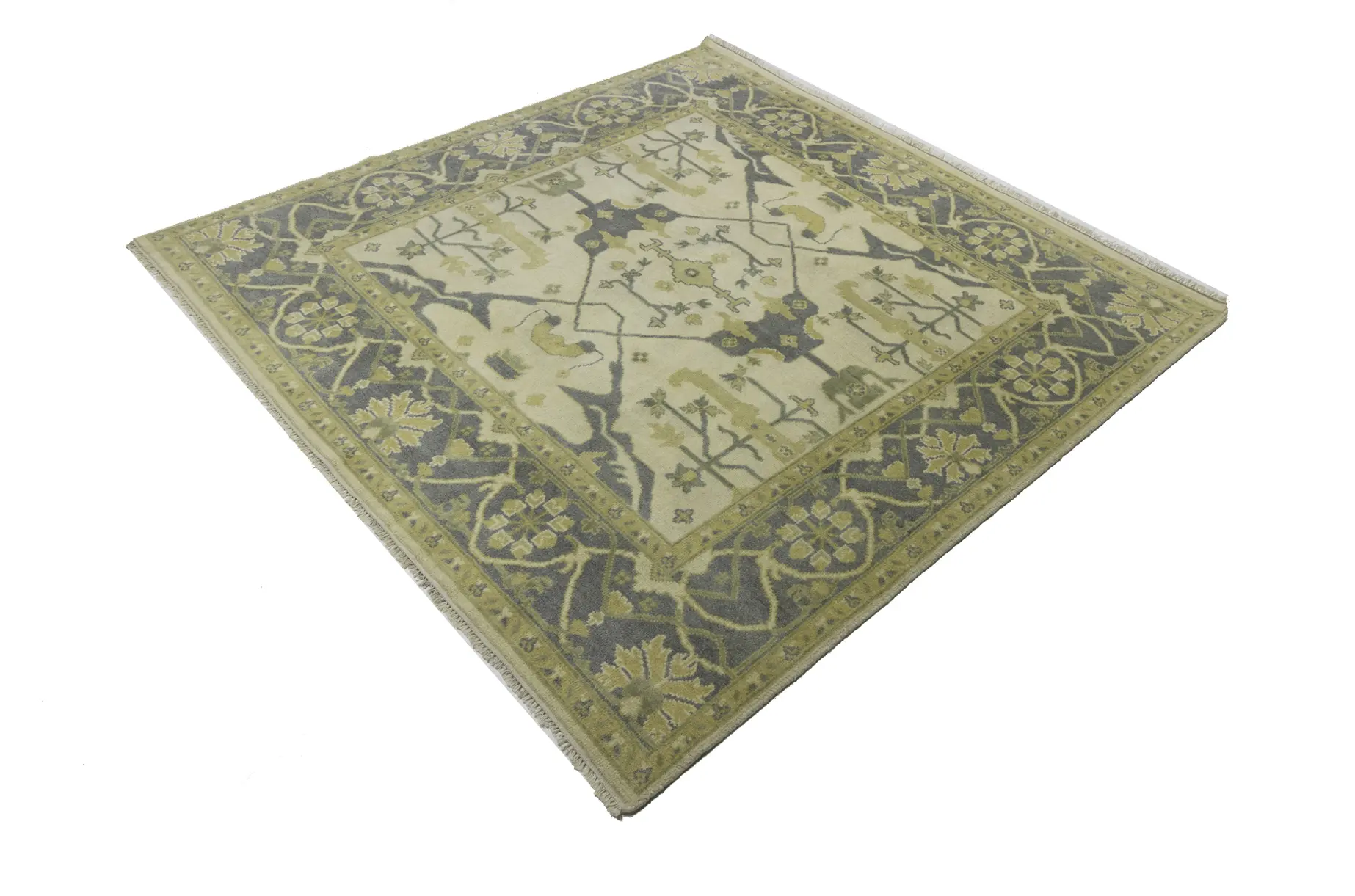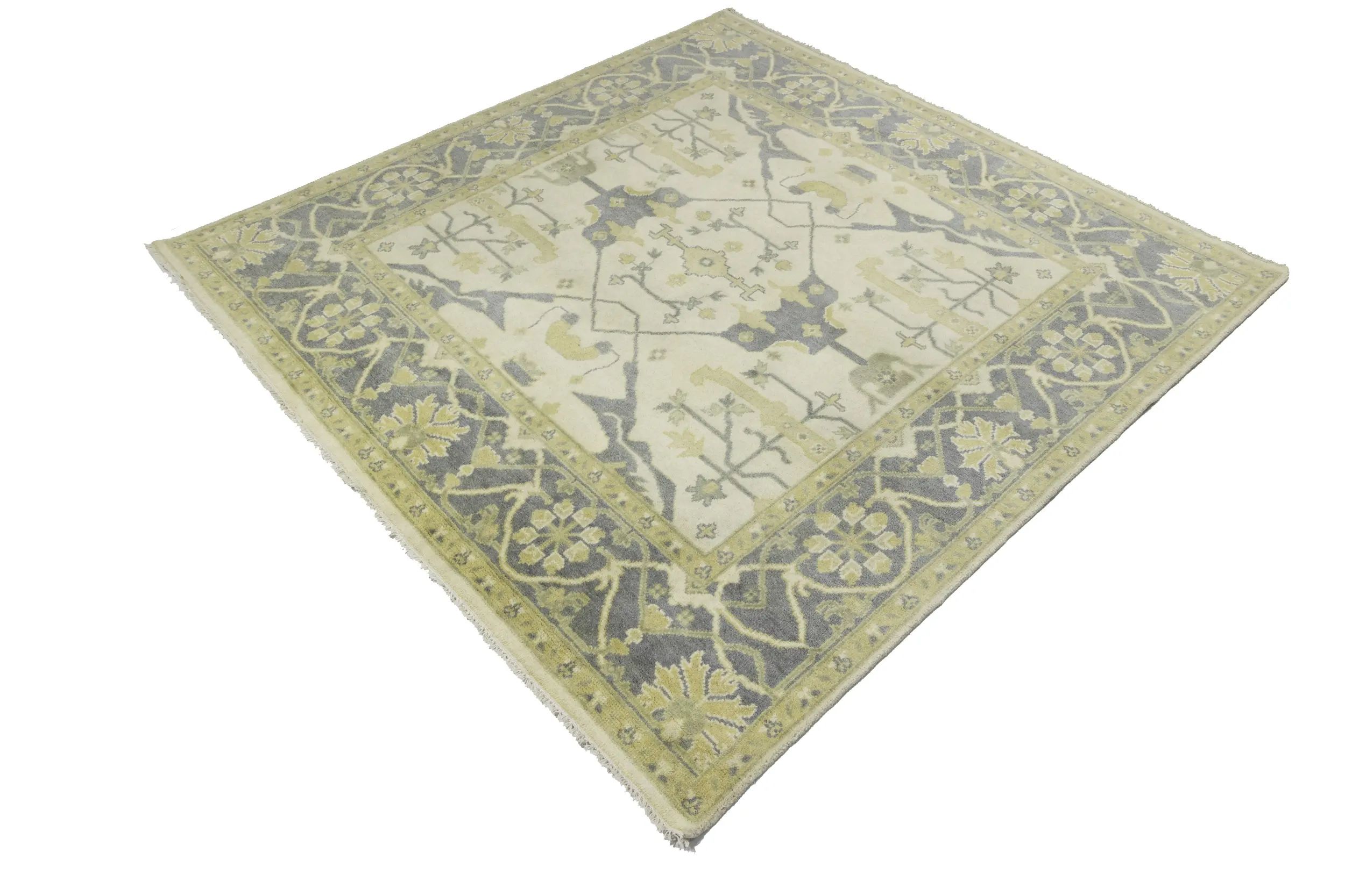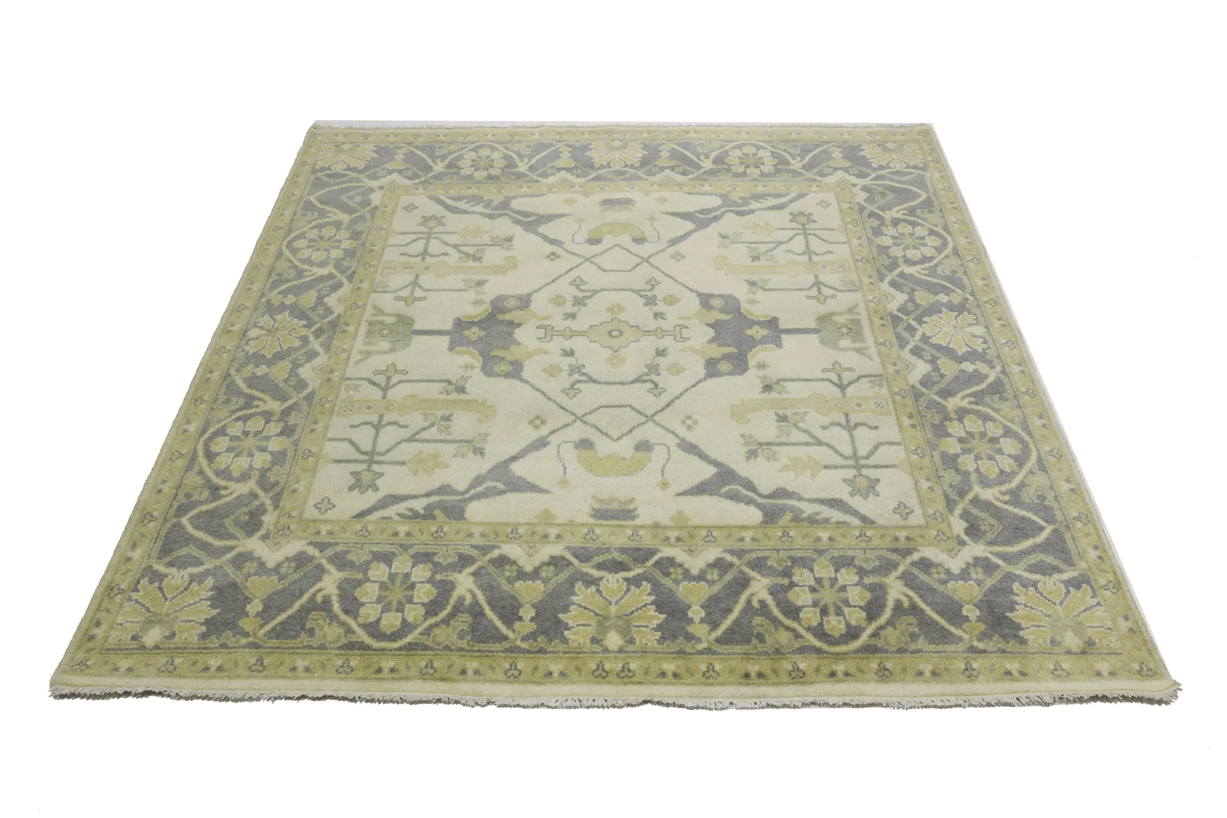 Cream Floral 8X8 Oushak Oriental Square Rug