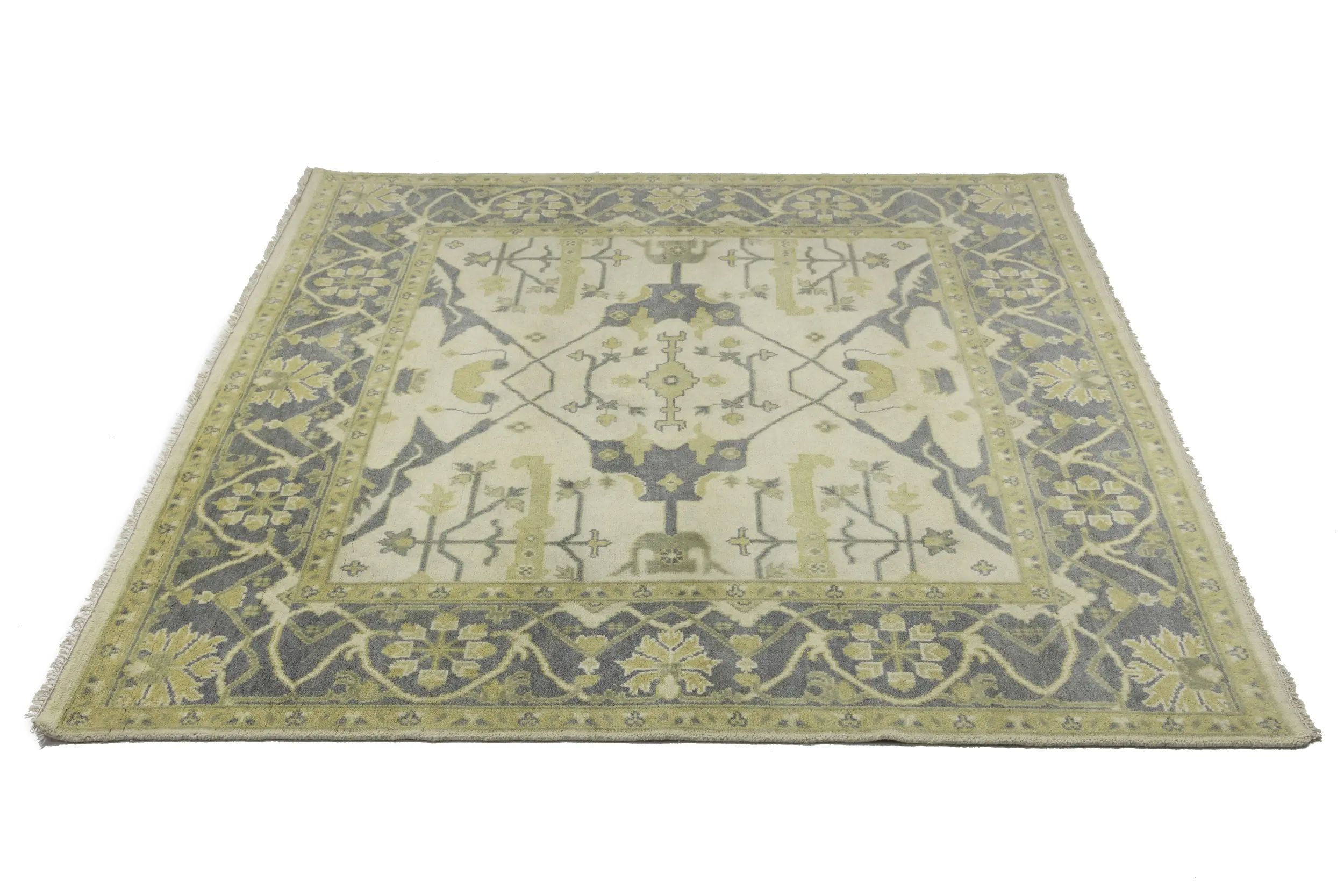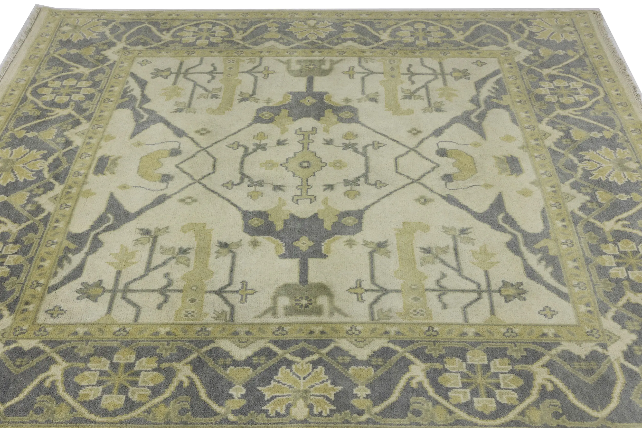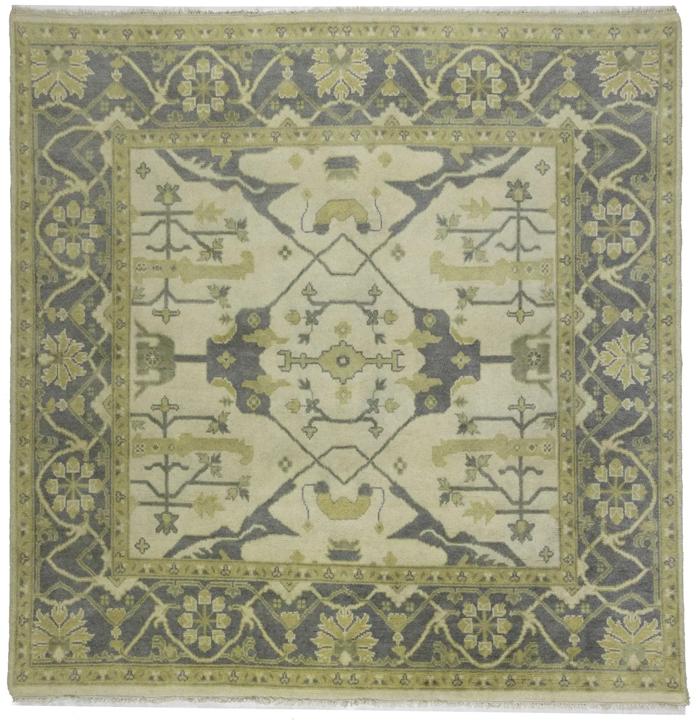 Cream Floral 8X8 Oushak Oriental Square Rug