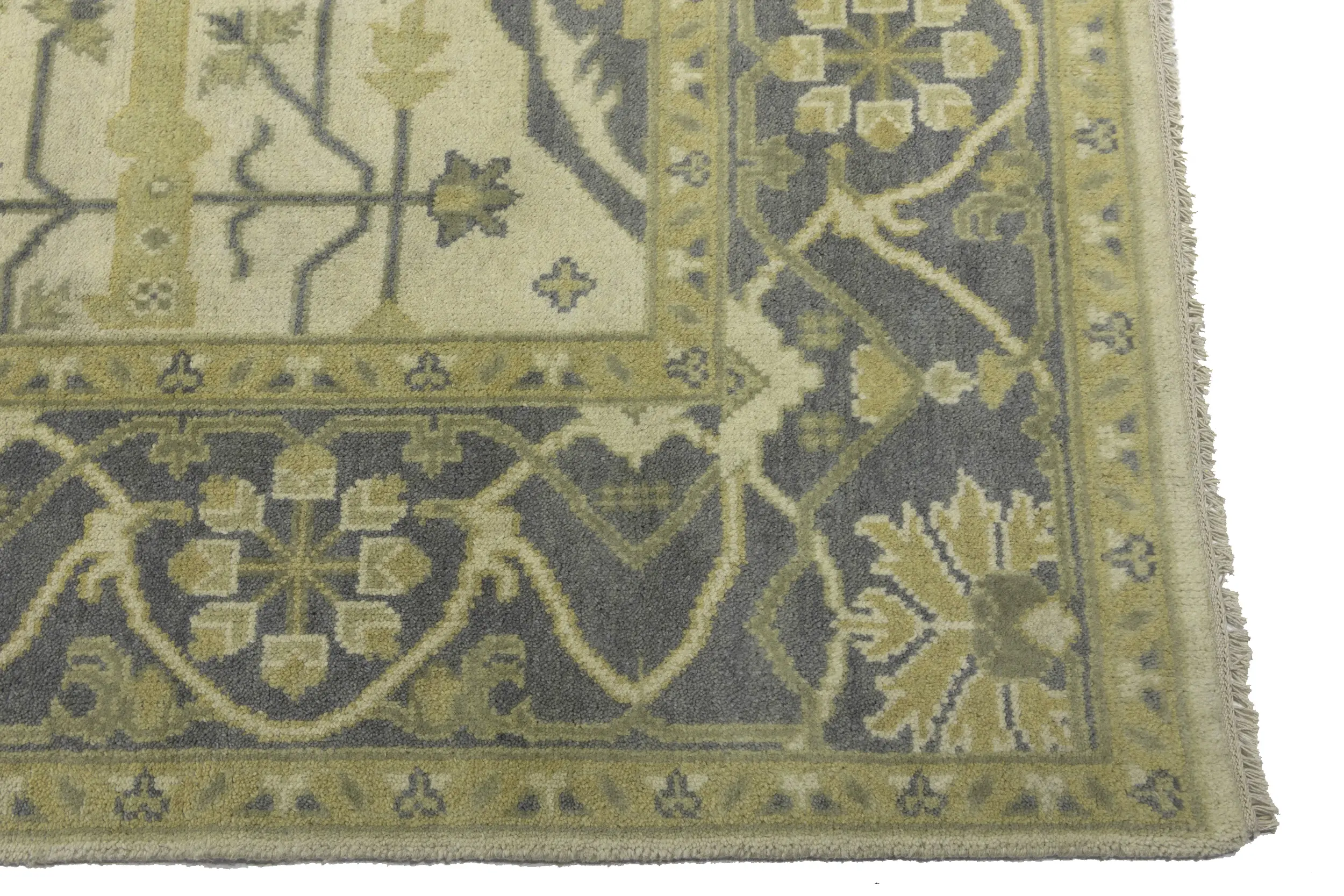 This original 8X8 cream new Oriental rug was finely knotted by the hands of weavers influenced by a variety of amazing artistic designs, to recreate the aged look of the exceptional piece with a richness of color and embellished background field. What set this vintage style Oriental area rug from the others are the material and dye used (wool pile and cotton foundation), knot count, antique designs, fantastic grades, and its regional historical connection: it has deep roots, from the story of the people who produced it to the meaning of the symbols and colors displayed across its canvas that have been praised for centuries. This Indian home décor carpet will be completely cozy and inviting that never will go out of style! Also, this Oriental rug would be among your most valuable treasures, it is a great investment that increase in value over time, and it will last a lifetime because was woven with high-quality, all-natural wool. Eco-friendly, opulent yet affordable; this rug will give you an extra pop of character to help define your home environment with luxury and warmth that will capture the eyes and attention of your audience (homeowners, designers, decorators, family and friends).