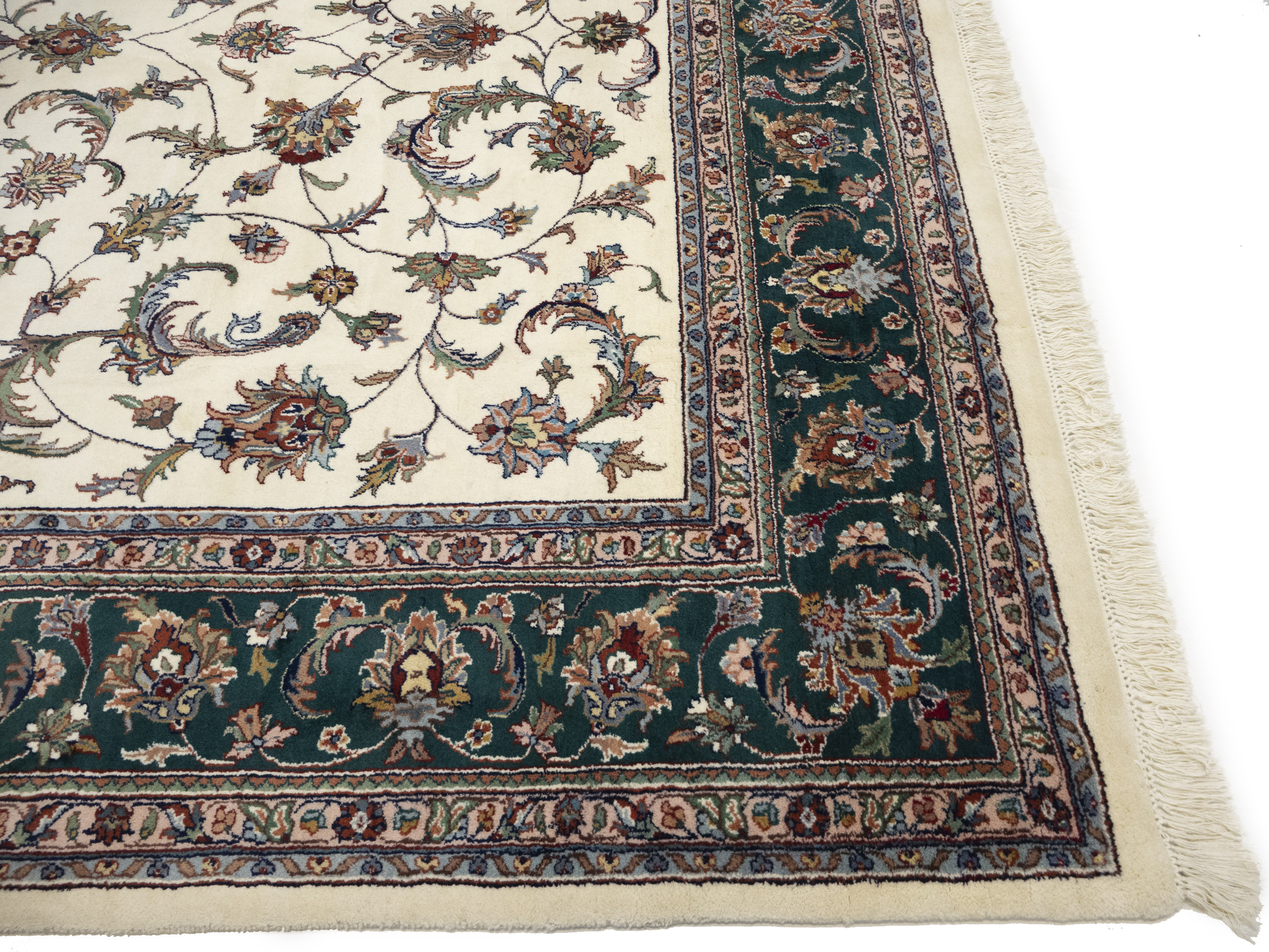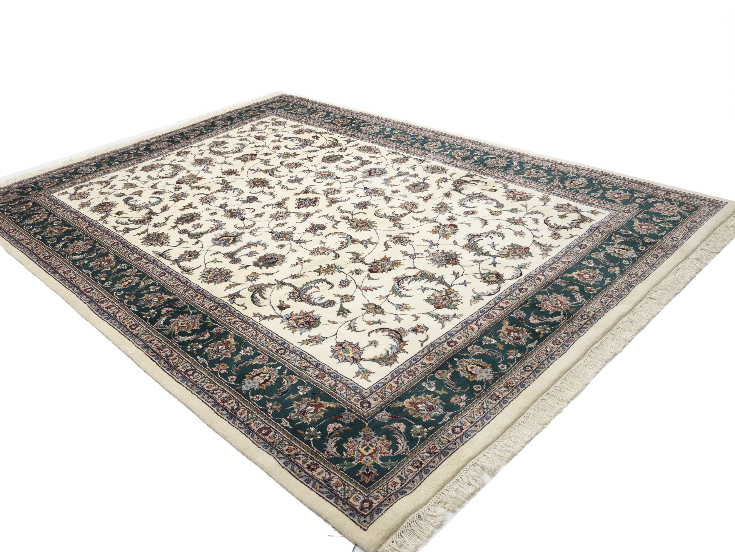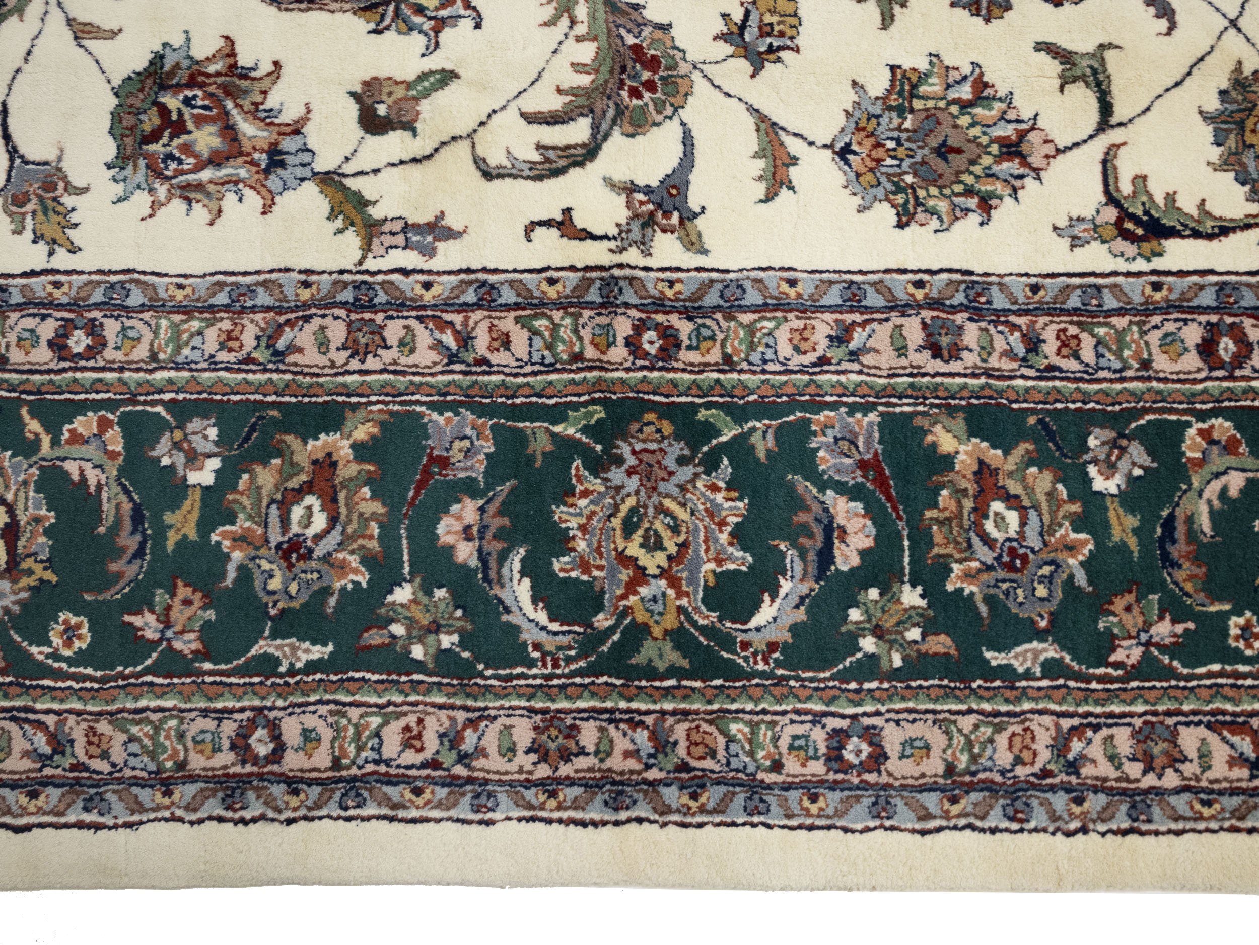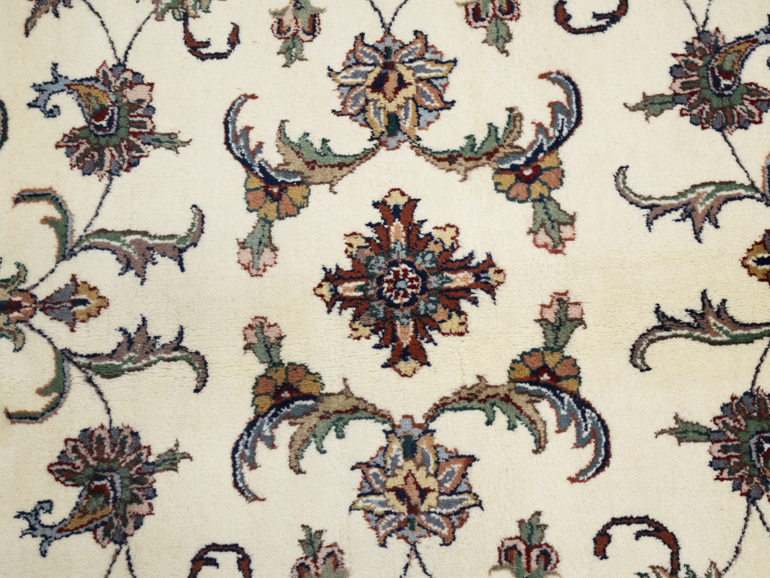 Cream Floral 9X12 Indo-Kashan Oriental Rug