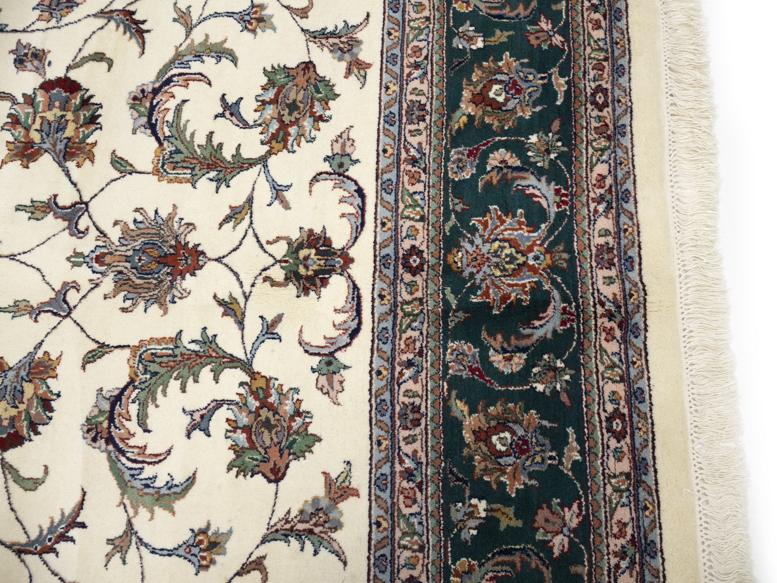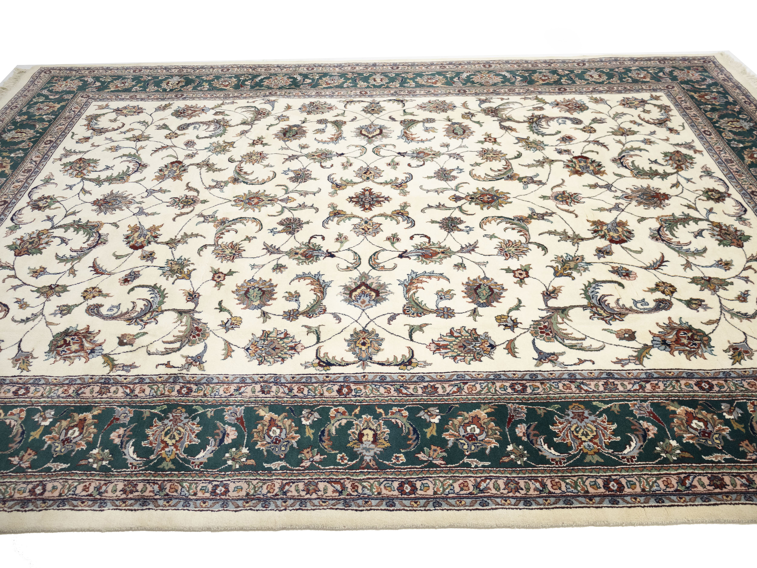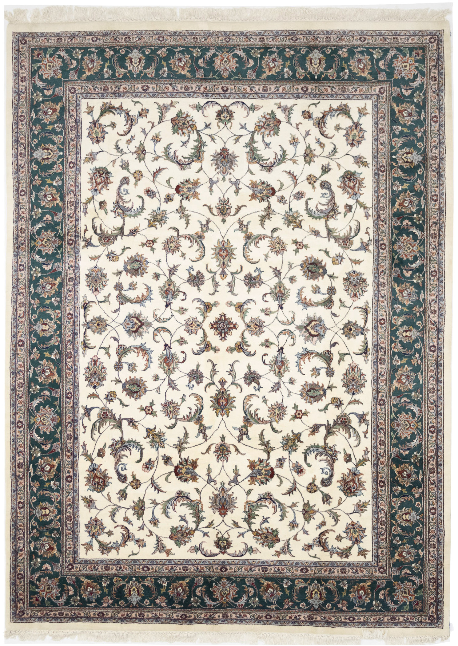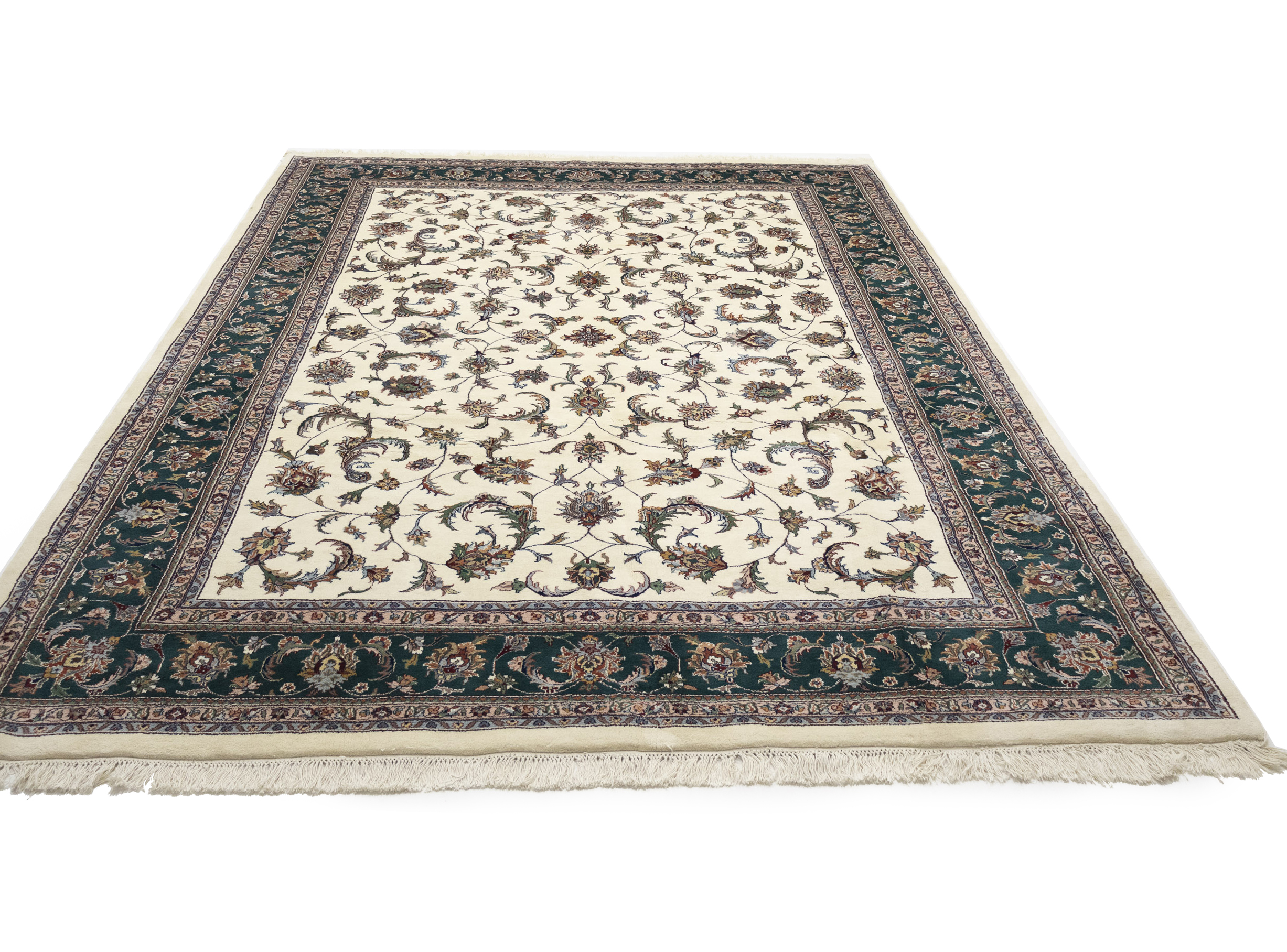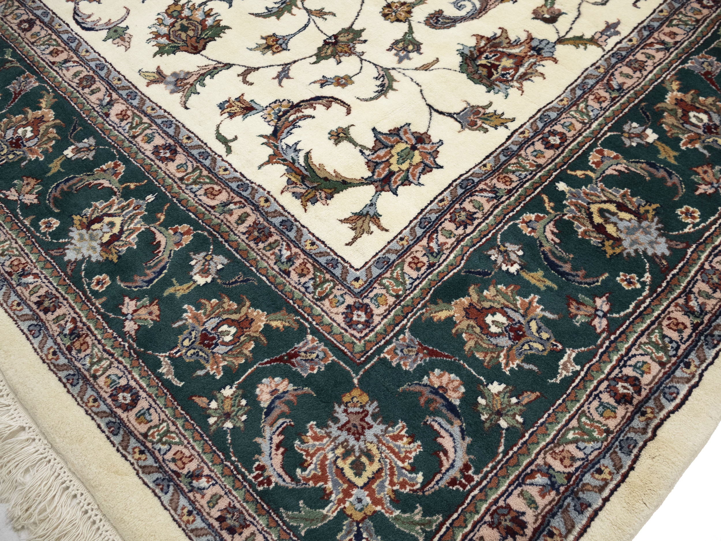 Cream Floral 9X12 Indo-Kashan Oriental Rug