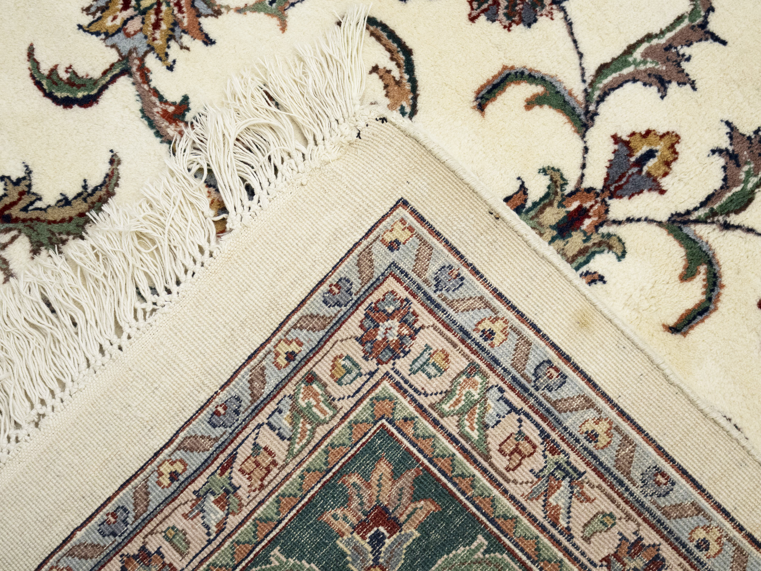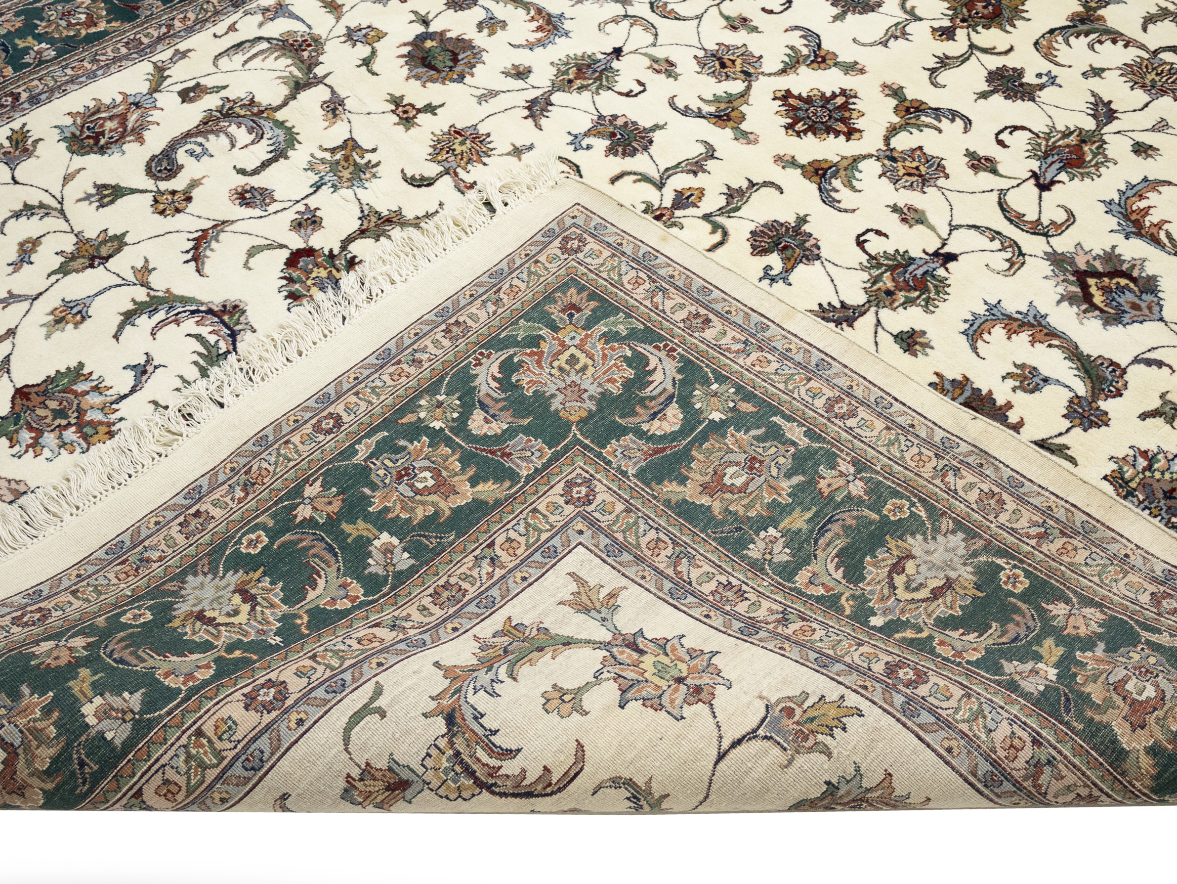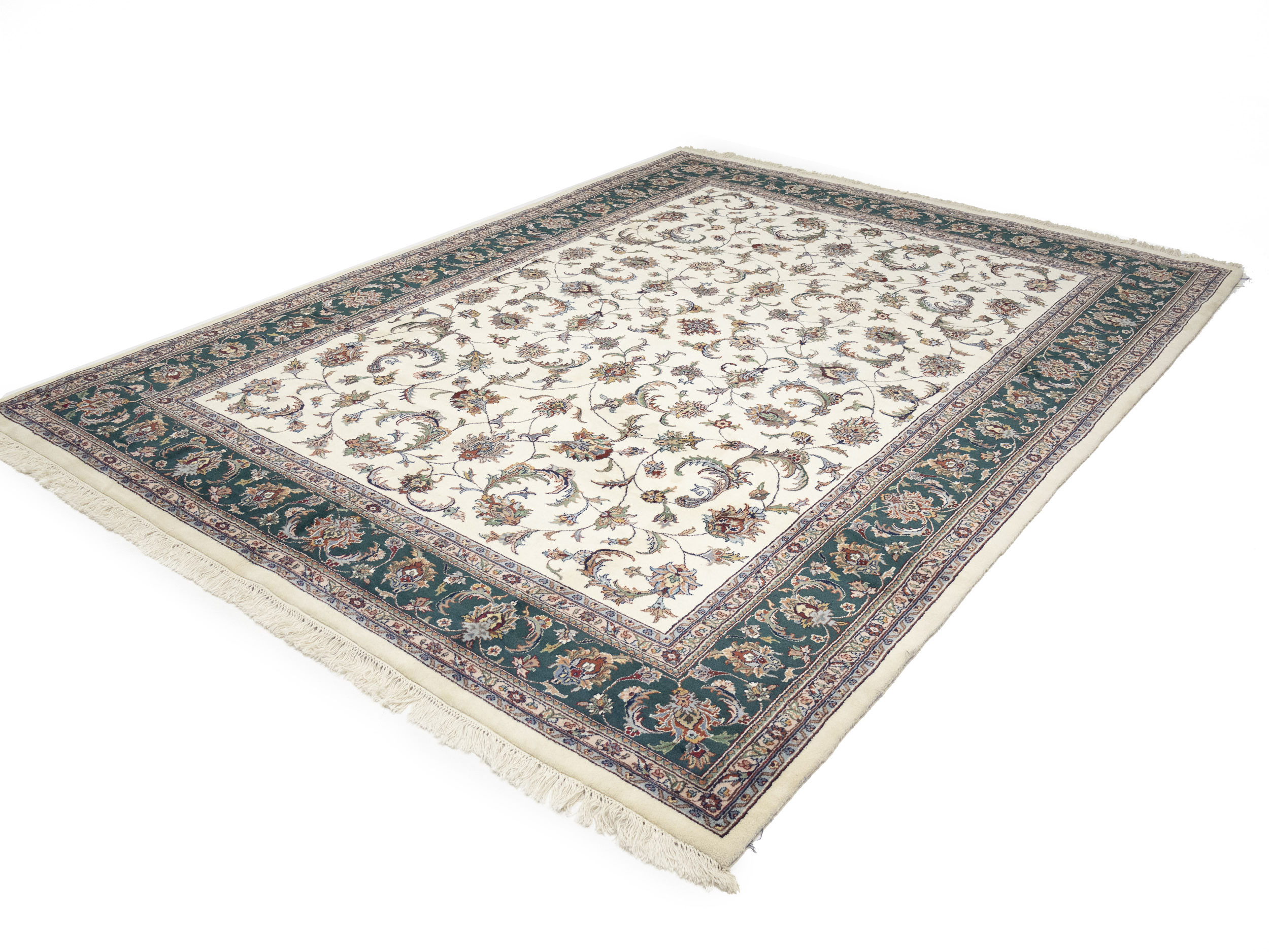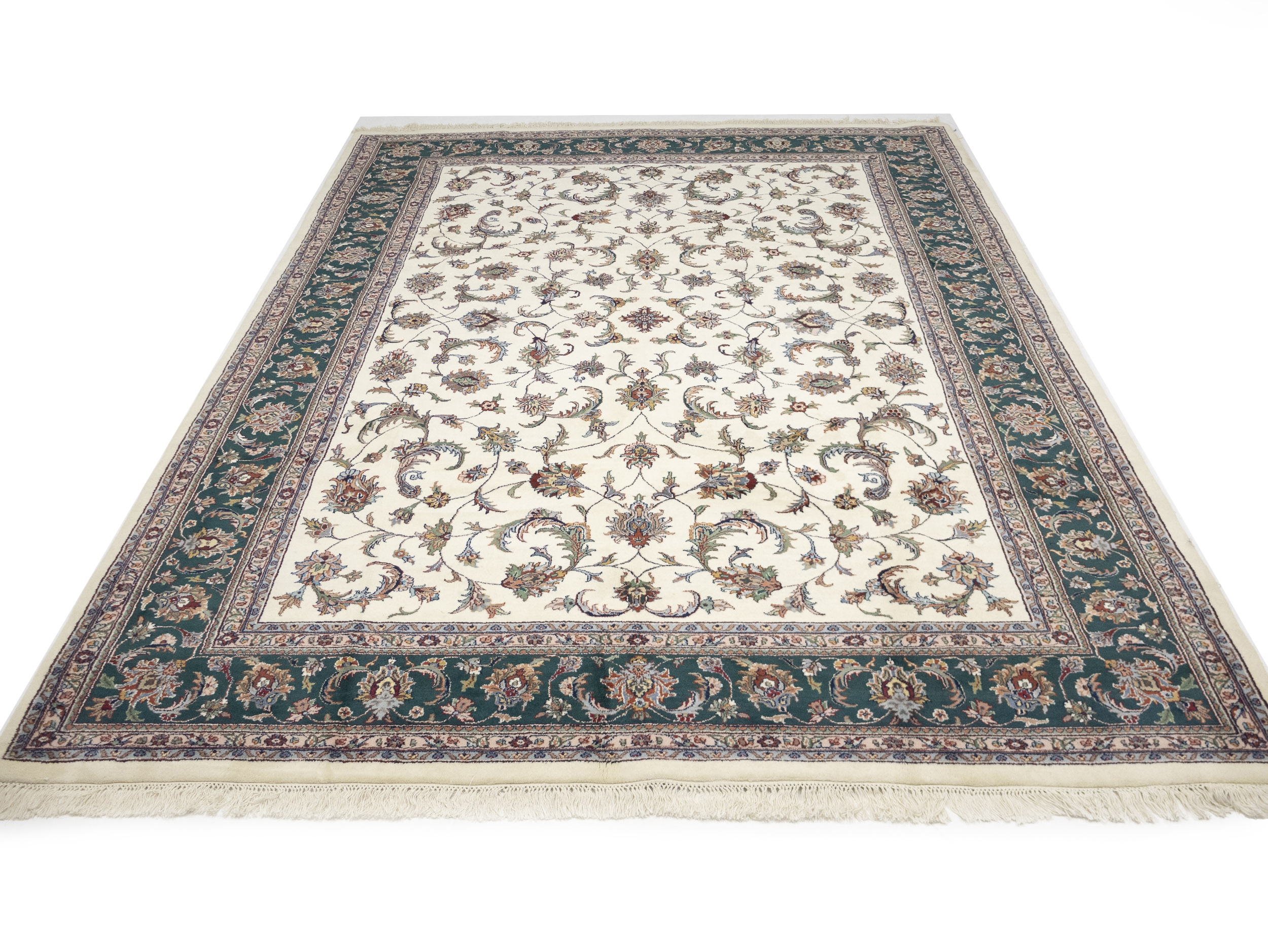 Cream Floral 9X12 Indo-Kashan Oriental Rug