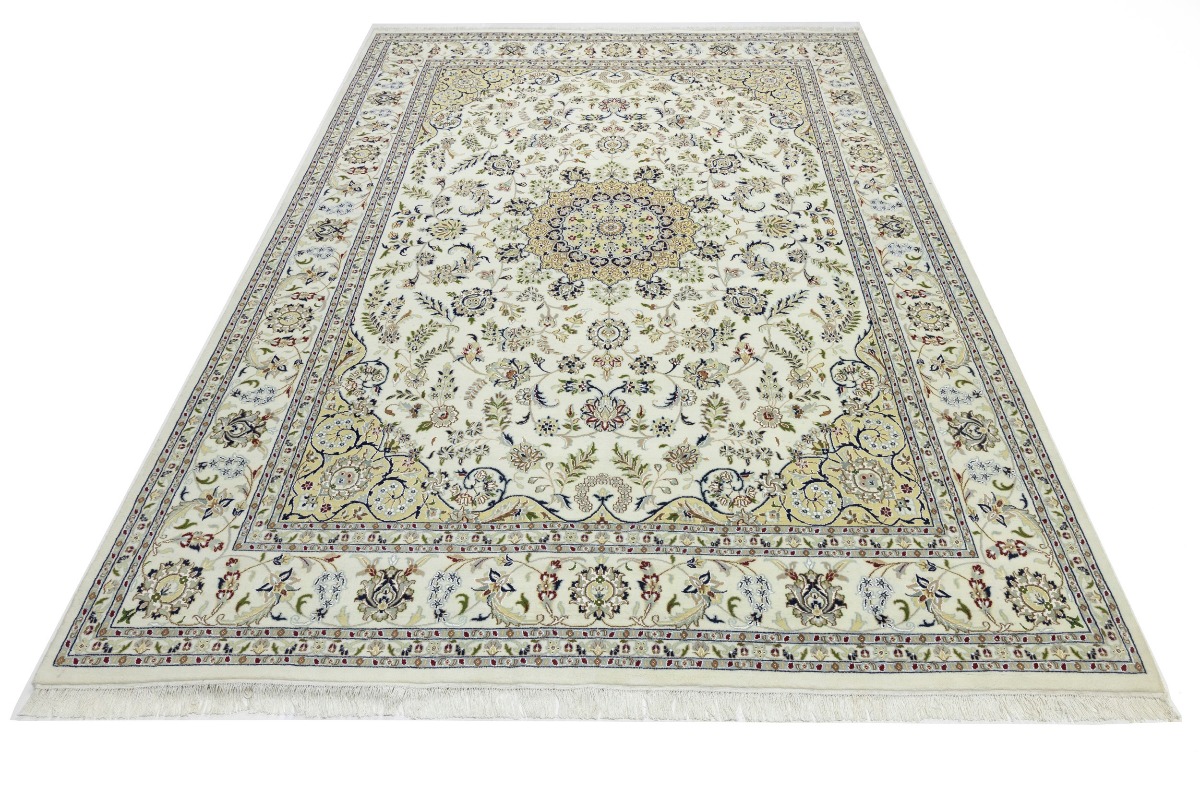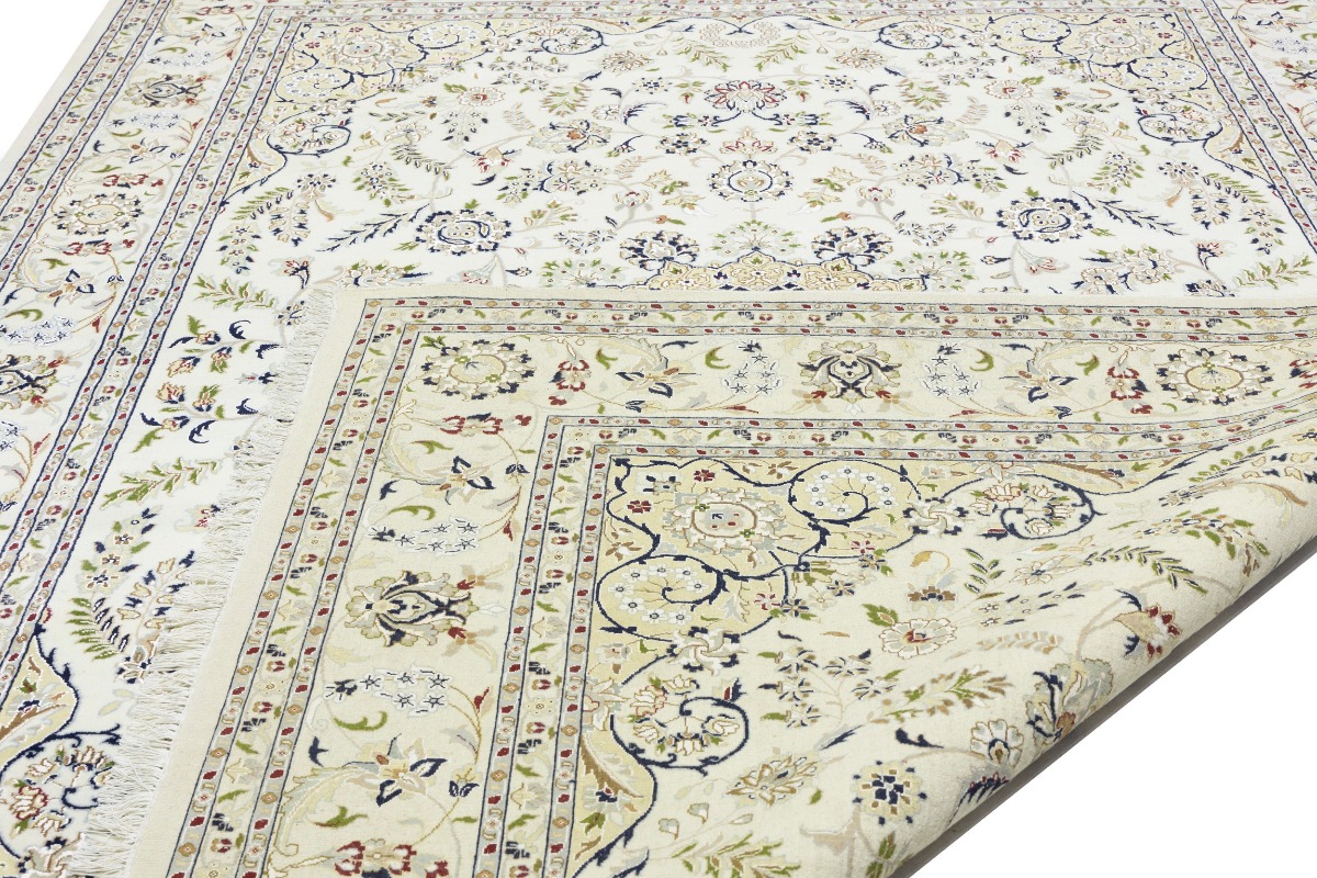 Cream Floral 9X12 Indo-Nain Oriental Rug