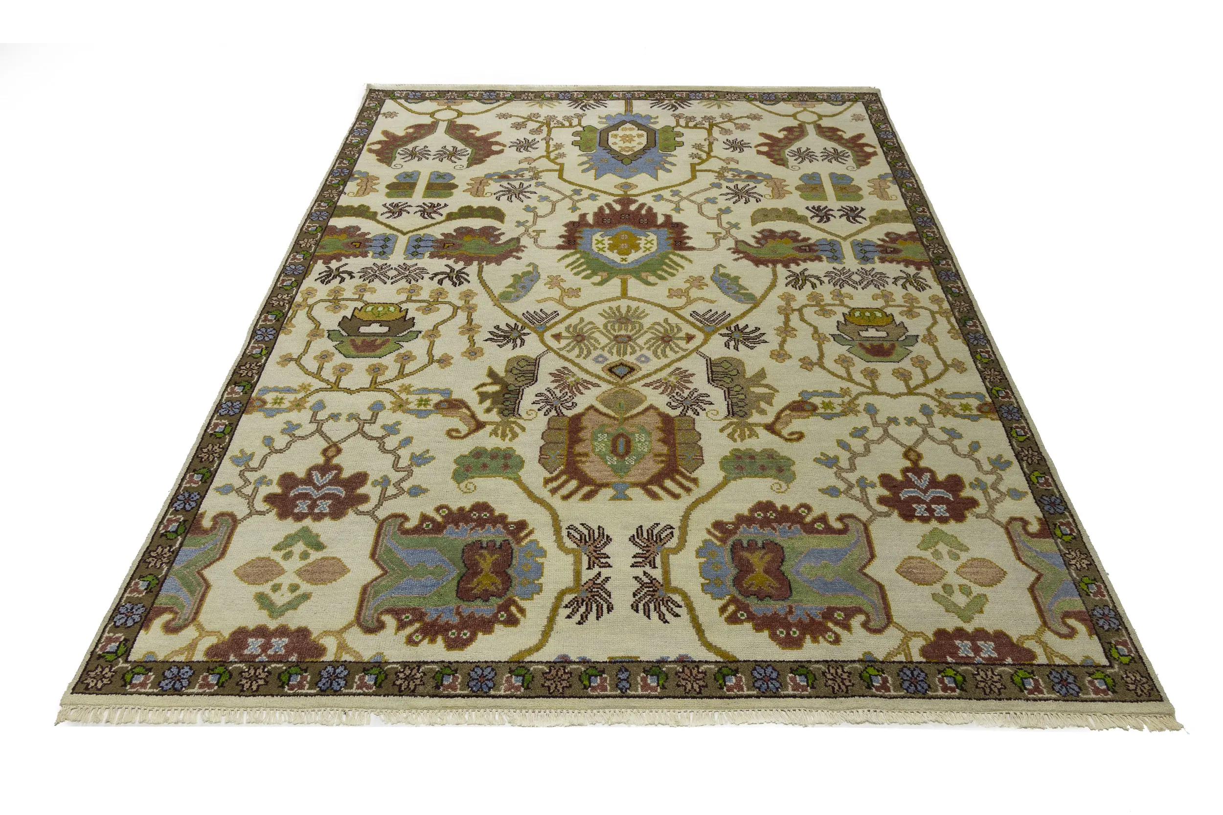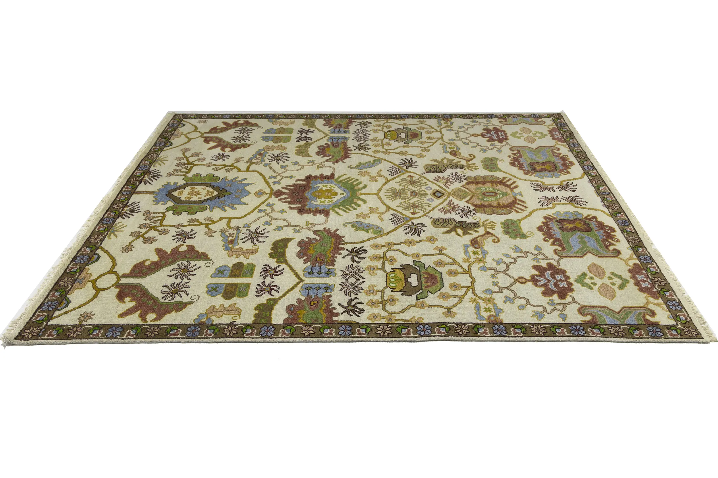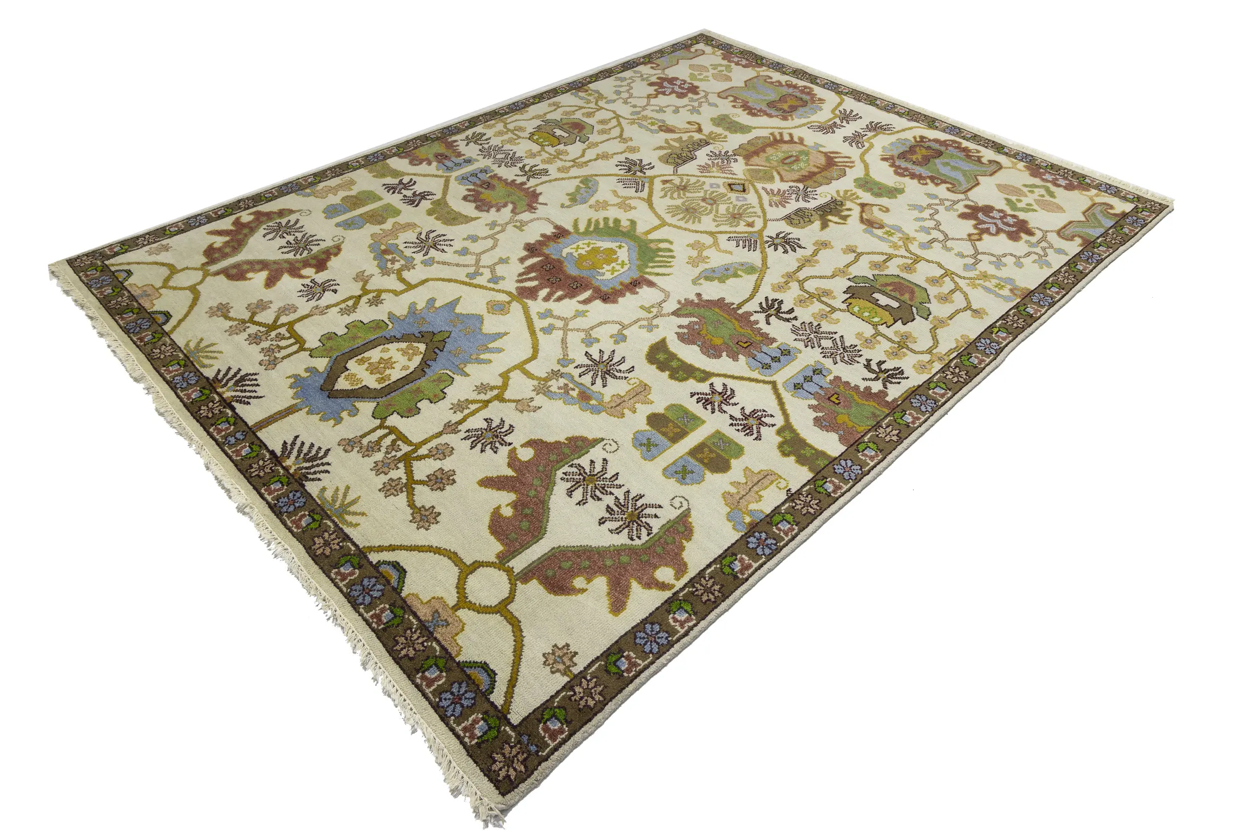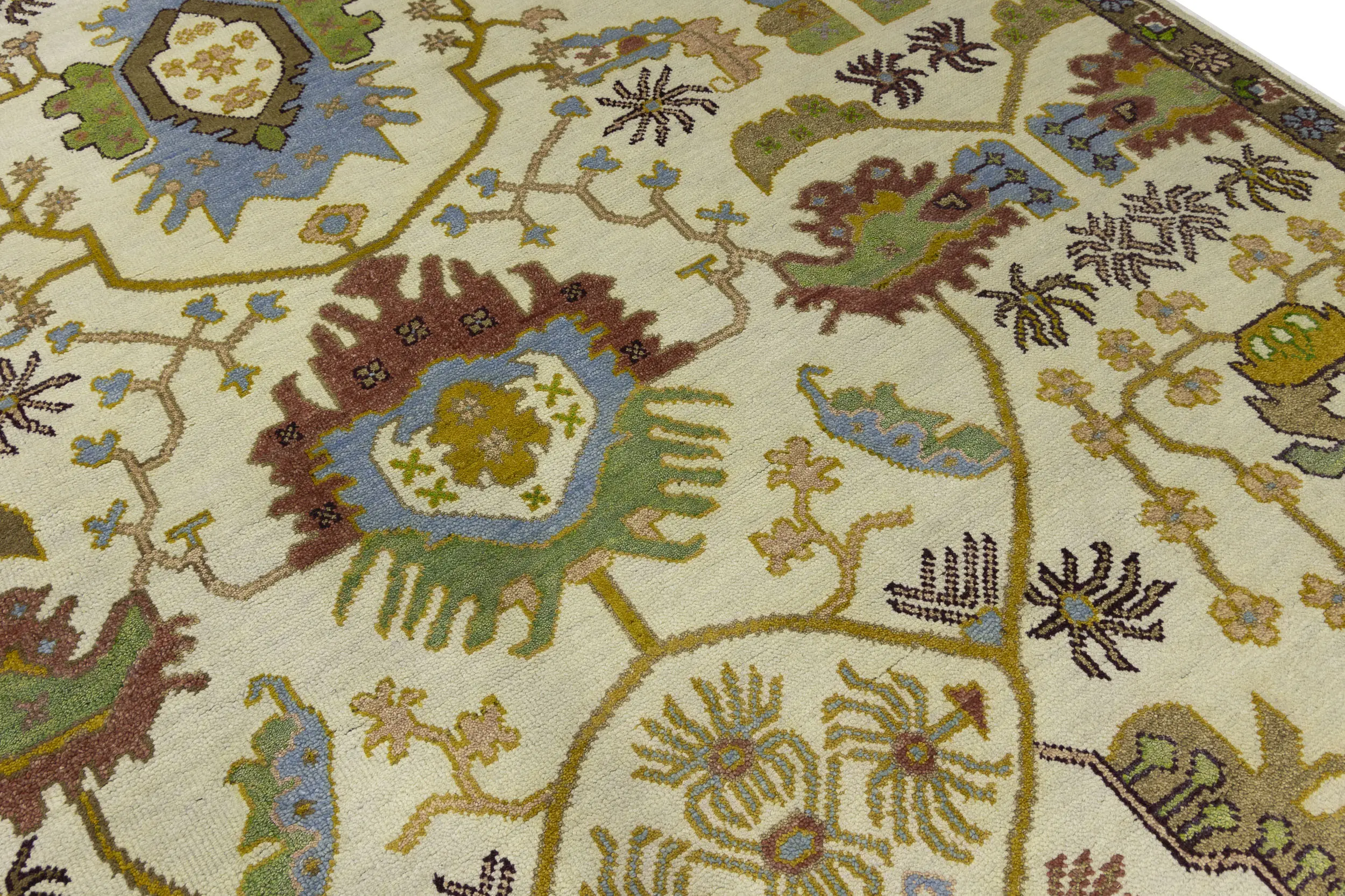 Cream Floral 9X12 Oushak Chobi Oriental Rug