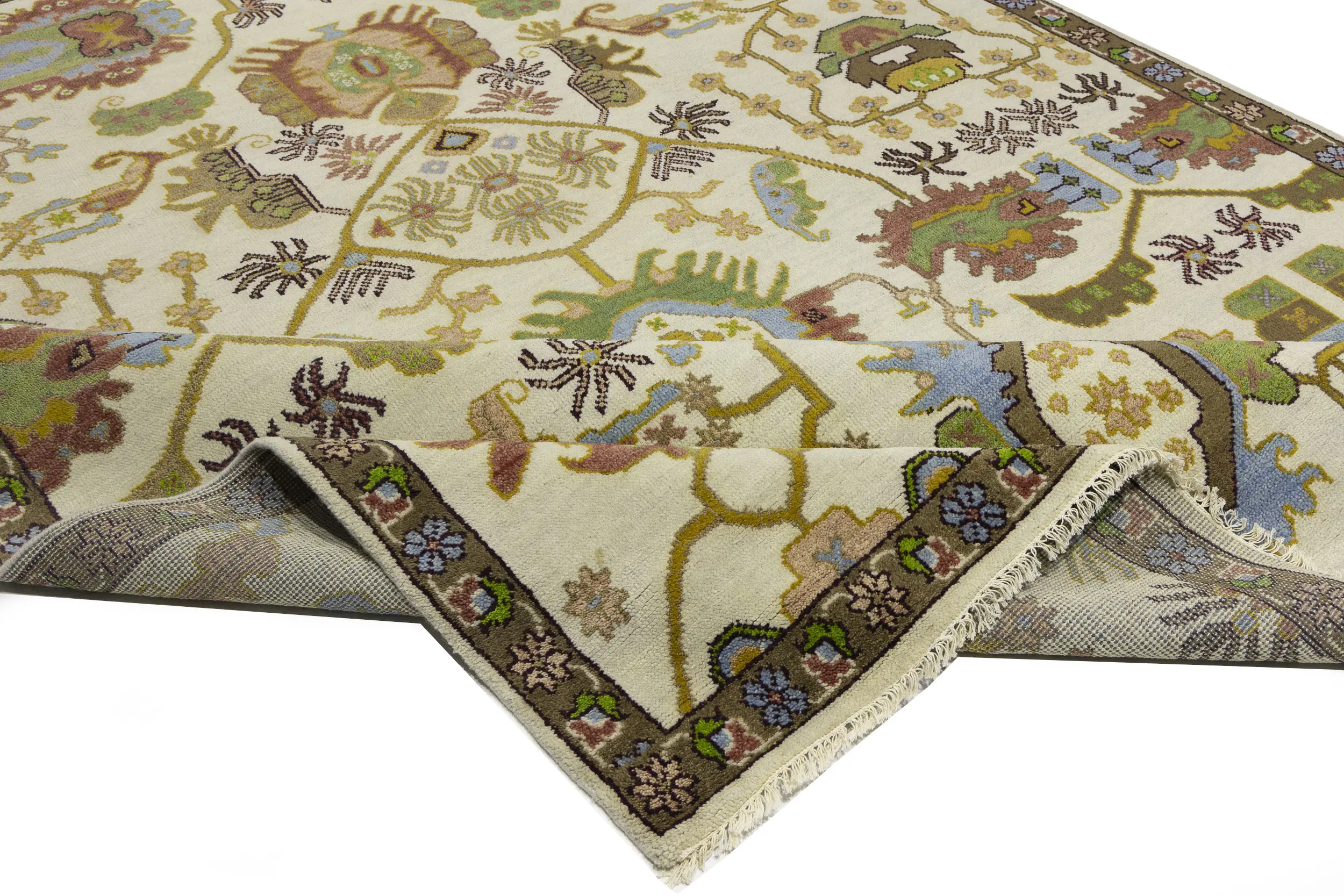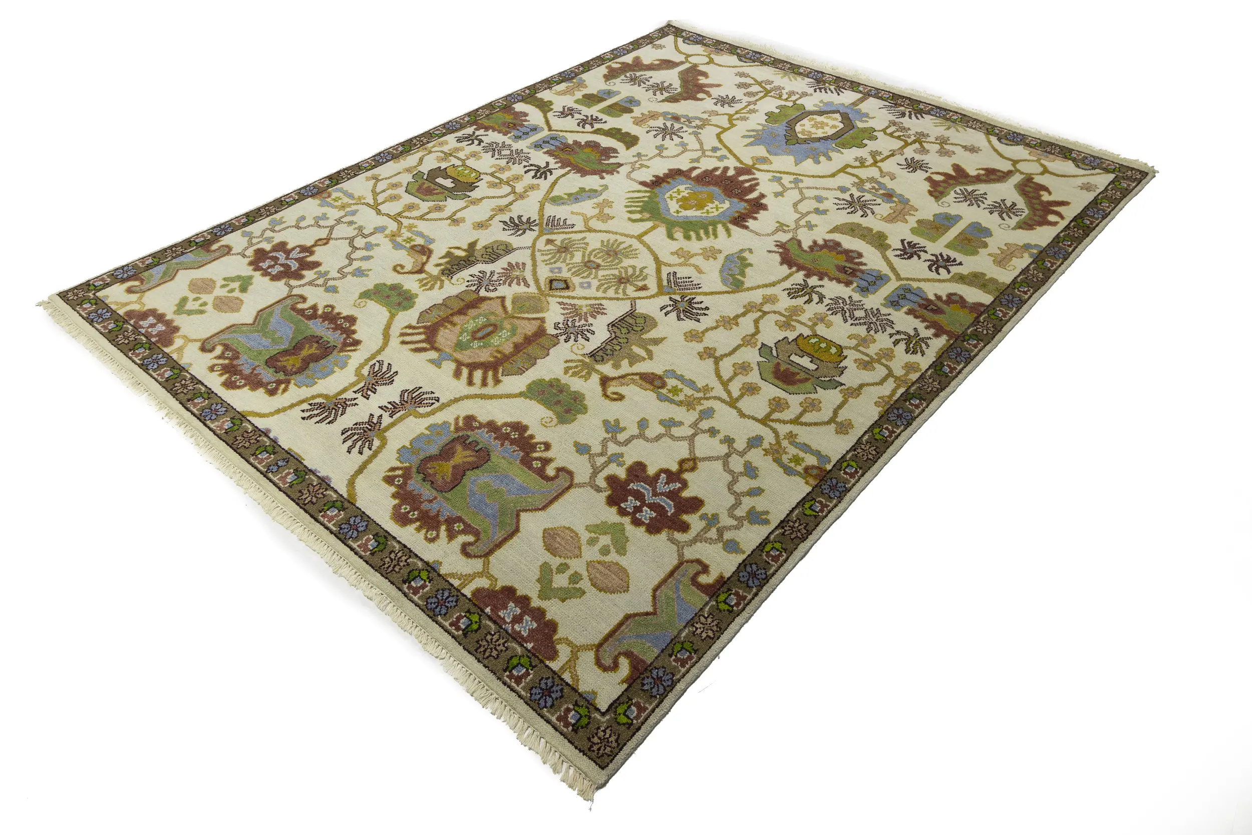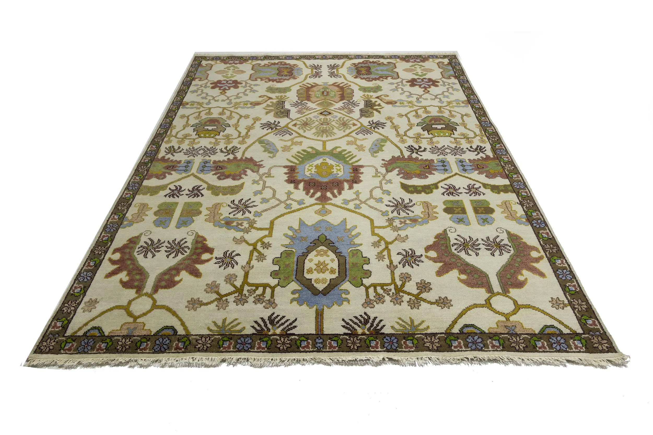 Cream Floral 9X12 Oushak Chobi Oriental Rug