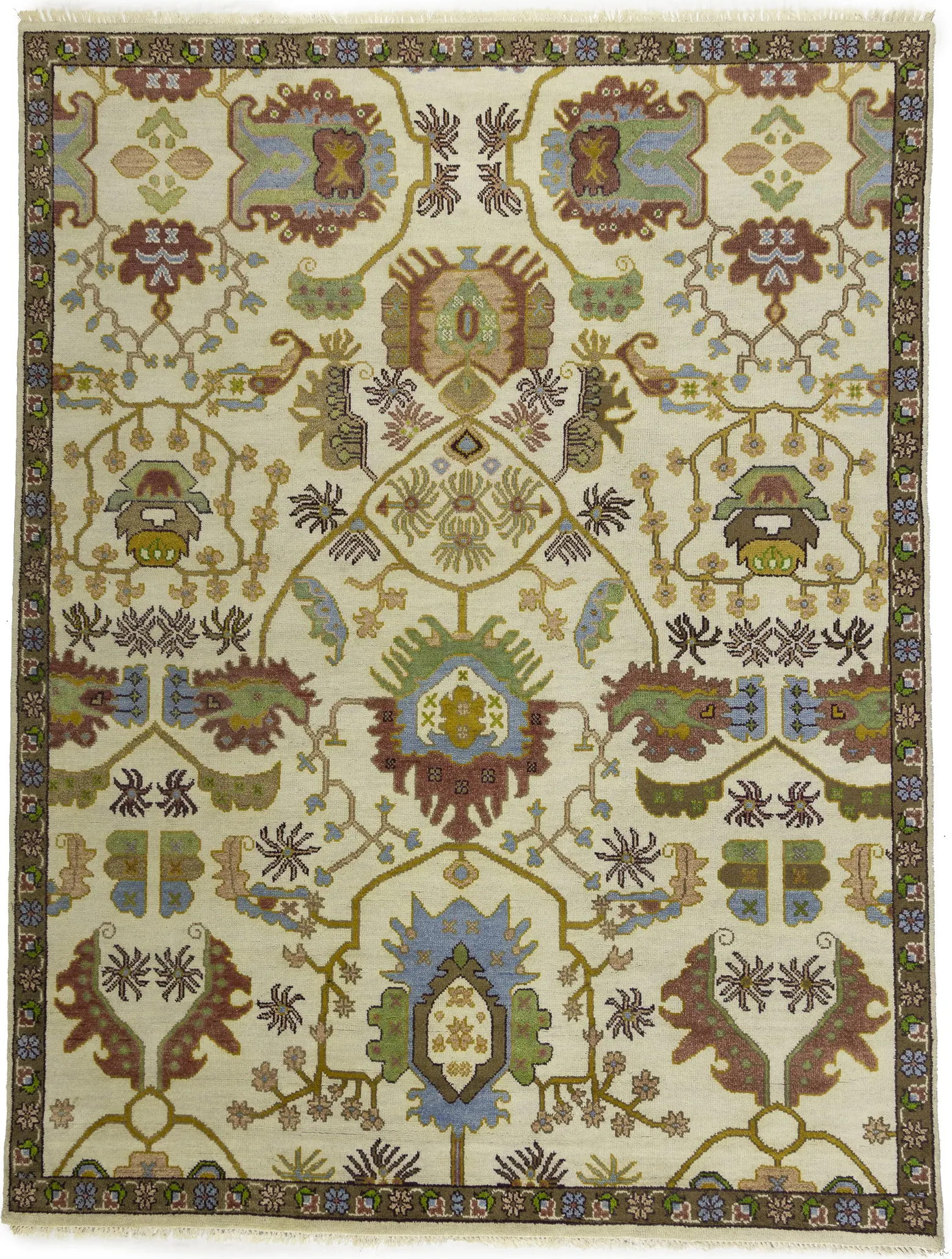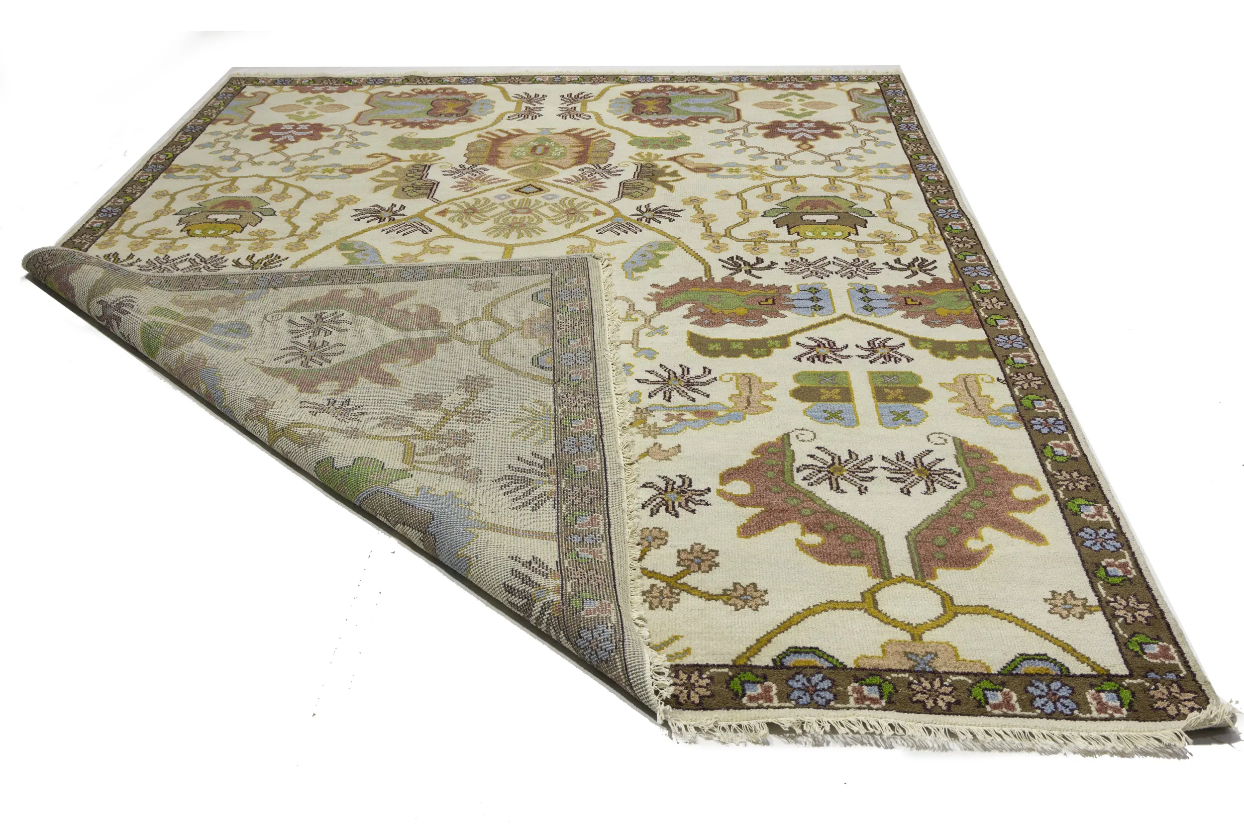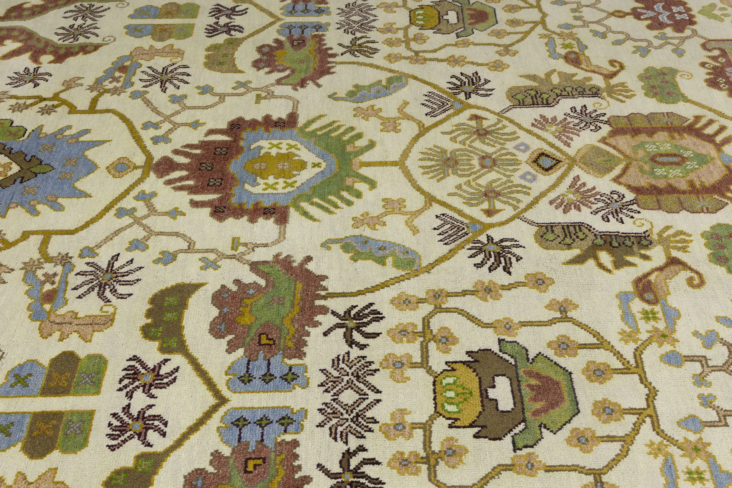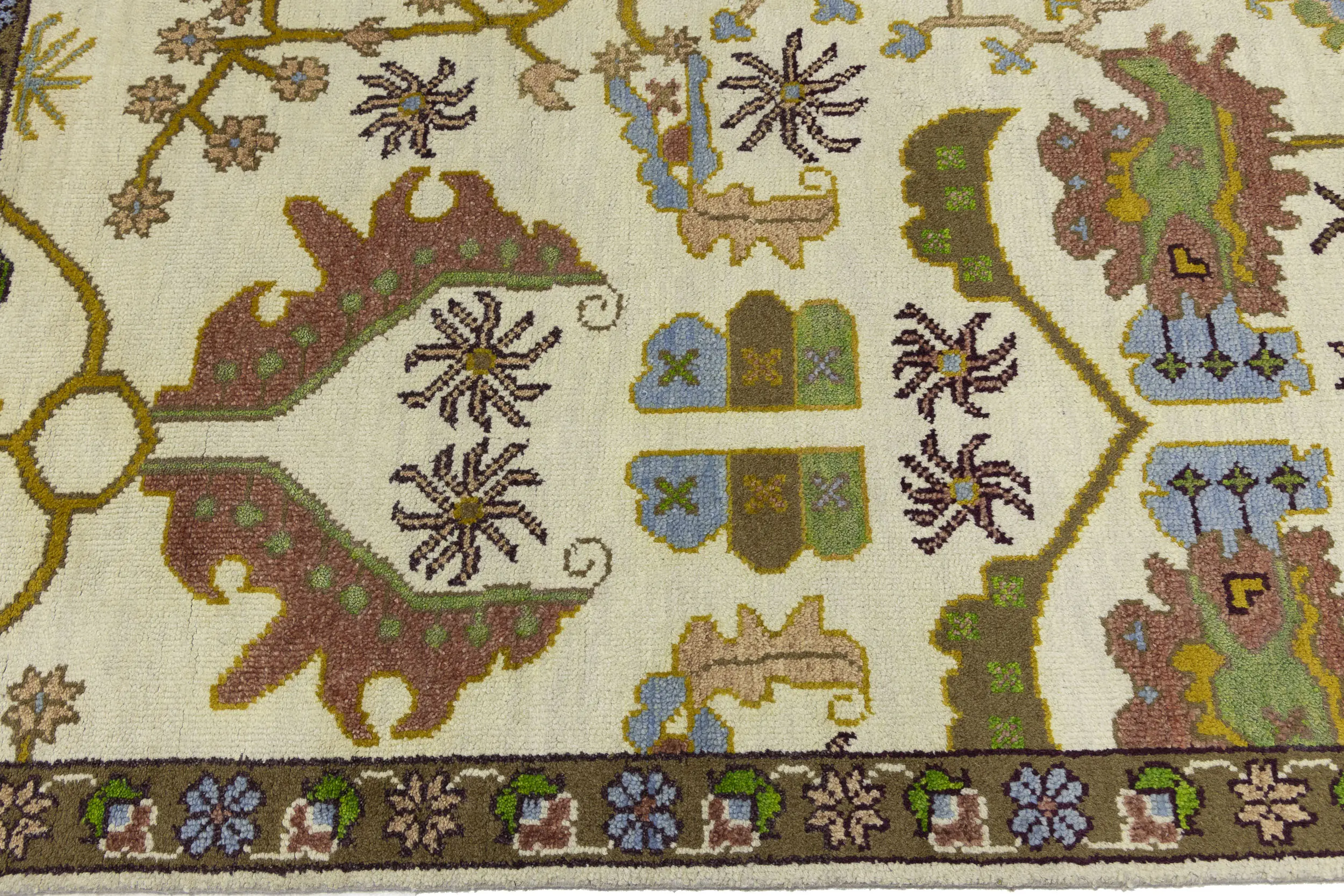 Cream Floral 9X12 Oushak Chobi Oriental Rug