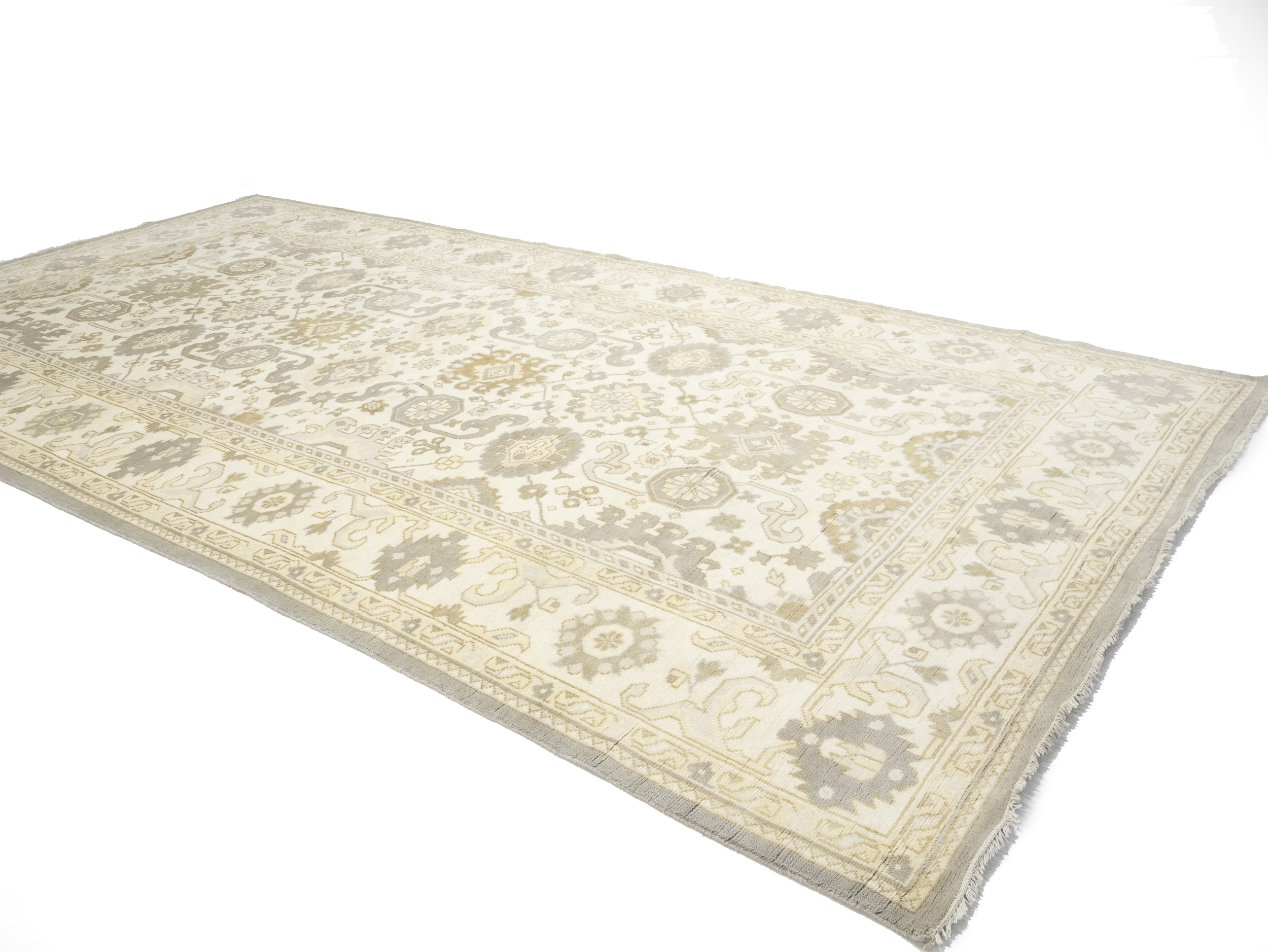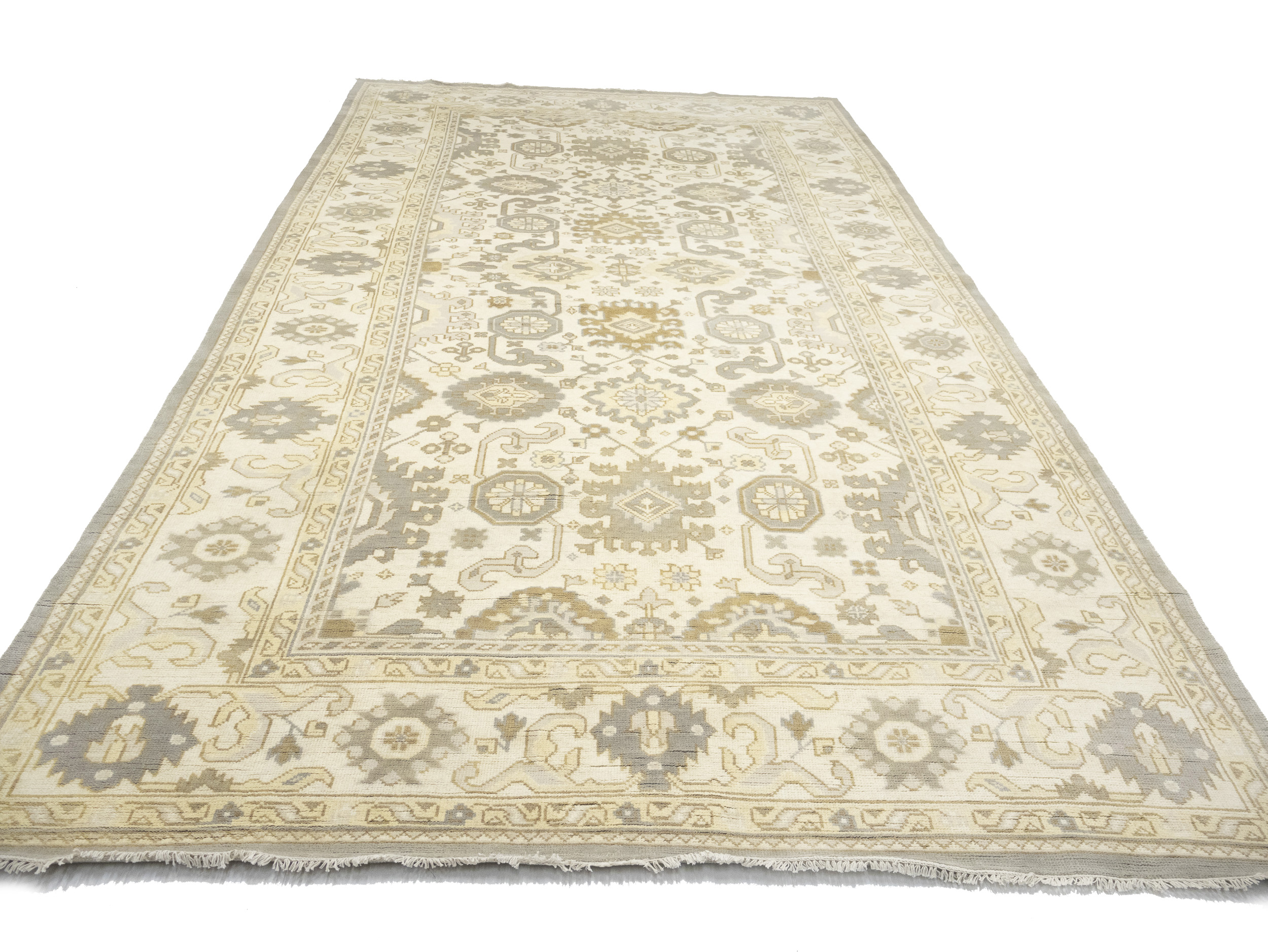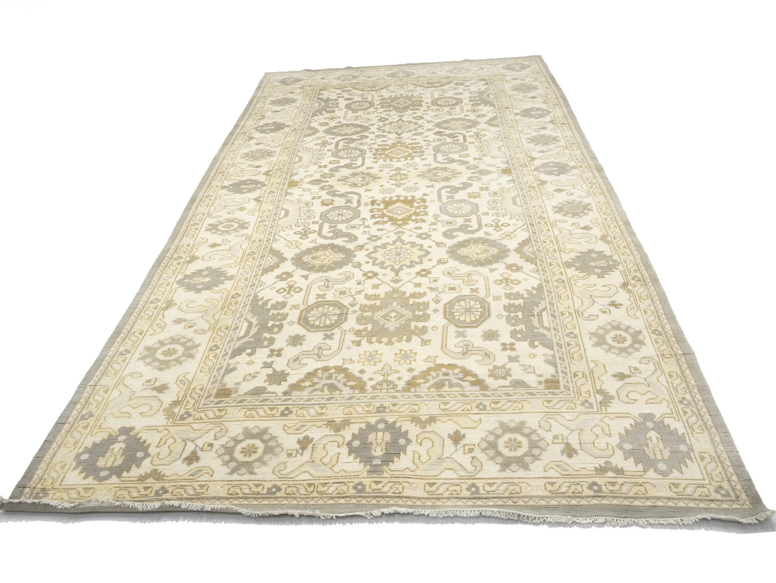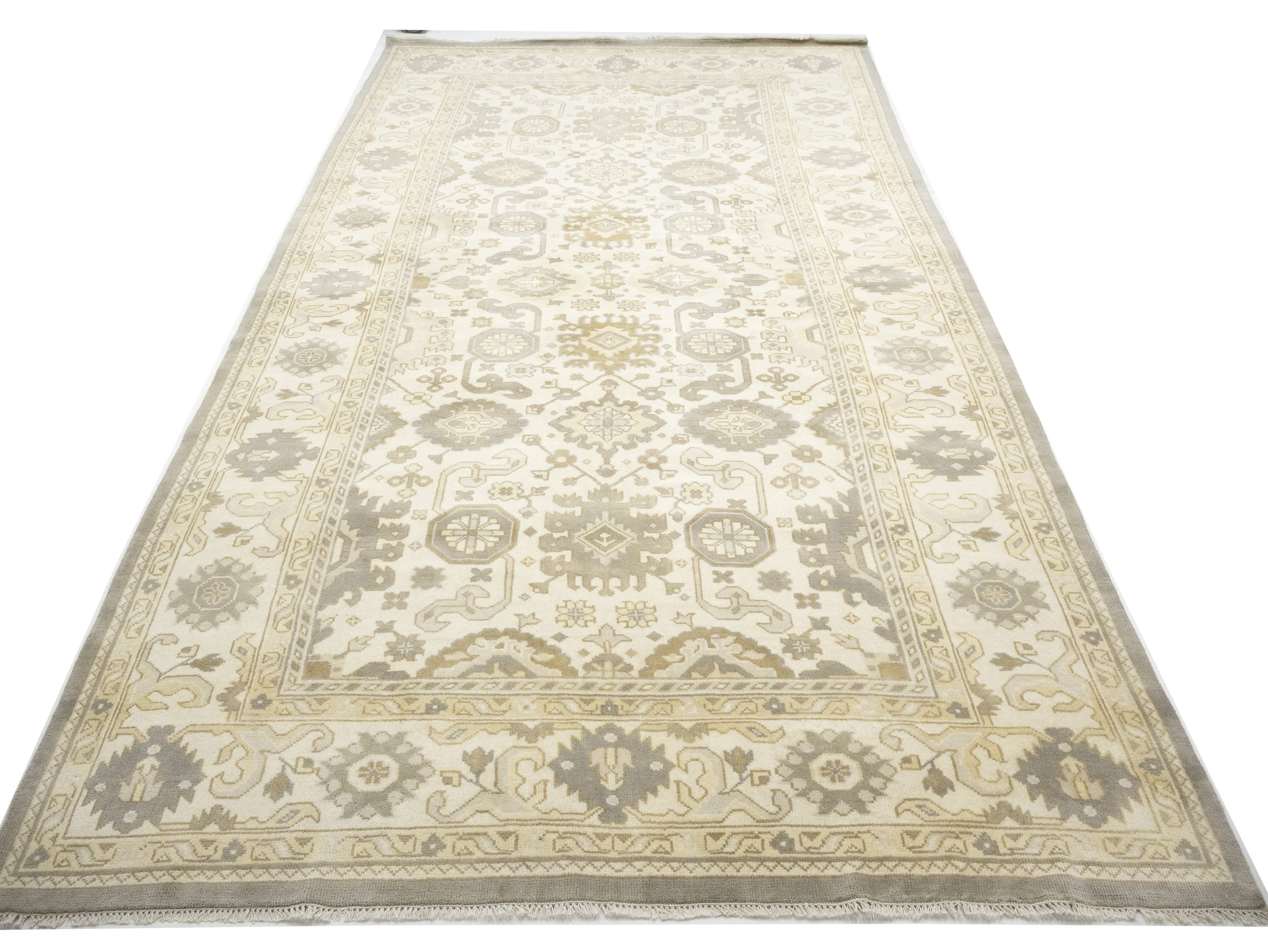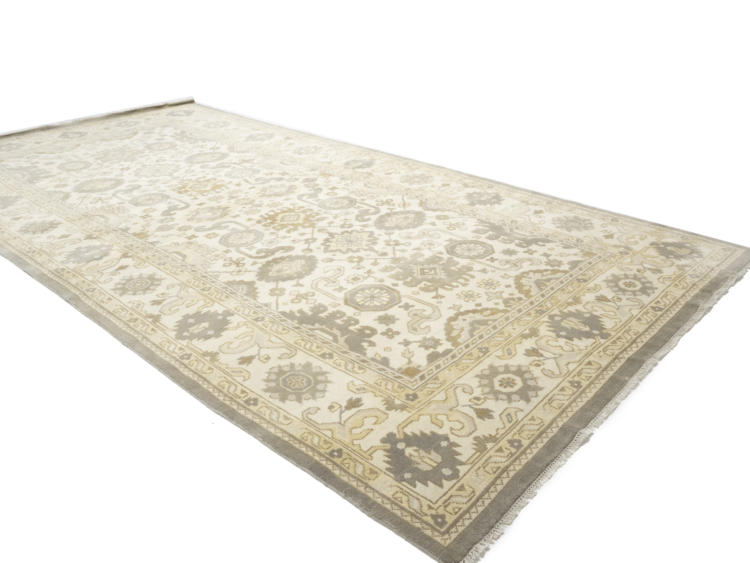Cream Floral 9X18 Oushak Chobi Oriental Rug