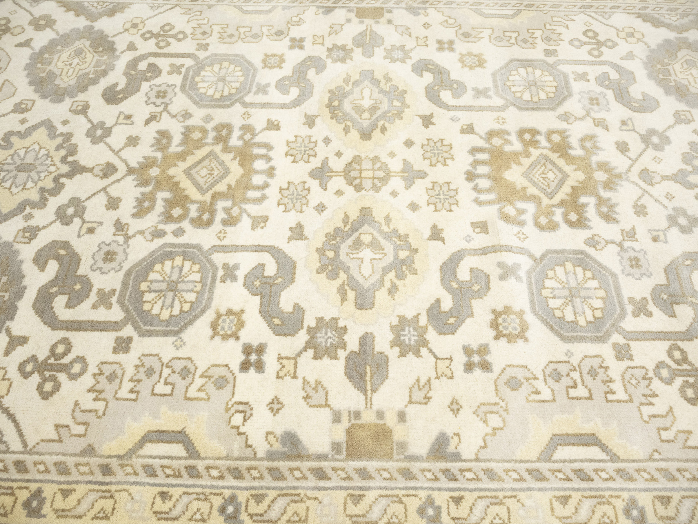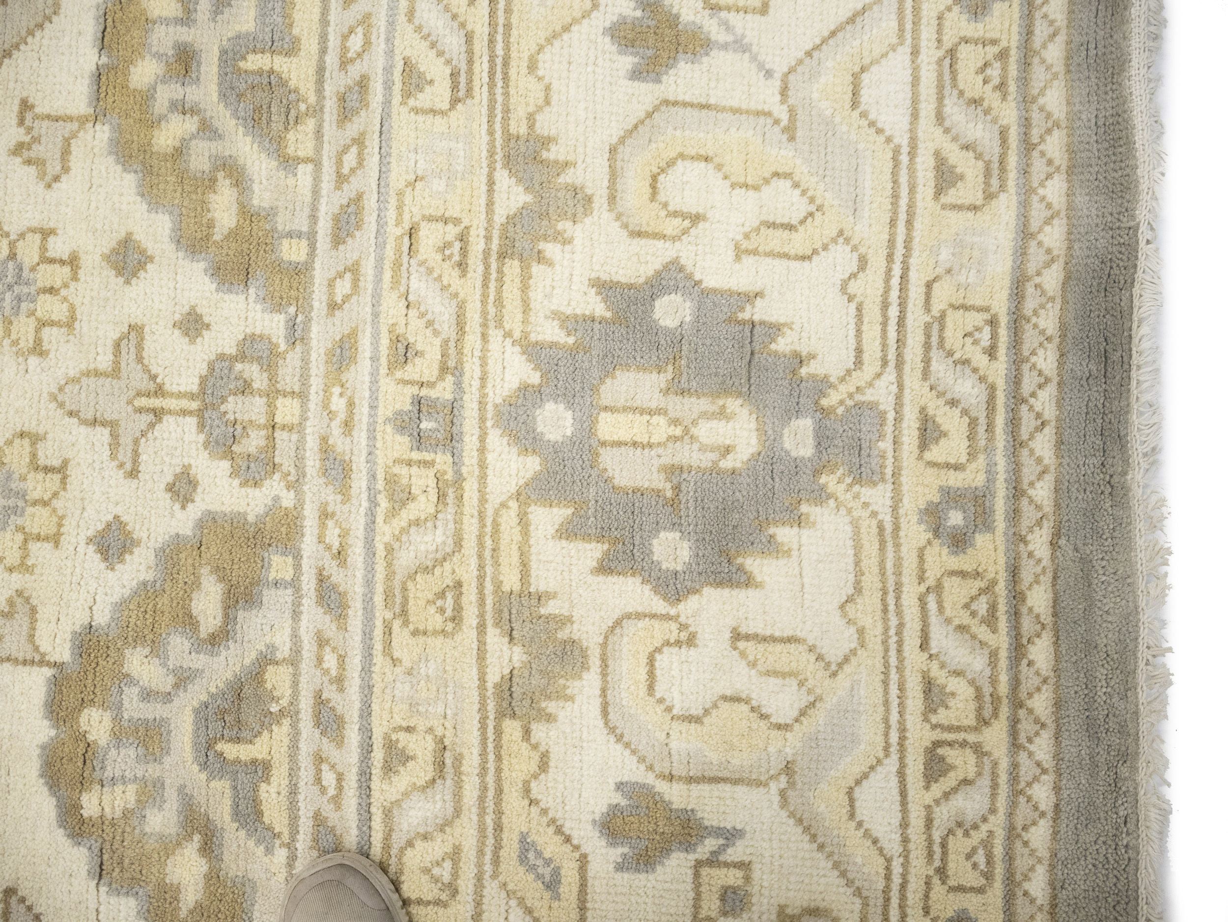 This original 9X18 cream new Oriental rug was finely knotted by the hands of weavers influenced by a variety of amazing artistic designs, to recreate the aged look of the exceptional piece with a richness of color and embellished background field. What set this vintage style Oriental area rug from the others are the material and dye used (wool pile and cotton foundation), knot count, antique designs, fantastic grades, and its regional historical connection: it has deep roots, from the story of the people who produced it to the meaning of the symbols and colors displayed across its canvas that have been praised for centuries. This Indian home décor carpet will be completely cozy and inviting that never will go out of style! Also, this Oriental rug would be among your most valuable treasures, it is a great investment that increase in value over time, and it will last a lifetime because was woven with high-quality, all-natural wool. Eco-friendly, opulent yet affordable; this rug will give you an extra pop of character to help define your home environment with luxury and warmth that will capture the eyes and attention of your audience (homeowners, designers, decorators, family and friends).