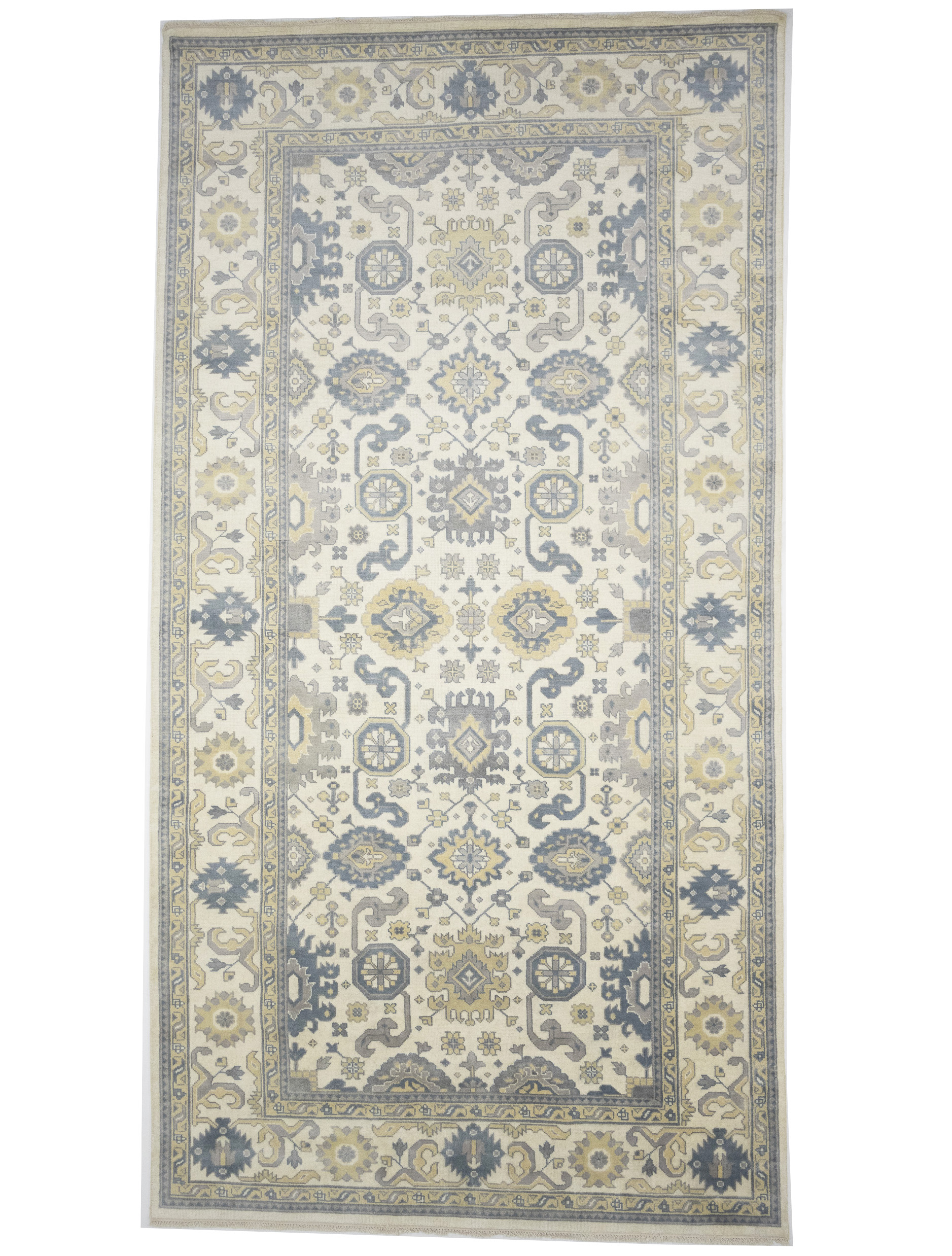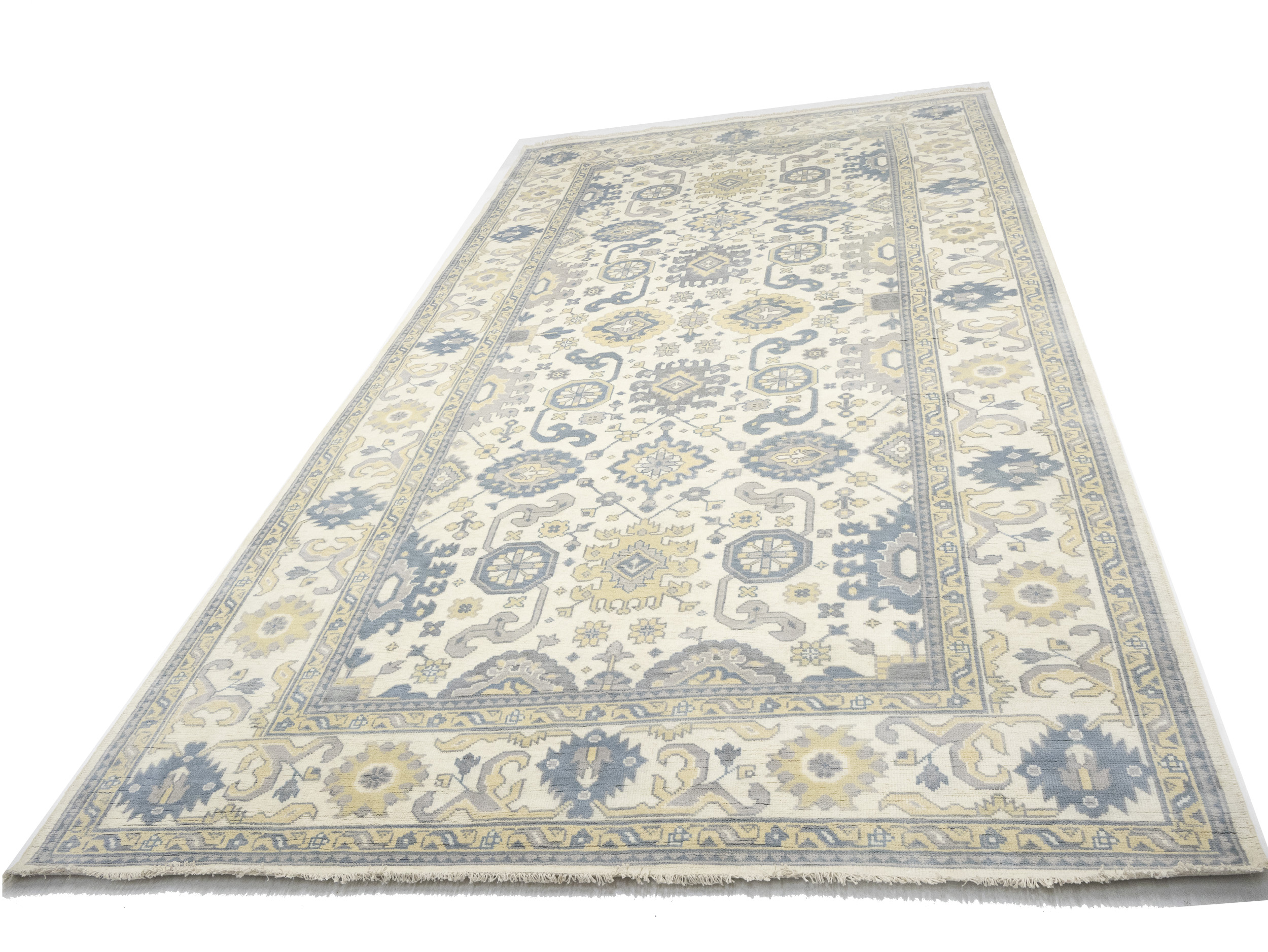 Cream Floral 9X18 Oushak Chobi Oriental Rug