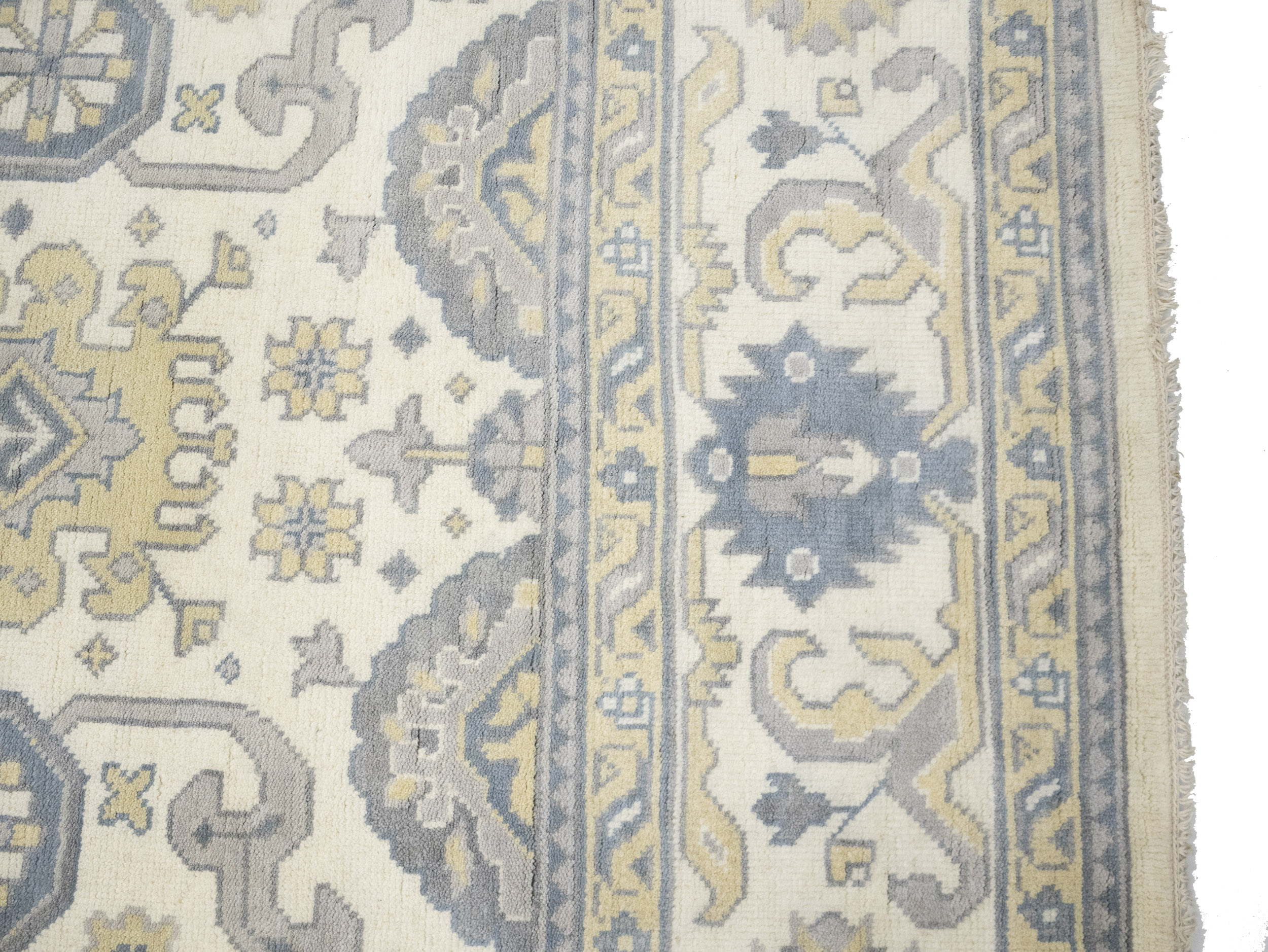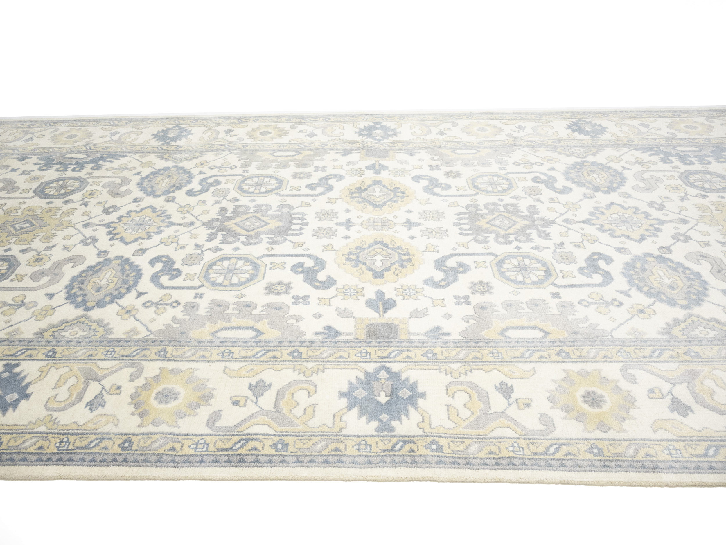 This original 9X18 cream new Oriental rug was finely knotted by the hands of weavers influenced by a variety of amazing artistic designs, to recreate the aged look of the exceptional piece with a richness of color and embellished background field. What set this vintage style Oriental area rug from the others are the material and dye used (wool pile and cotton foundation), knot count, antique designs, fantastic grades, and its regional historical connection: it has deep roots, from the story of the people who produced it to the meaning of the symbols and colors displayed across its canvas that have been praised for centuries. This Indian home décor carpet will be completely cozy and inviting that never will go out of style! Also, this Oriental rug would be among your most valuable treasures, it is a great investment that increase in value over time, and it will last a lifetime because was woven with high-quality, all-natural wool. Eco-friendly, opulent yet affordable; this rug will give you an extra pop of character to help define your home environment with luxury and warmth that will capture the eyes and attention of your audience (homeowners, designers, decorators, family and friends).