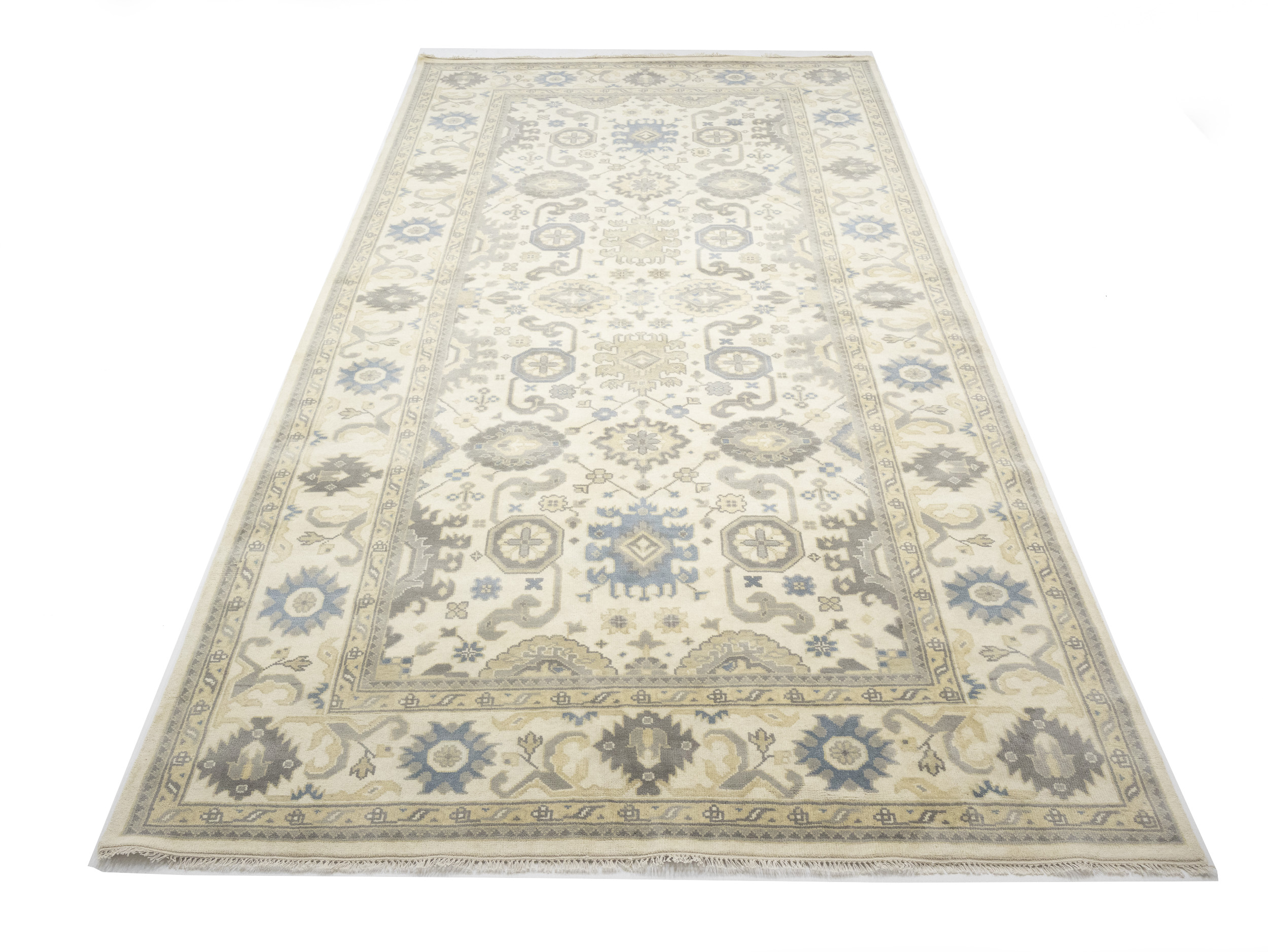 Hand Knotted 9X18 cream oriental rug made with natural dyes (fine wool pile and cotton foundation), superior knot count, and alluring ancient designs. This Oriental rug never will go out of style and would be among your most valuable treasures.