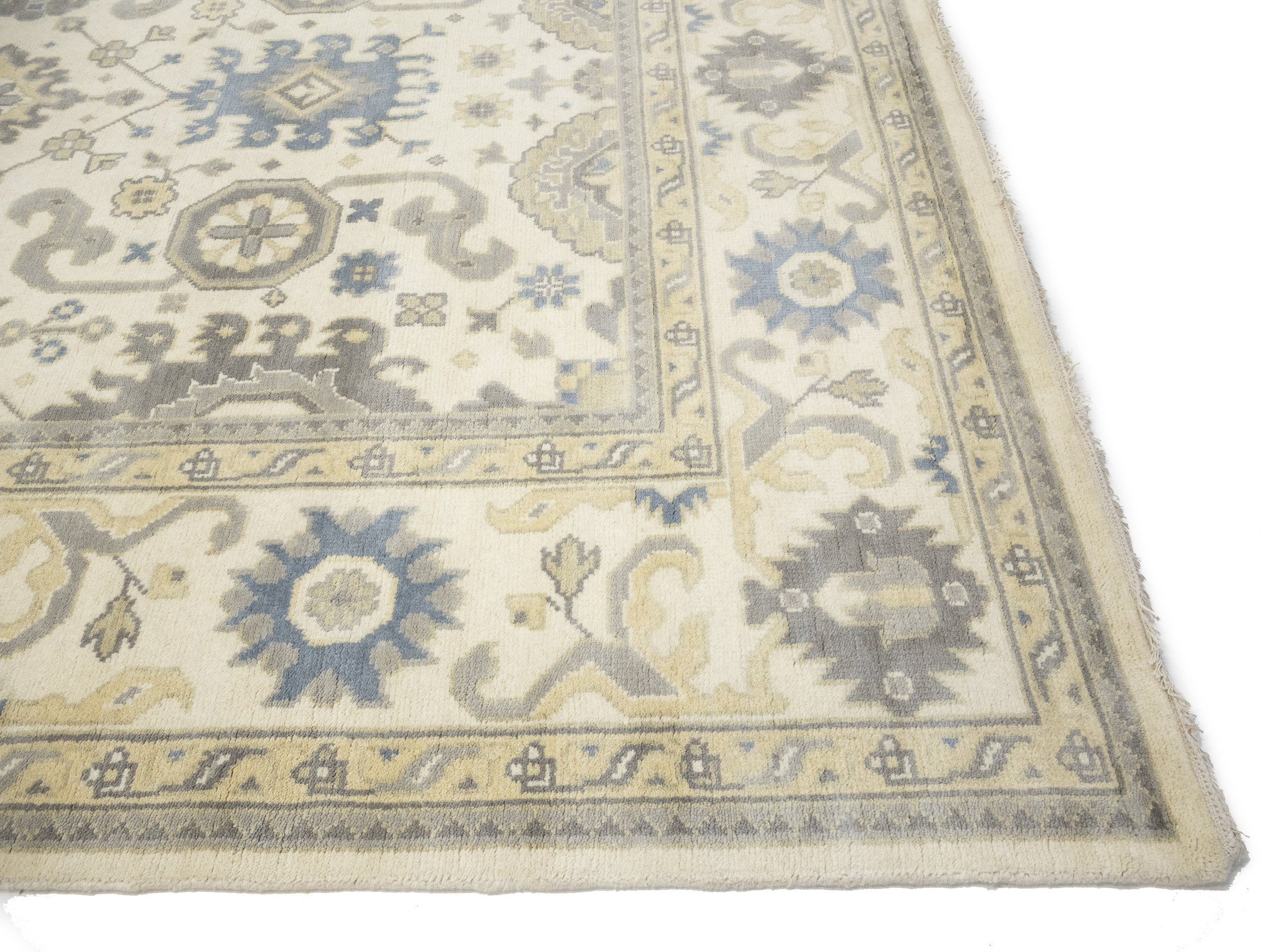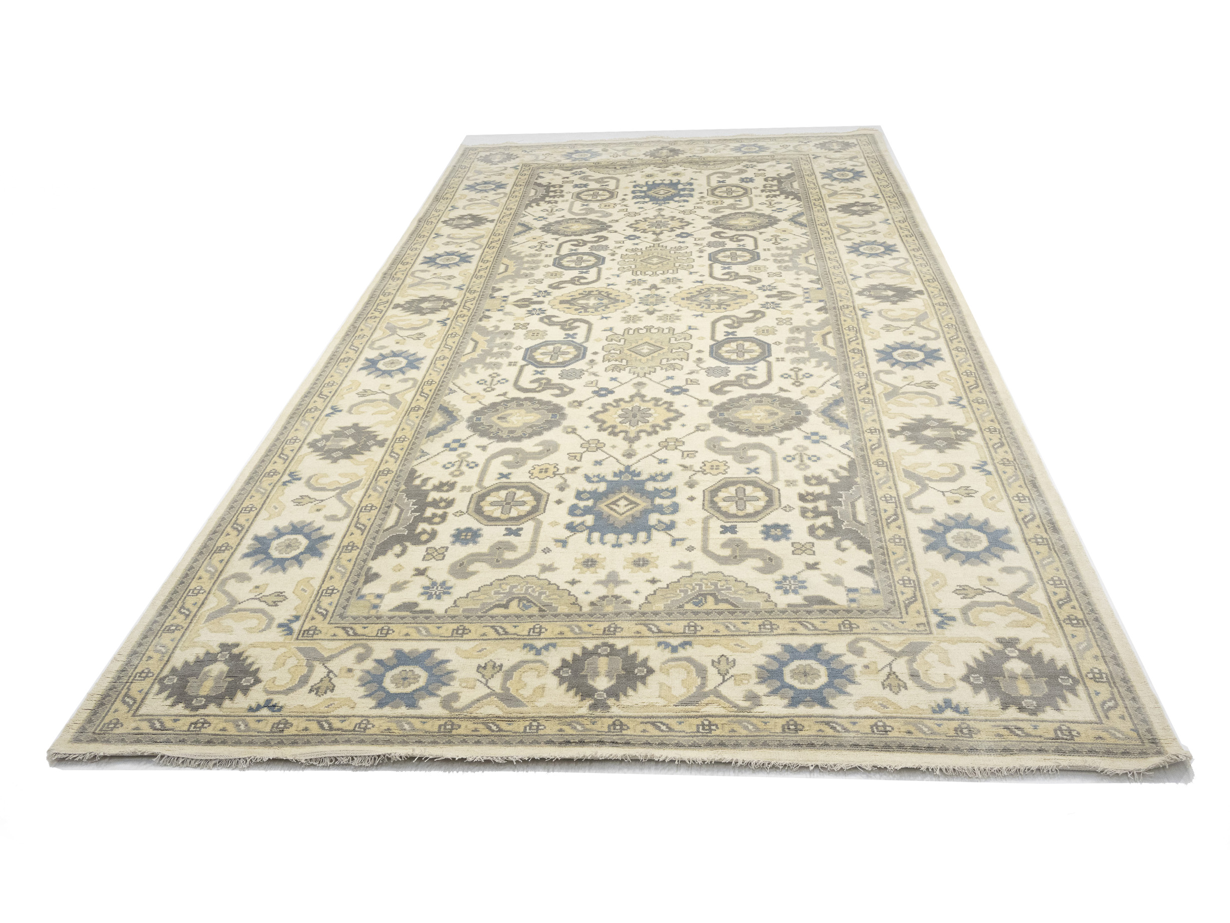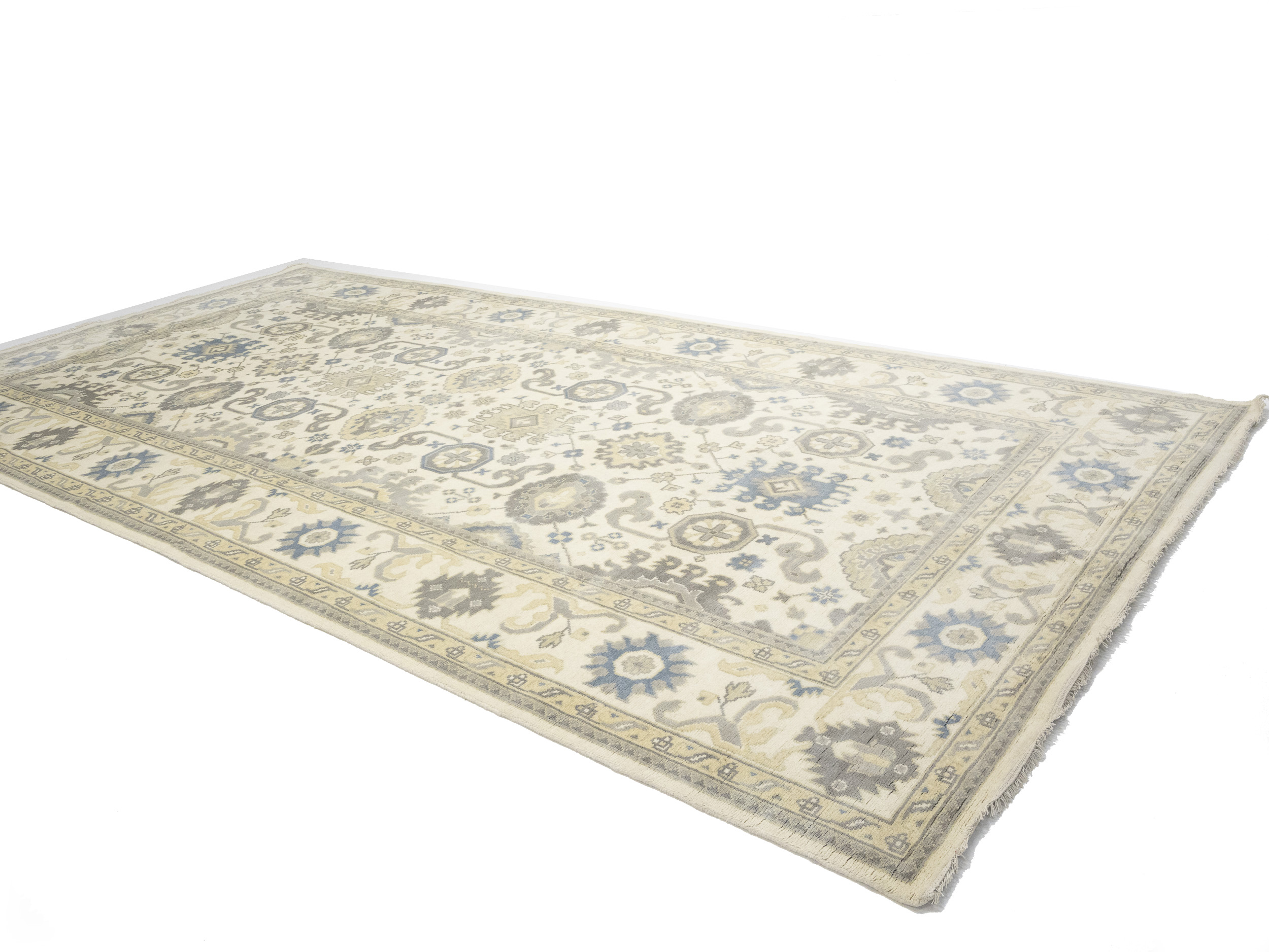 Cream Floral 9X18 Oushak Chobi Oriental Rug