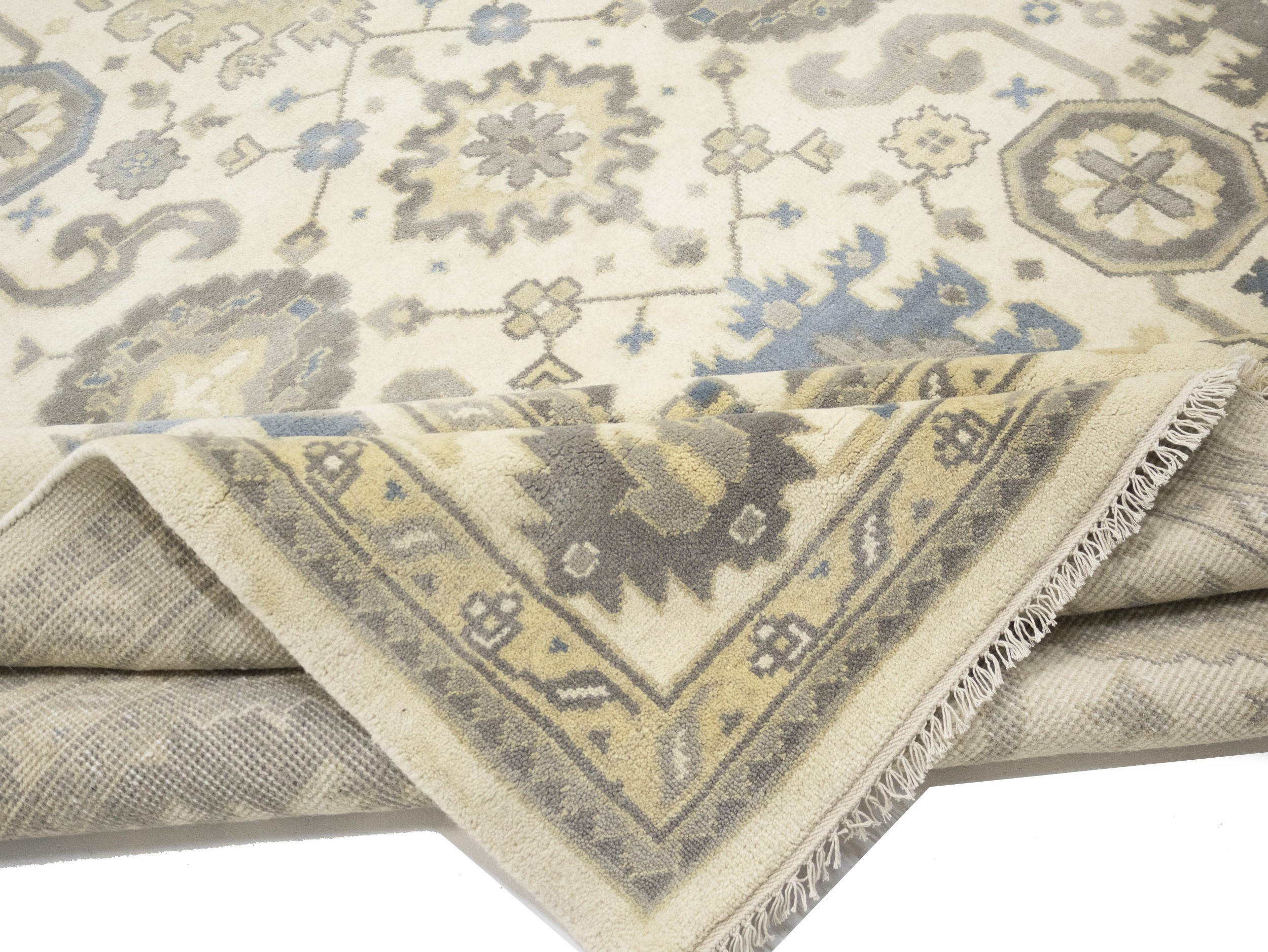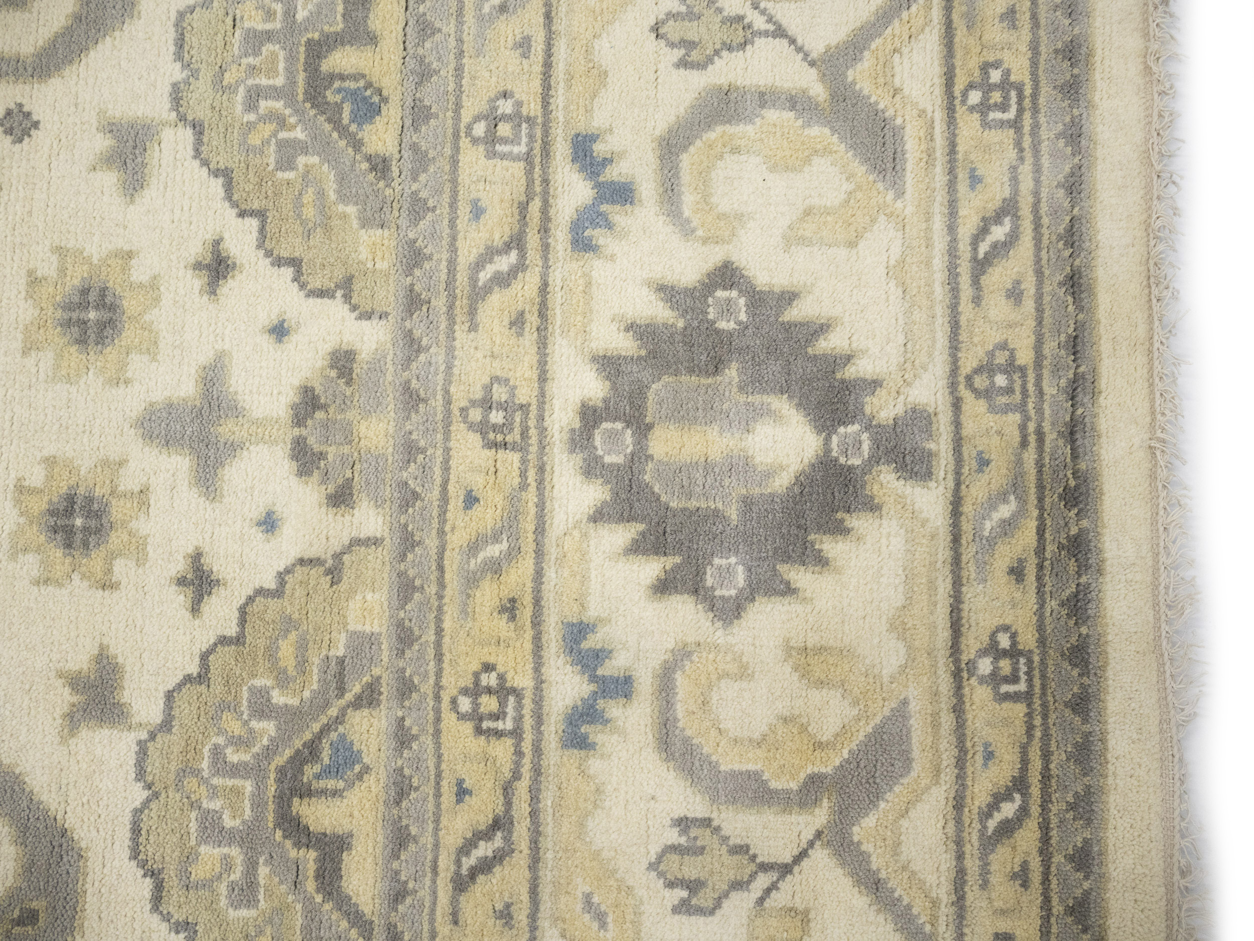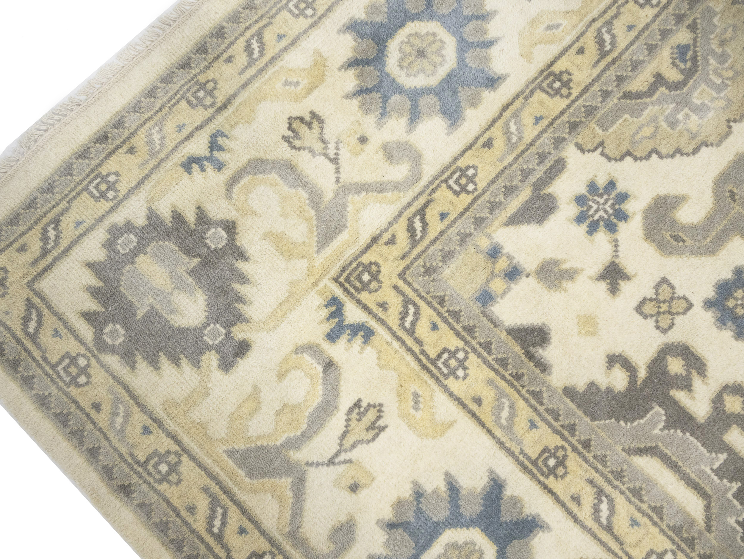 This original 9X18 cream new Oriental rug was finely knotted by the hands of weavers influenced by a variety of amazing artistic designs, to recreate the aged look of the exceptional piece with a richness of color and embellished background field. What set this vintage style Oriental area rug from the others are the material and dye used (wool pile and cotton foundation), knot count, antique designs, fantastic grades, and its regional historical connection: it has deep roots, from the story of the people who produced it to the meaning of the symbols and colors displayed across its canvas that have been praised for centuries. This Indian home décor carpet will be completely cozy and inviting that never will go out of style! Also, this Oriental rug would be among your most valuable treasures, it is a great investment that increase in value over time, and it will last a lifetime because was woven with high-quality, all-natural wool. Eco-friendly, opulent yet affordable; this rug will give you an extra pop of character to help define your home environment with luxury and warmth that will capture the eyes and attention of your audience (homeowners, designers, decorators, family and friends).