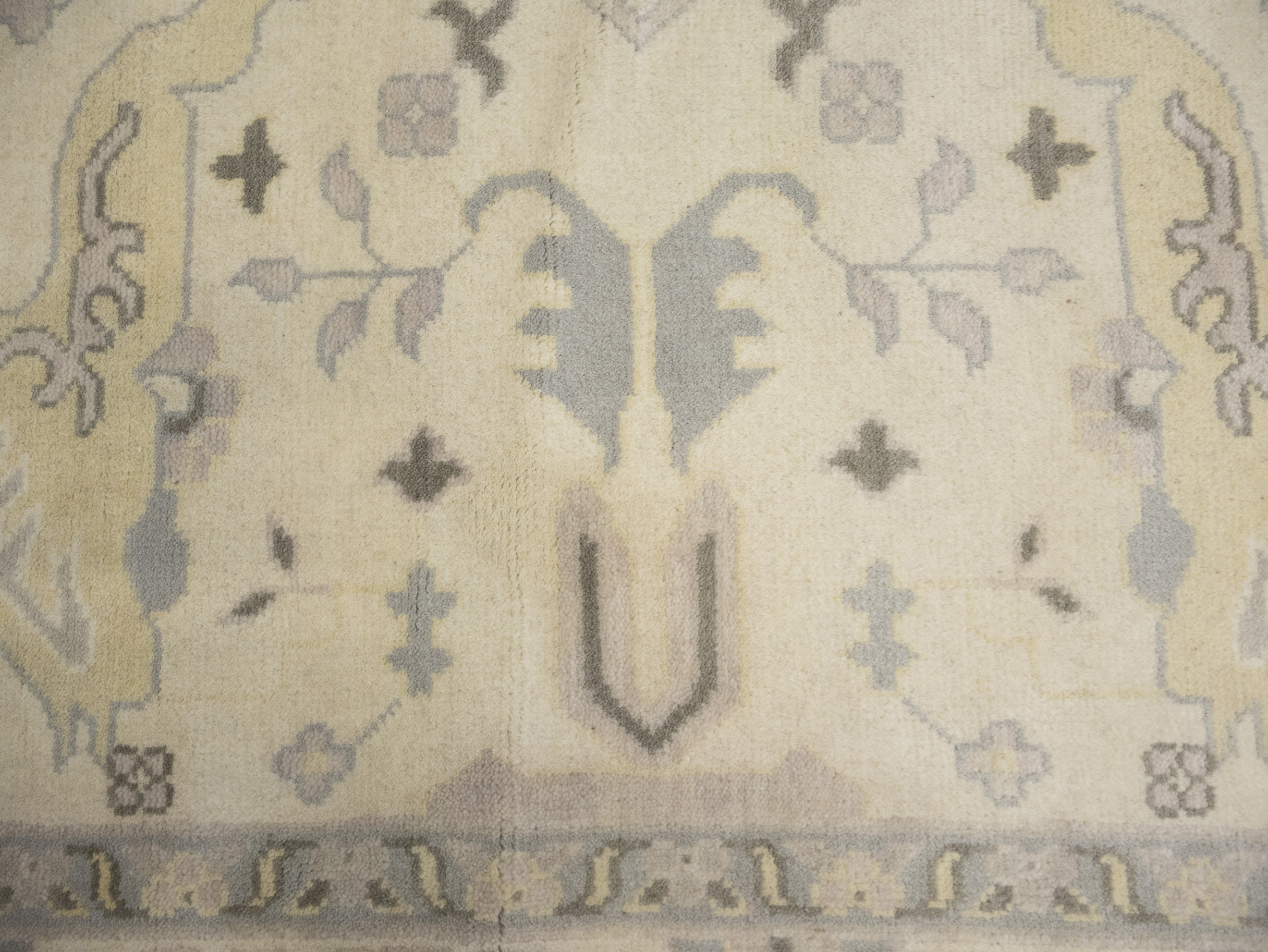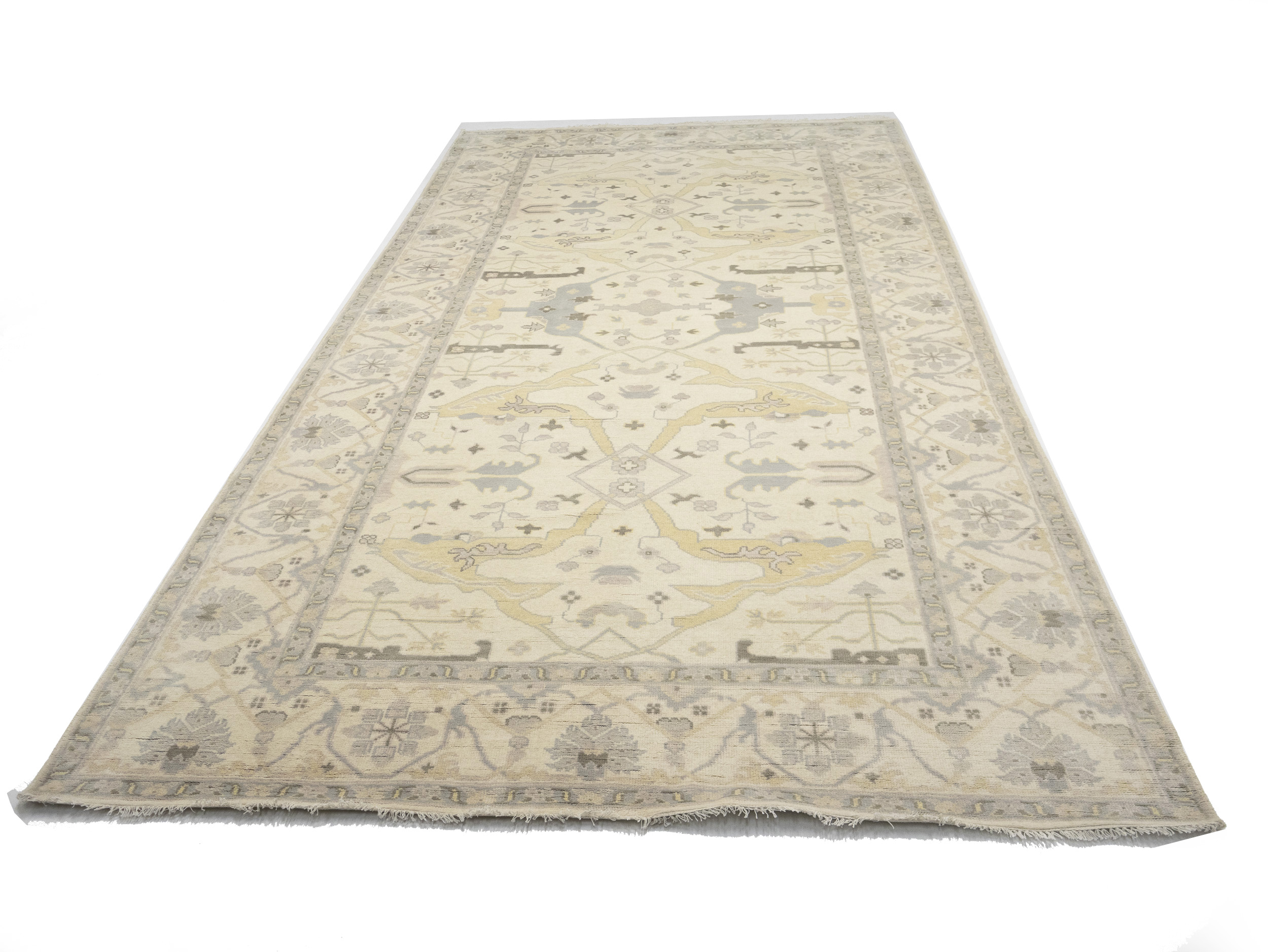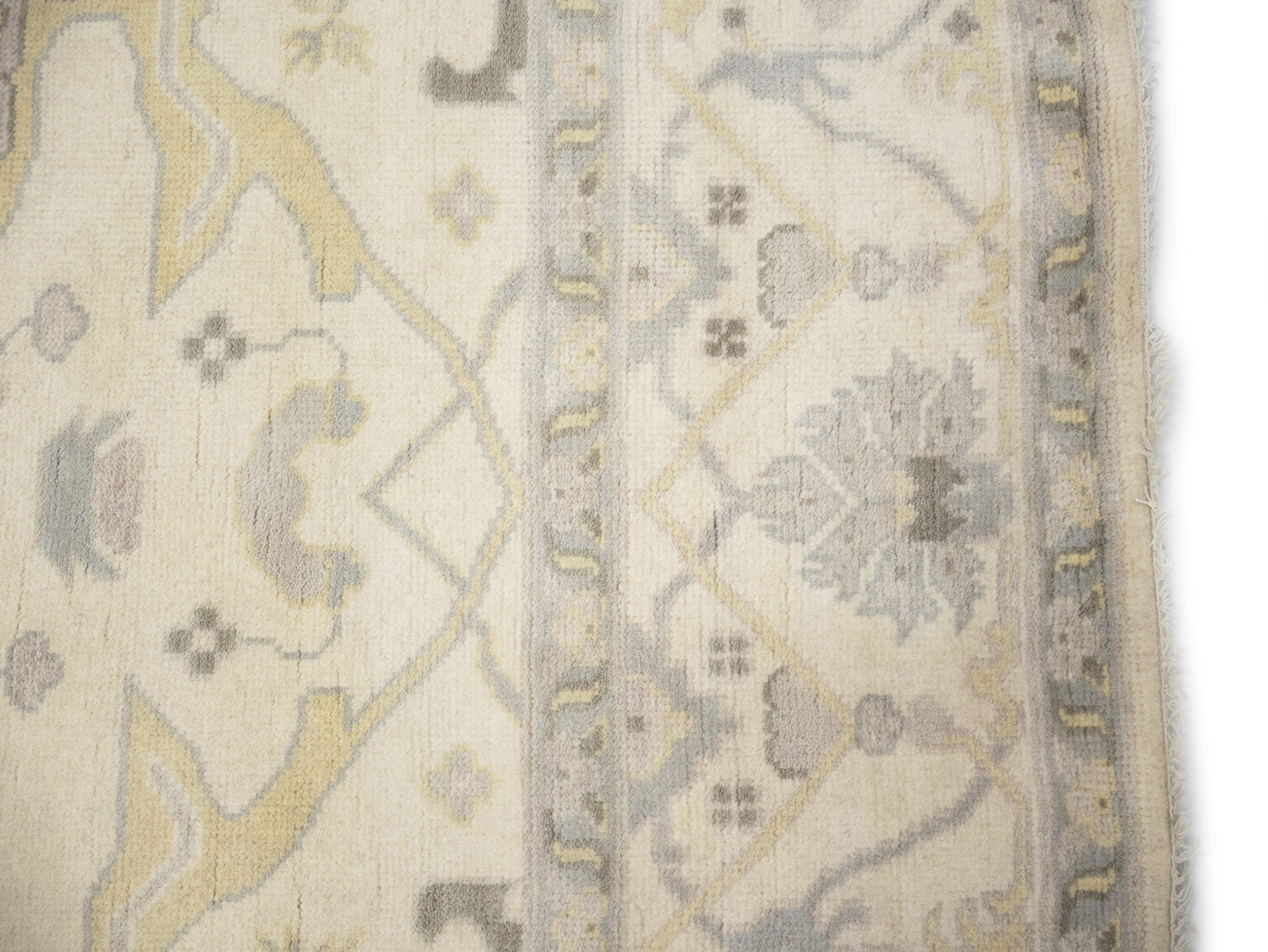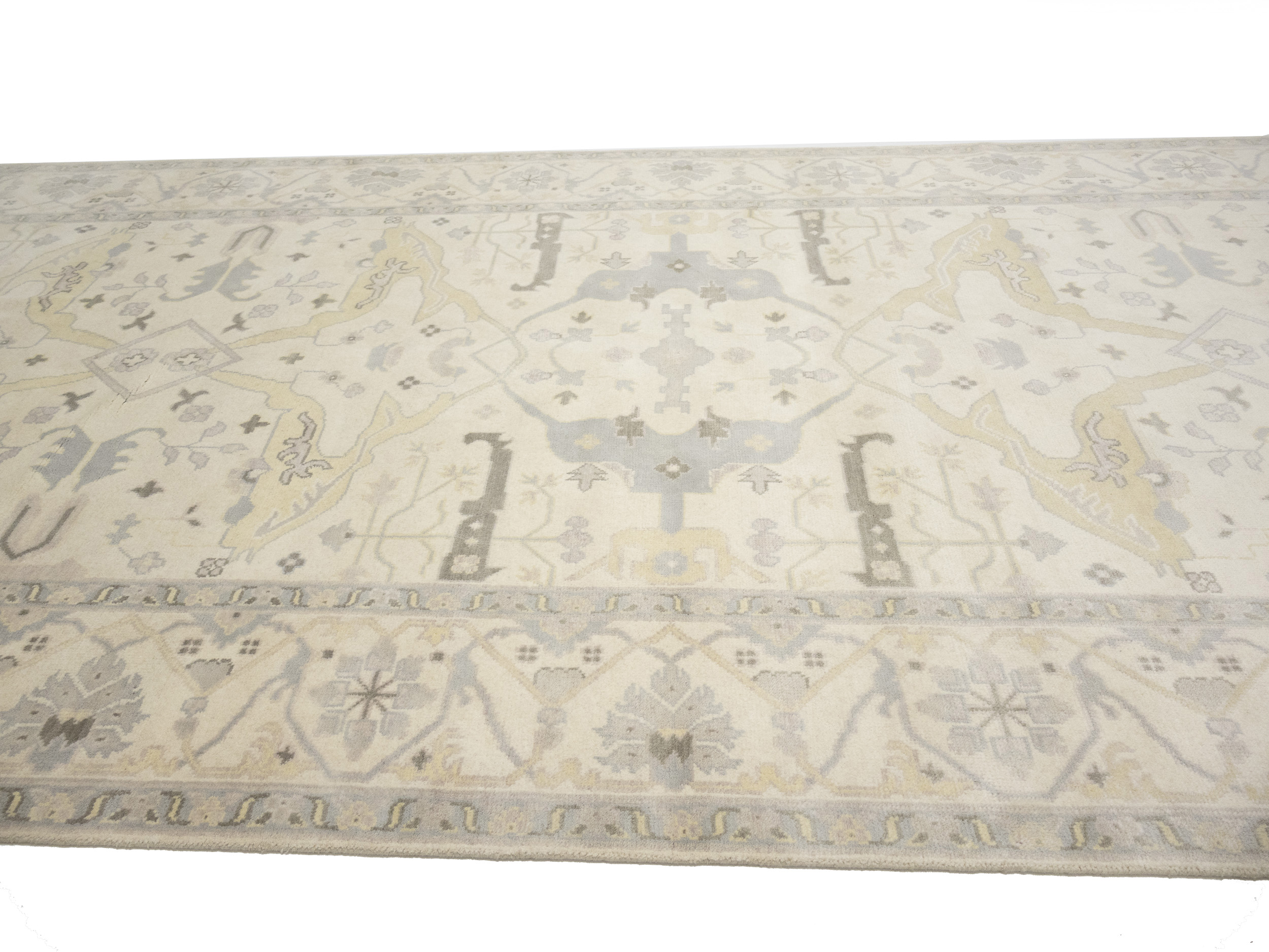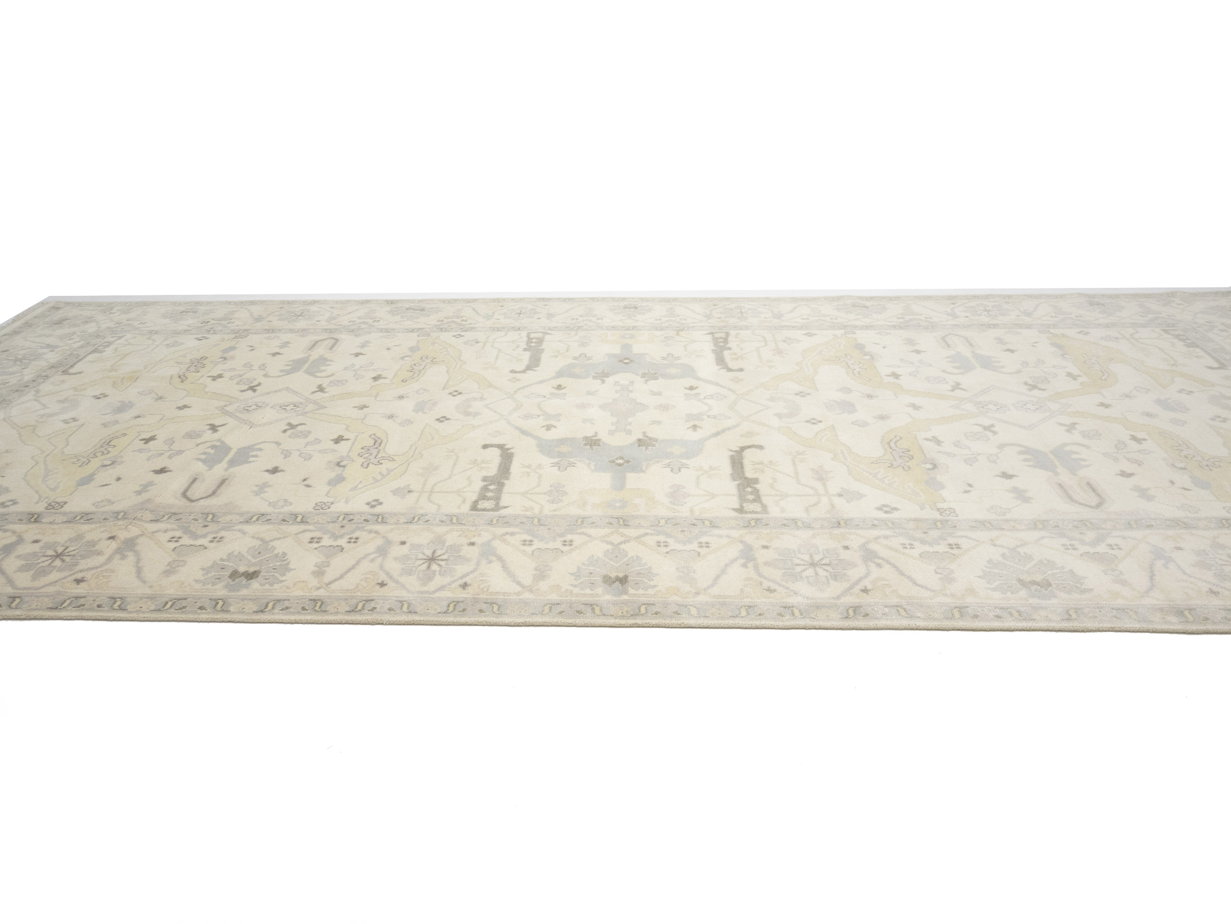 This original 9X18 cream new Oriental rug was finely knotted by the hands of weavers influenced by a variety of amazing artistic designs, to recreate the aged look of the exceptional piece with a richness of color and embellished background field. What set this vintage style Oriental area rug from the others are the material and dye used (wool pile and cotton foundation), knot count, antique designs, fantastic grades, and its regional historical connection: it has deep roots, from the story of the people who produced it to the meaning of the symbols and colors displayed across its canvas that have been praised for centuries. This Indian home décor carpet will be completely cozy and inviting that never will go out of style! Also, this Oriental rug would be among your most valuable treasures, it is a great investment that increase in value over time, and it will last a lifetime because was woven with high-quality, all-natural wool. Eco-friendly, opulent yet affordable; this rug will give you an extra pop of character to help define your home environment with luxury and warmth that will capture the eyes and attention of your audience (homeowners, designers, decorators, family and friends).