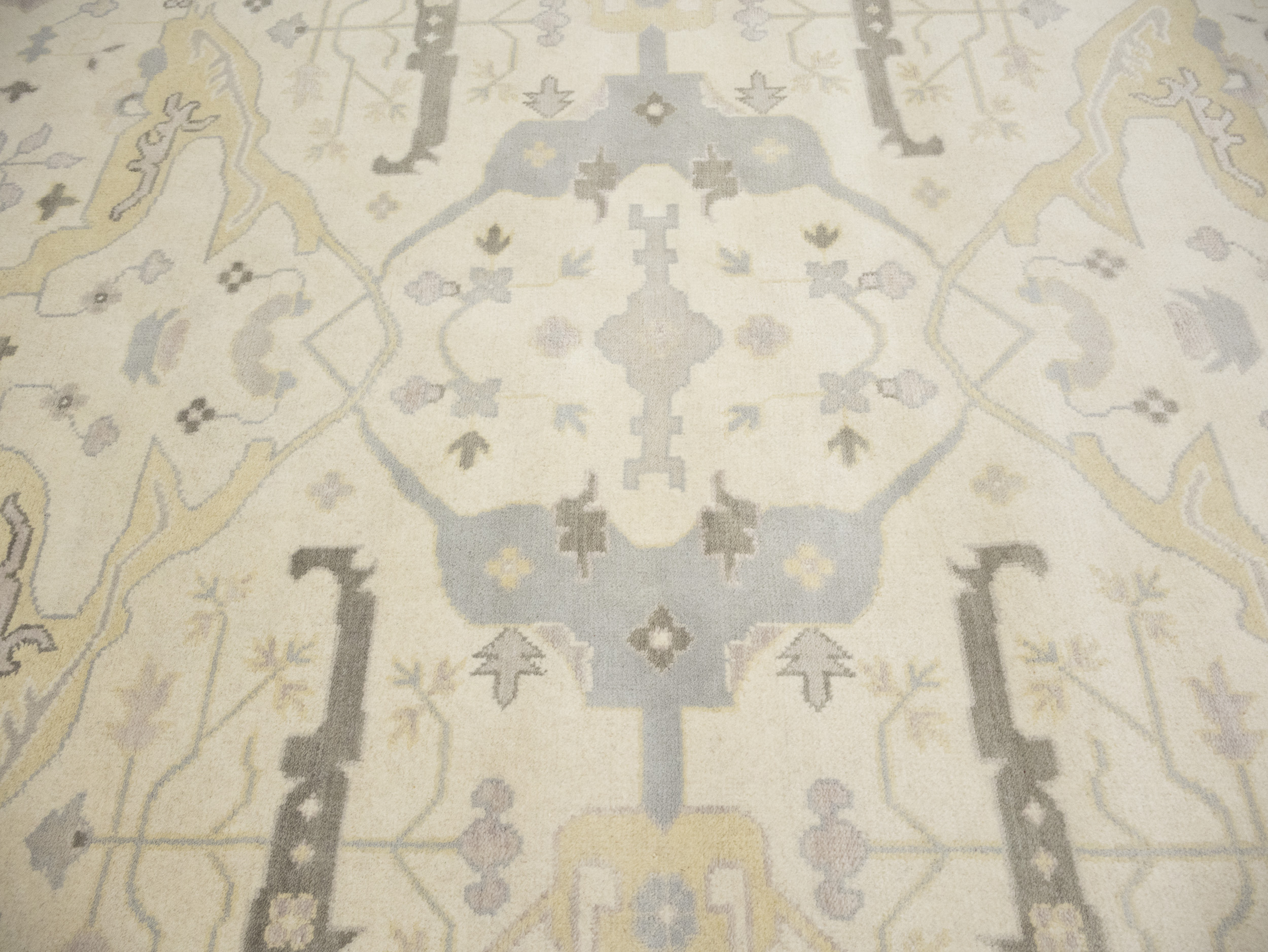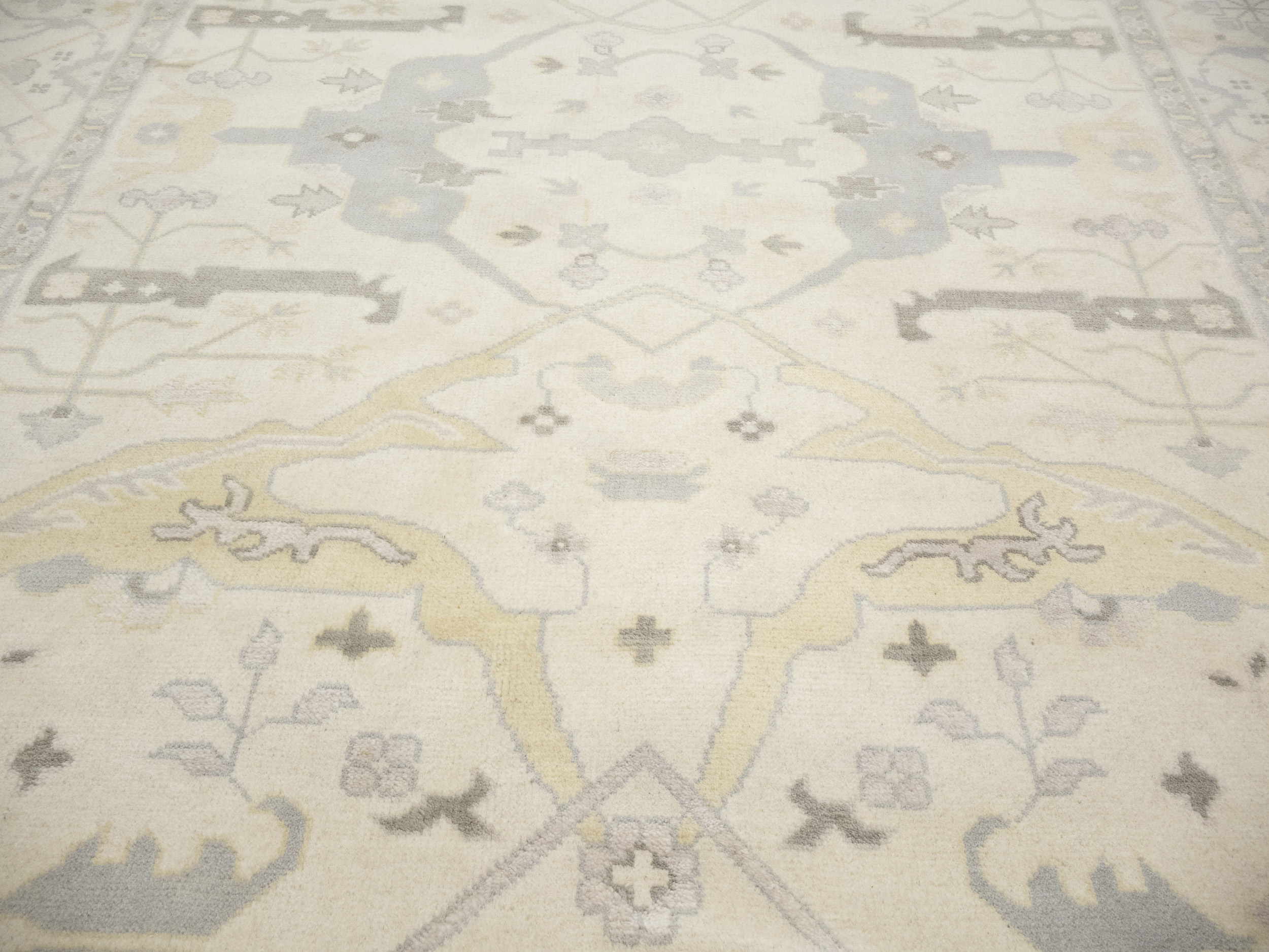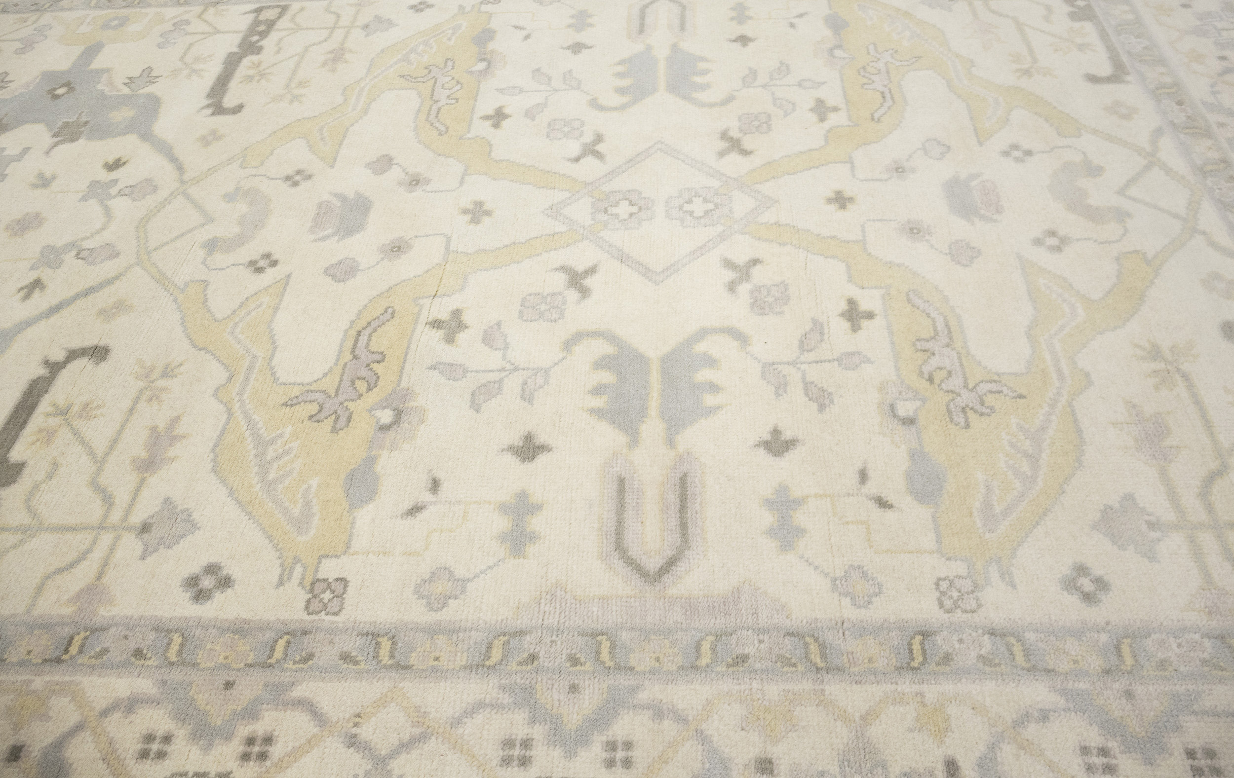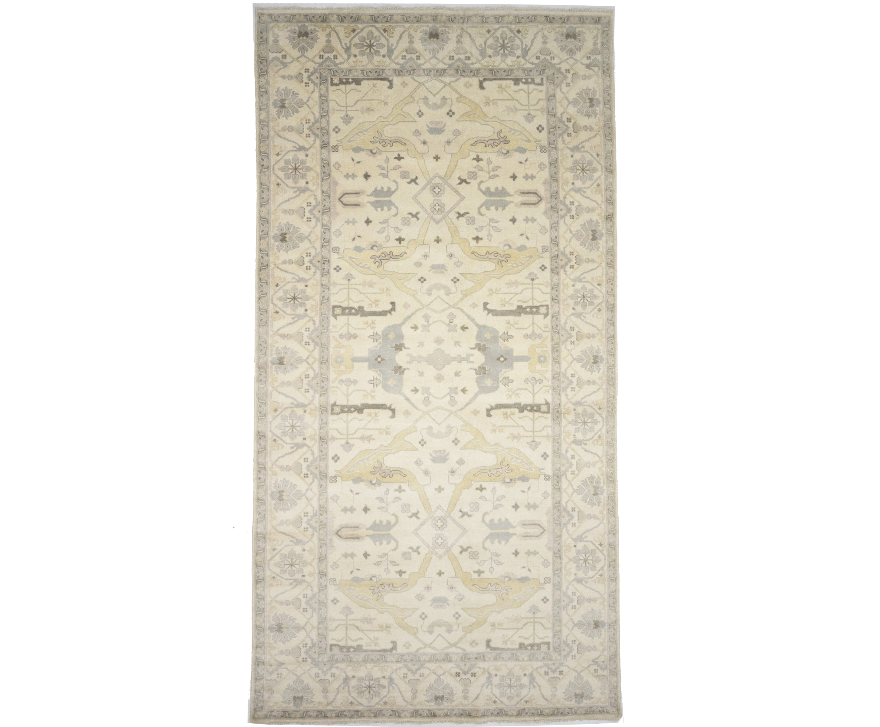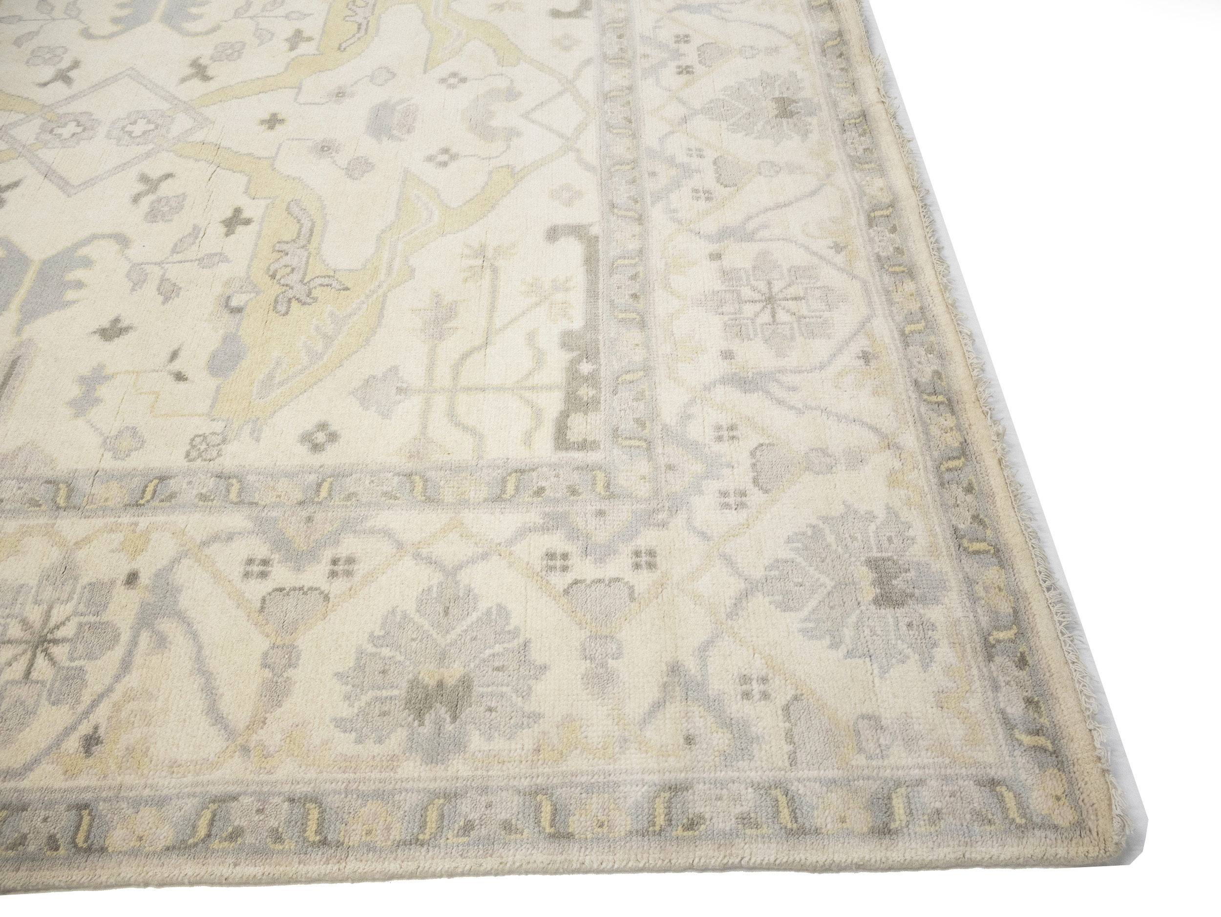 This original 9X18 cream new Oriental rug was finely knotted by the hands of weavers influenced by a variety of amazing artistic designs, to recreate the aged look of the exceptional piece with a richness of color and embellished background field. What set this vintage style Oriental area rug from the others are the material and dye used (wool pile and cotton foundation), knot count, antique designs, fantastic grades, and its regional historical connection: it has deep roots, from the story of the people who produced it to the meaning of the symbols and colors displayed across its canvas that have been praised for centuries. This Indian home décor carpet will be completely cozy and inviting that never will go out of style! Also, this Oriental rug would be among your most valuable treasures, it is a great investment that increase in value over time, and it will last a lifetime because was woven with high-quality, all-natural wool. Eco-friendly, opulent yet affordable; this rug will give you an extra pop of character to help define your home environment with luxury and warmth that will capture the eyes and attention of your audience (homeowners, designers, decorators, family and friends).