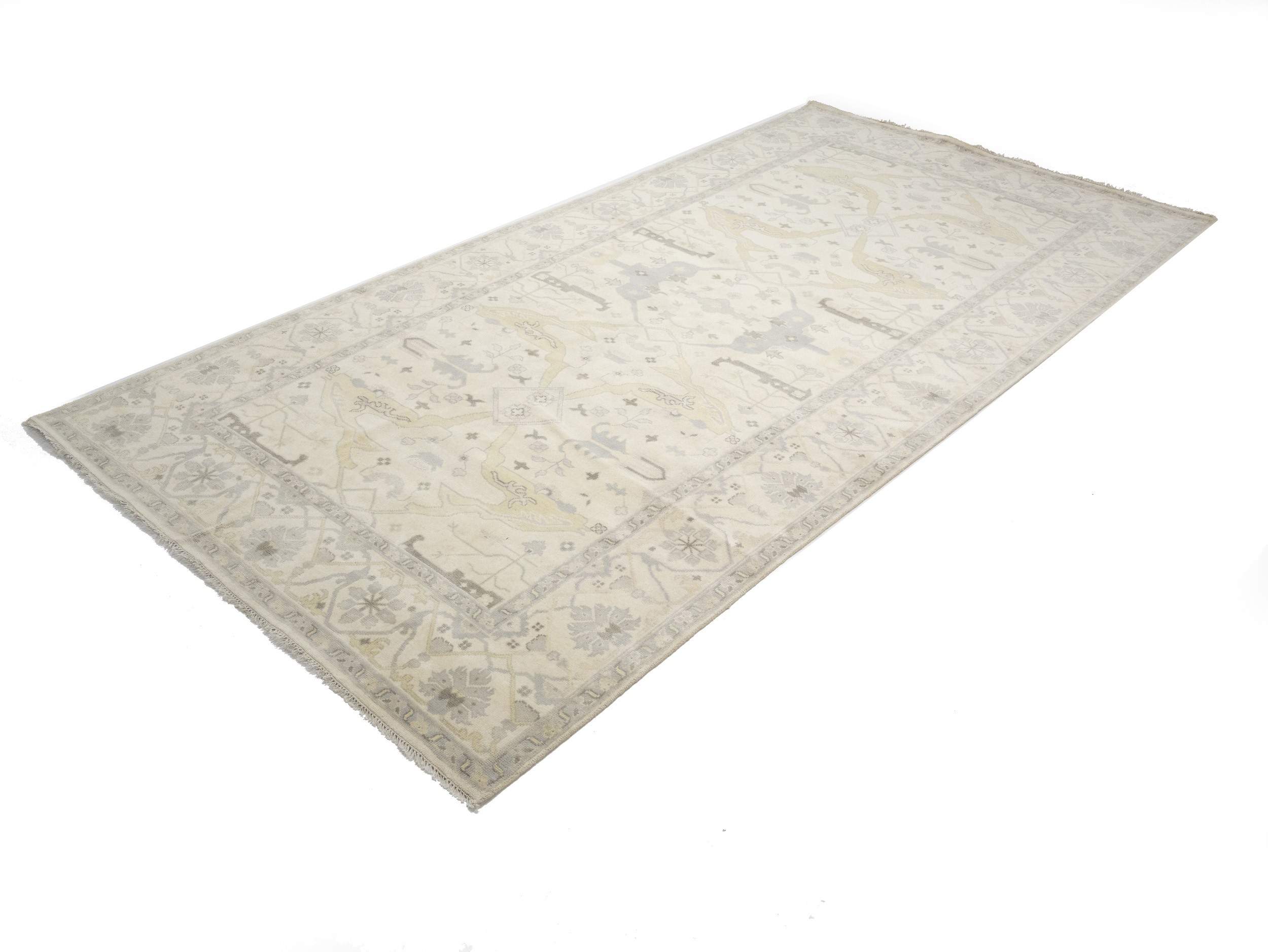 Hand Knotted 9X18 cream oriental rug made with natural dyes (fine wool pile and cotton foundation), superior knot count, and alluring ancient designs. This Oriental rug never will go out of style and would be among your most valuable treasures.