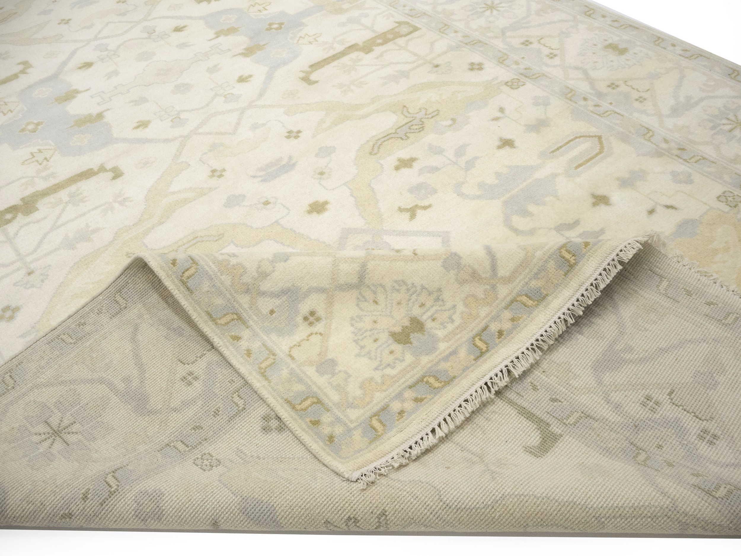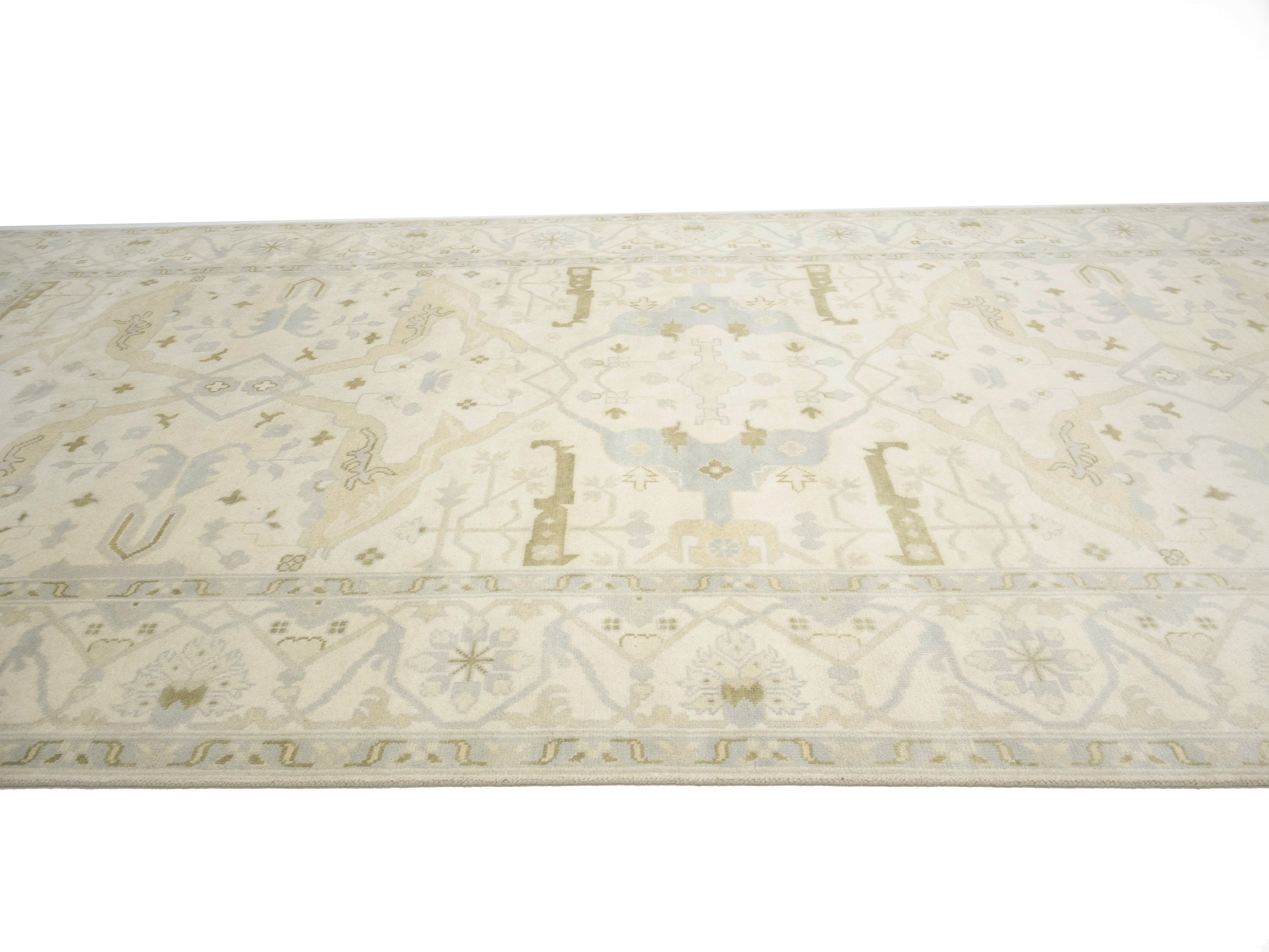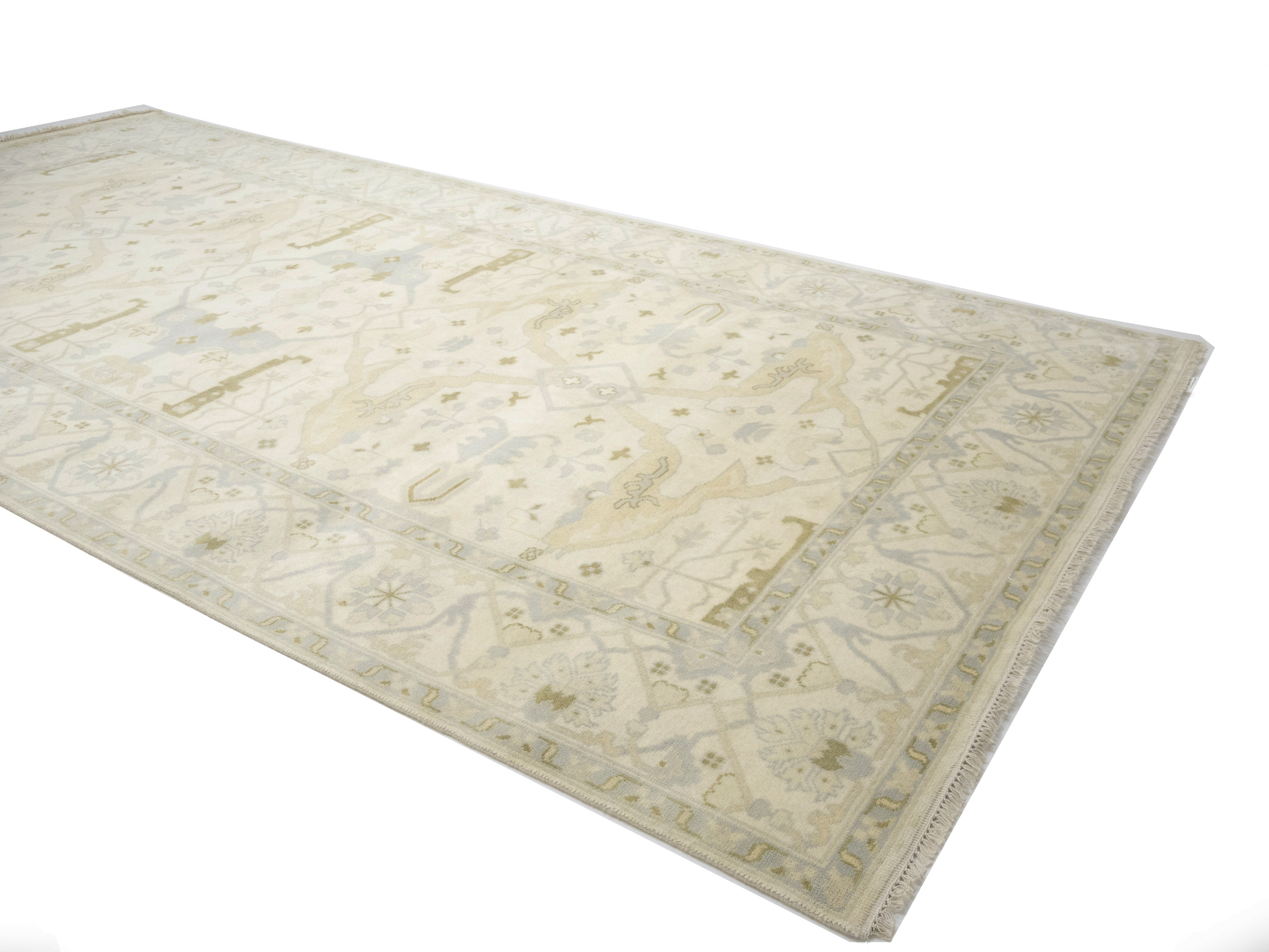 This original 9X18 cream new Oriental rug was finely knotted by the hands of weavers influenced by a variety of amazing artistic designs, to recreate the aged look of the exceptional piece with a richness of color and embellished background field. What set this vintage style Oriental area rug from the others are the material and dye used (wool pile and cotton foundation), knot count, antique designs, fantastic grades, and its regional historical connection: it has deep roots, from the story of the people who produced it to the meaning of the symbols and colors displayed across its canvas that have been praised for centuries. This Indian home décor carpet will be completely cozy and inviting that never will go out of style! Also, this Oriental rug would be among your most valuable treasures, it is a great investment that increase in value over time, and it will last a lifetime because was woven with high-quality, all-natural wool. Eco-friendly, opulent yet affordable; this rug will give you an extra pop of character to help define your home environment with luxury and warmth that will capture the eyes and attention of your audience (homeowners, designers, decorators, family and friends).