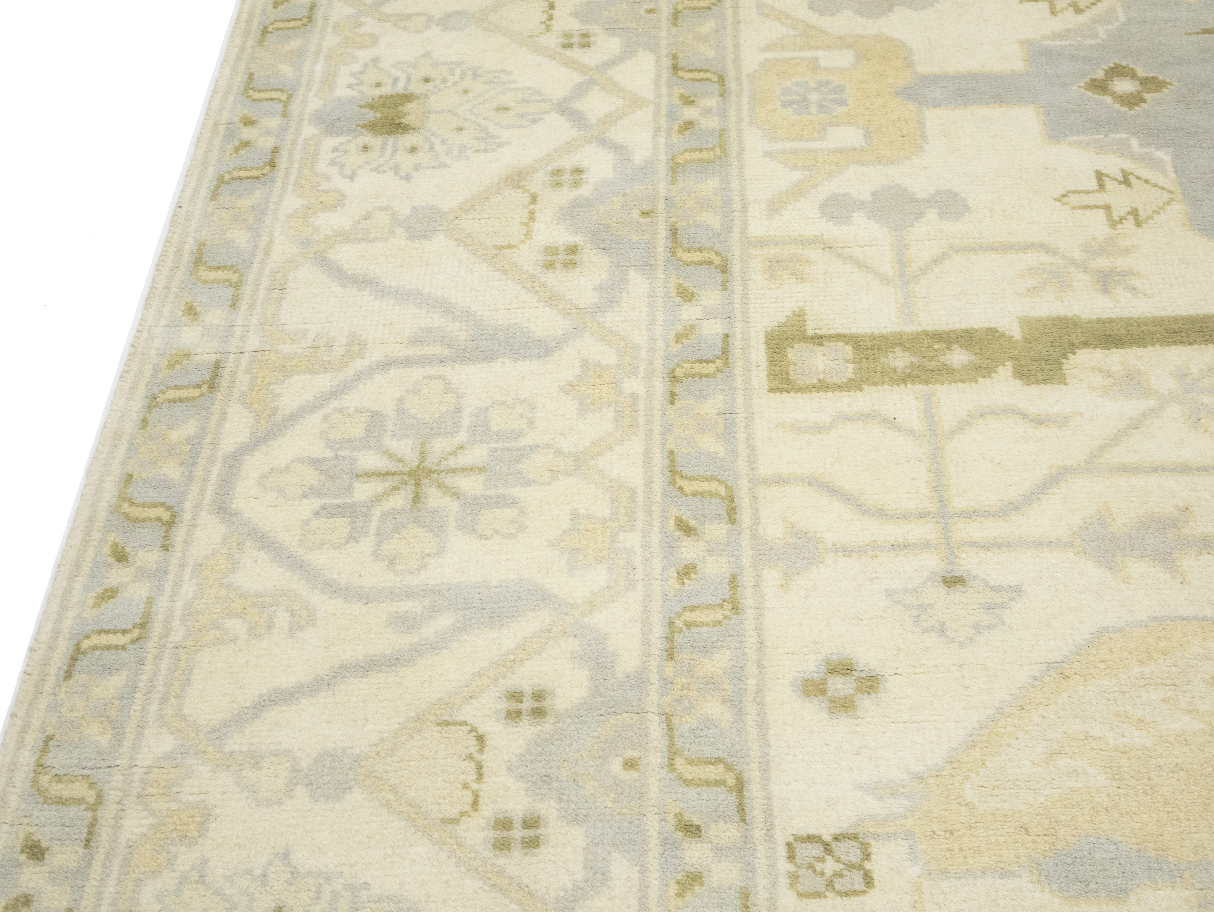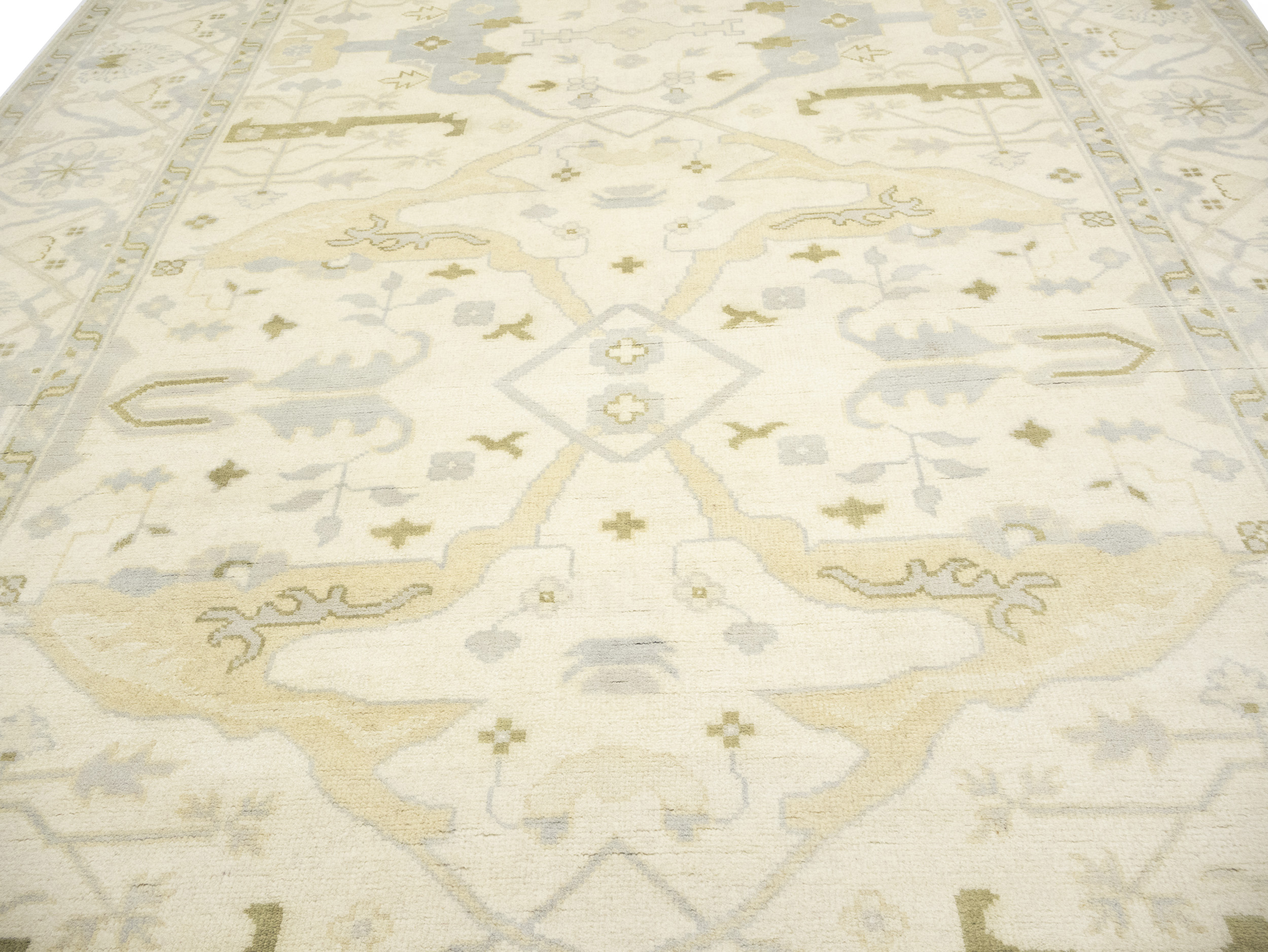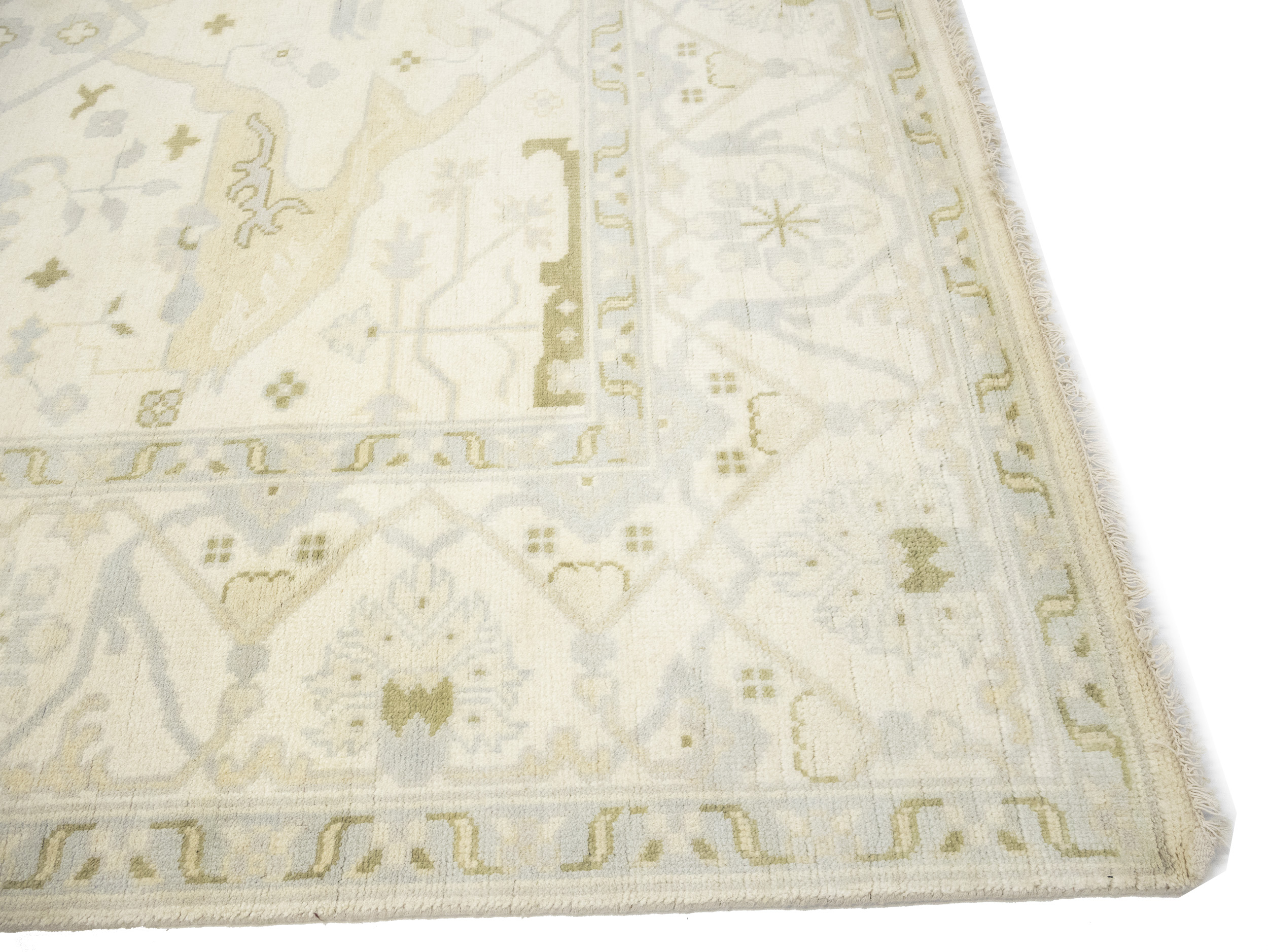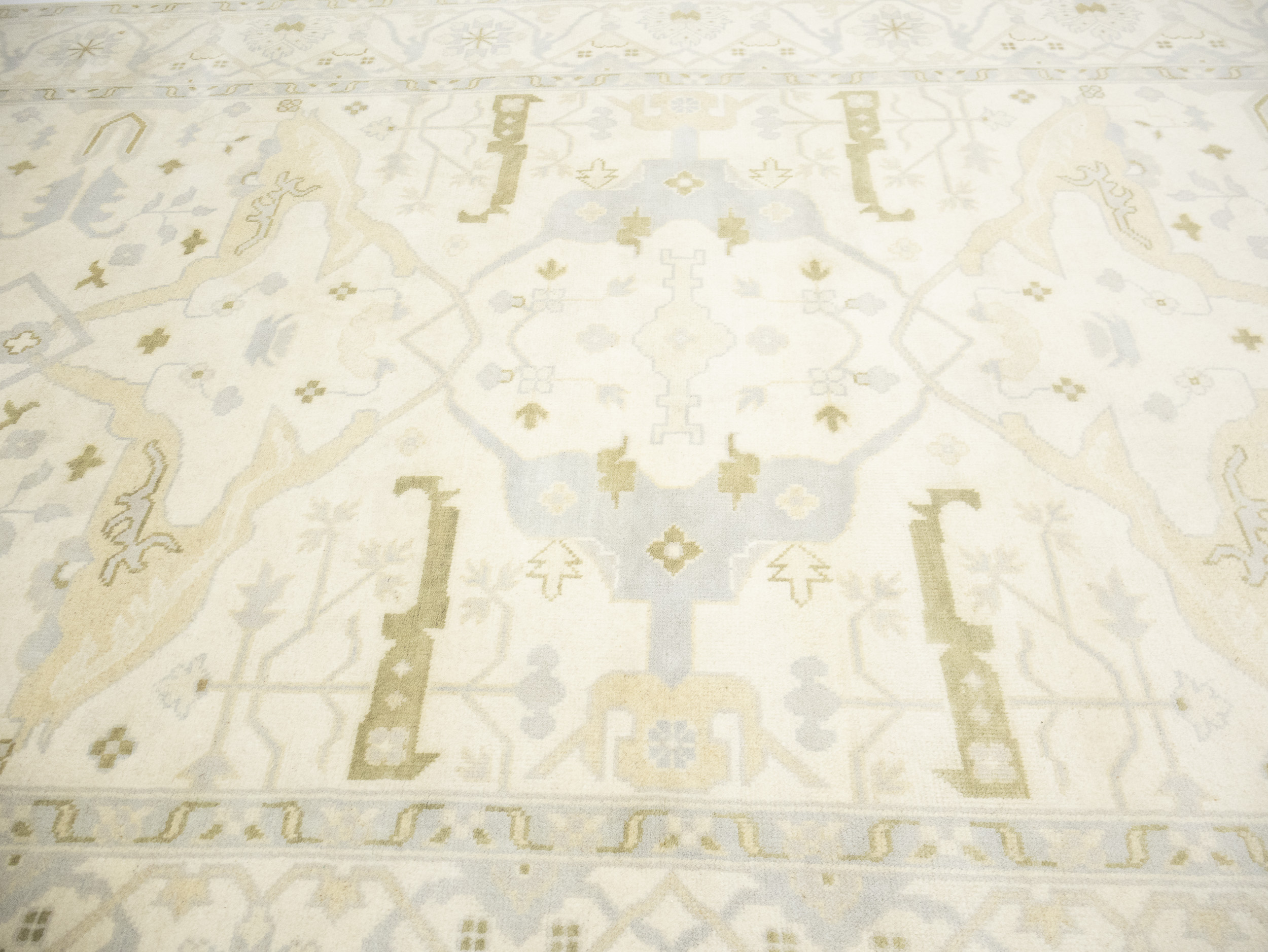 This original 9X18 cream new Oriental rug was finely knotted by the hands of weavers influenced by a variety of amazing artistic designs, to recreate the aged look of the exceptional piece with a richness of color and embellished background field. What set this vintage style Oriental area rug from the others are the material and dye used (wool pile and cotton foundation), knot count, antique designs, fantastic grades, and its regional historical connection: it has deep roots, from the story of the people who produced it to the meaning of the symbols and colors displayed across its canvas that have been praised for centuries. This Indian home décor carpet will be completely cozy and inviting that never will go out of style! Also, this Oriental rug would be among your most valuable treasures, it is a great investment that increase in value over time, and it will last a lifetime because was woven with high-quality, all-natural wool. Eco-friendly, opulent yet affordable; this rug will give you an extra pop of character to help define your home environment with luxury and warmth that will capture the eyes and attention of your audience (homeowners, designers, decorators, family and friends).