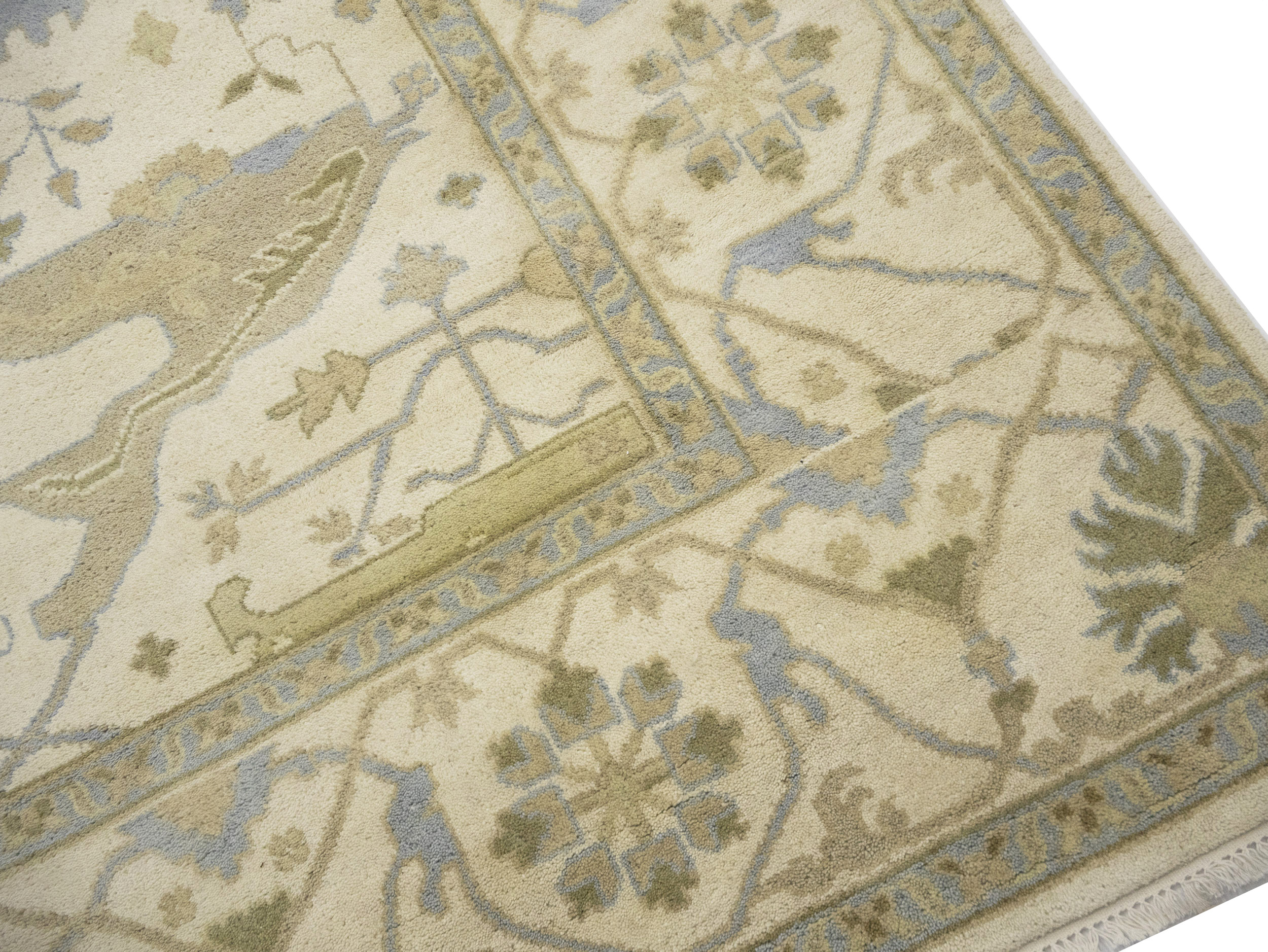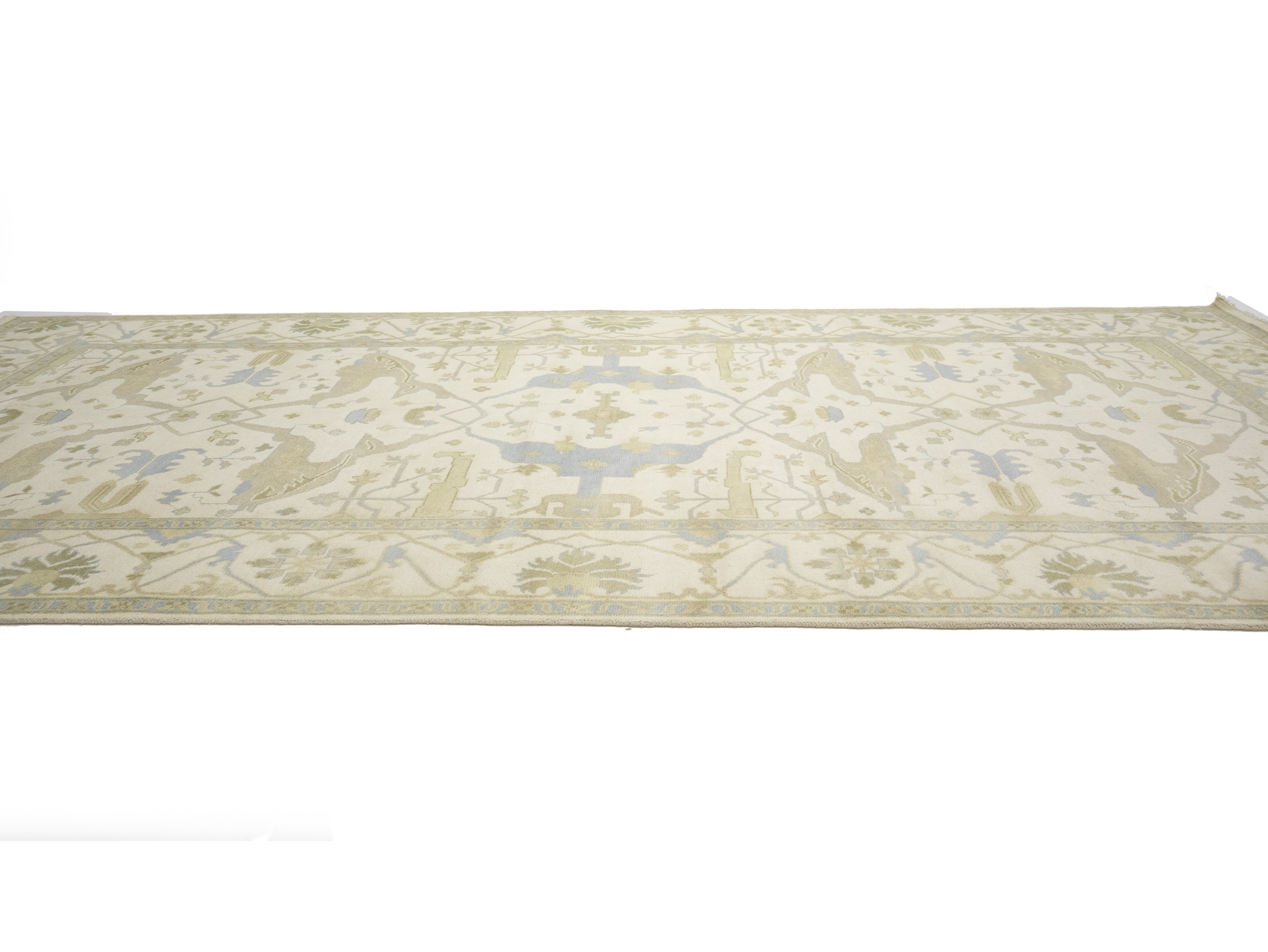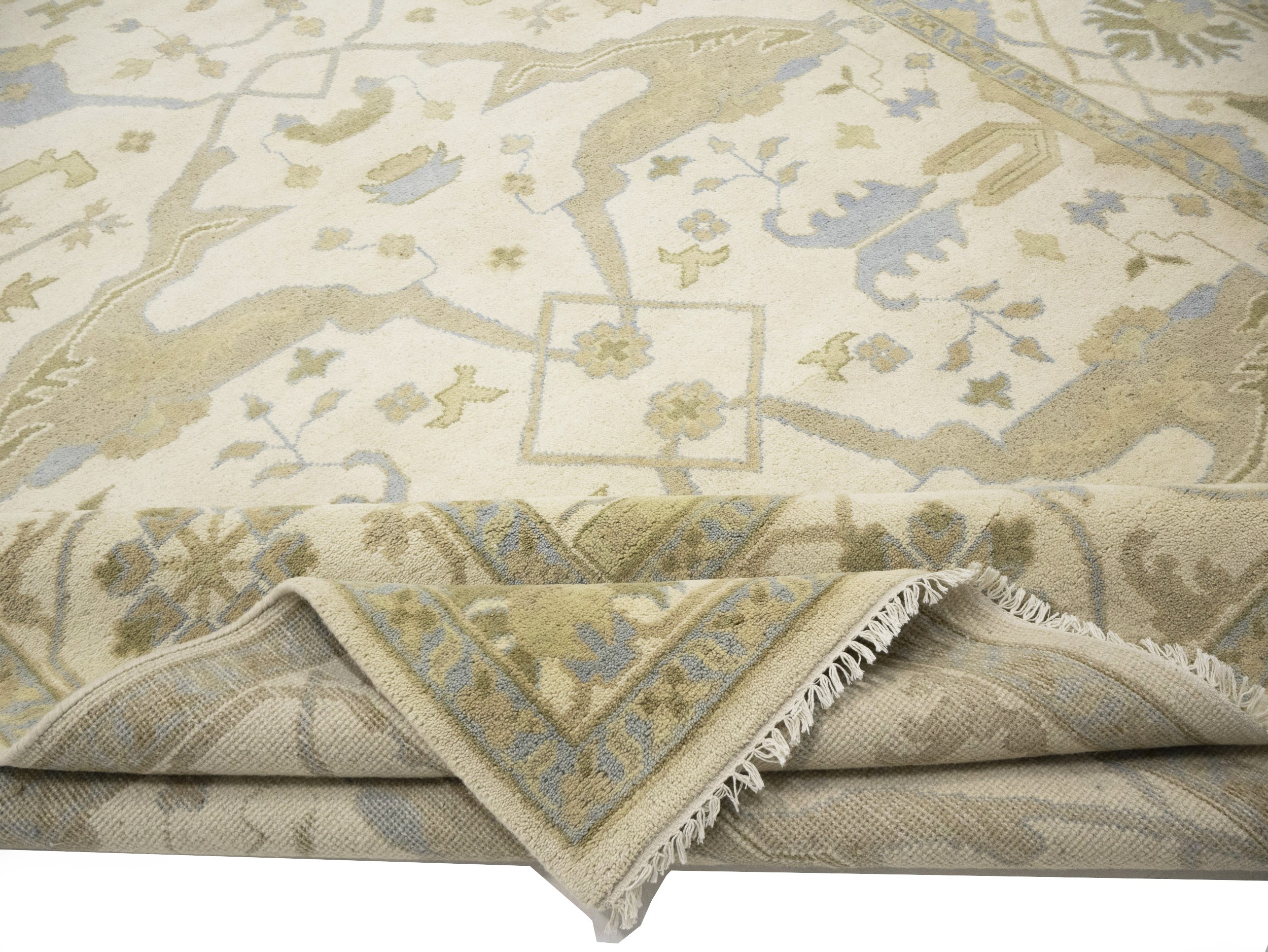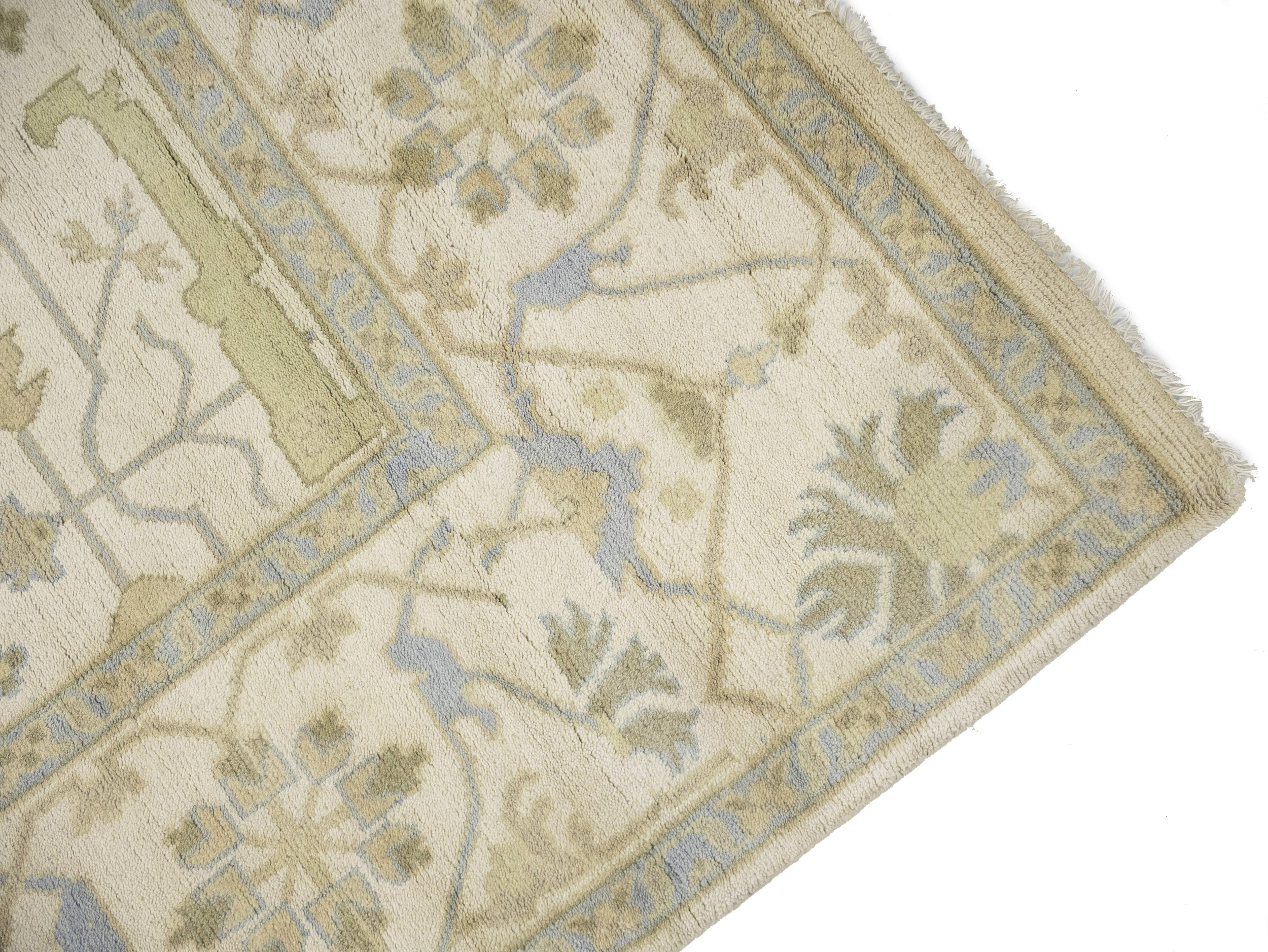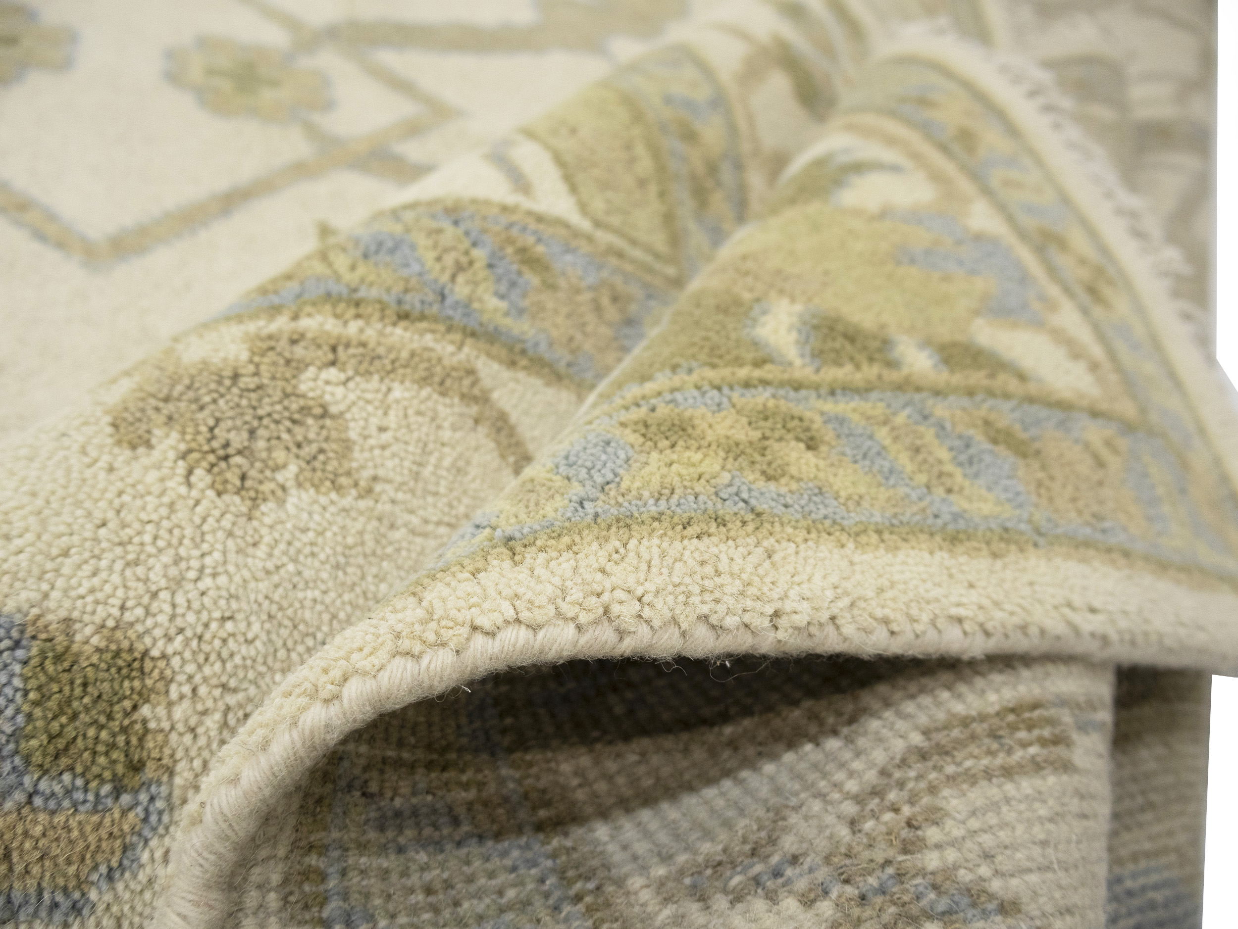 This original 9X18 cream new Oriental rug was finely knotted by the hands of weavers influenced by a variety of amazing artistic designs, to recreate the aged look of the exceptional piece with a richness of color and embellished background field. What set this vintage style Oriental area rug from the others are the material and dye used (wool pile and cotton foundation), knot count, antique designs, fantastic grades, and its regional historical connection: it has deep roots, from the story of the people who produced it to the meaning of the symbols and colors displayed across its canvas that have been praised for centuries. This Indian home décor carpet will be completely cozy and inviting that never will go out of style! Also, this Oriental rug would be among your most valuable treasures, it is a great investment that increase in value over time, and it will last a lifetime because was woven with high-quality, all-natural wool. Eco-friendly, opulent yet affordable; this rug will give you an extra pop of character to help define your home environment with luxury and warmth that will capture the eyes and attention of your audience (homeowners, designers, decorators, family and friends).