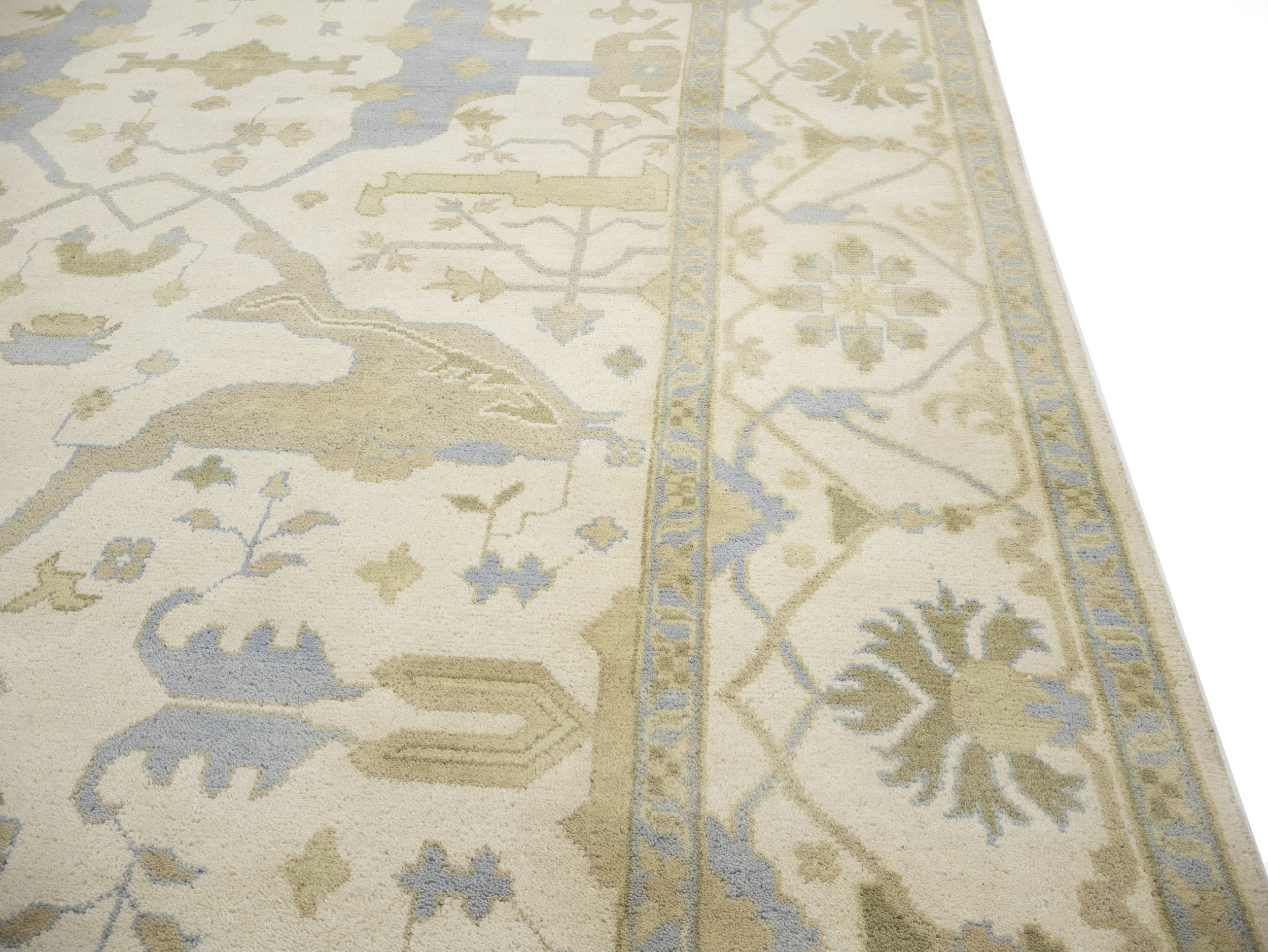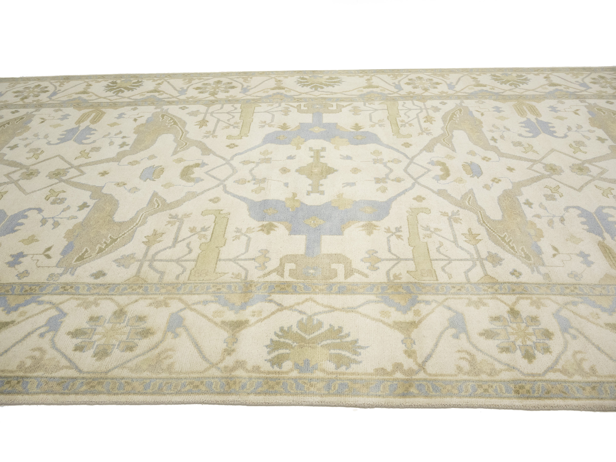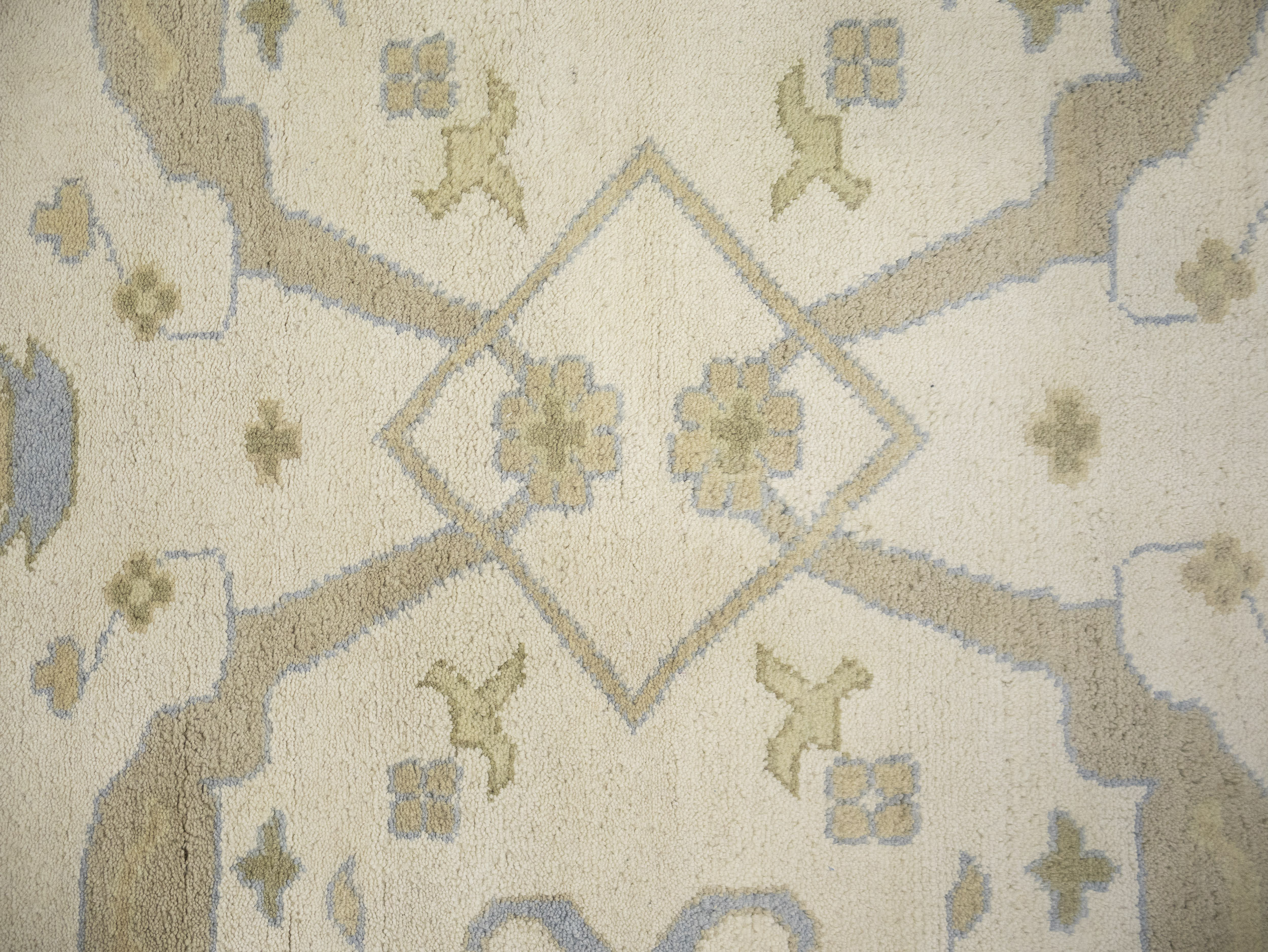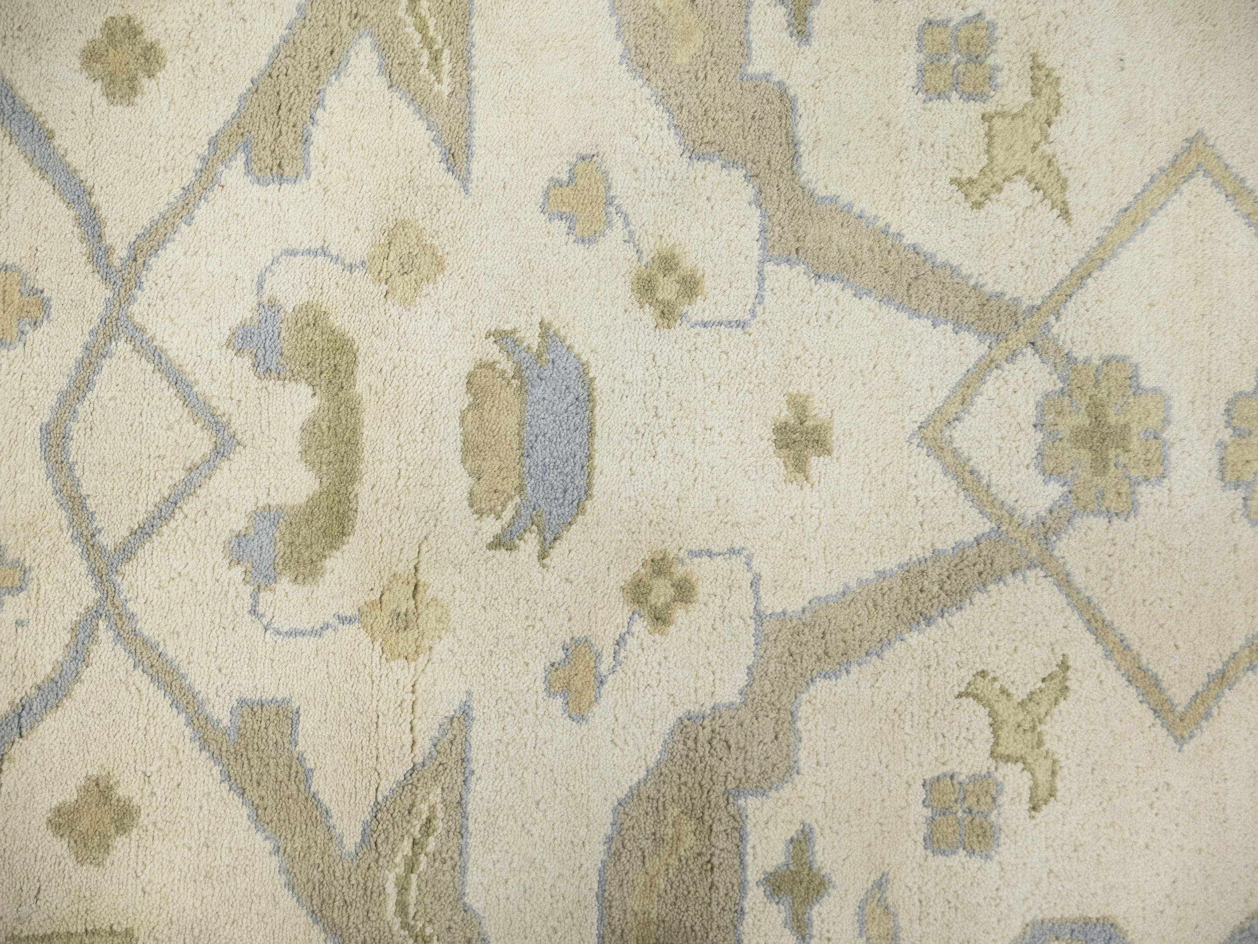 This original 9X18 cream new Oriental rug was finely knotted by the hands of weavers influenced by a variety of amazing artistic designs, to recreate the aged look of the exceptional piece with a richness of color and embellished background field. What set this vintage style Oriental area rug from the others are the material and dye used (wool pile and cotton foundation), knot count, antique designs, fantastic grades, and its regional historical connection: it has deep roots, from the story of the people who produced it to the meaning of the symbols and colors displayed across its canvas that have been praised for centuries. This Indian home décor carpet will be completely cozy and inviting that never will go out of style! Also, this Oriental rug would be among your most valuable treasures, it is a great investment that increase in value over time, and it will last a lifetime because was woven with high-quality, all-natural wool. Eco-friendly, opulent yet affordable; this rug will give you an extra pop of character to help define your home environment with luxury and warmth that will capture the eyes and attention of your audience (homeowners, designers, decorators, family and friends).