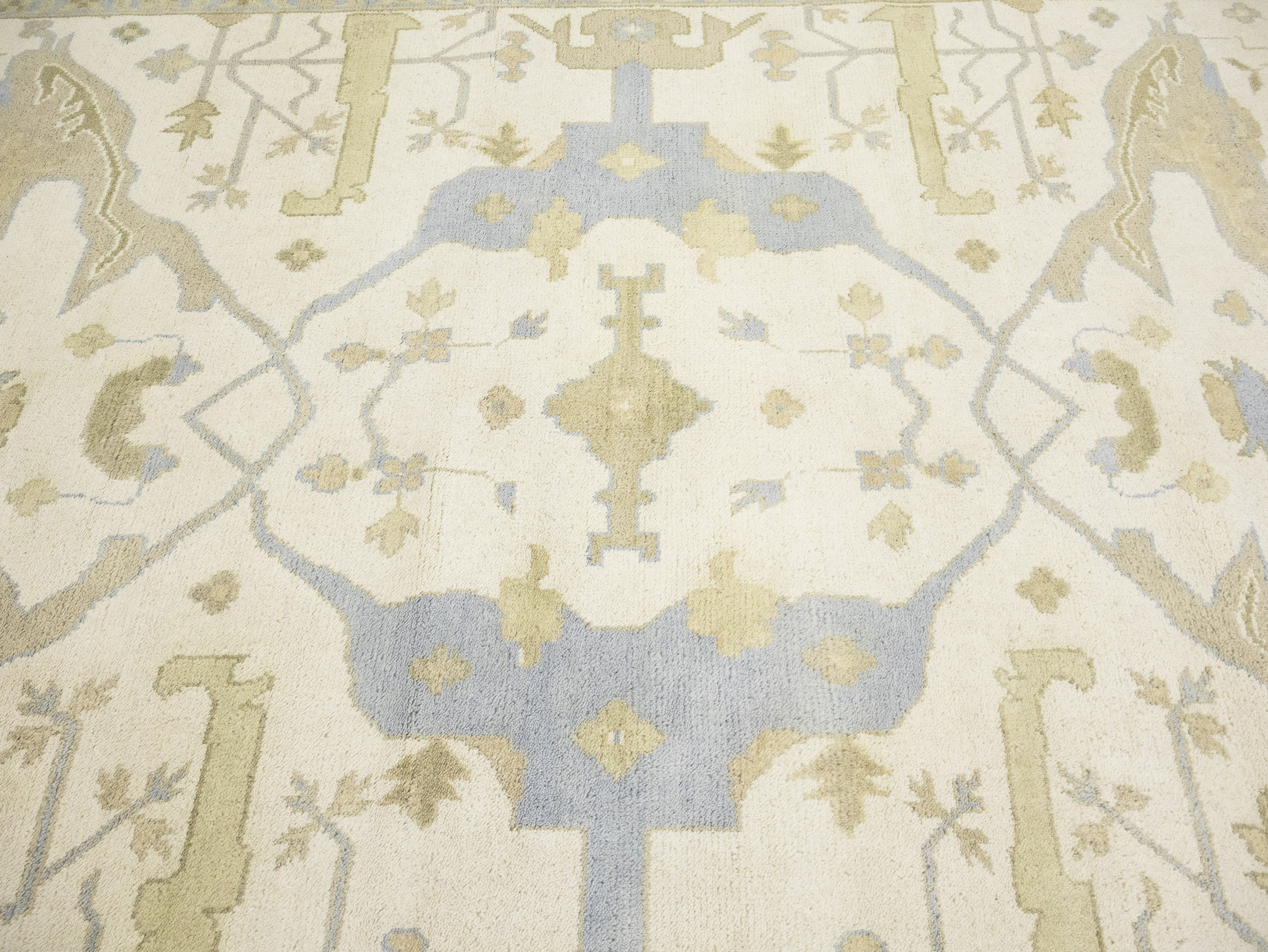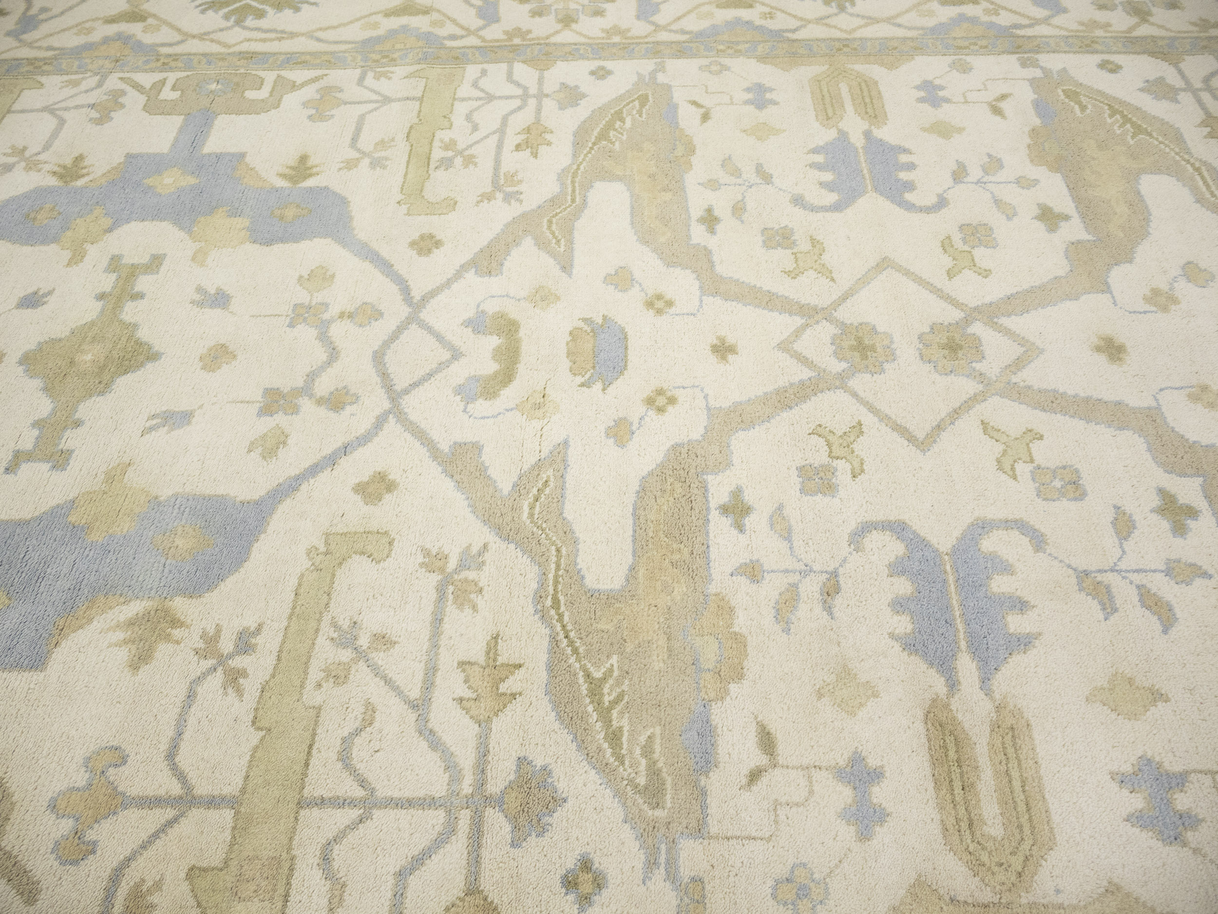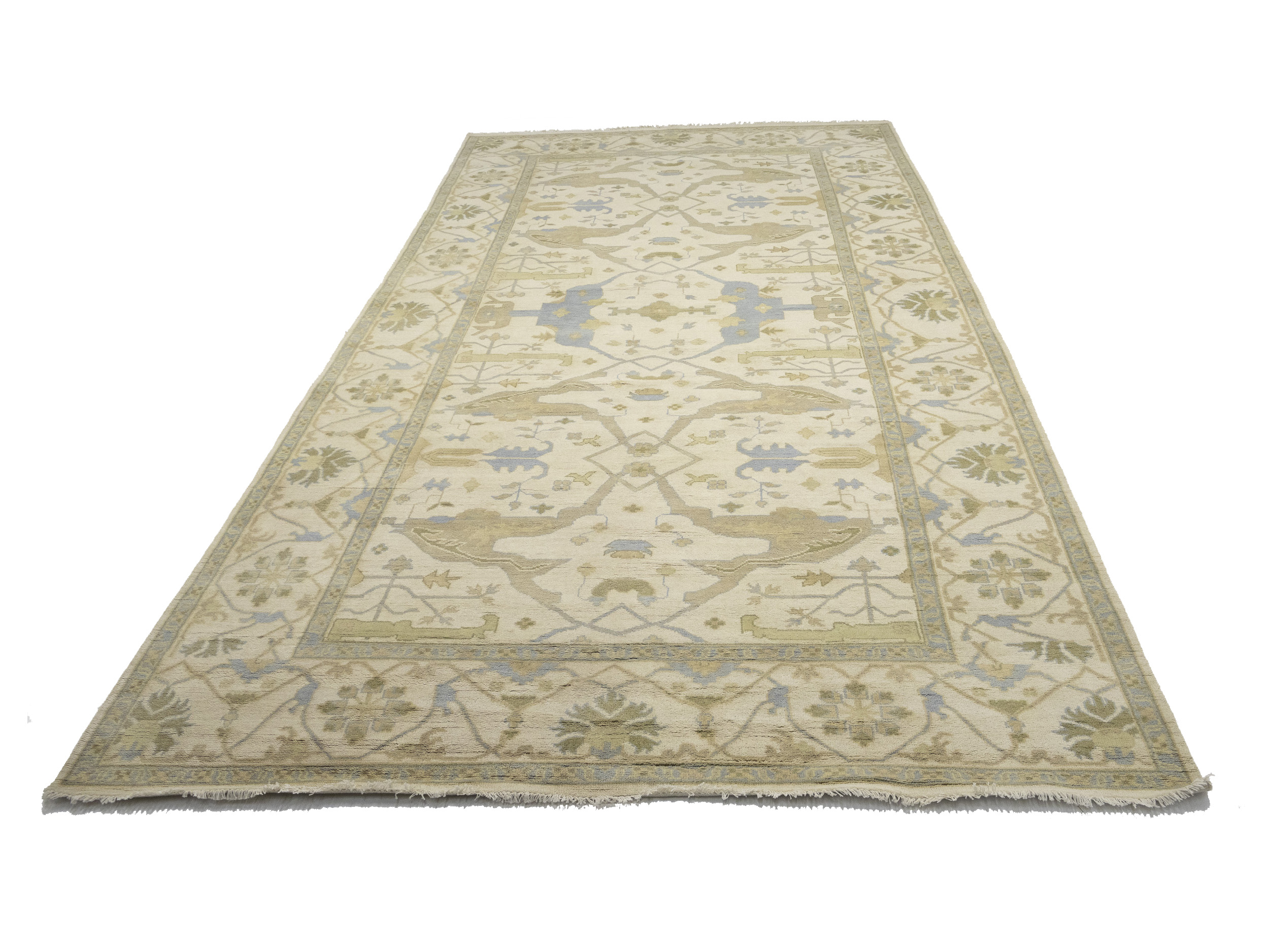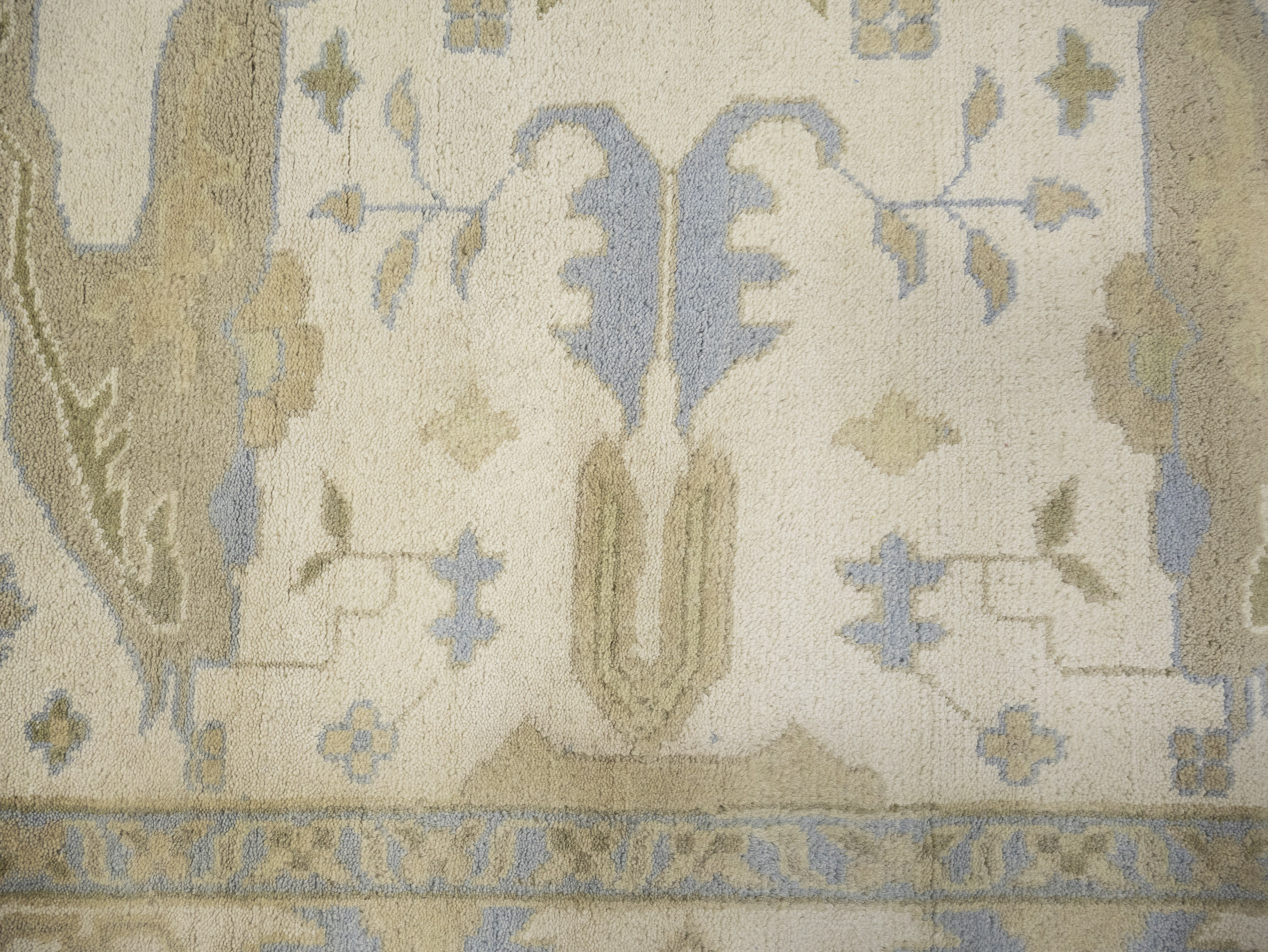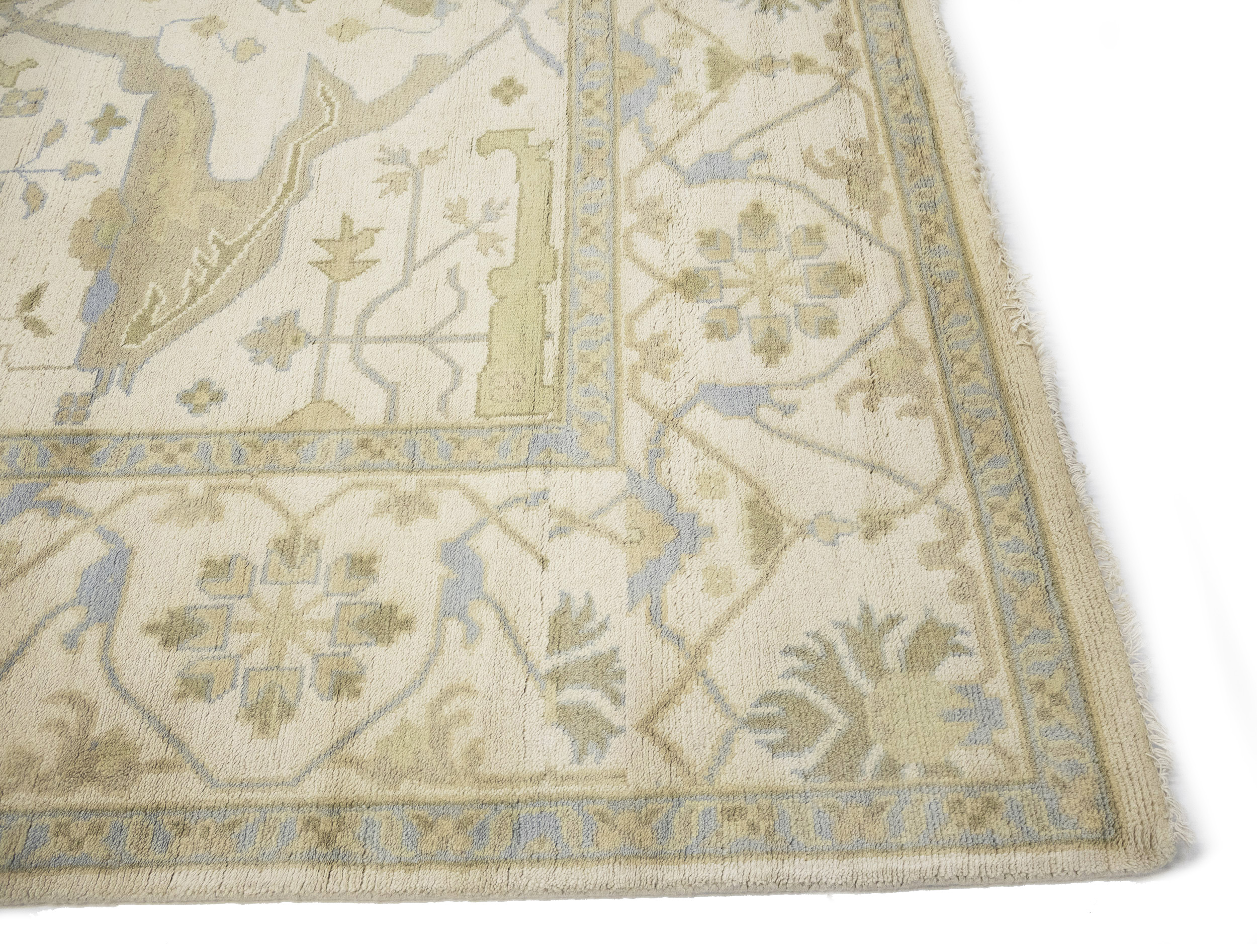 This original 9X18 cream new Oriental rug was finely knotted by the hands of weavers influenced by a variety of amazing artistic designs, to recreate the aged look of the exceptional piece with a richness of color and embellished background field. What set this vintage style Oriental area rug from the others are the material and dye used (wool pile and cotton foundation), knot count, antique designs, fantastic grades, and its regional historical connection: it has deep roots, from the story of the people who produced it to the meaning of the symbols and colors displayed across its canvas that have been praised for centuries. This Indian home décor carpet will be completely cozy and inviting that never will go out of style! Also, this Oriental rug would be among your most valuable treasures, it is a great investment that increase in value over time, and it will last a lifetime because was woven with high-quality, all-natural wool. Eco-friendly, opulent yet affordable; this rug will give you an extra pop of character to help define your home environment with luxury and warmth that will capture the eyes and attention of your audience (homeowners, designers, decorators, family and friends).