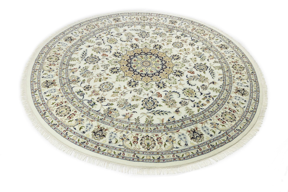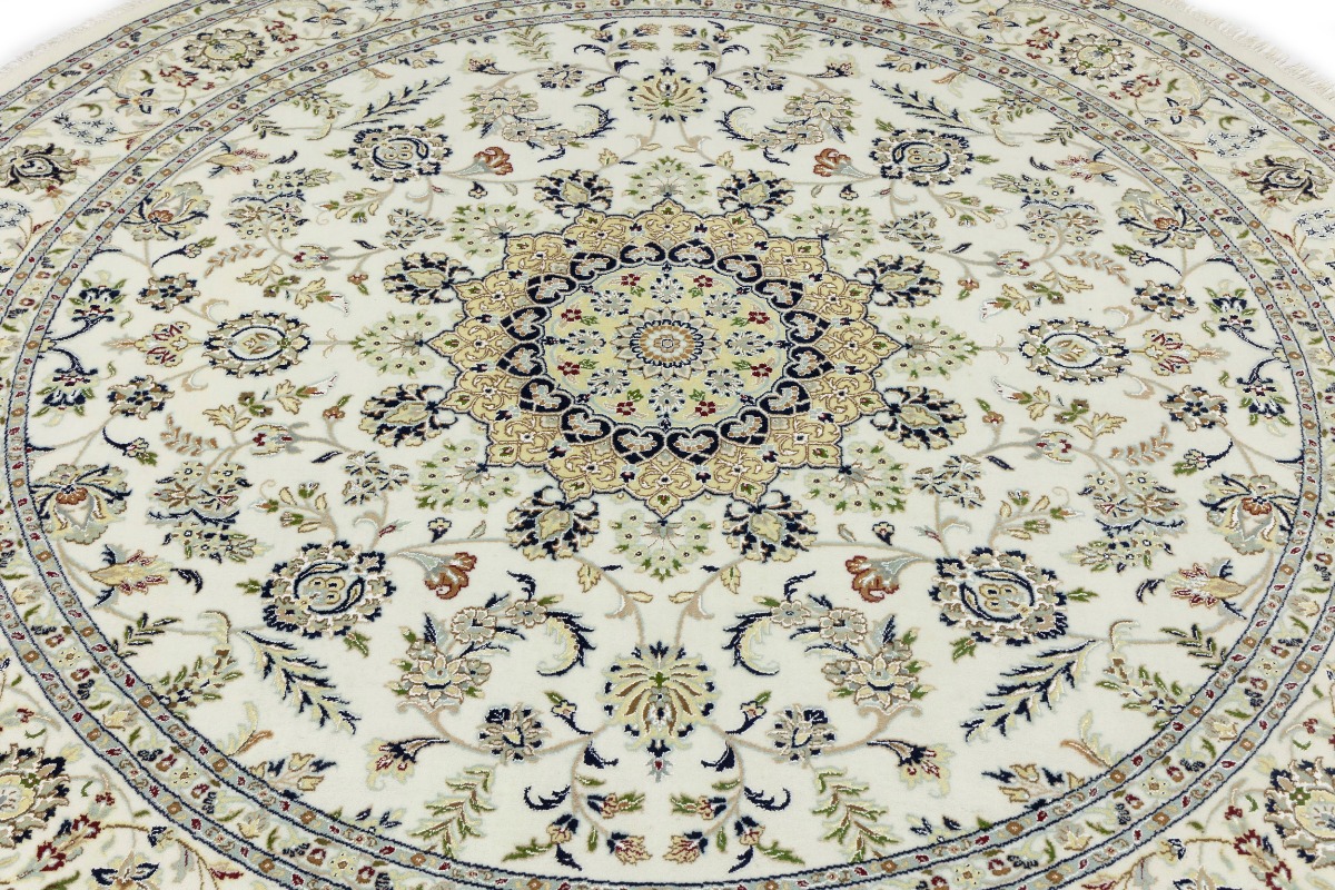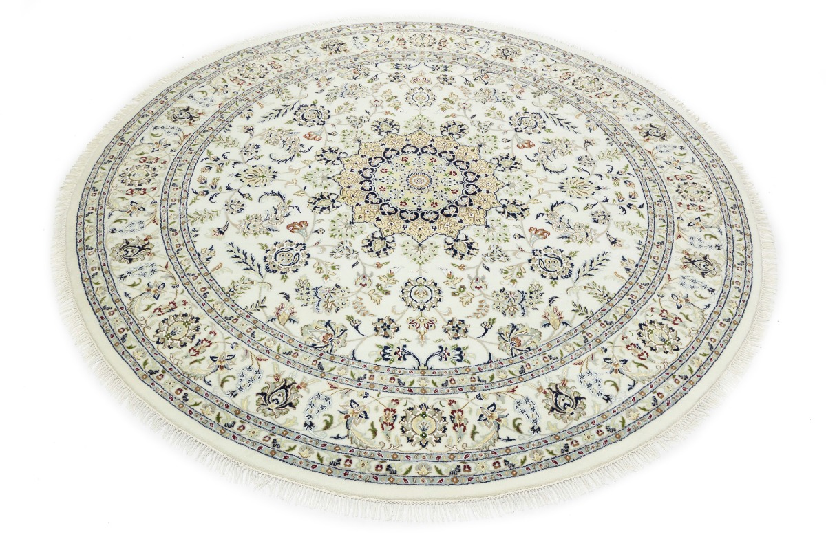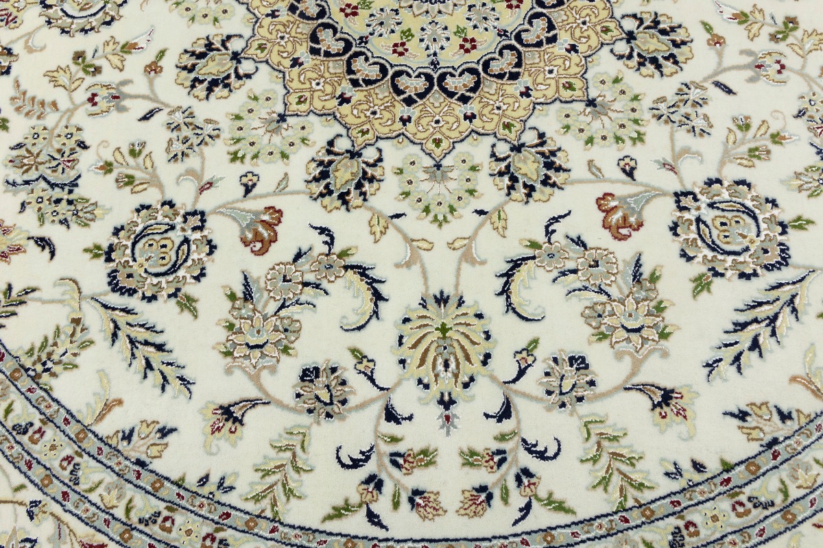 Cream Floral 9X9 Indo-Nain Oriental Round Rug