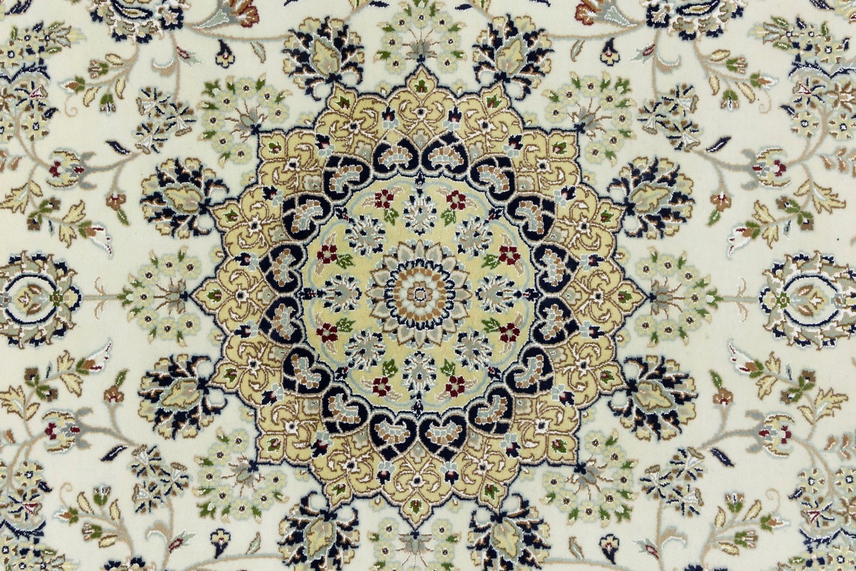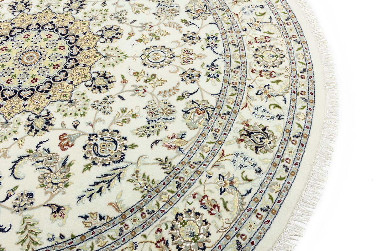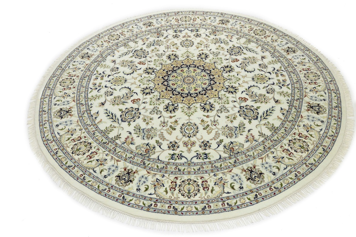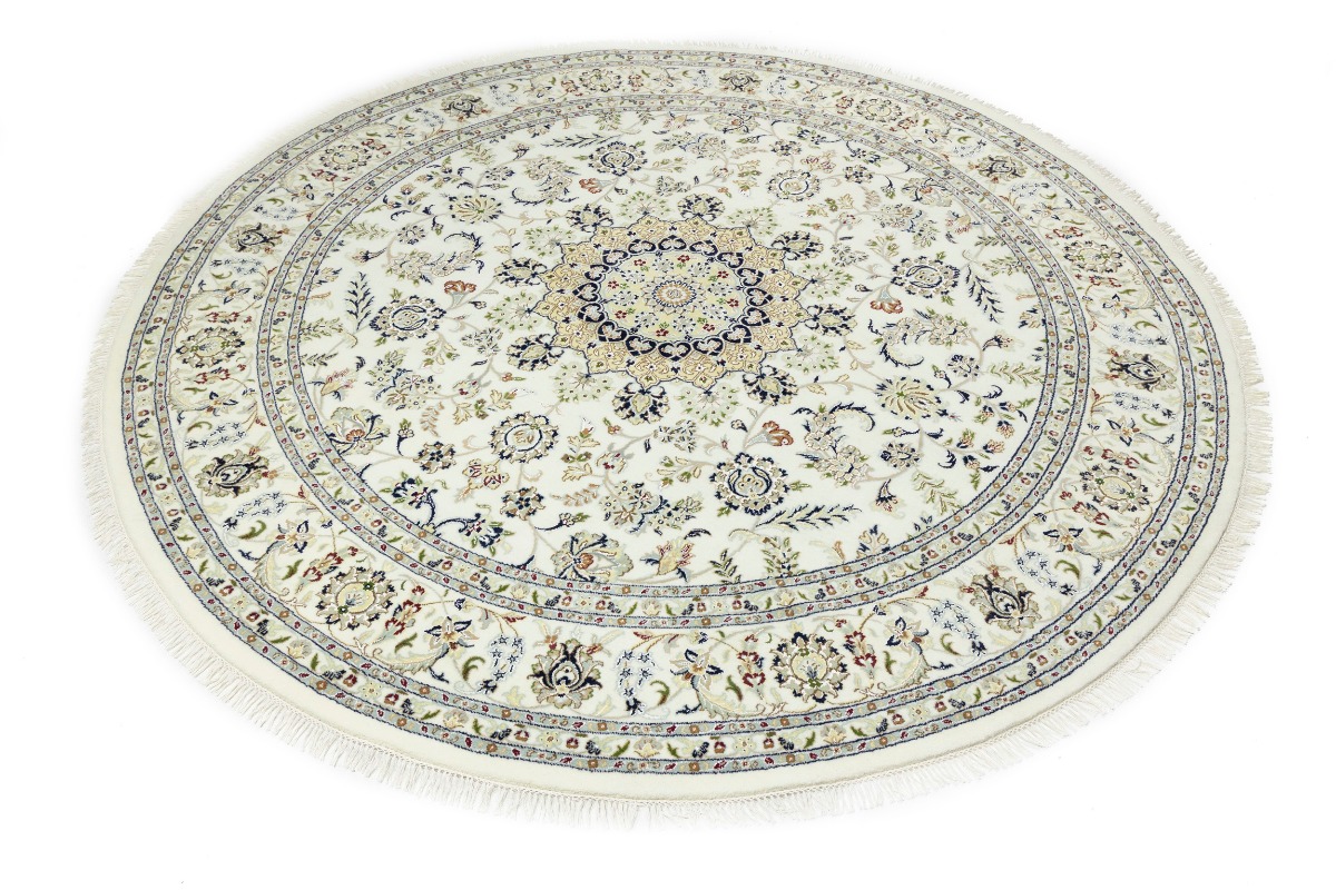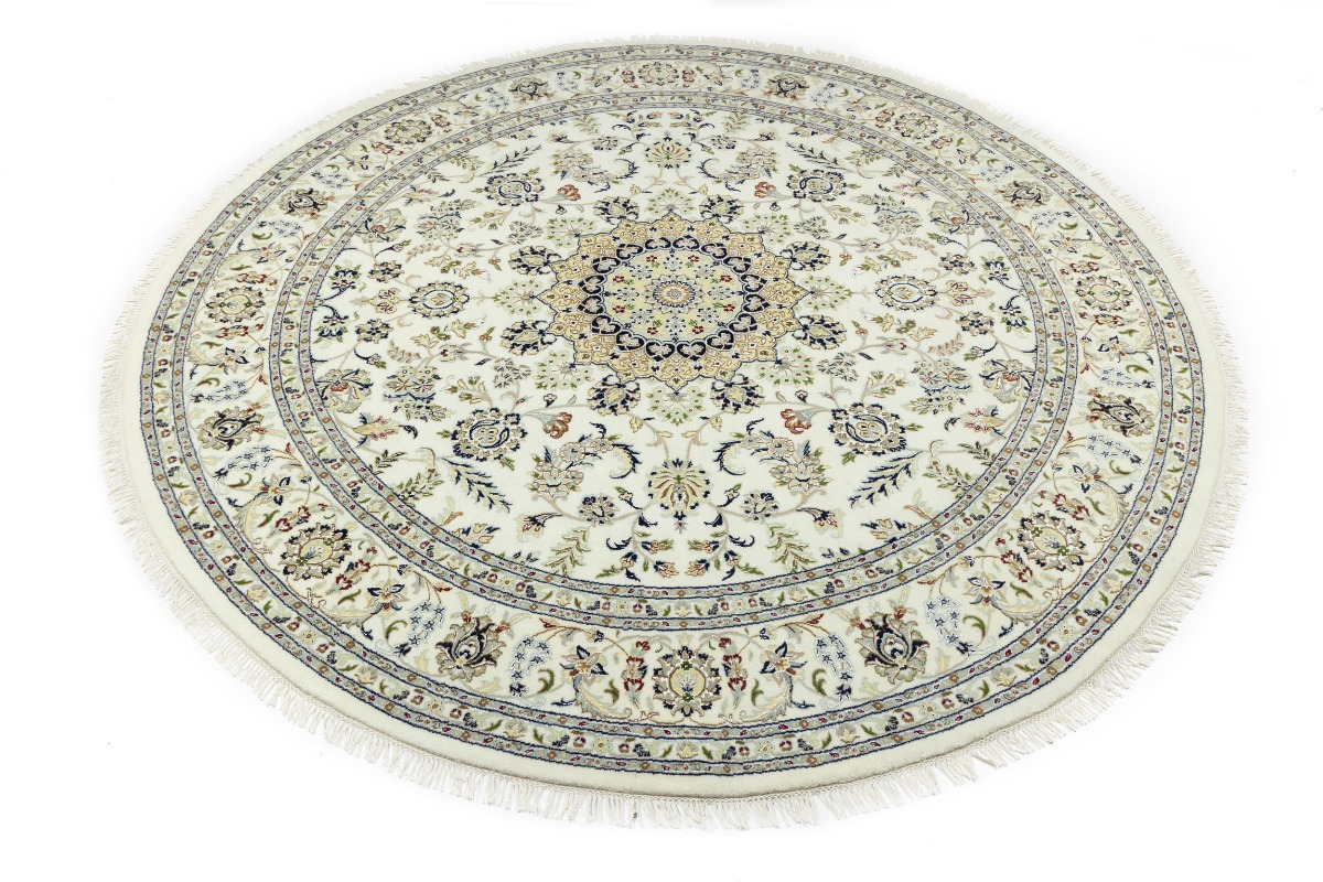 Cream Floral 9X9 Indo-Nain Oriental Round Rug