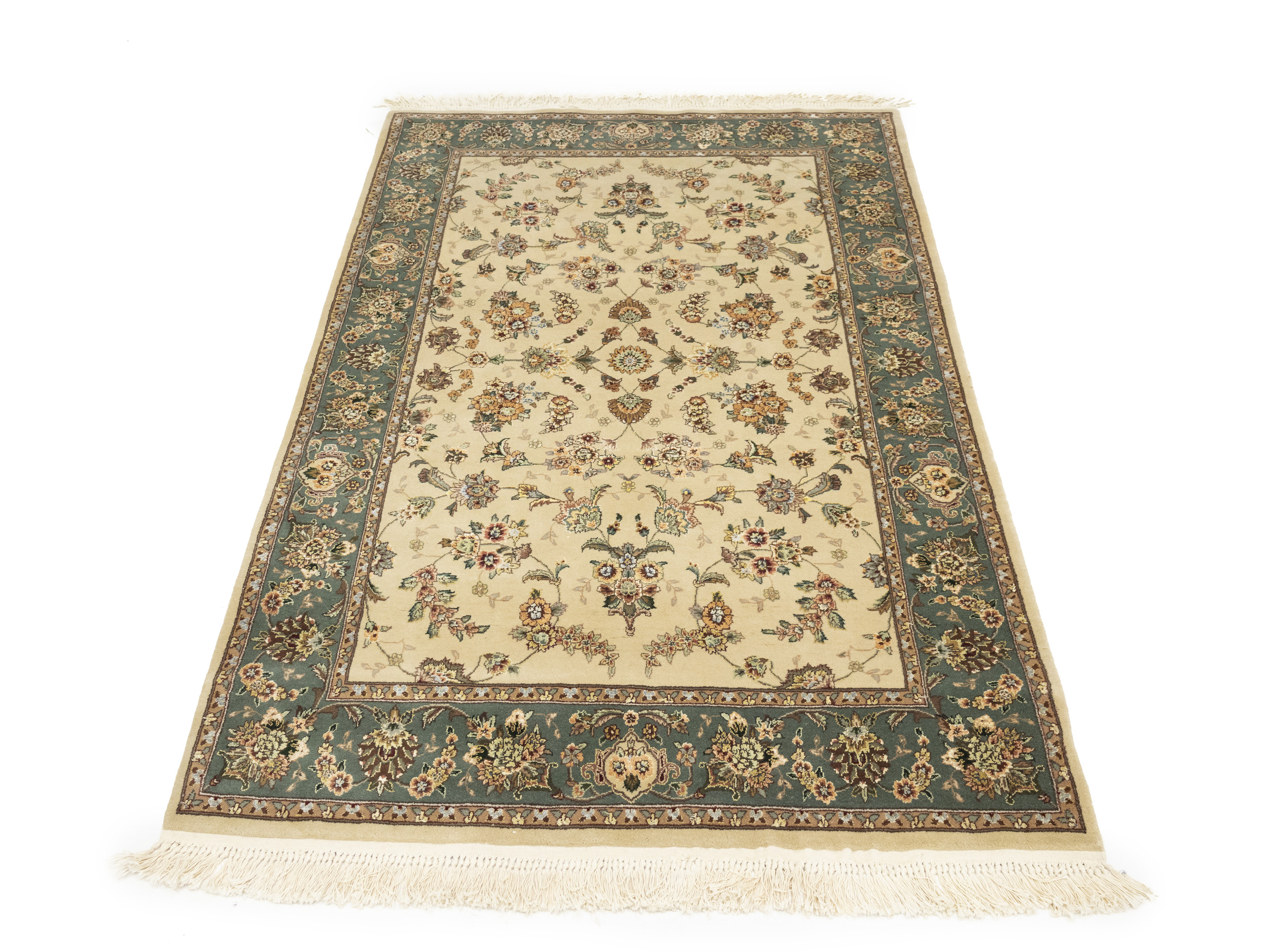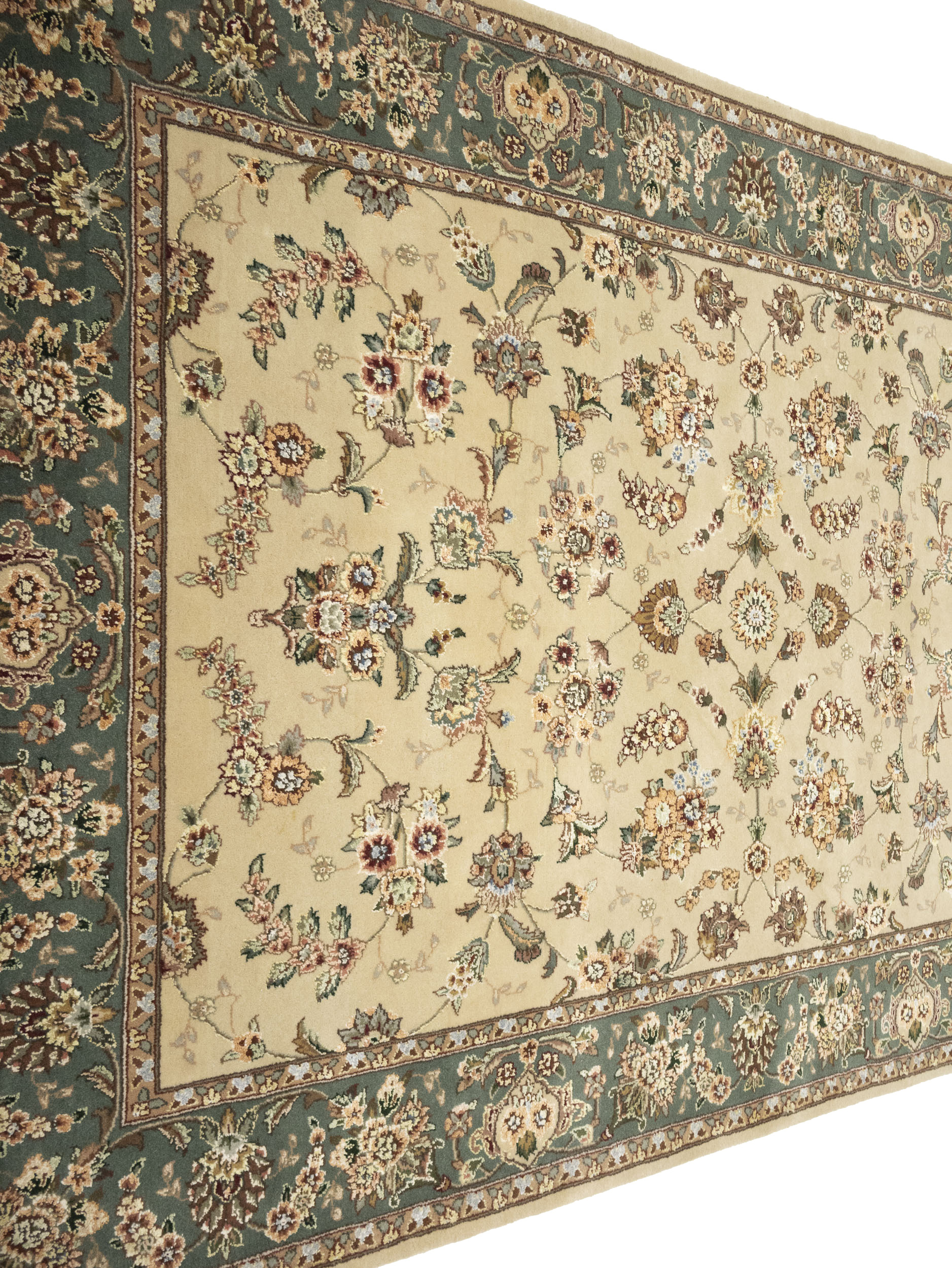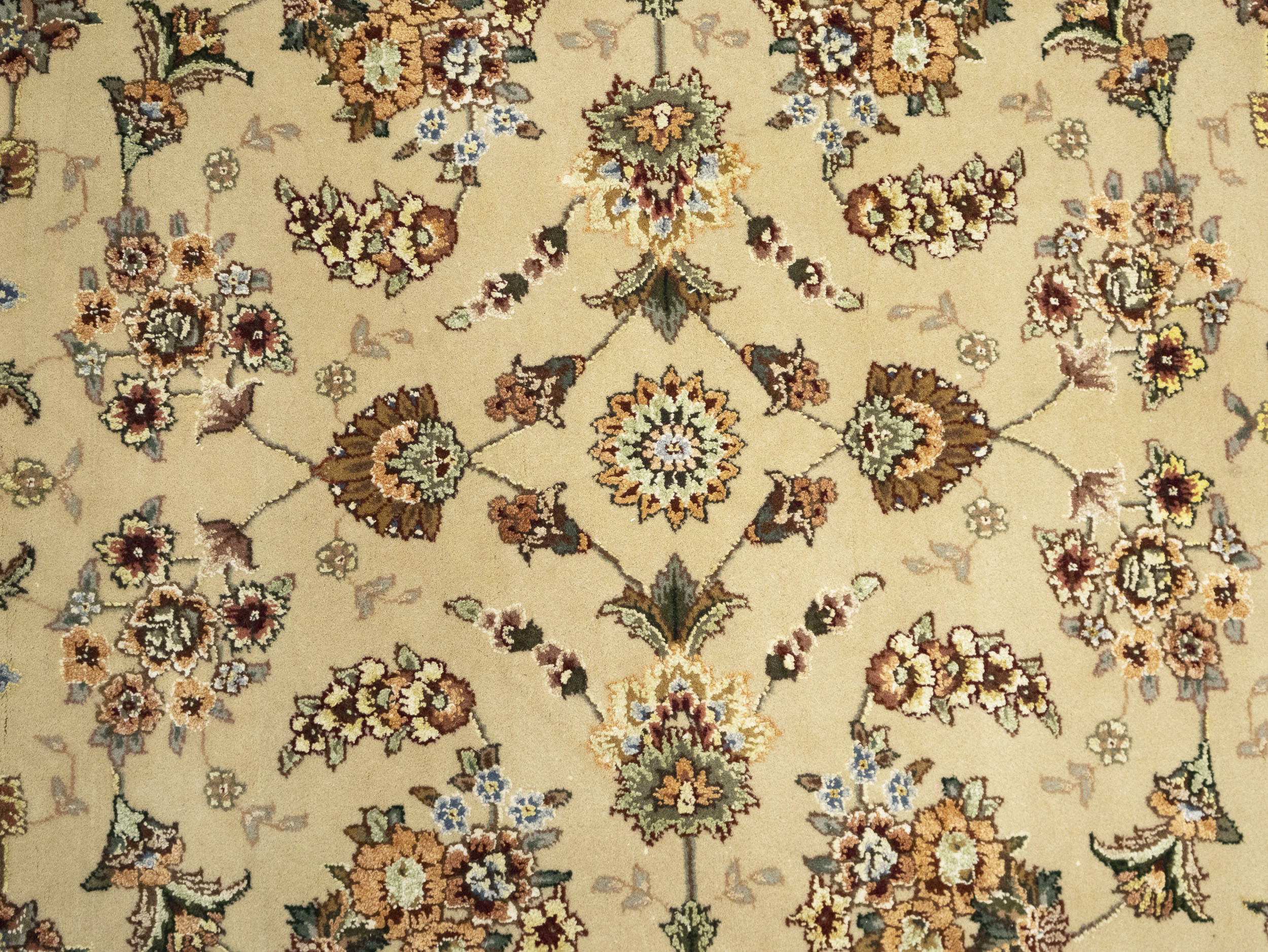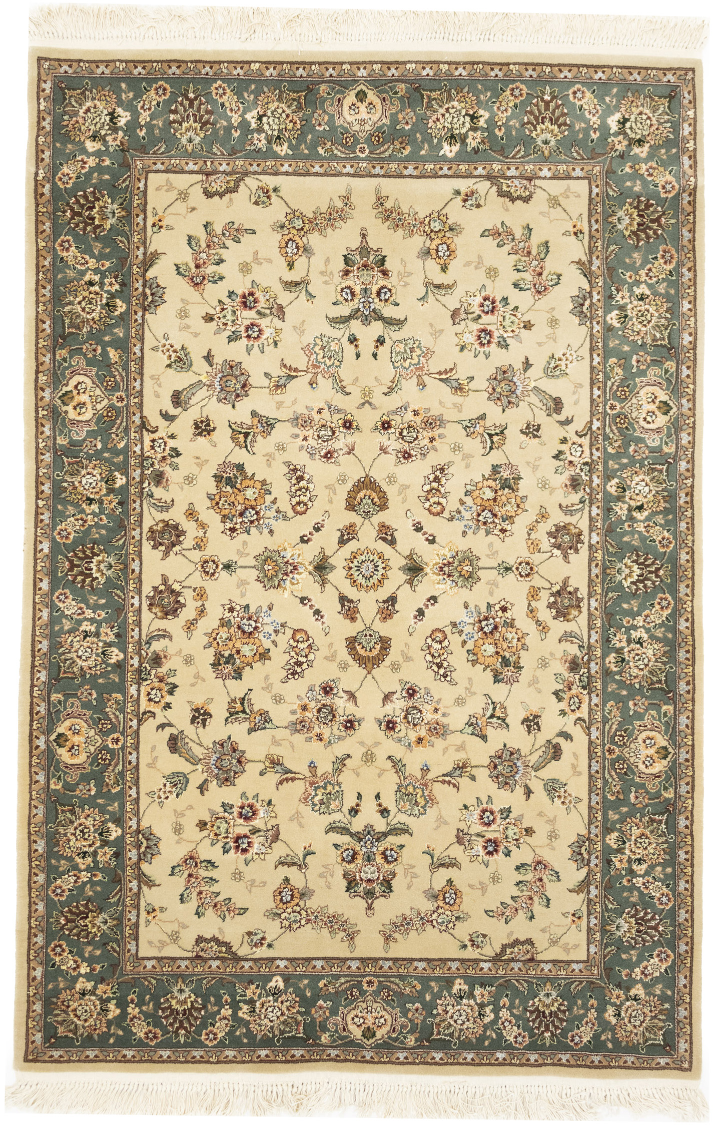 Handmade 4X6 Cream oriental rug made with vegetable dyes (fine wool pile and cotton foundation), exceptional knot count, and appealing ancient designs. This Oriental rug never will go out of style and would be among your most valuable treasures.
