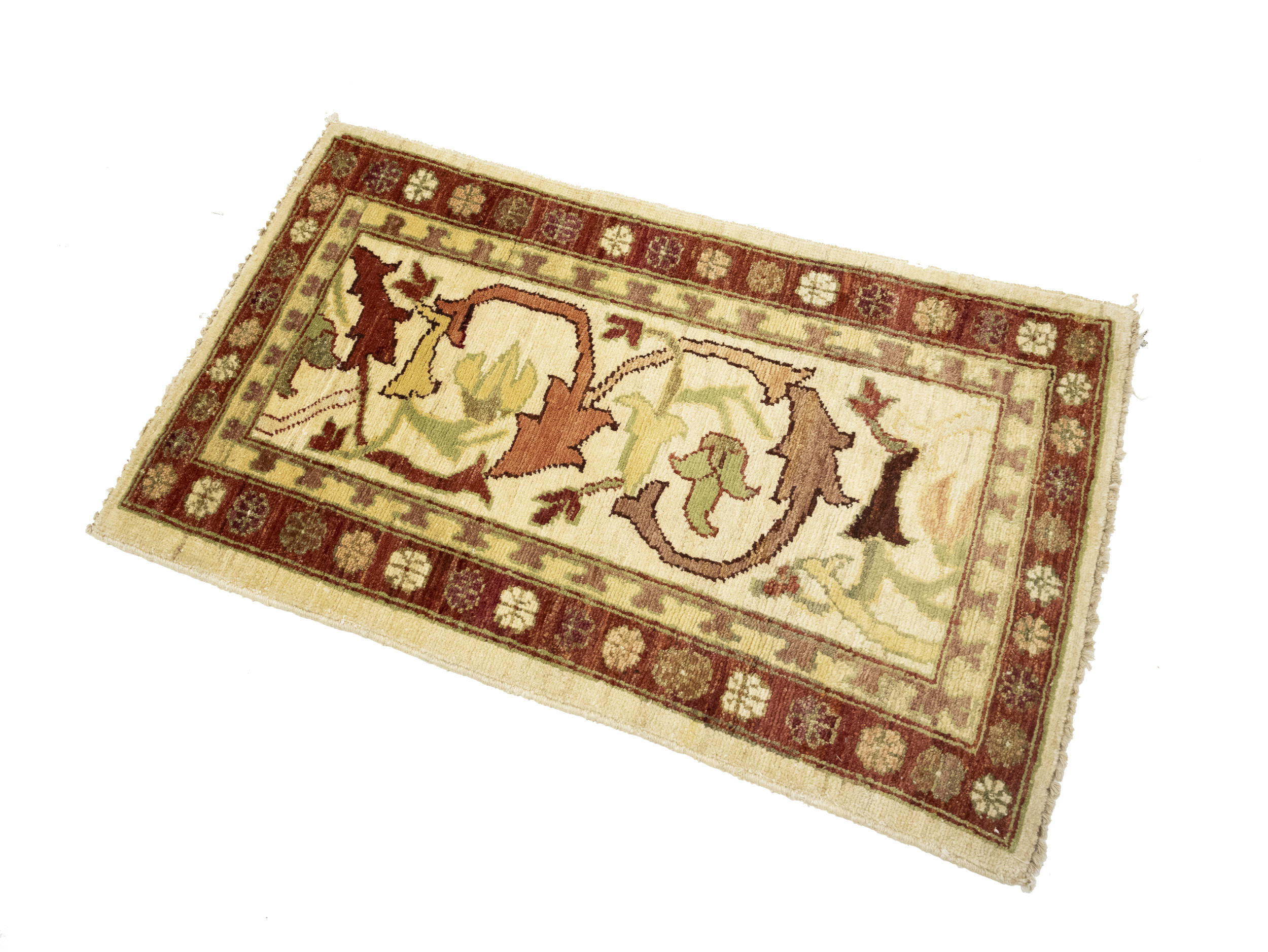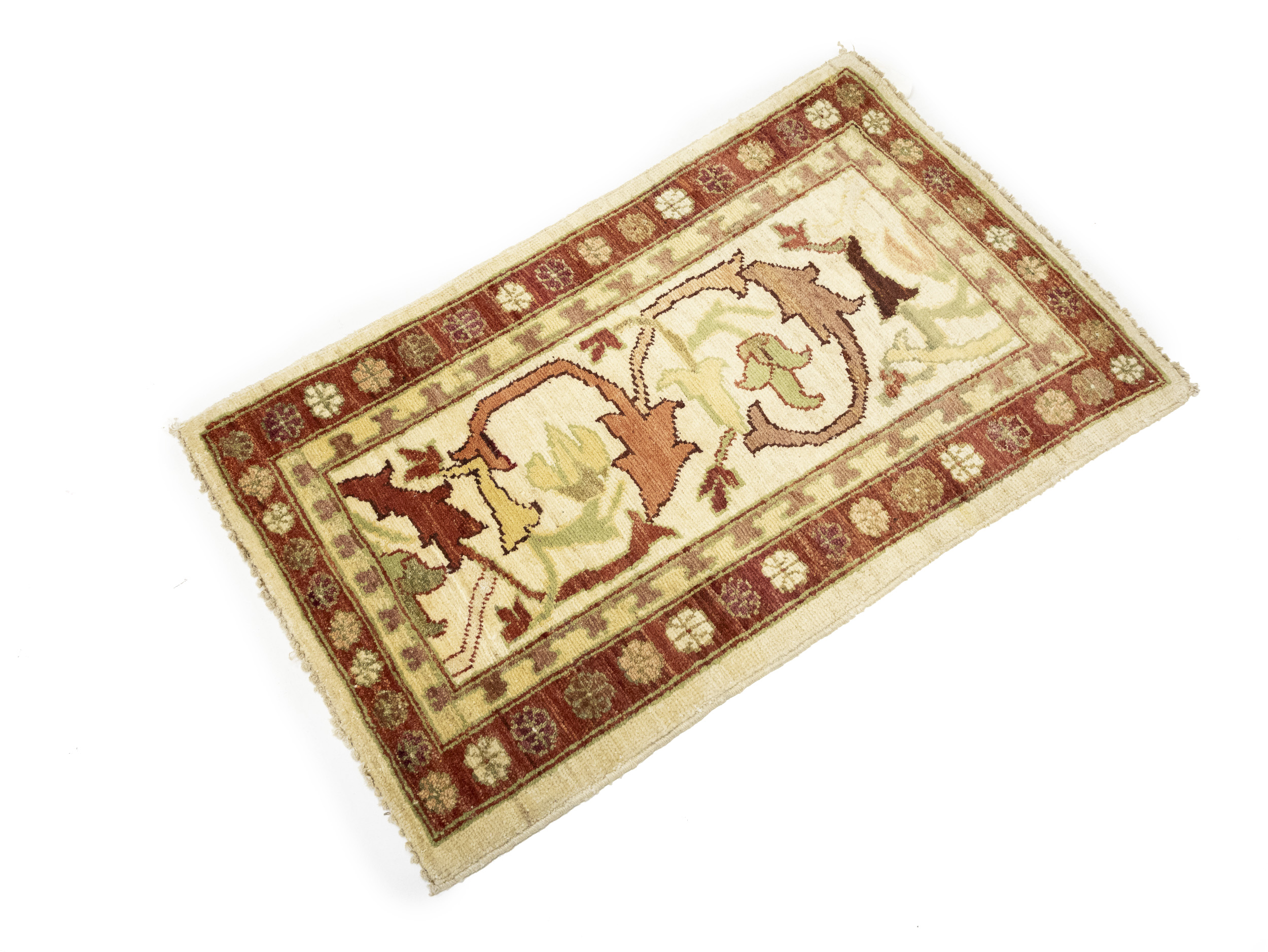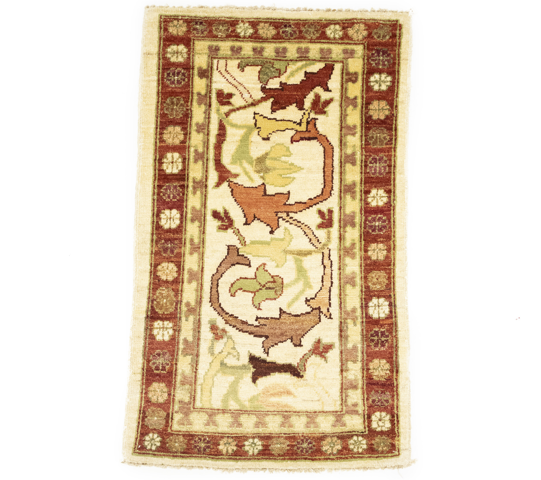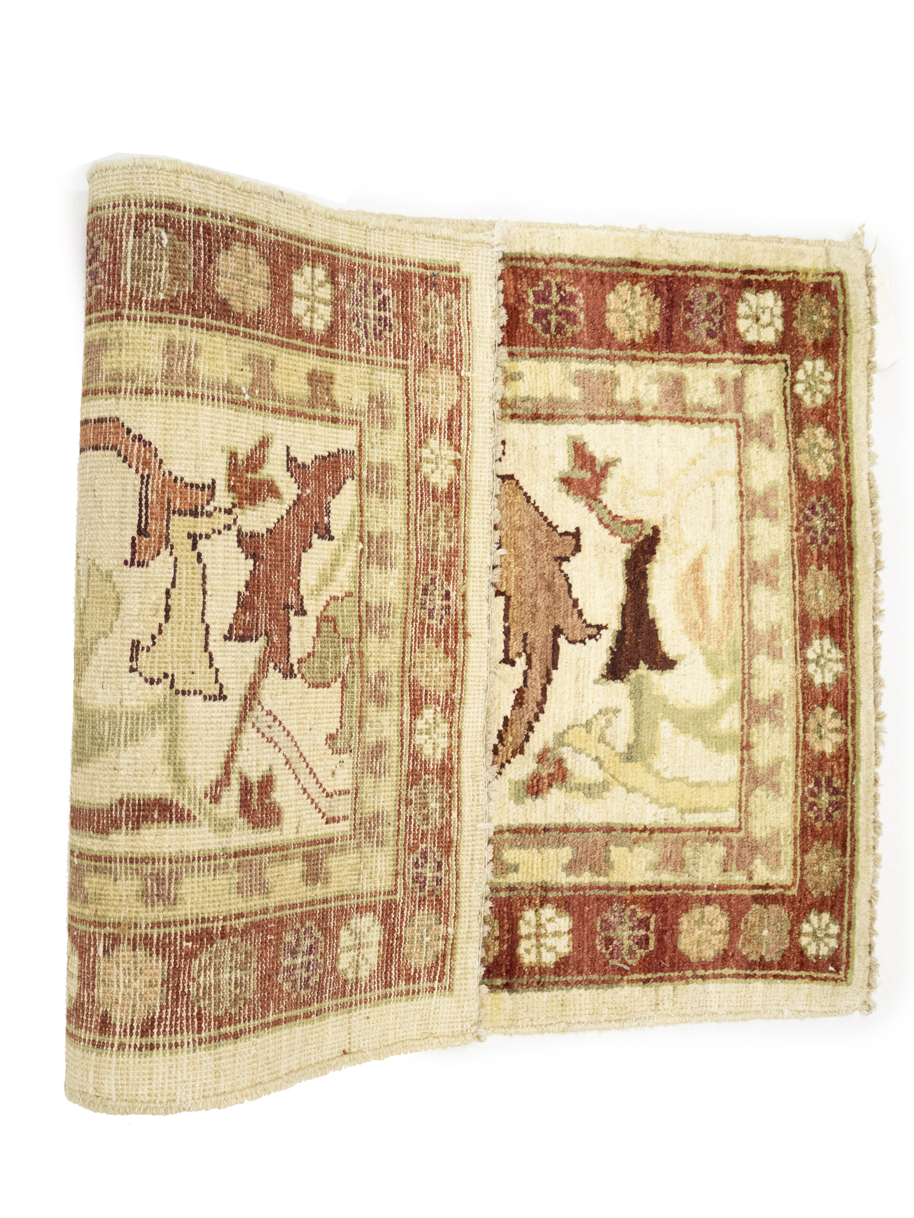 Handmade 2X3 cream oriental rug made with vegetable dyes (fine wool pile and cotton foundation), superior knot count, and appealing ancient designs. This Oriental rug never will go out of style and would be among your most valuable treasures.