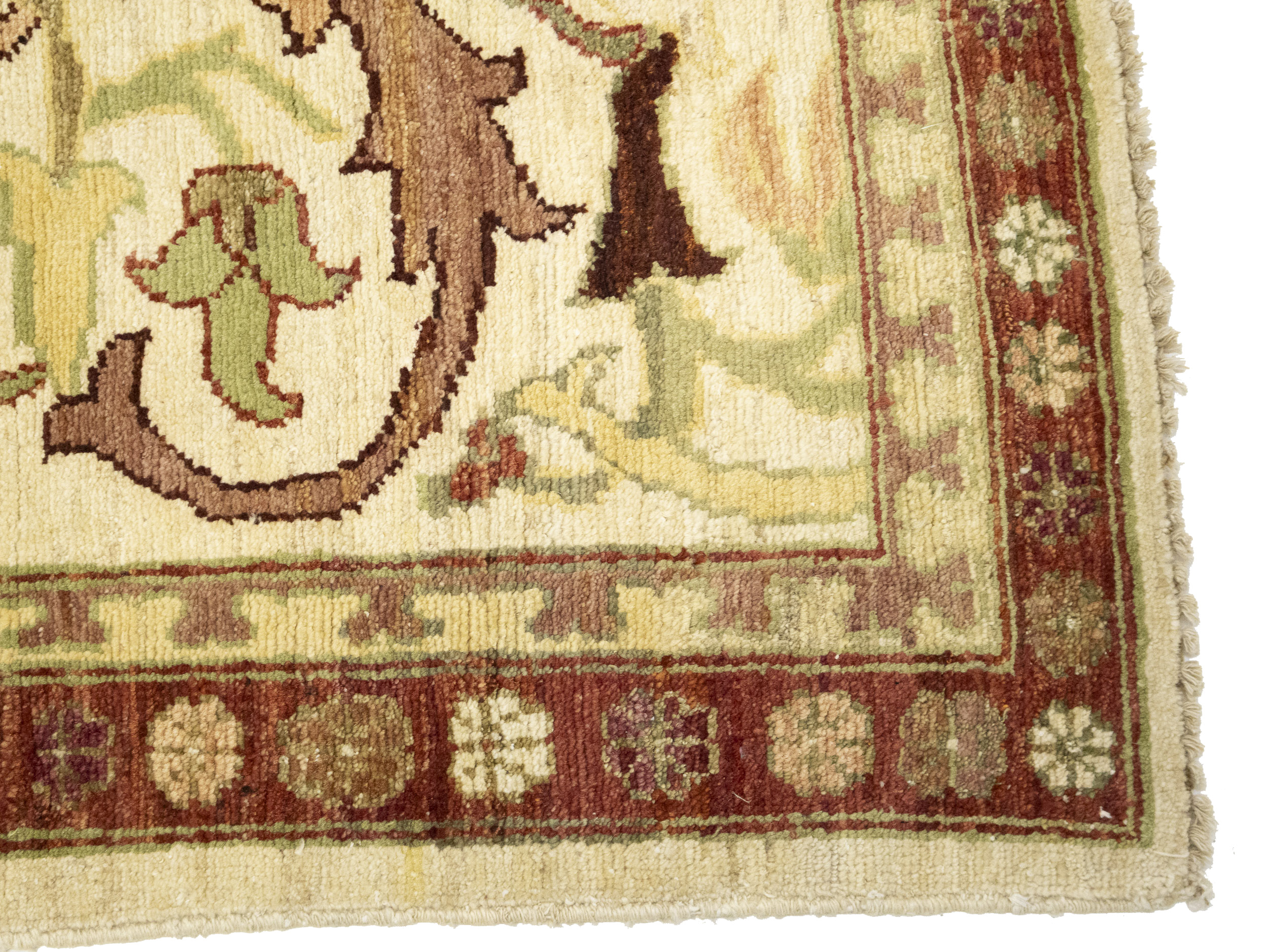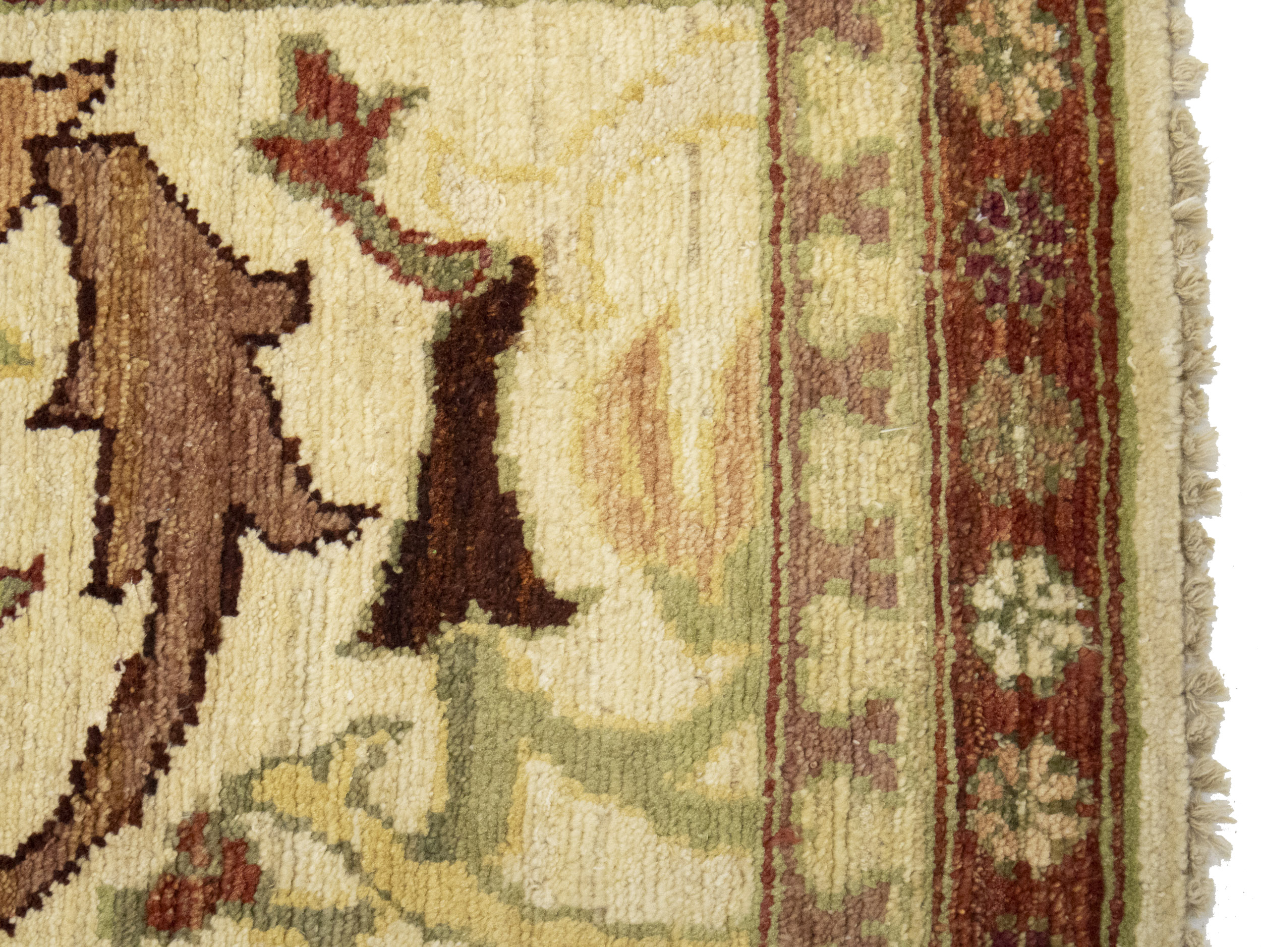 This genuine 2X3 cream new Oriental rug was made by the hands of gifted weavers inspired by a variety of spectacular artistic designs, to recreate the aged look of the original piece with a richness of color and ornately patterned background field. What set this vintage style Oriental area rug from the others are the material and dye used (wool pile and cotton foundation), knot count, ancient designs, fantastic grades, and its regional historical connection: it has deep roots, from the story of the people who produced it to the meaning of the symbols and colors displayed across its canvas that have been praised for centuries. This Indian home décor carpet will be completely cozy and inviting that never will go out of style! Also, this Oriental rug would be among your most valuable treasures, it is a great investment that accrues value over time, and it will last for generations because was woven with high-quality, all-natural wool. Environmentally friendly, opulent yet affordable; this rug will give you a thorough amount of character to help define your living space with elegance and warmth that will capture the eyes and attention of your audience (homeowners, designers, decorators, family and friends).