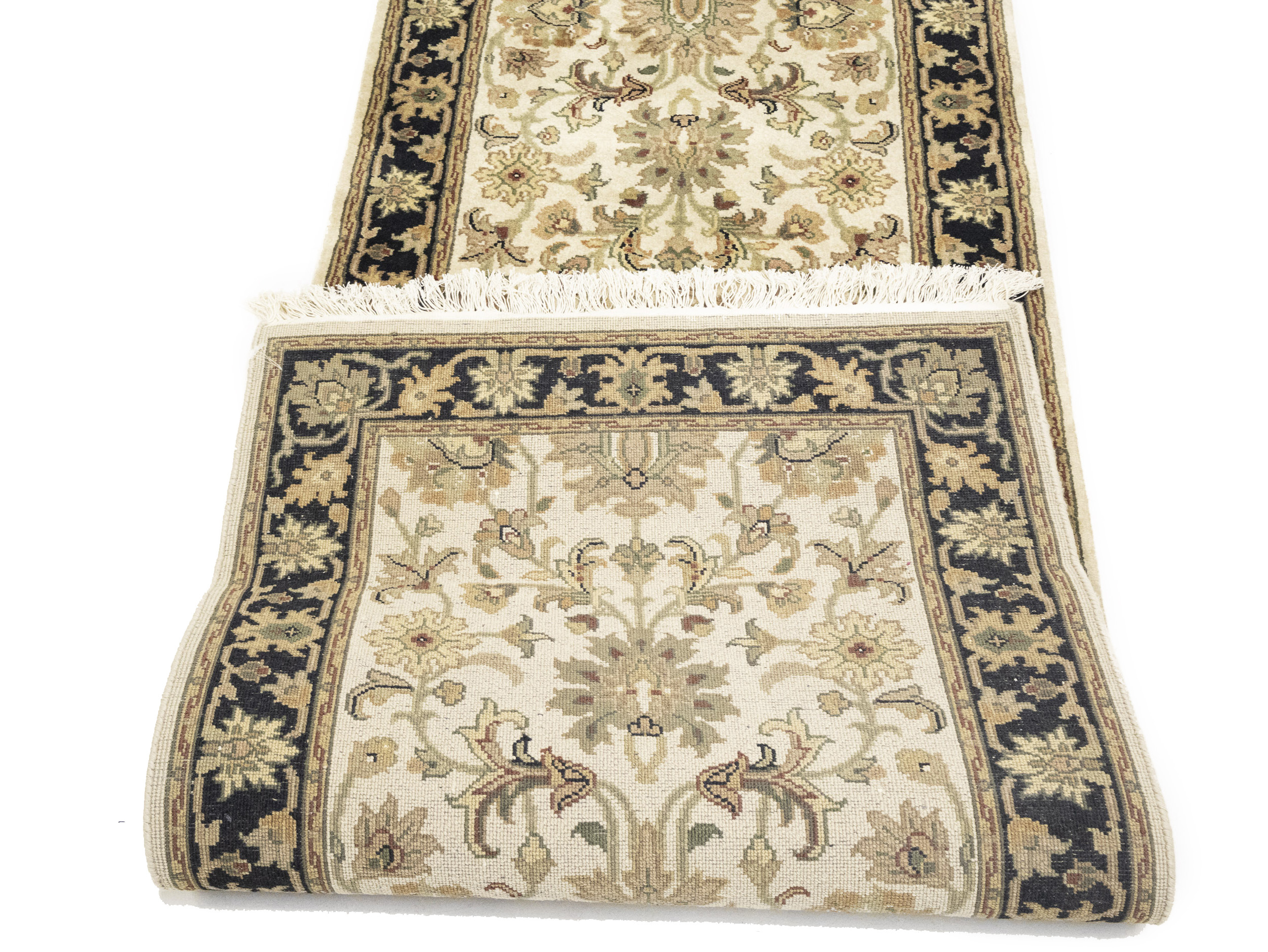Cream Floral Classic 2'7X12 Agra Jaipur Oriental Runner Rug