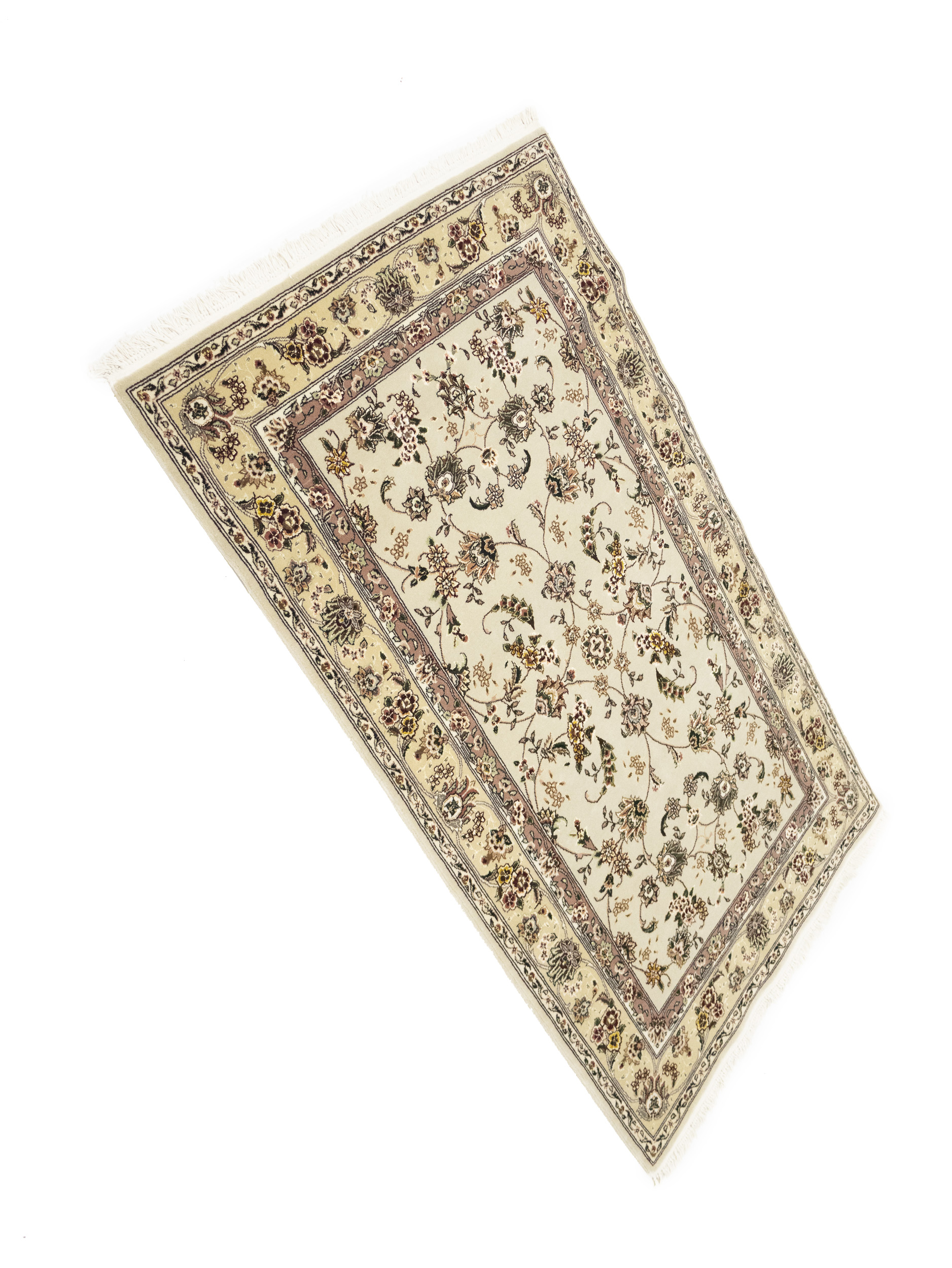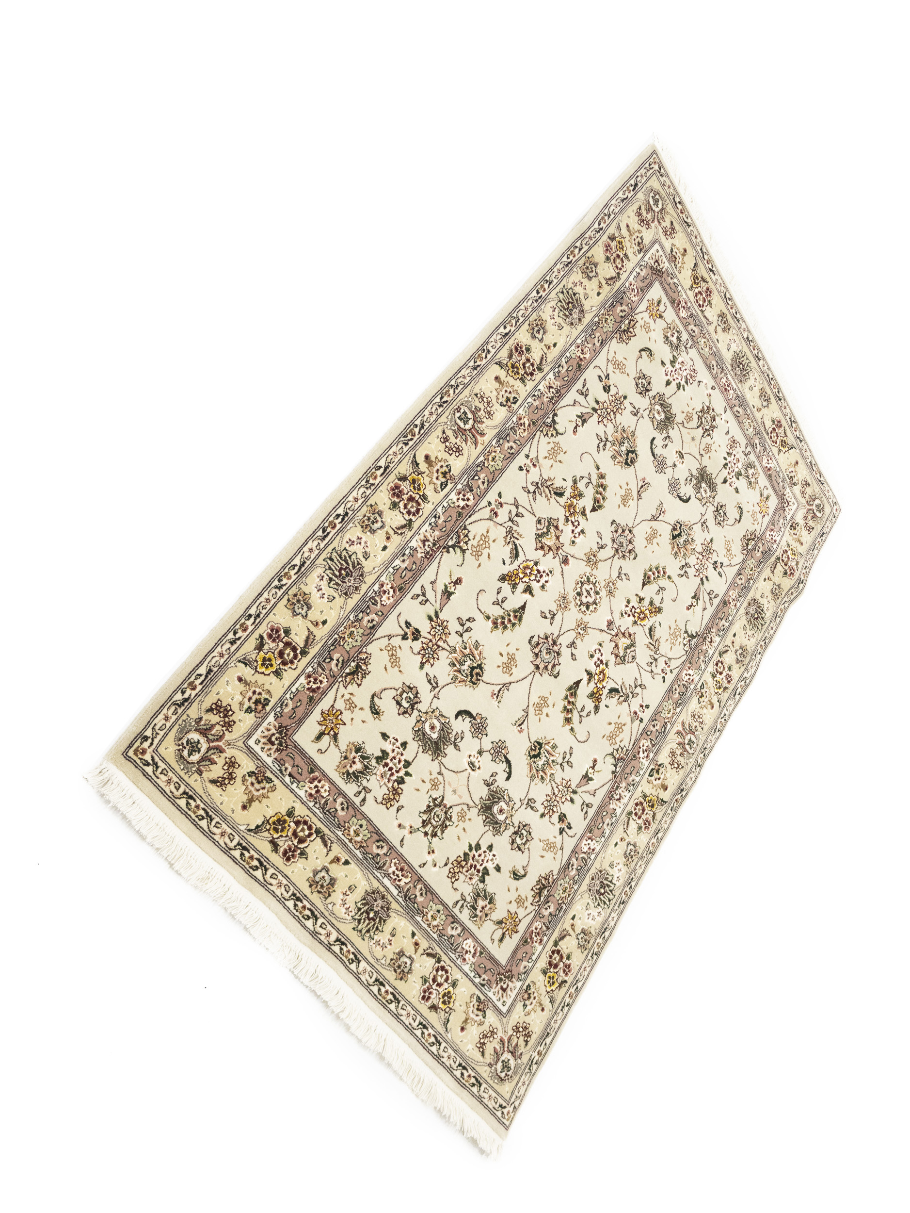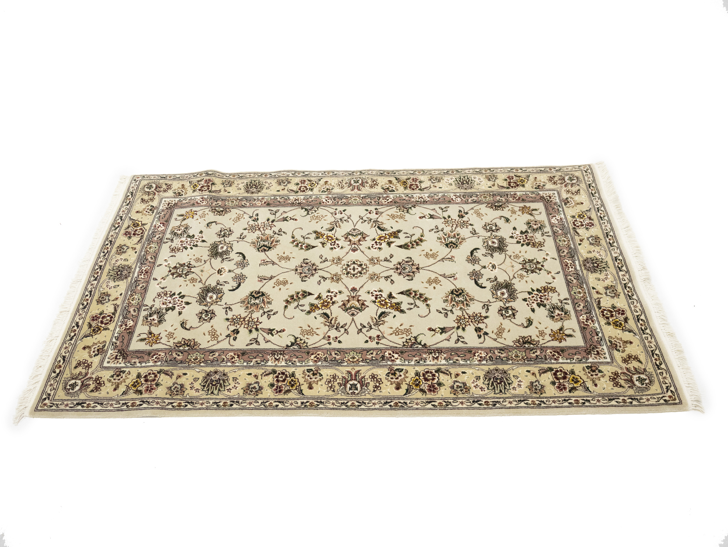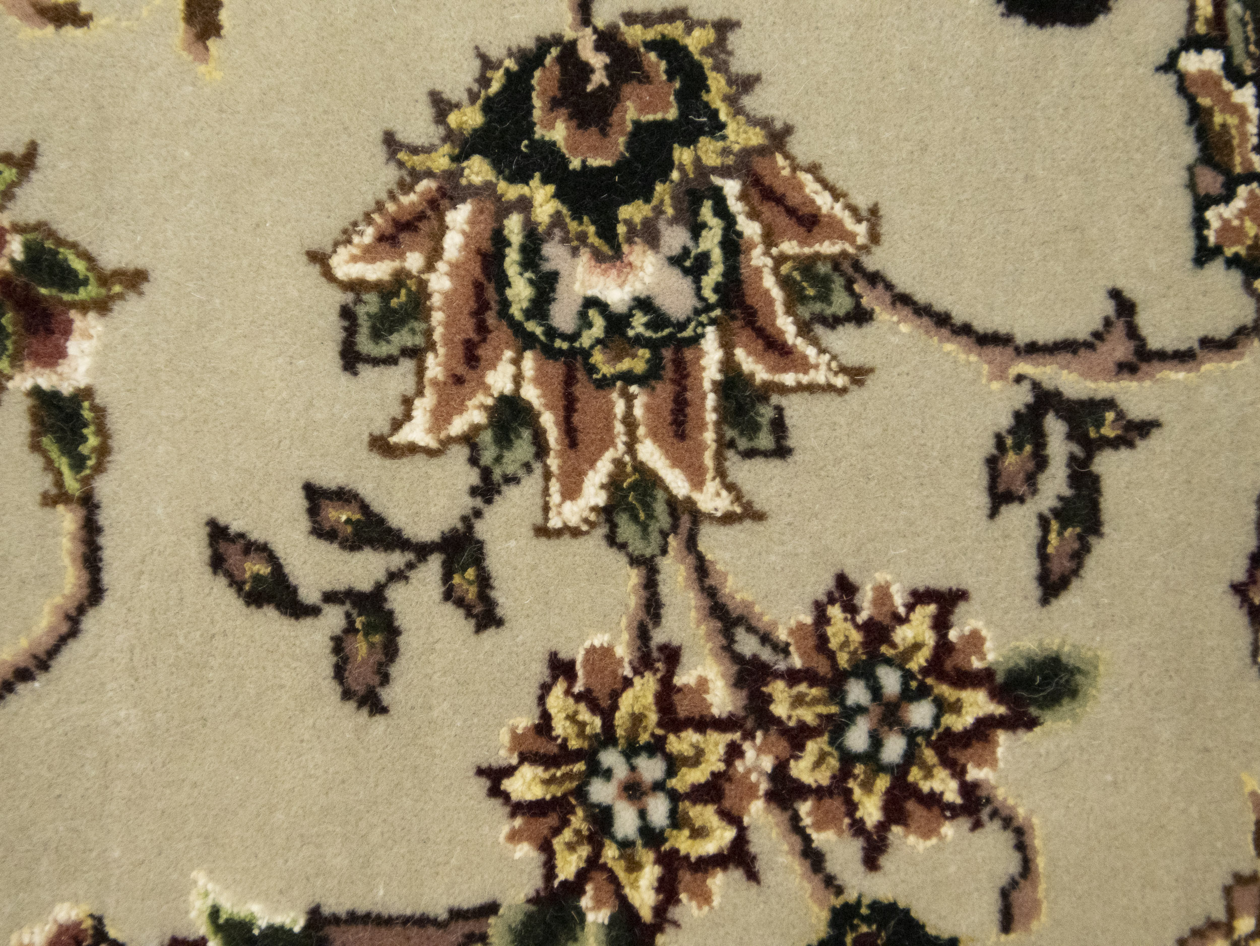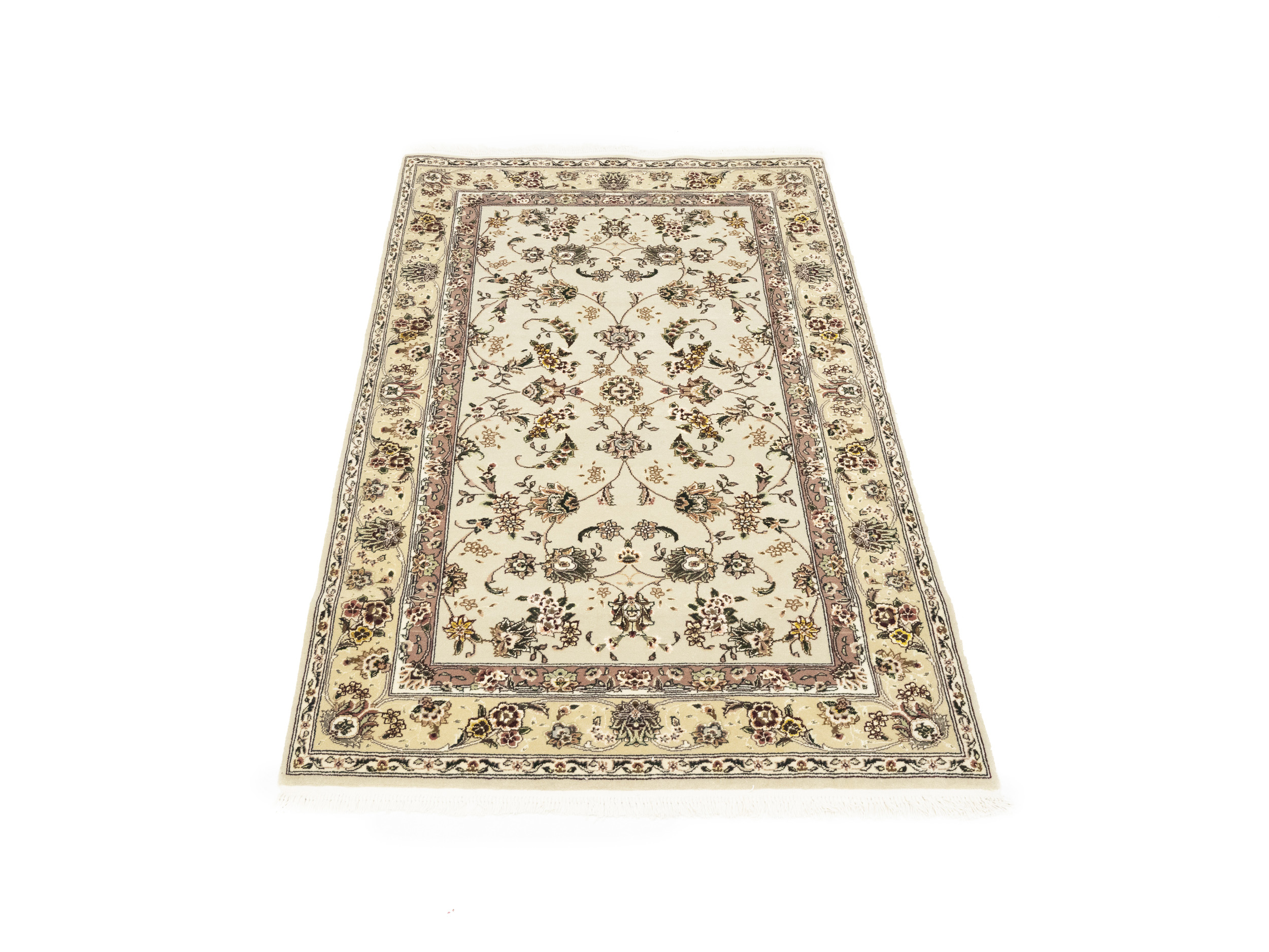 Handmade 3X5 cream oriental rug made with vegetable dyes (fine wool pile and cotton foundation), exceptional knot count, and appealing ancient designs. This Oriental rug never will go out of style and would be among your most valuable treasures.